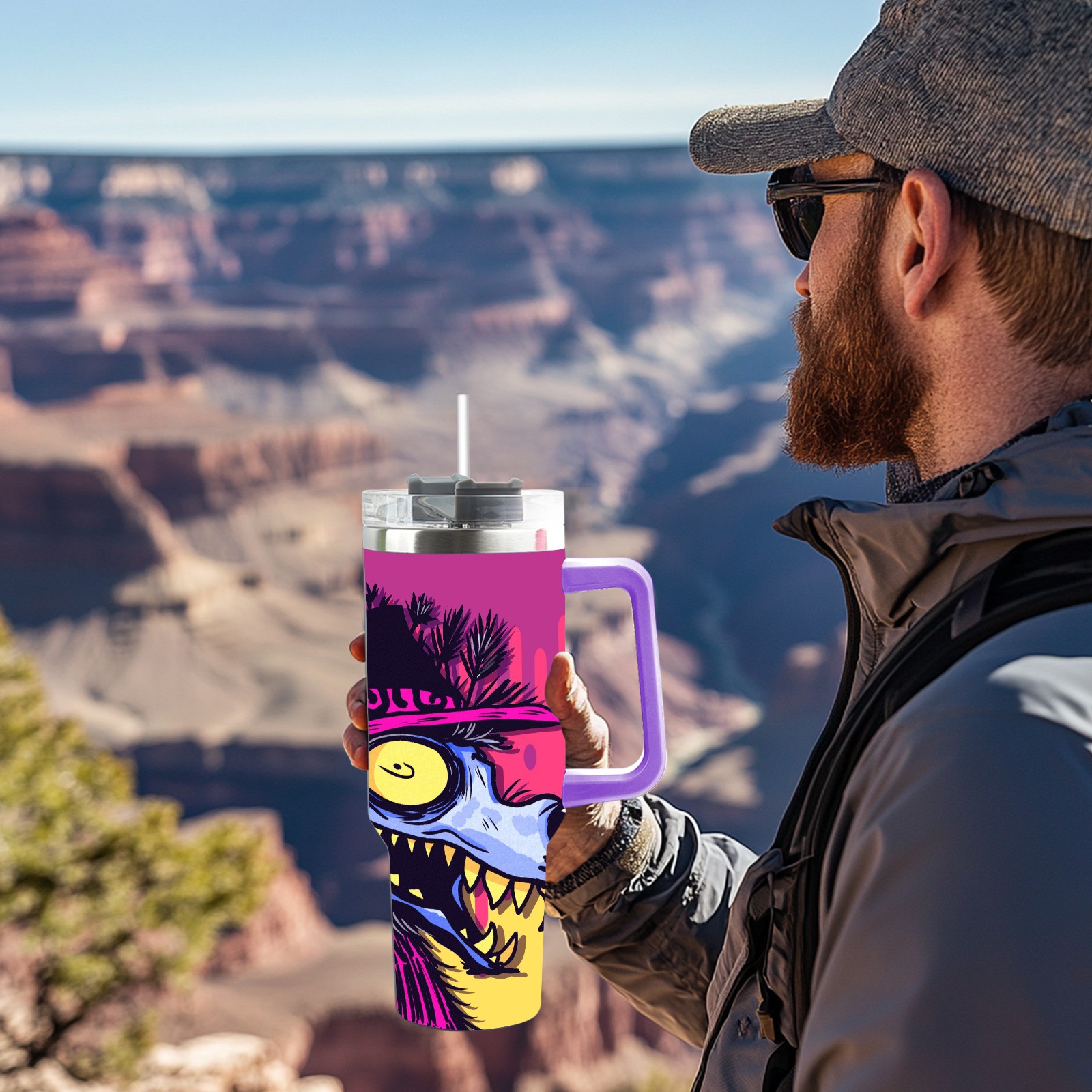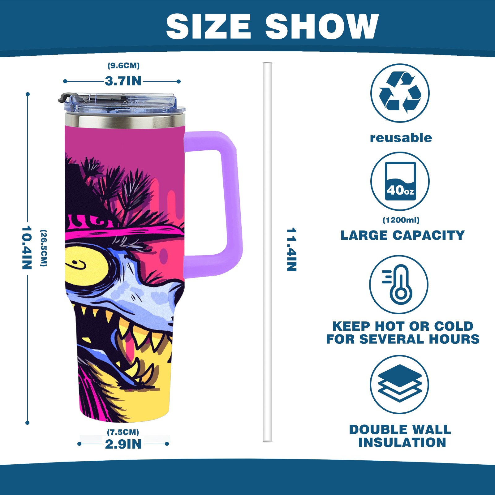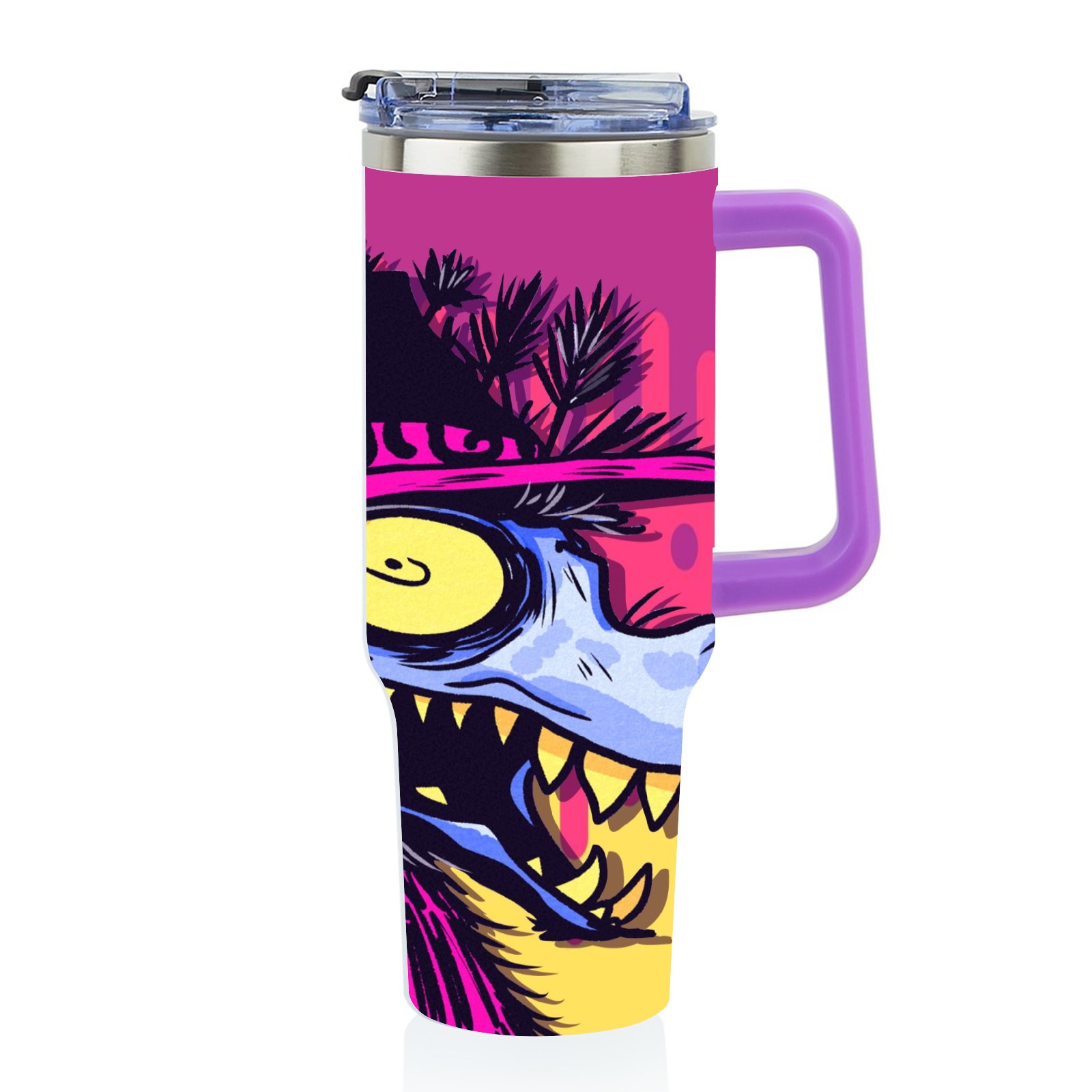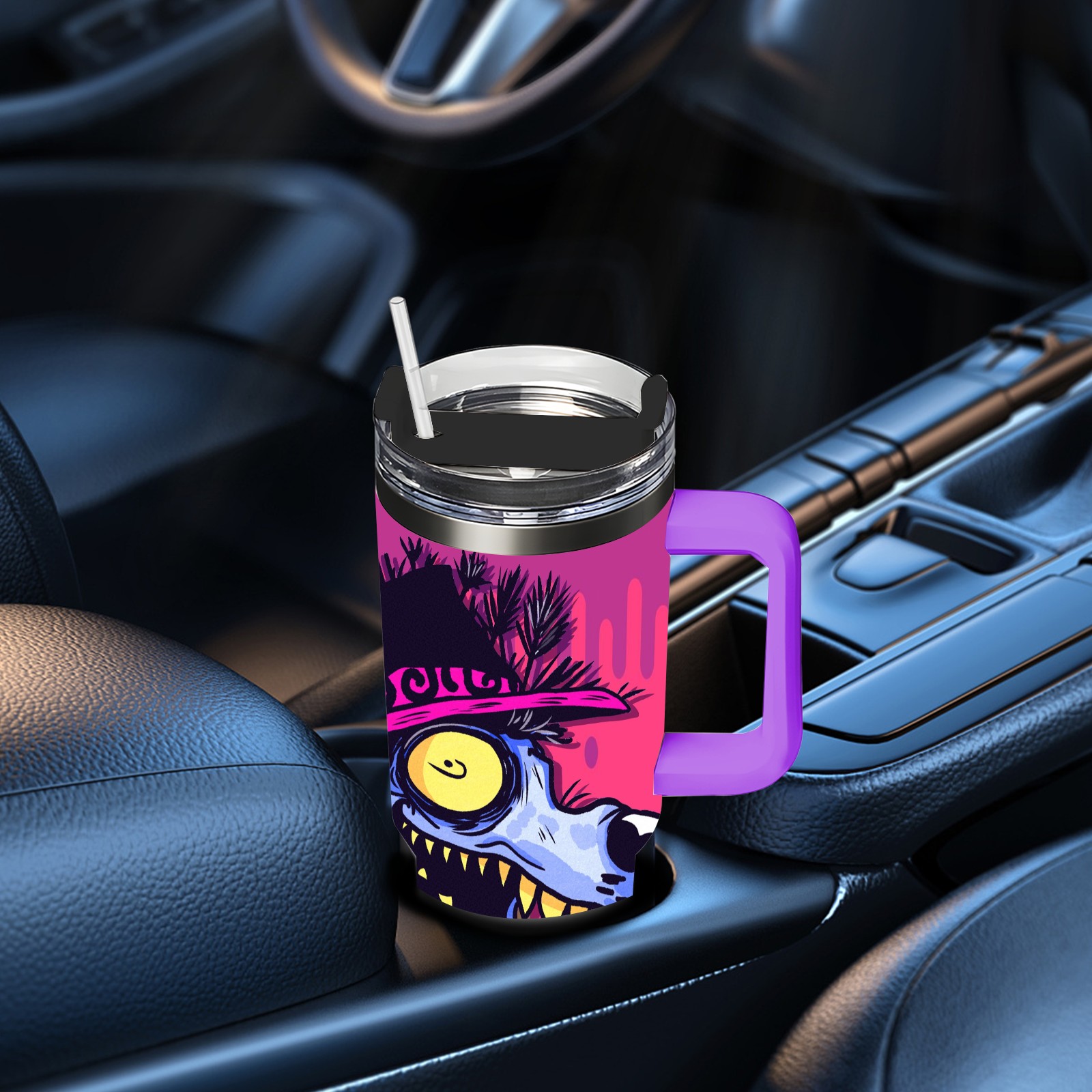 40oz 大灰狼 thermos with lid and straw, leak-proof stainless steel, with handle, spill-proof bottle, convenient for travel(purple)