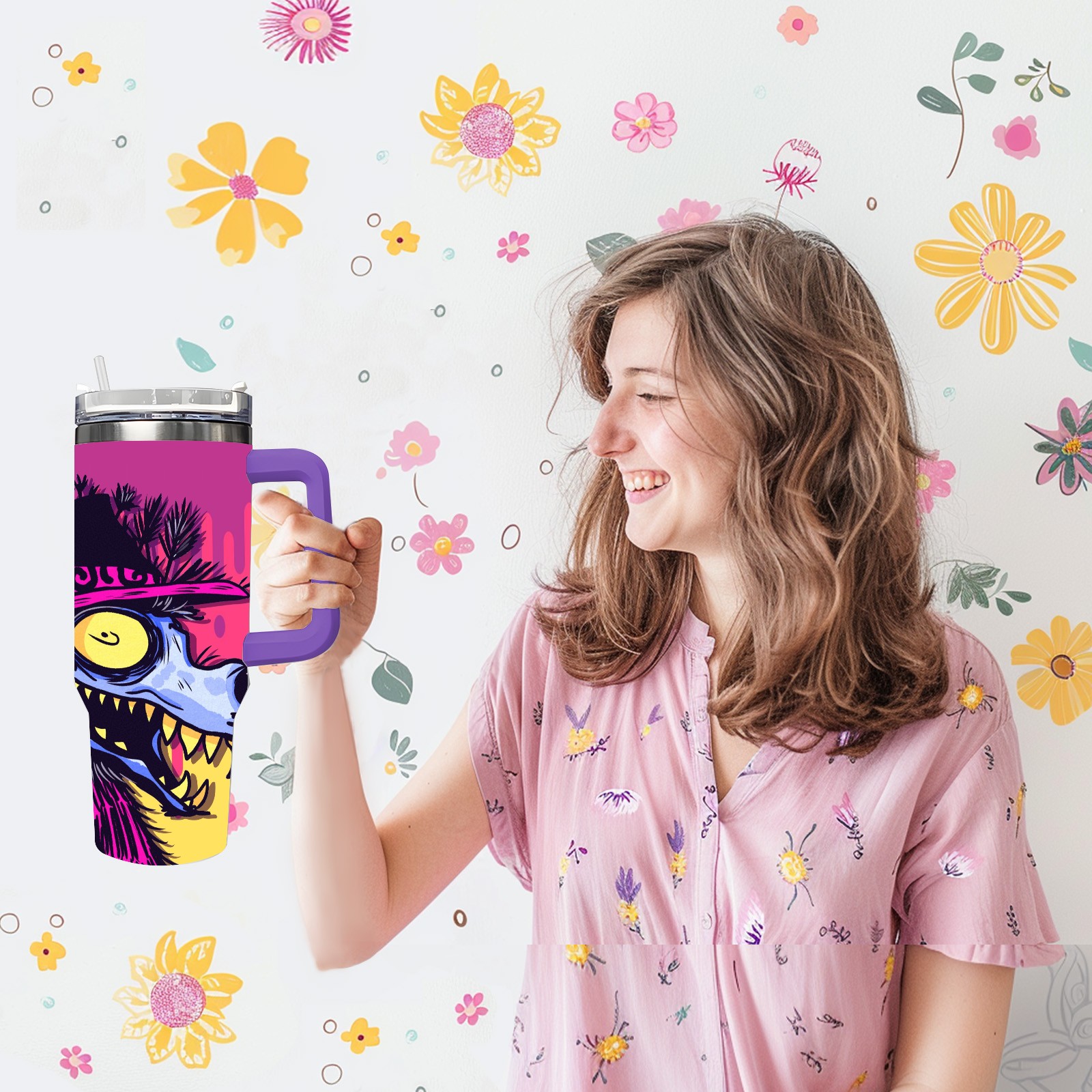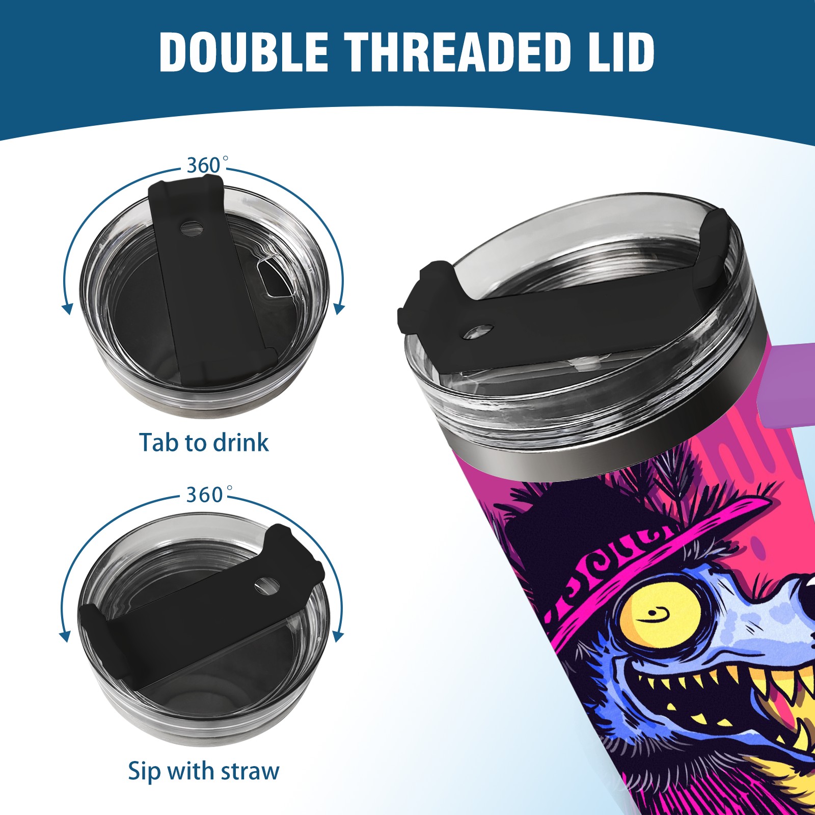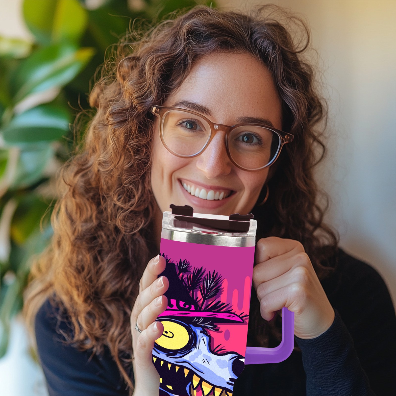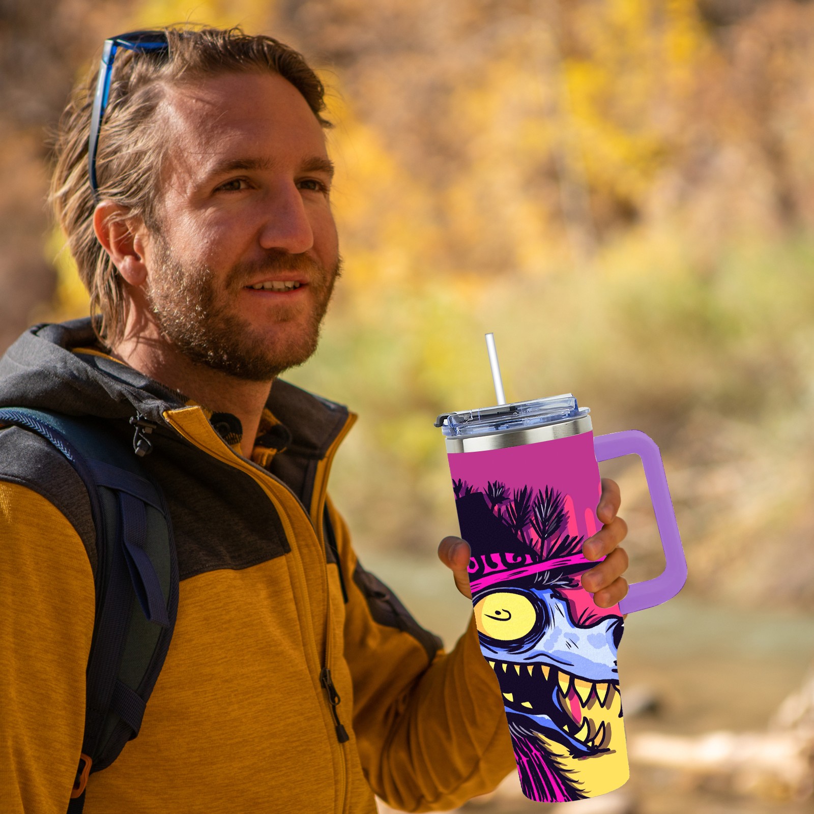40oz 大灰狼 thermos with lid and straw, leak-proof stainless steel, with handle, spill-proof bottle, convenient for travel(purple)