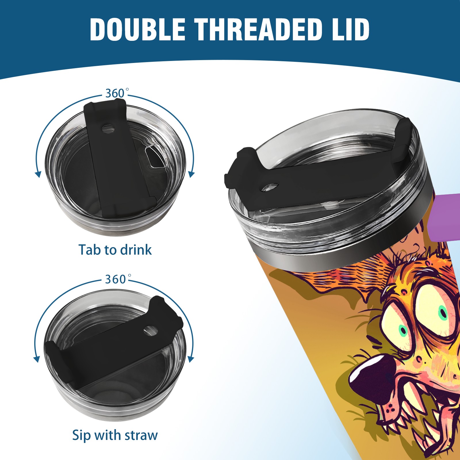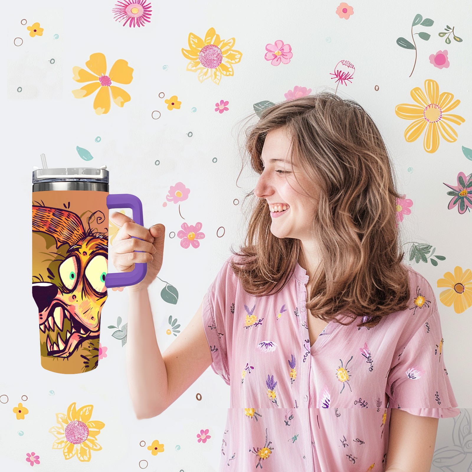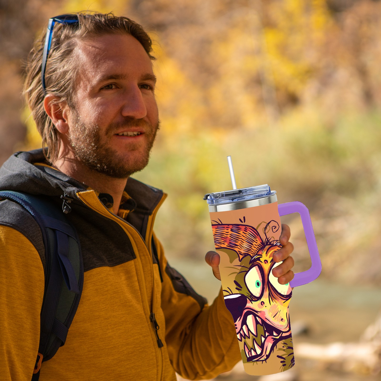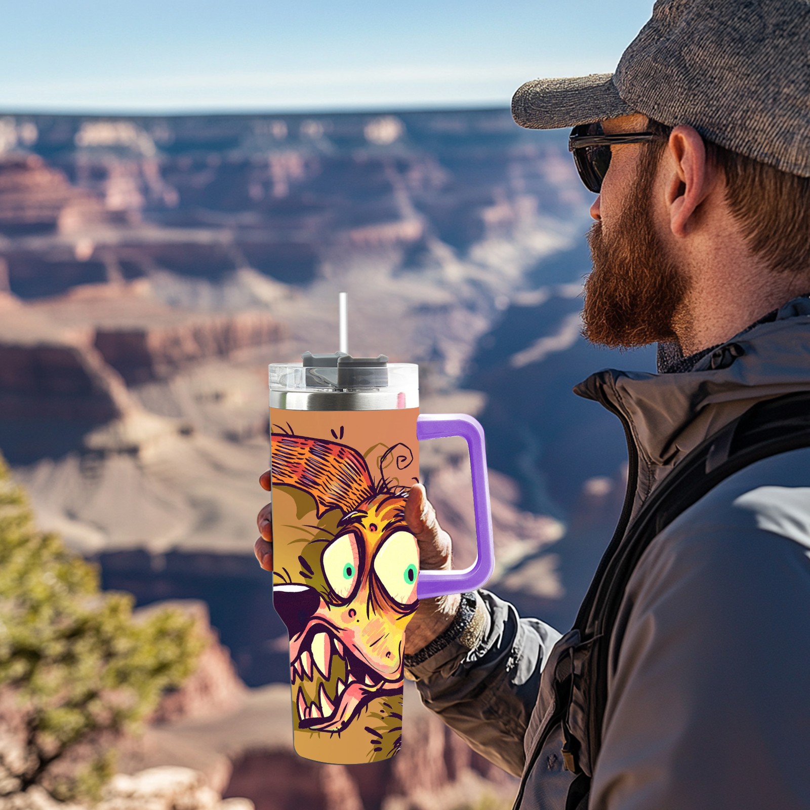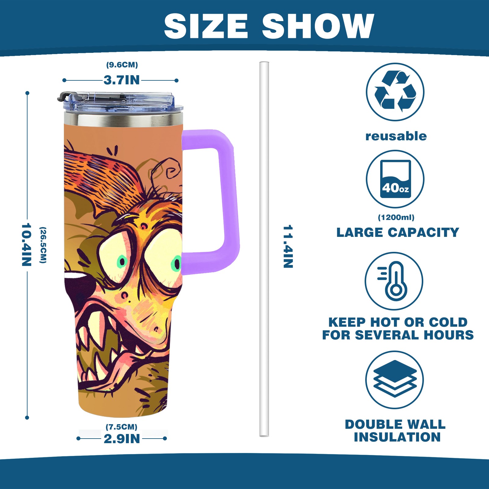40oz 大狗子 thermos with lid and straw, leak-proof stainless steel, with handle, spill-proof bottle, convenient for travel(purple)