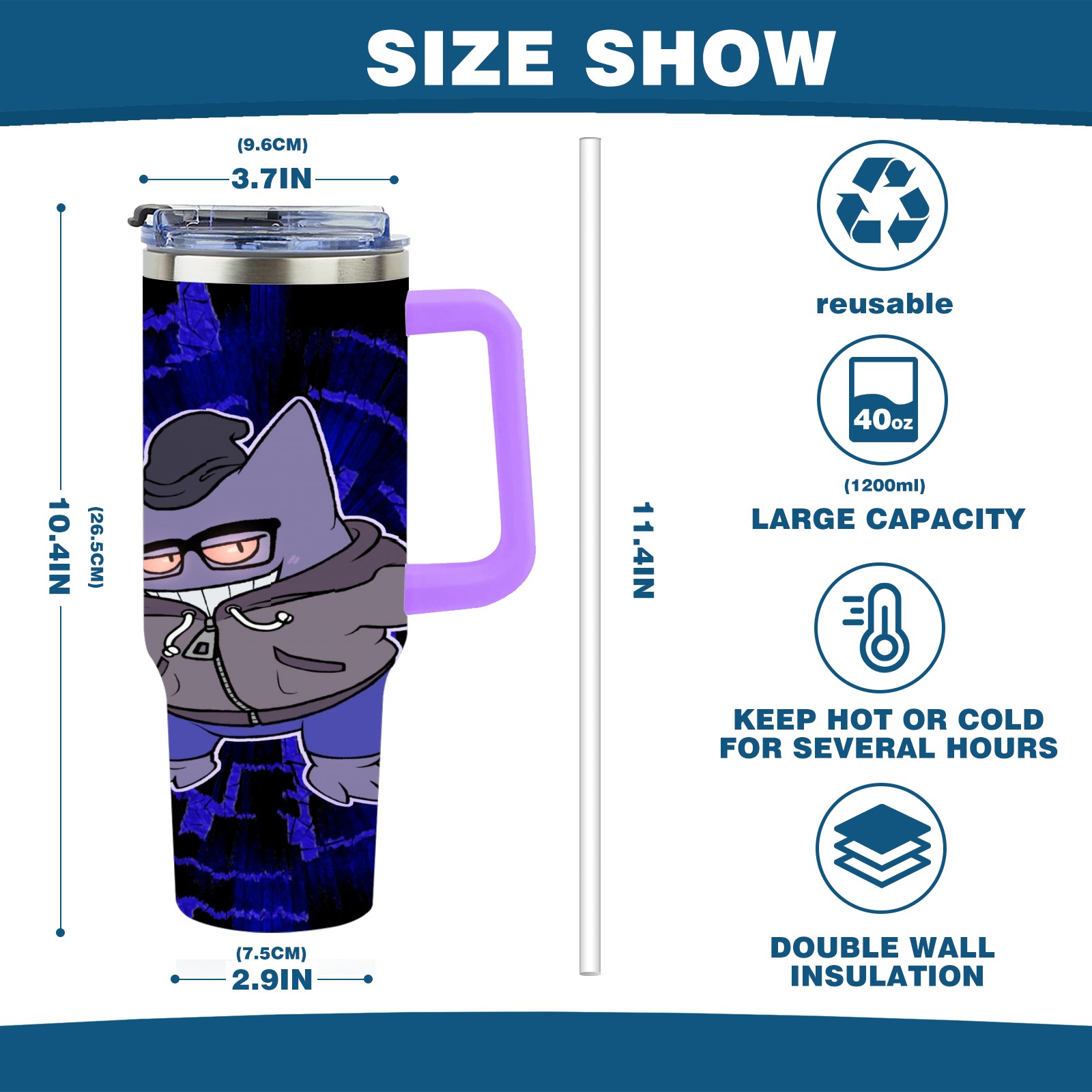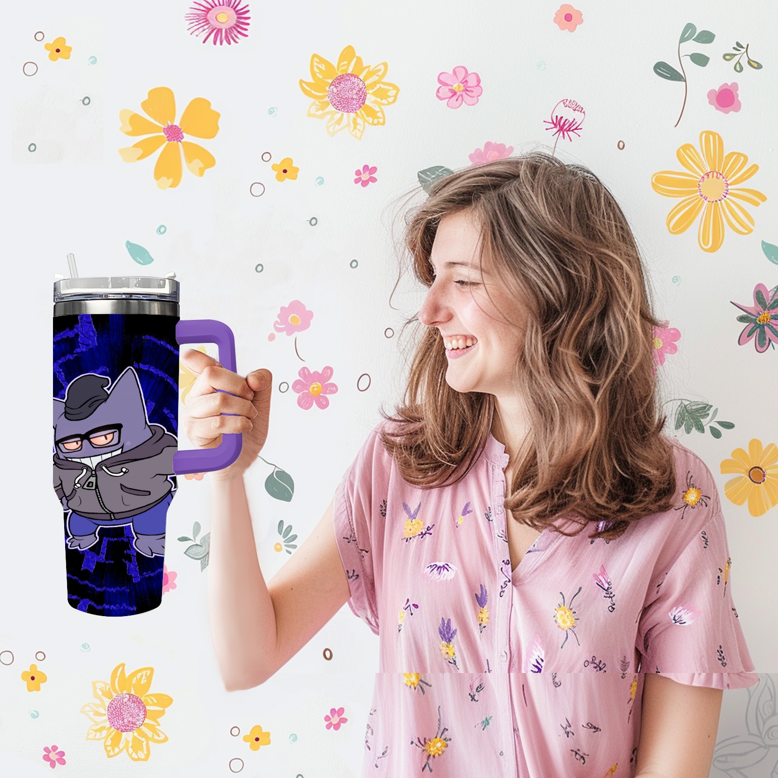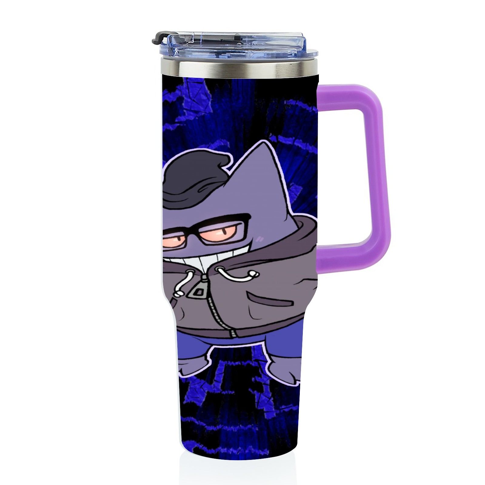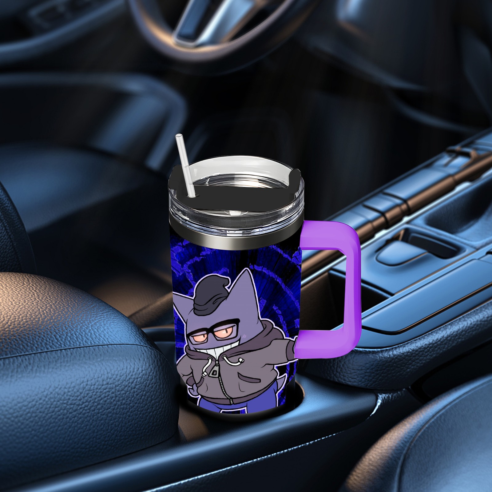 40oz 宝可梦7 thermos with lid and straw, leak-proof stainless steel, with handle, spill-proof bottle, convenient for travel(purple)