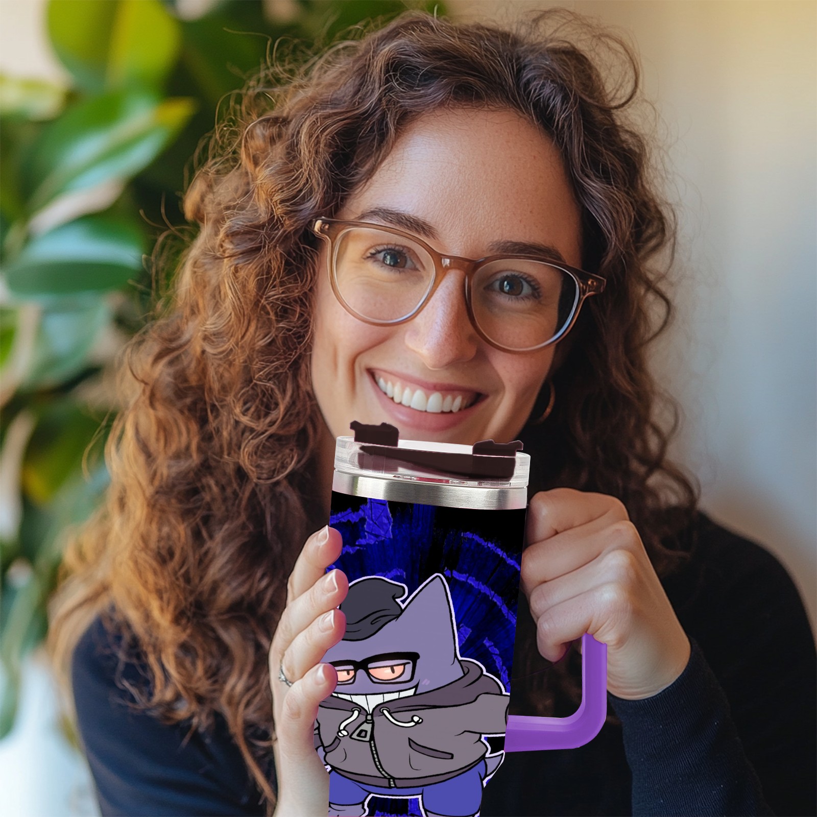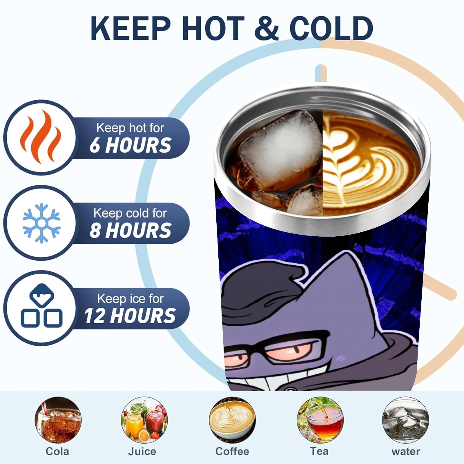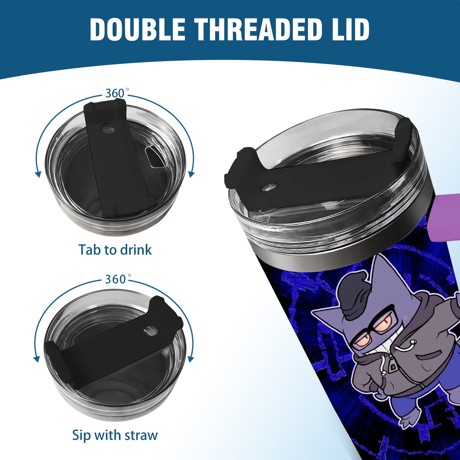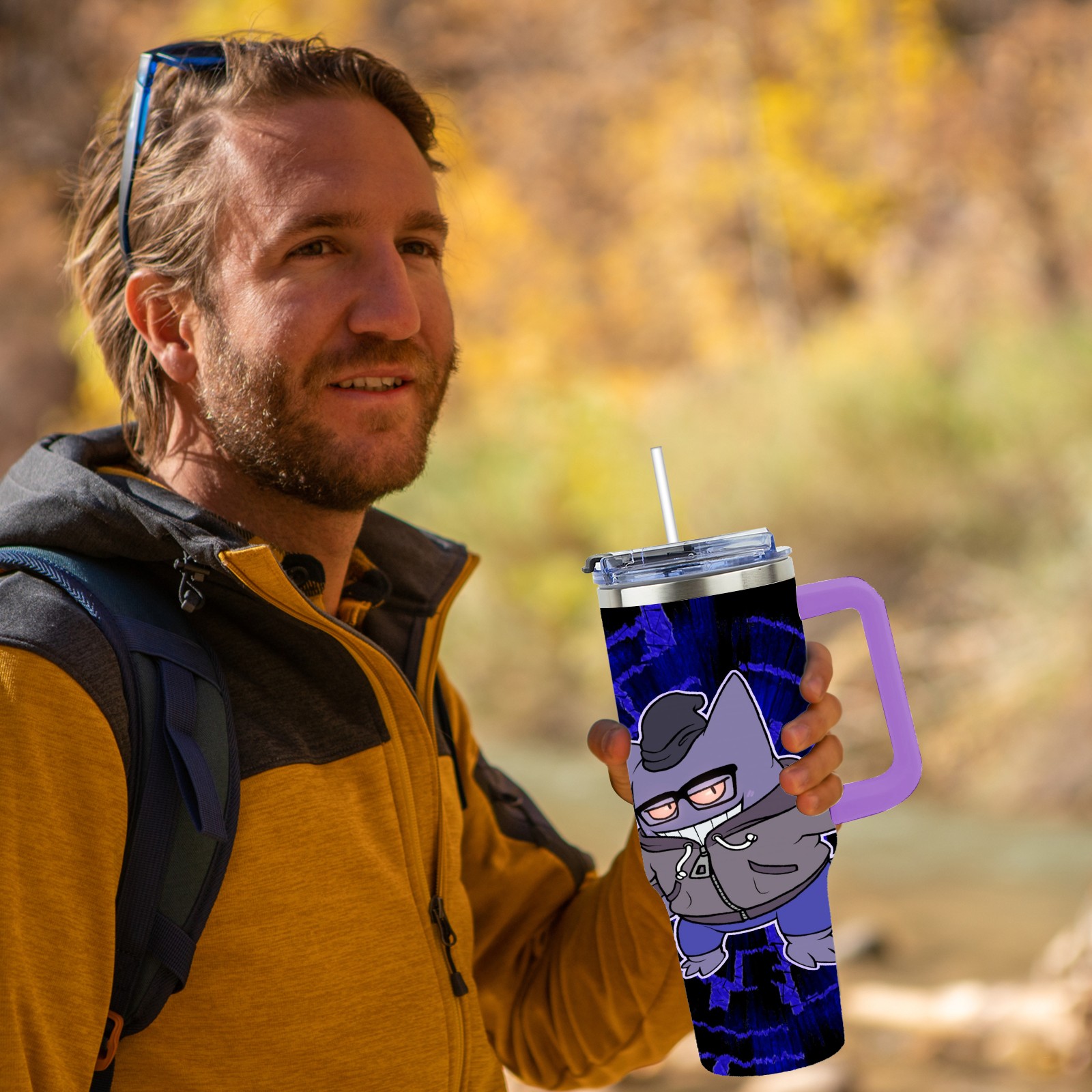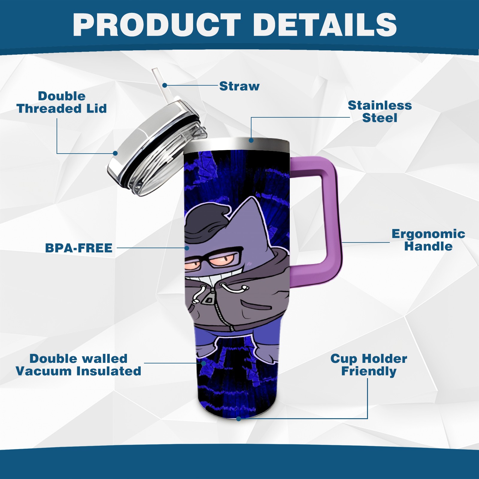 40oz 宝可梦7 thermos with lid and straw, leak-proof stainless steel, with handle, spill-proof bottle, convenient for travel(purple)
