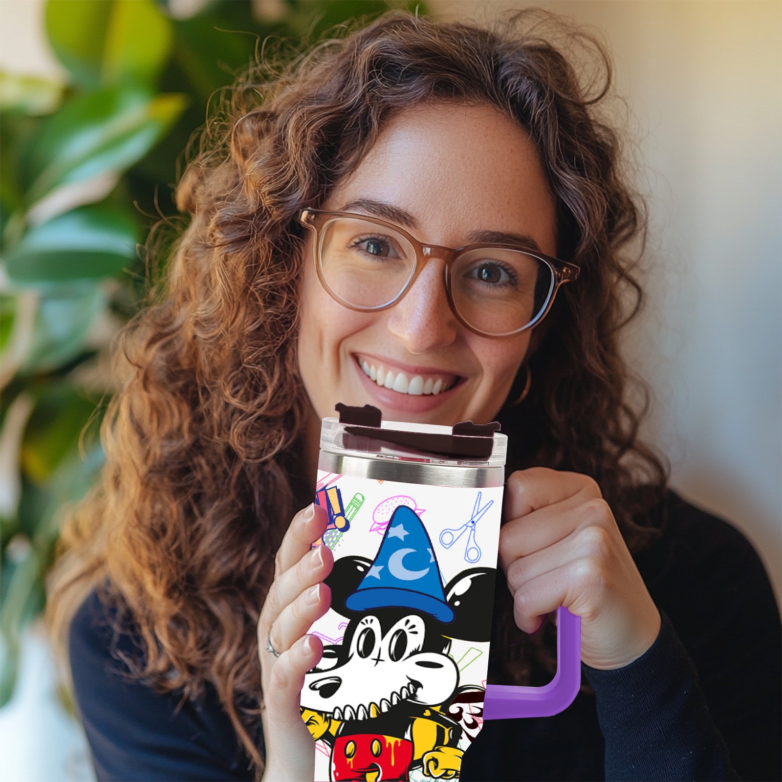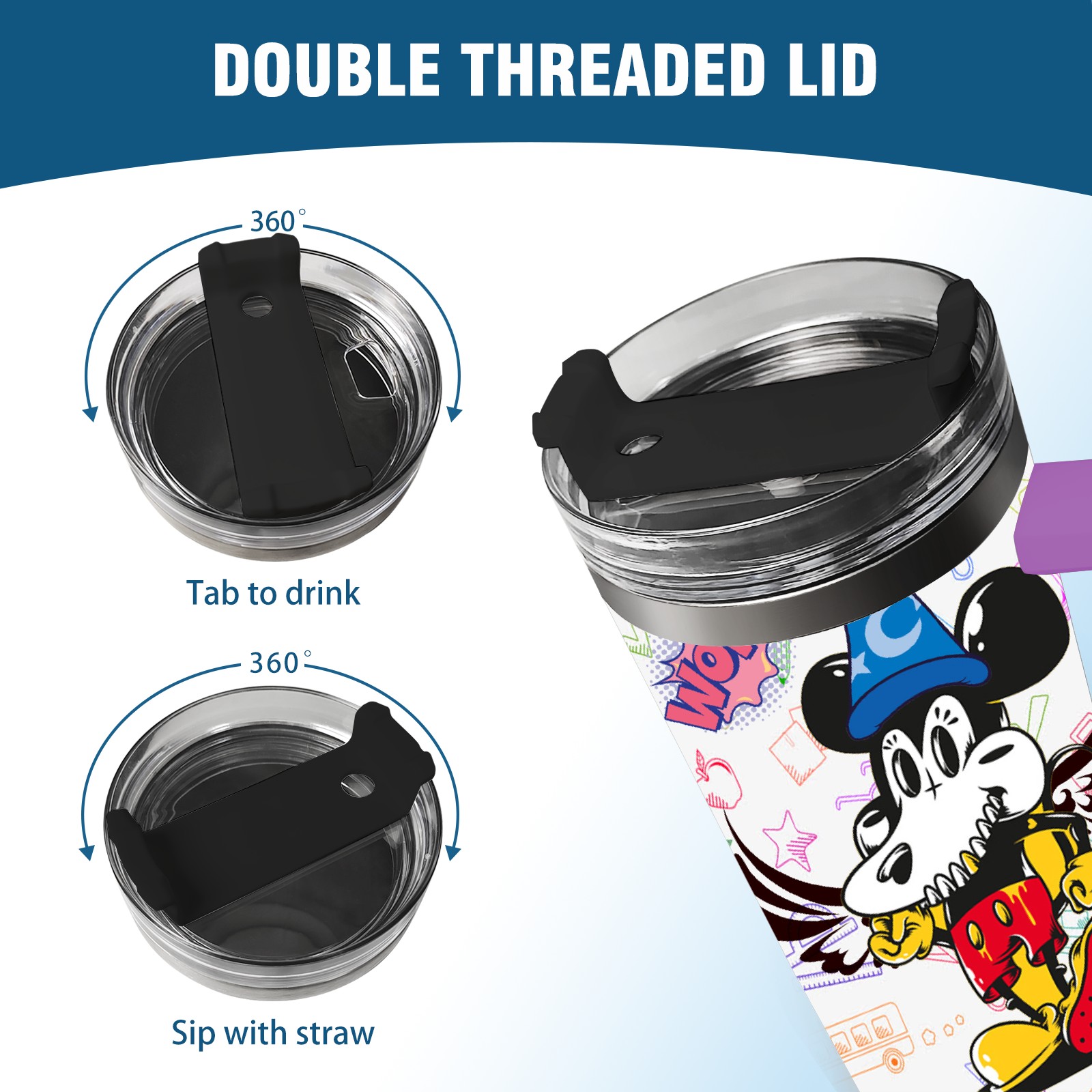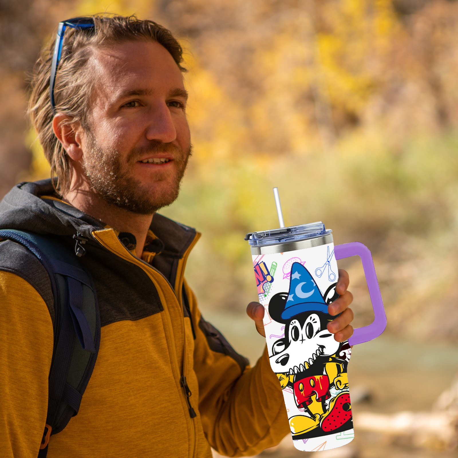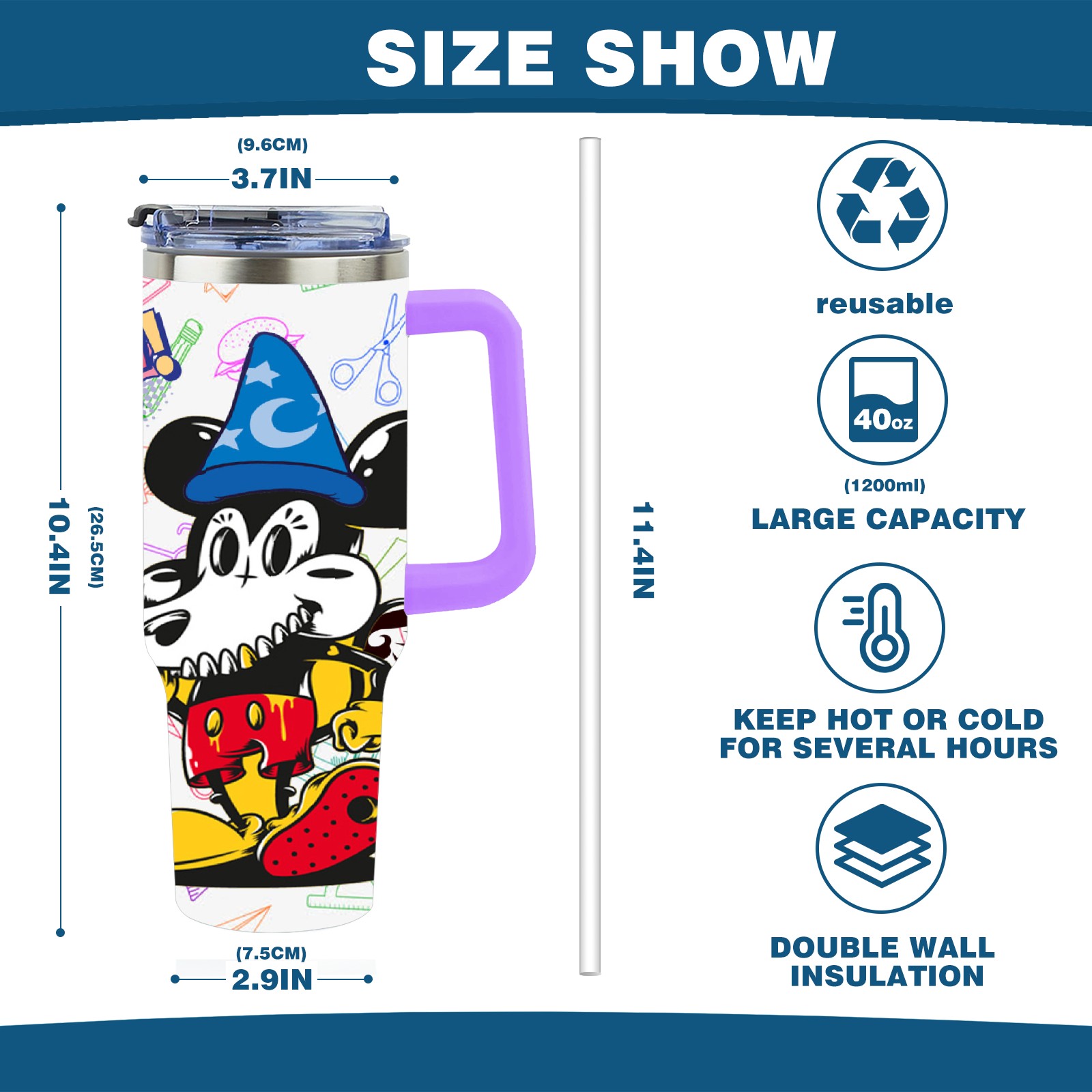 40oz Mickey Mouse (2) thermos with lid and straw, leak-proof stainless steel, with handle, spill-proof bottle, convenient for travel(purple)