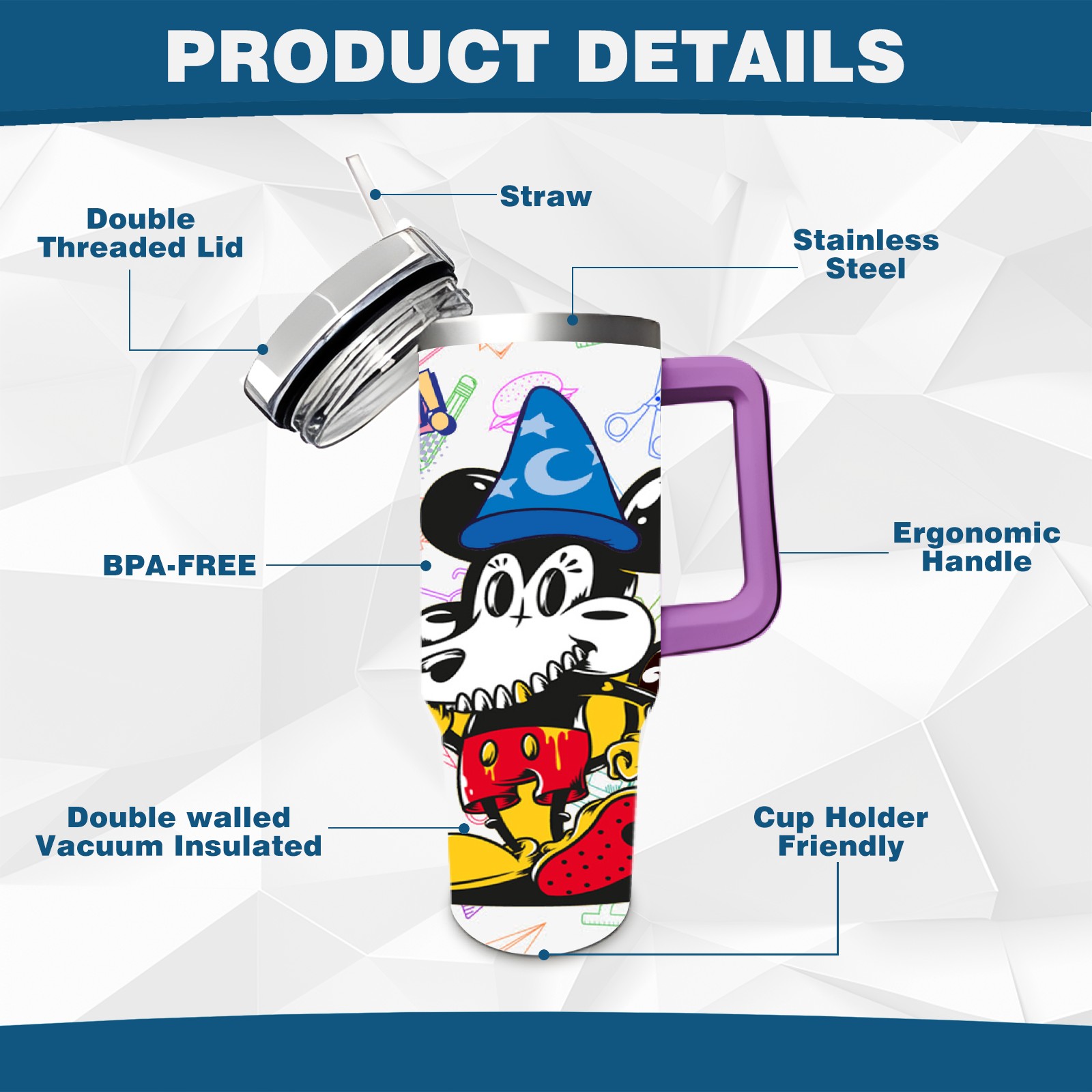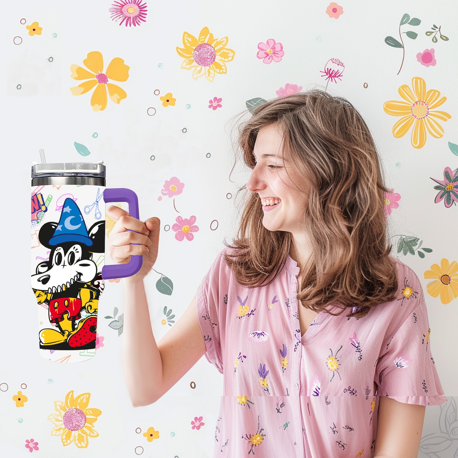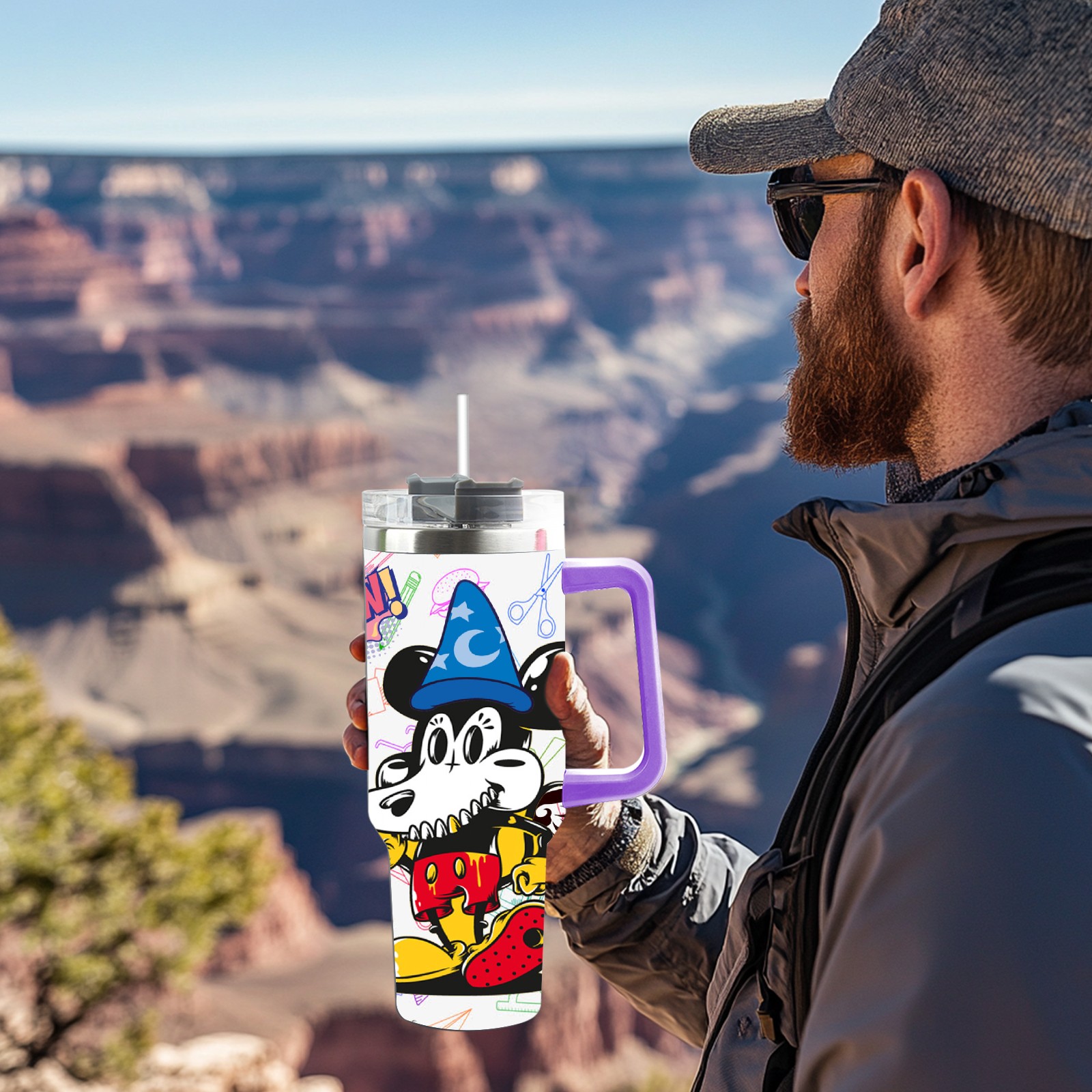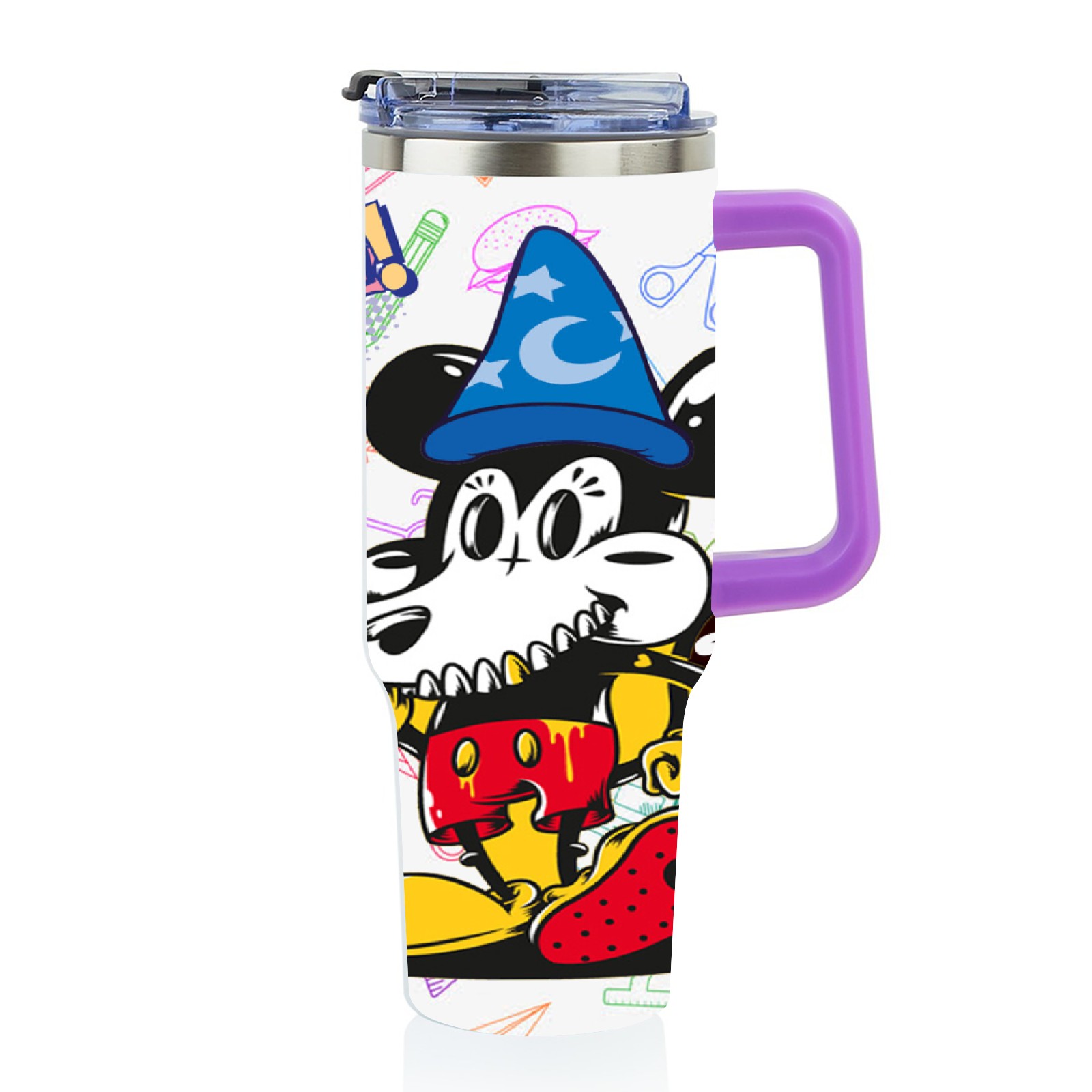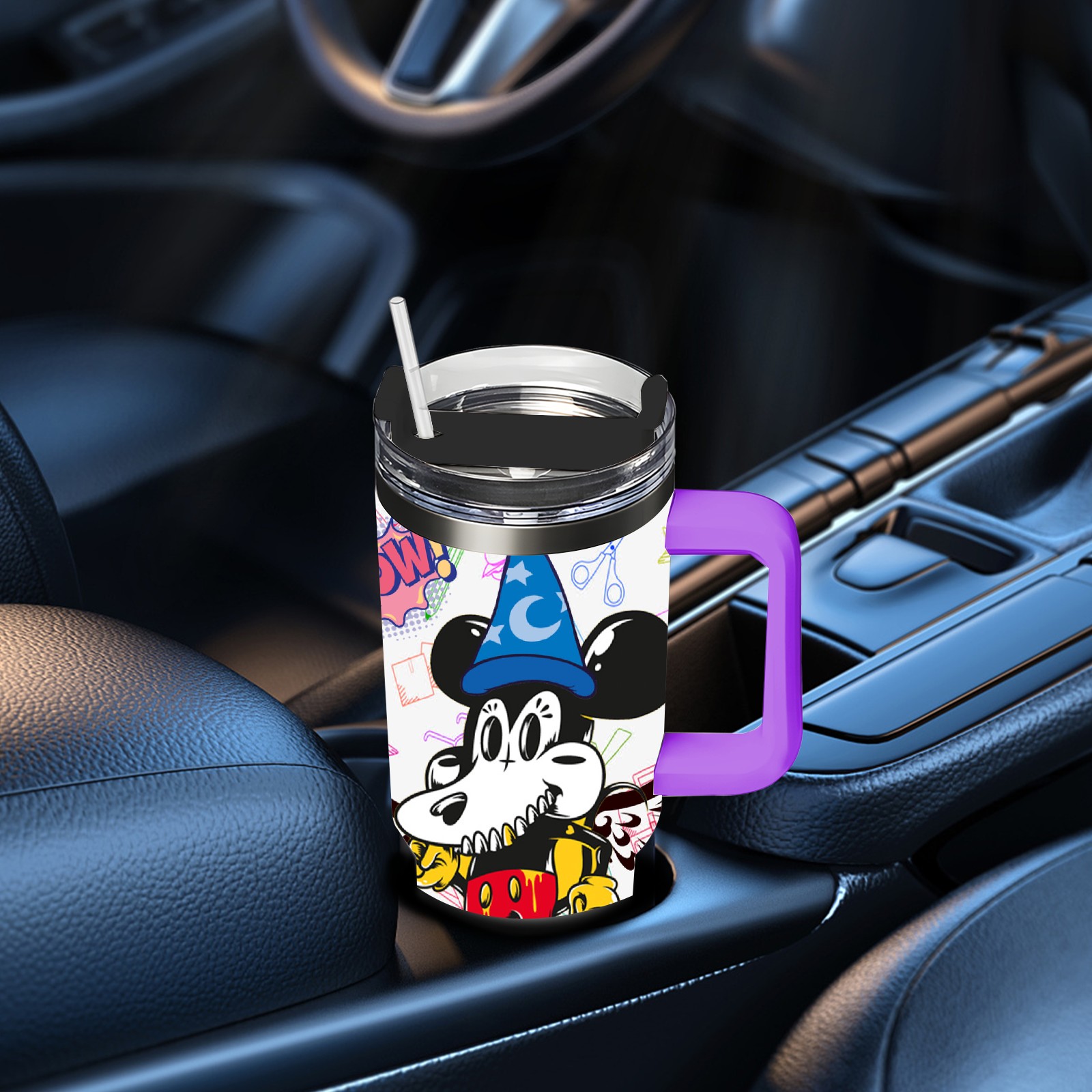 40oz Mickey Mouse (2) thermos with lid and straw, leak-proof stainless steel, with handle, spill-proof bottle, convenient for travel(purple)