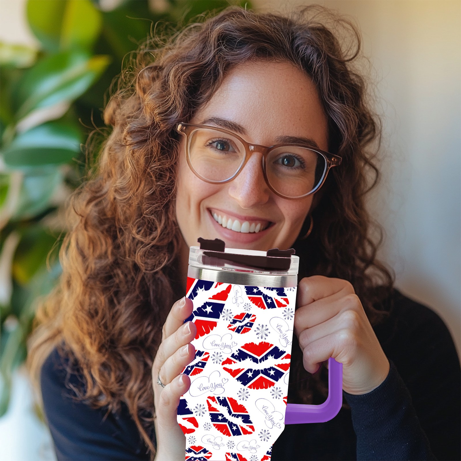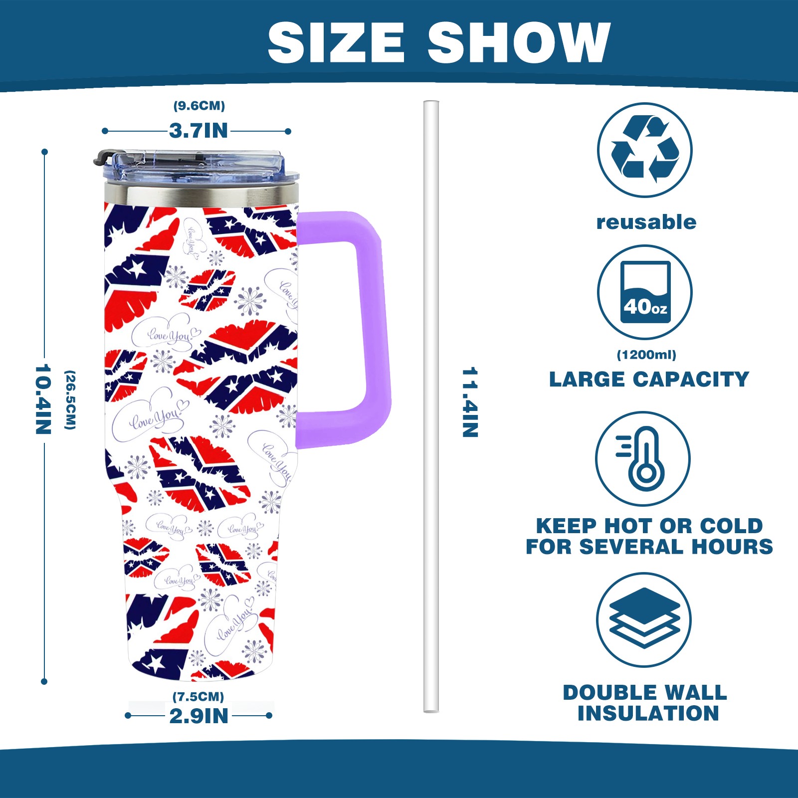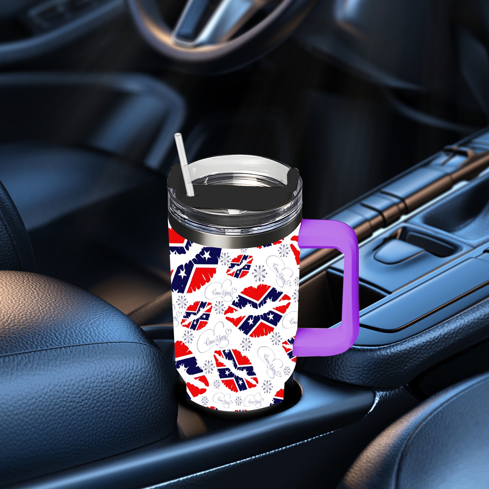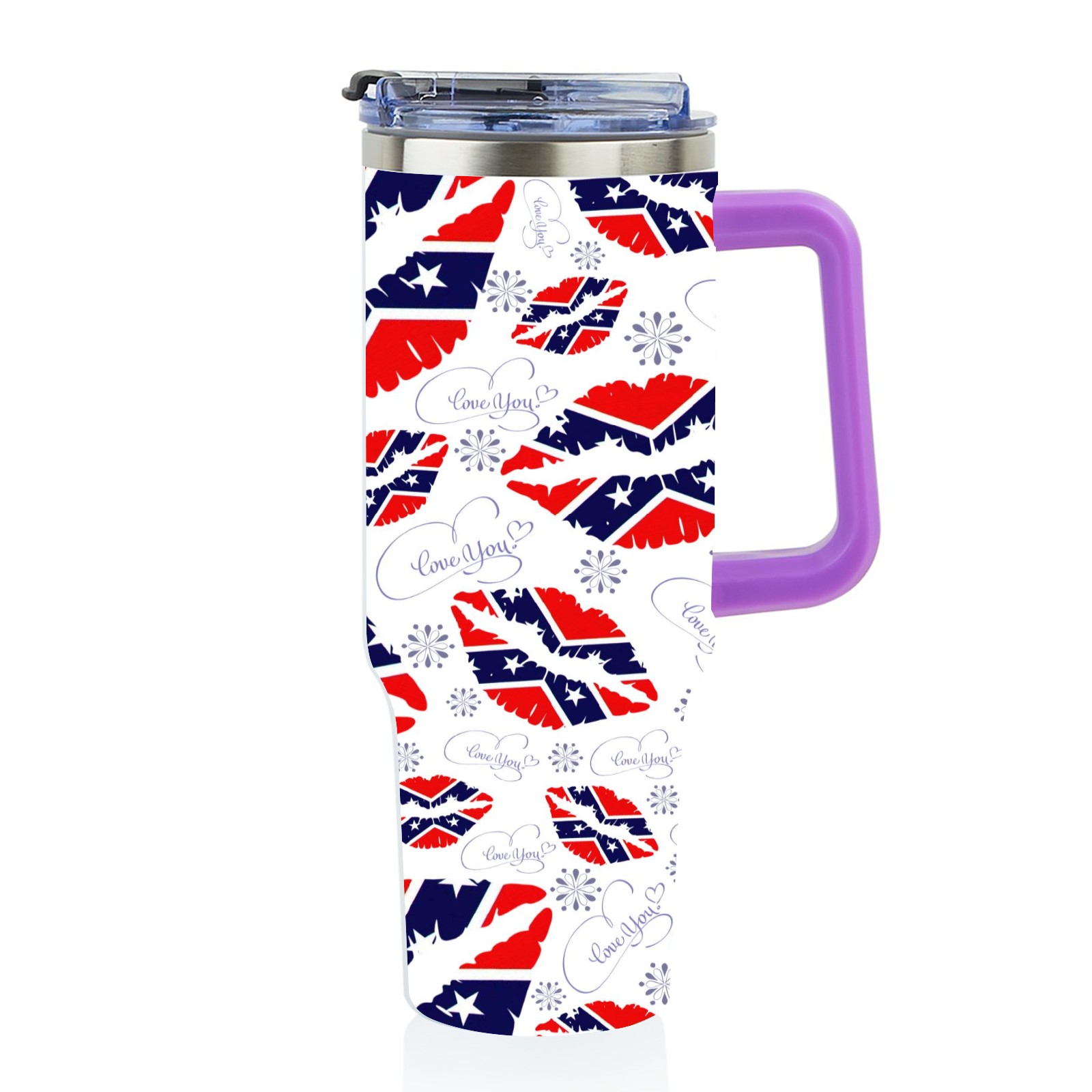 40oz 嘴唇款式06 thermos with lid and straw, leak-proof stainless steel, with handle, spill-proof bottle, convenient for travel(purple)