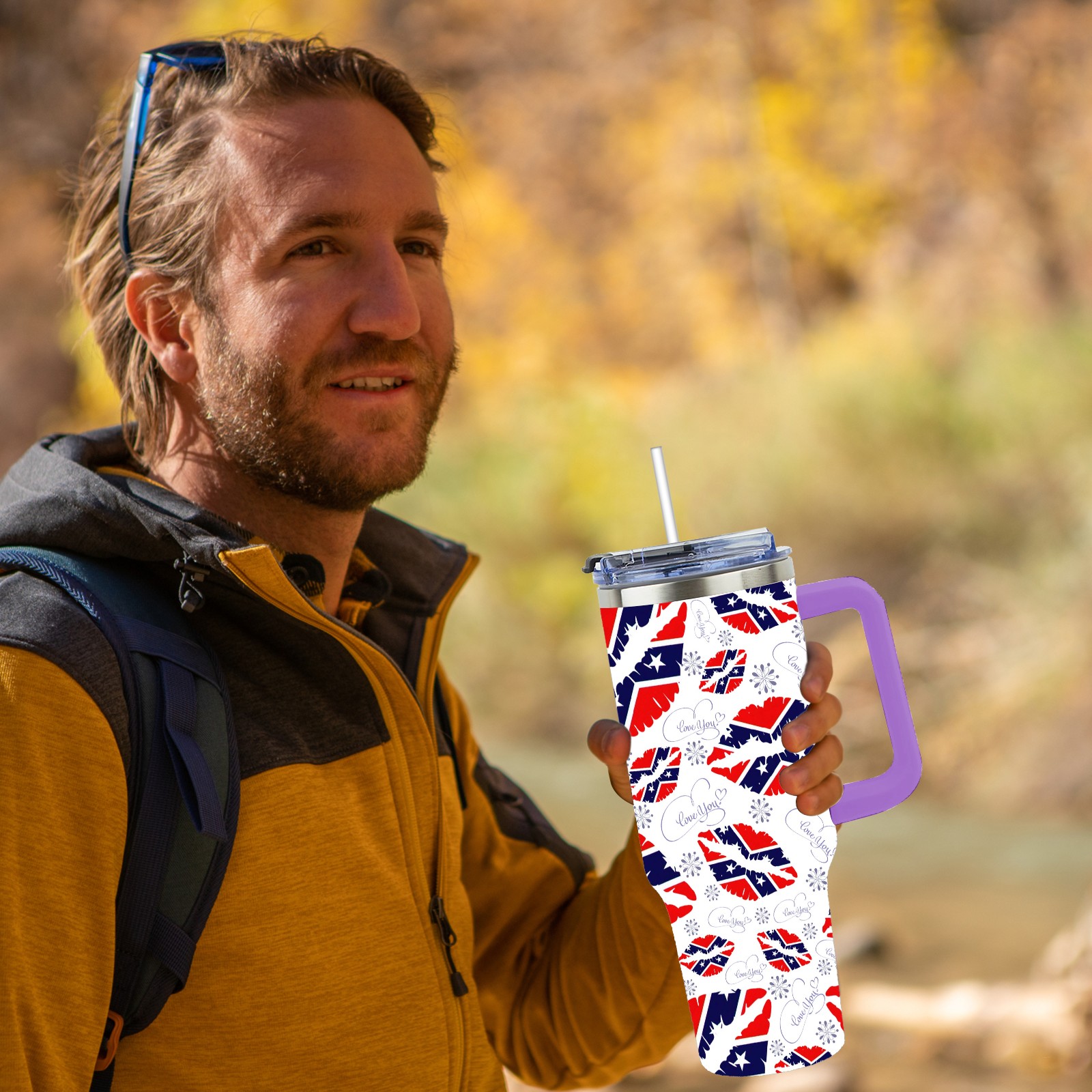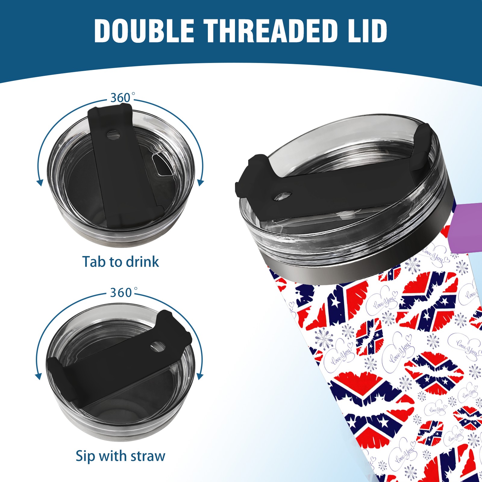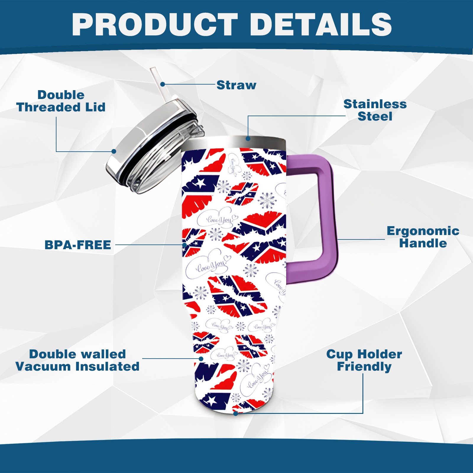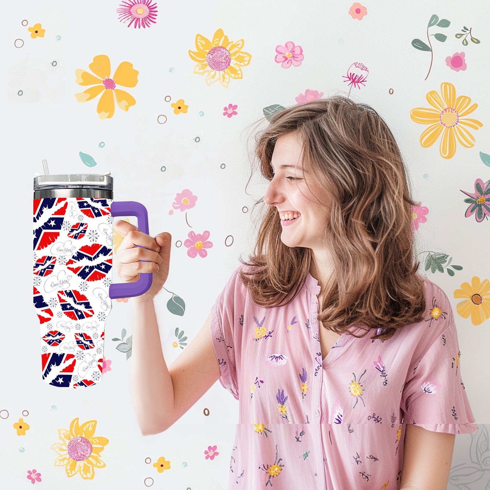 40oz 嘴唇款式06 thermos with lid and straw, leak-proof stainless steel, with handle, spill-proof bottle, convenient for travel(purple)