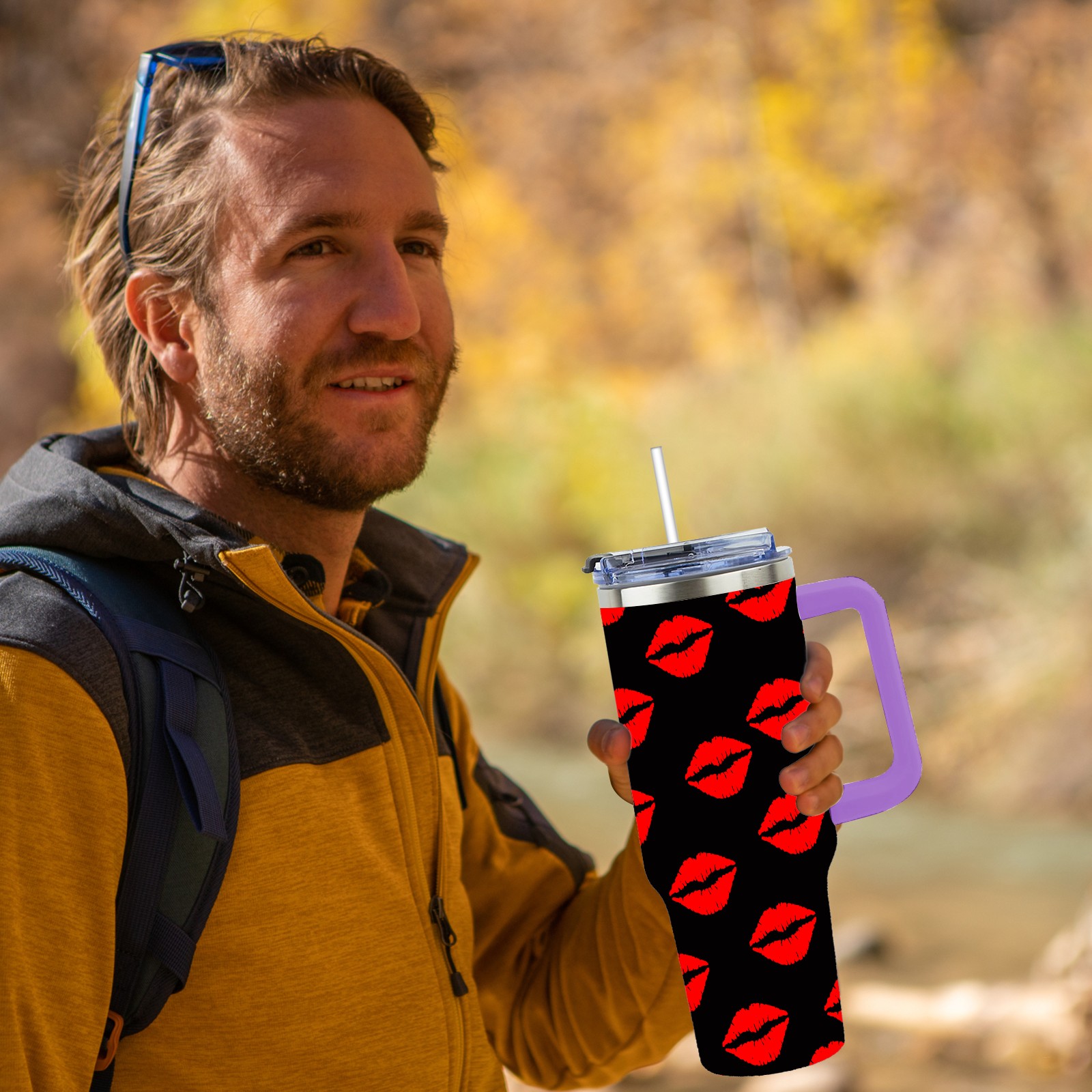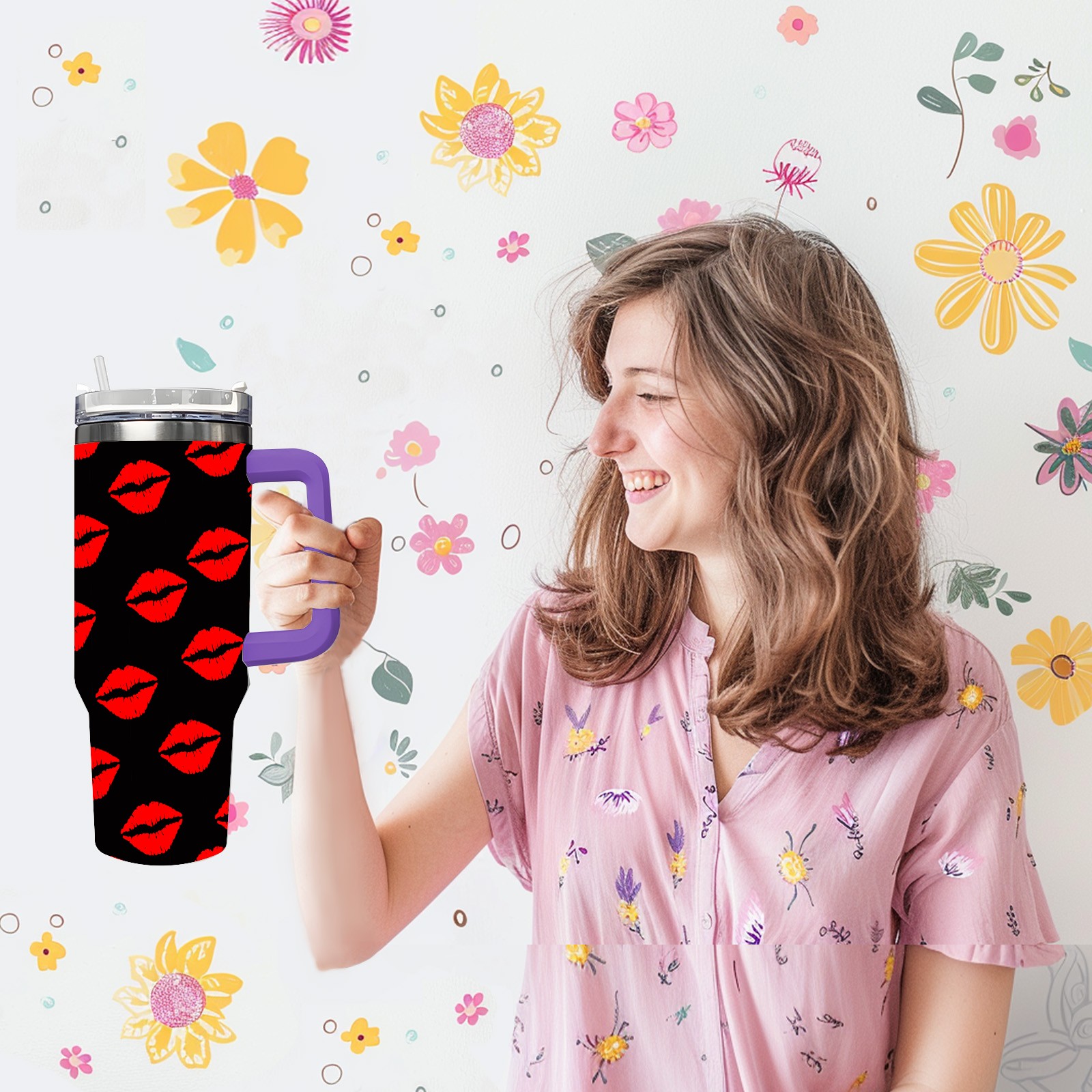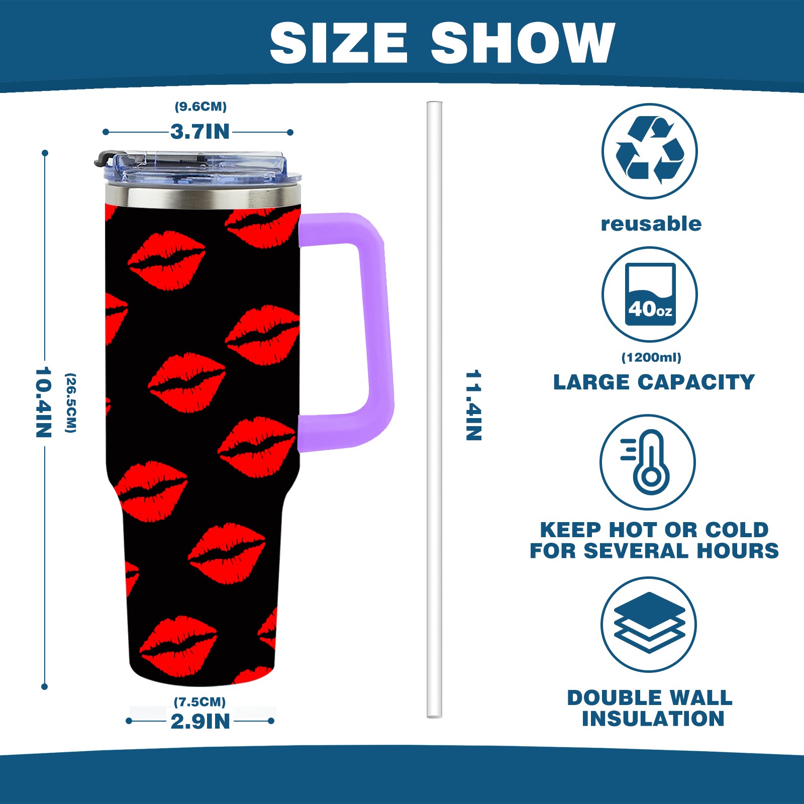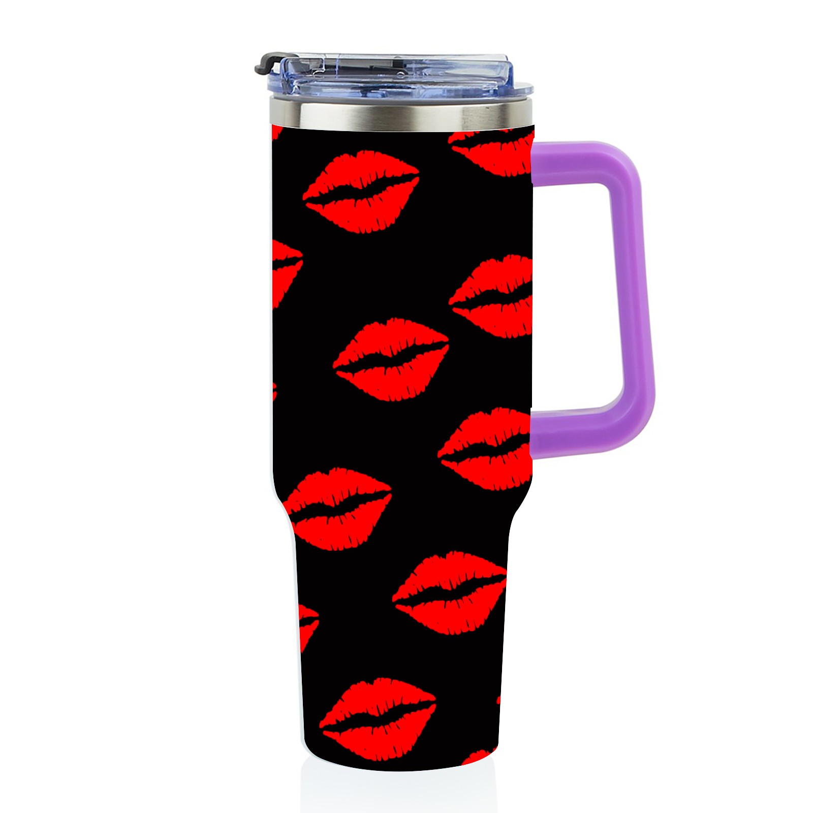 40oz 嘴唇款式4 thermos with lid and straw, leak-proof stainless steel, with handle, spill-proof bottle, convenient for travel(purple)