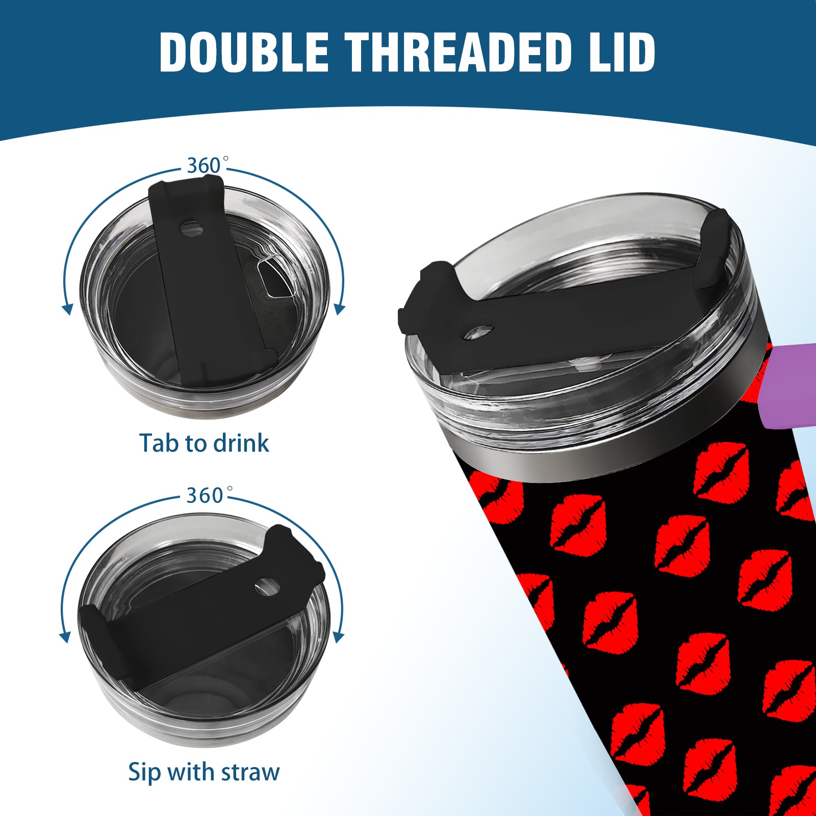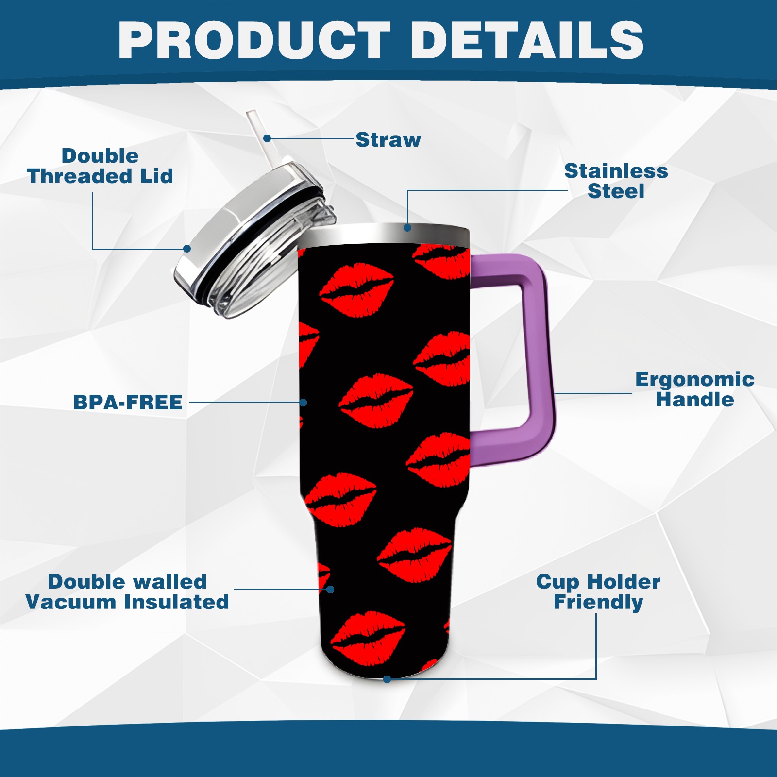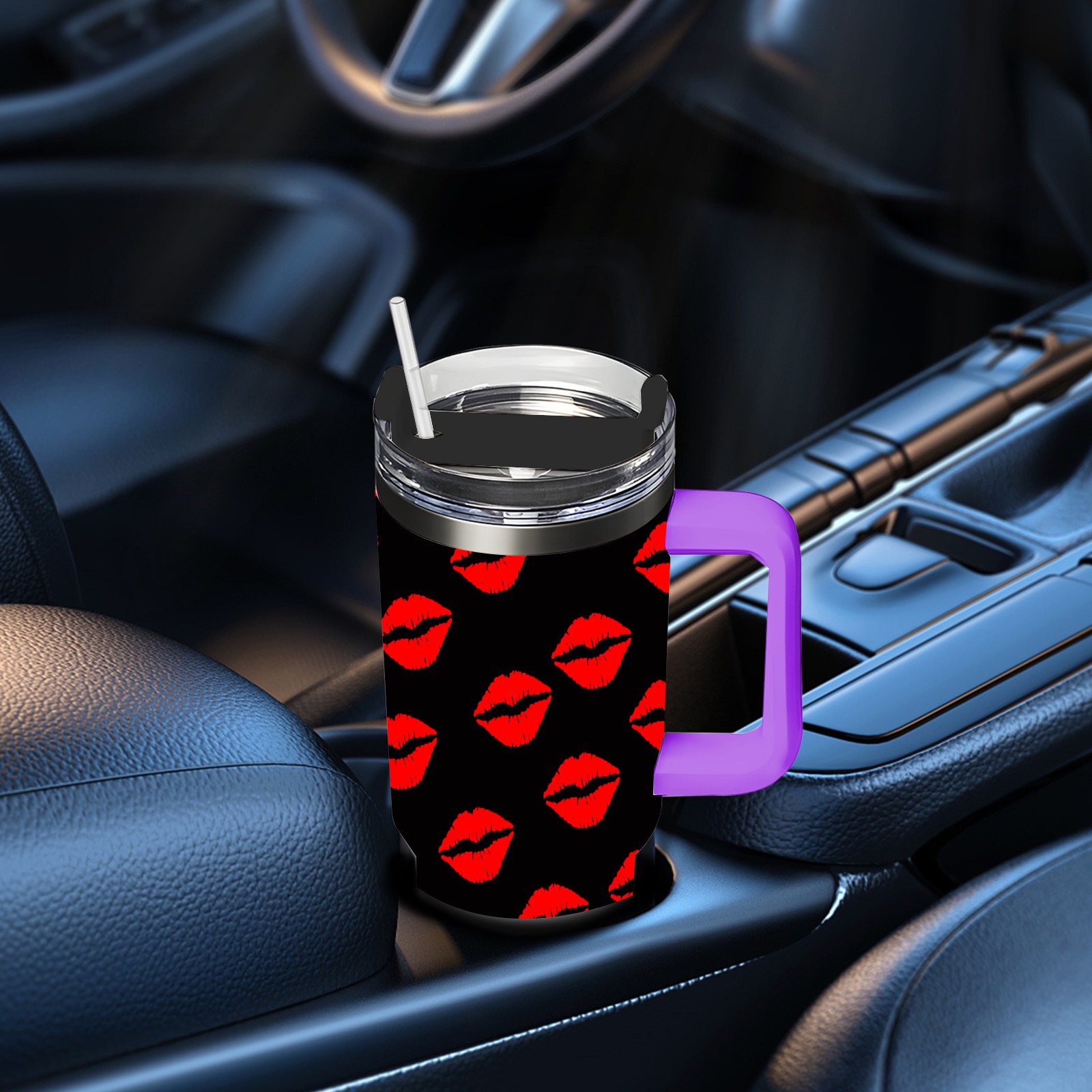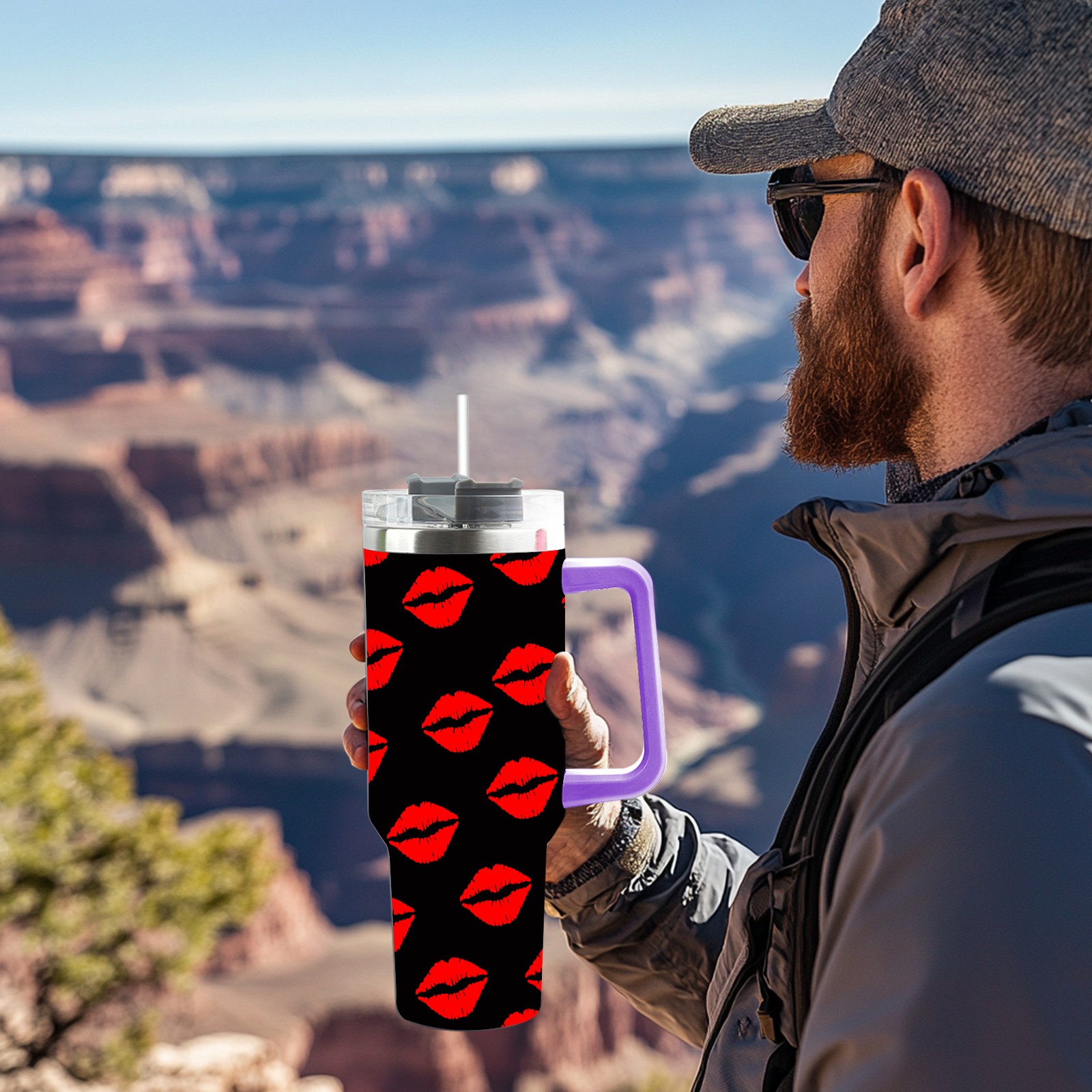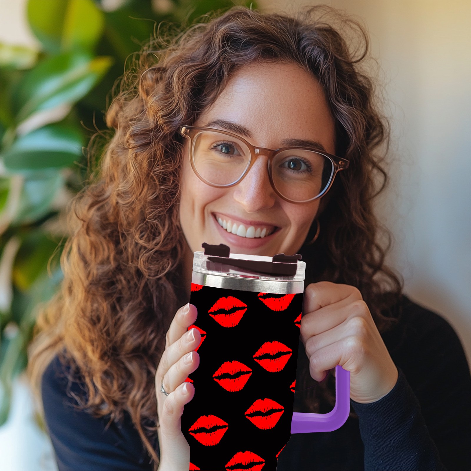 40oz 嘴唇款式4 thermos with lid and straw, leak-proof stainless steel, with handle, spill-proof bottle, convenient for travel(purple)