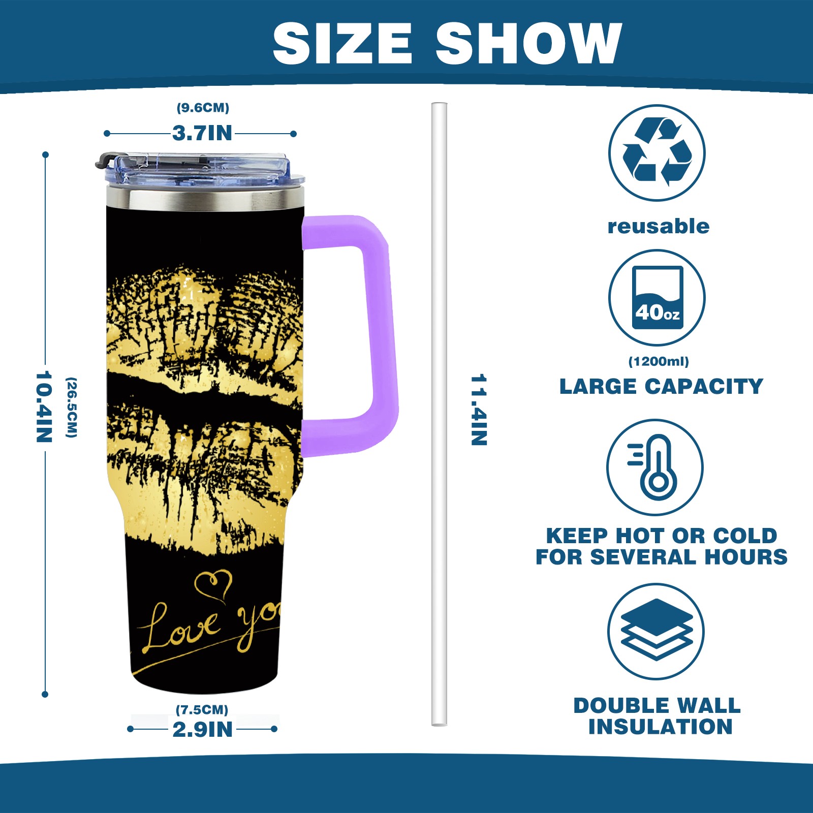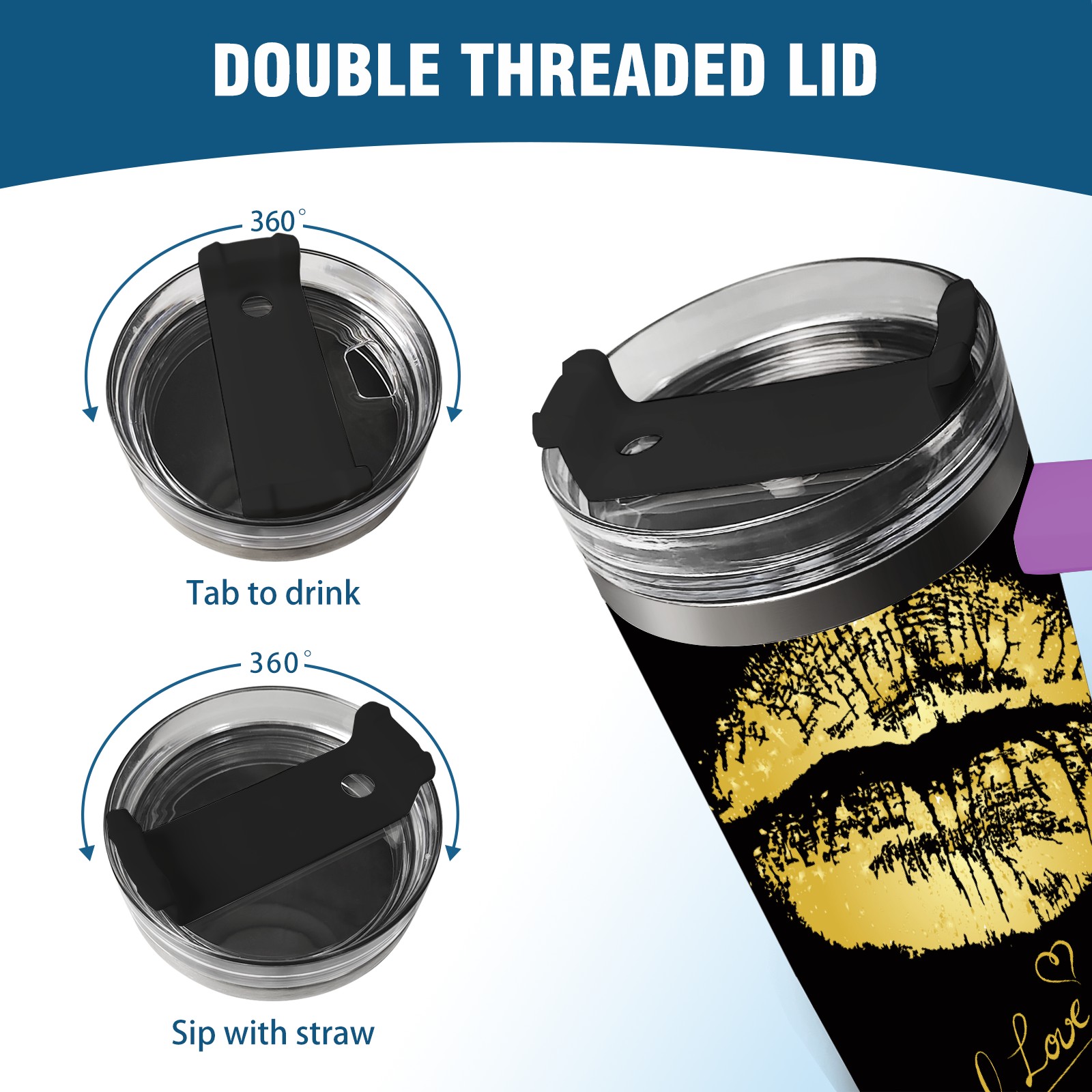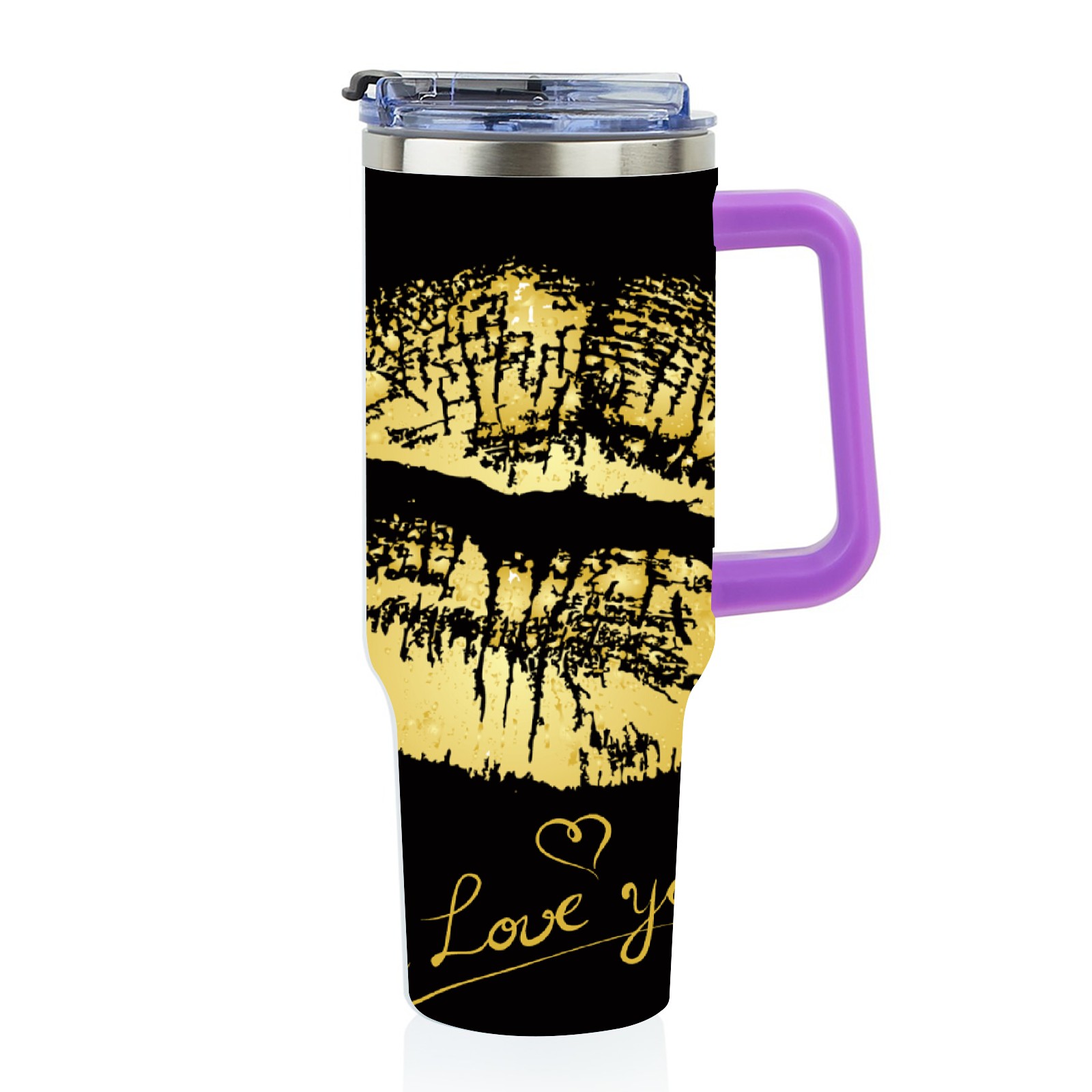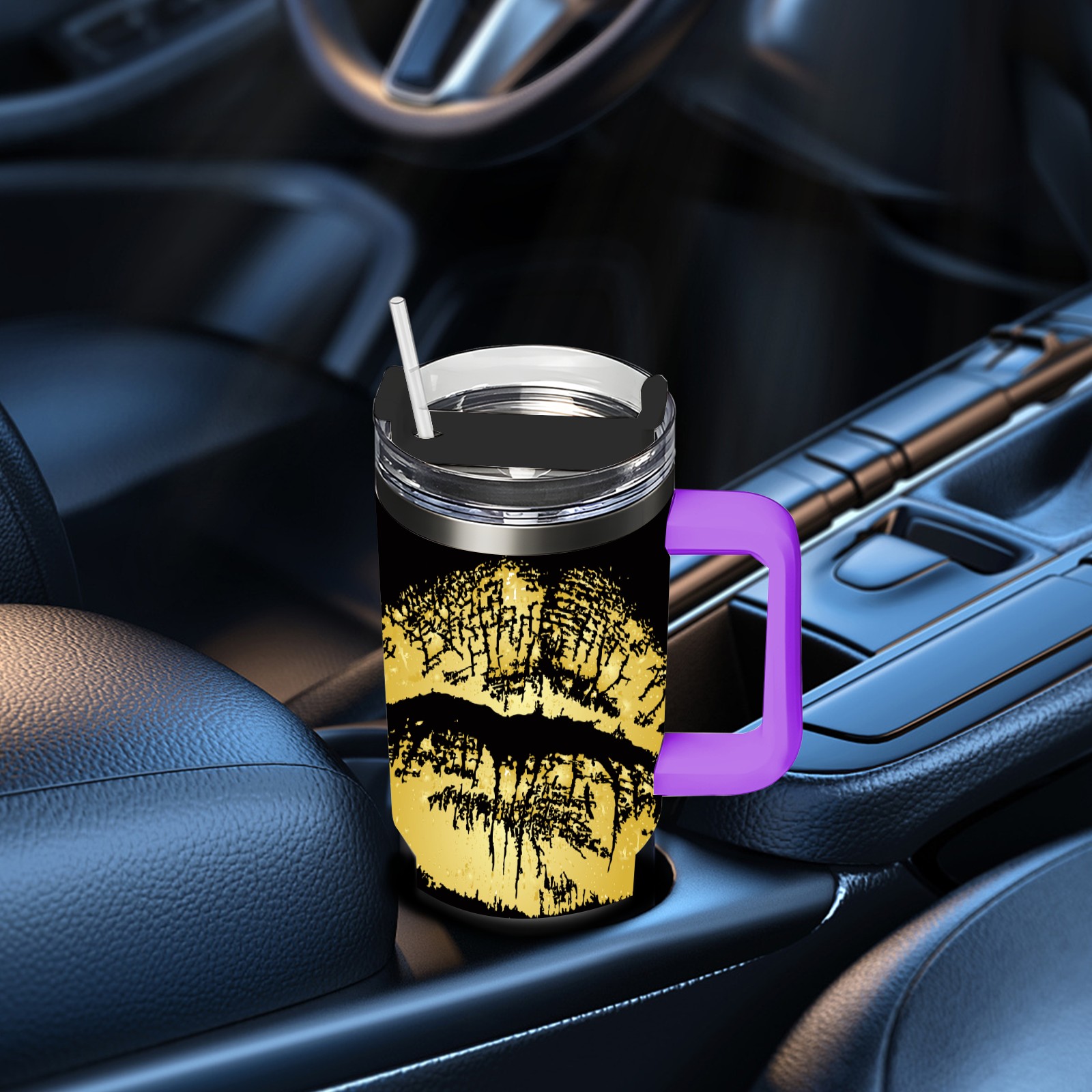 40oz 嘴唇款式2 thermos with lid and straw, leak-proof stainless steel, with handle, spill-proof bottle, convenient for travel(purple)