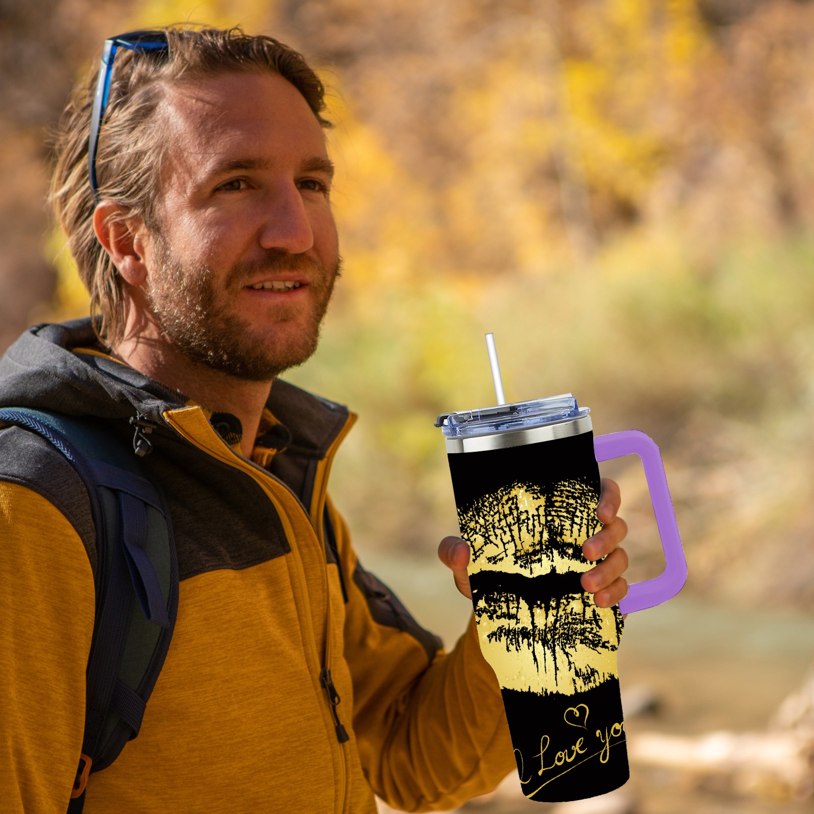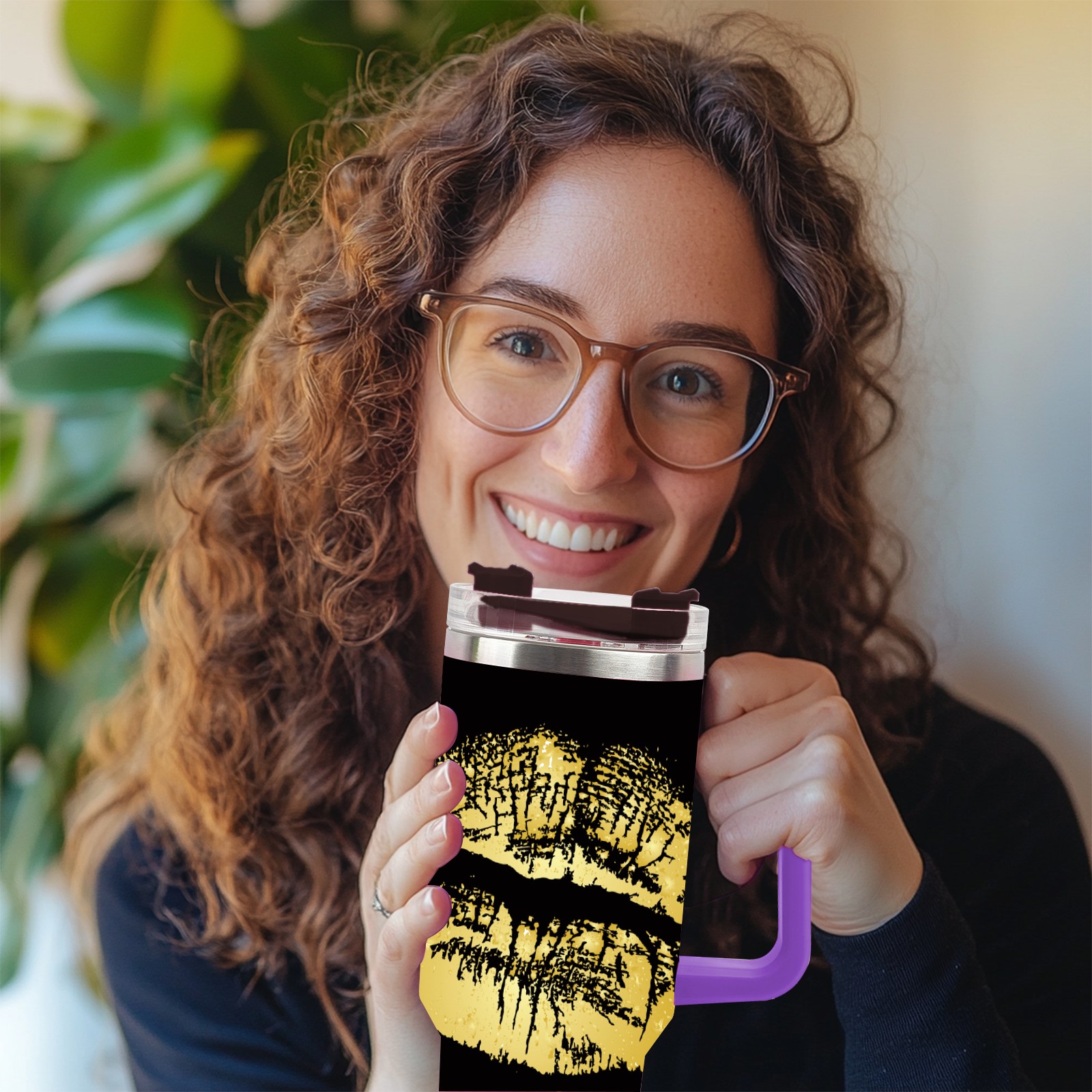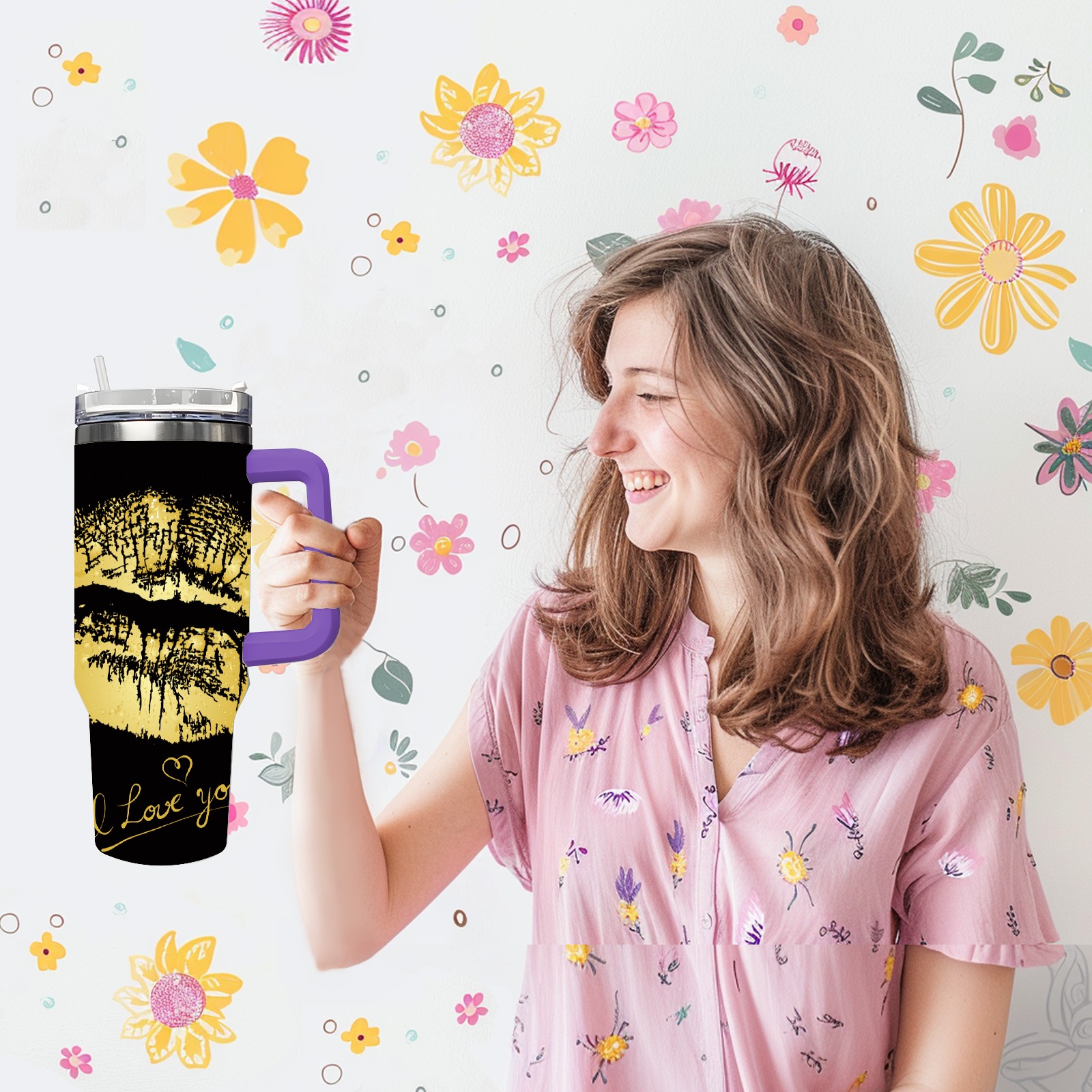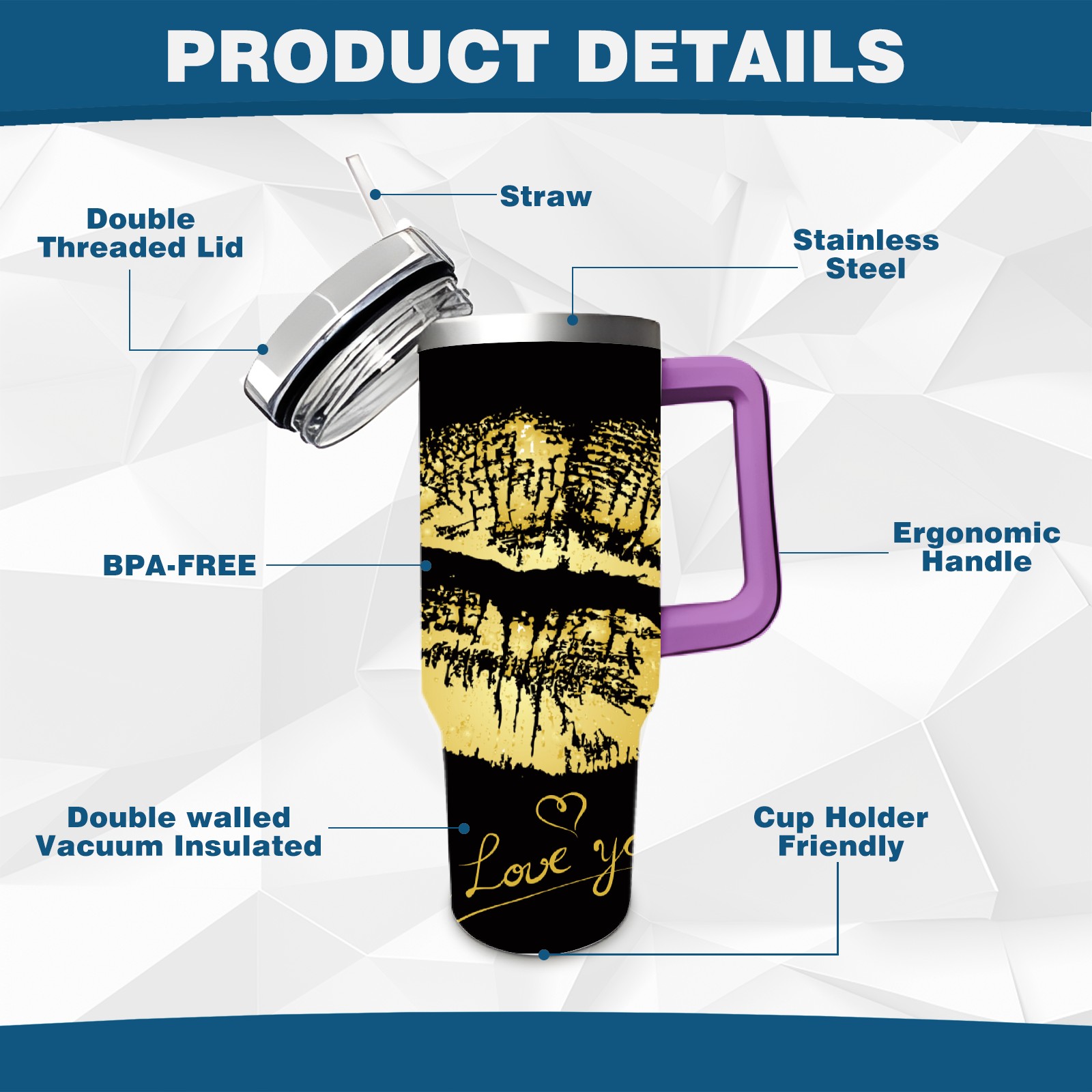 40oz 嘴唇款式2 thermos with lid and straw, leak-proof stainless steel, with handle, spill-proof bottle, convenient for travel(purple)