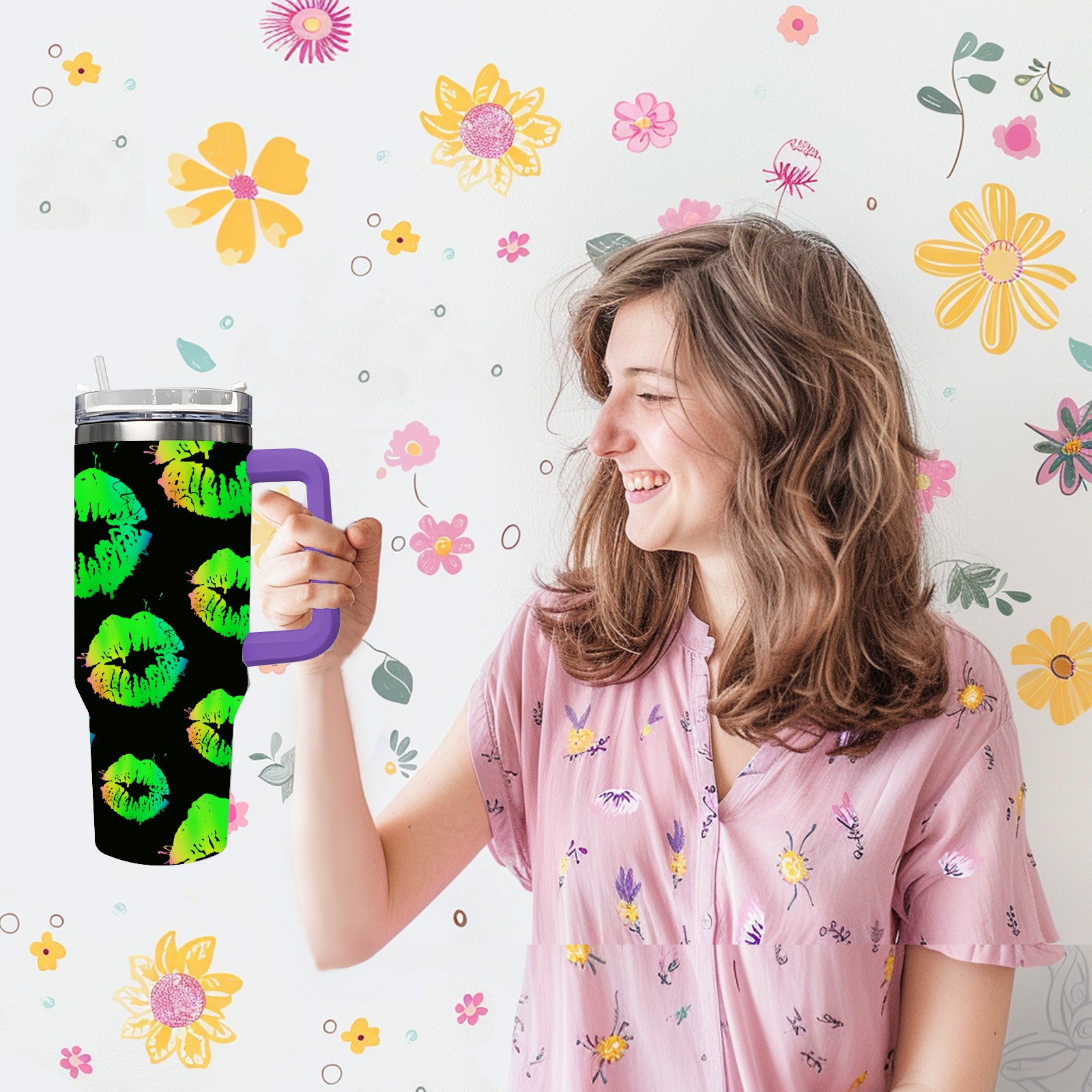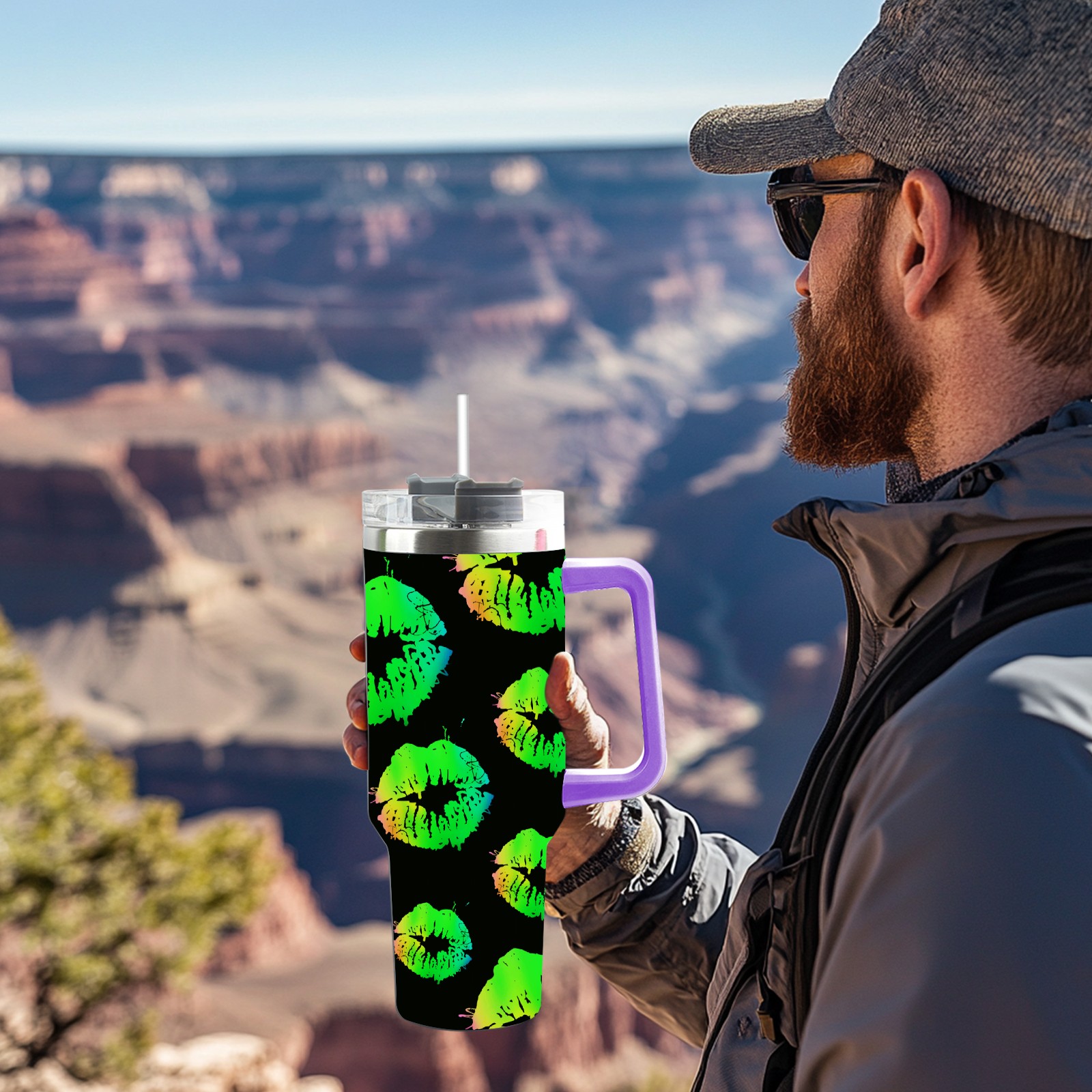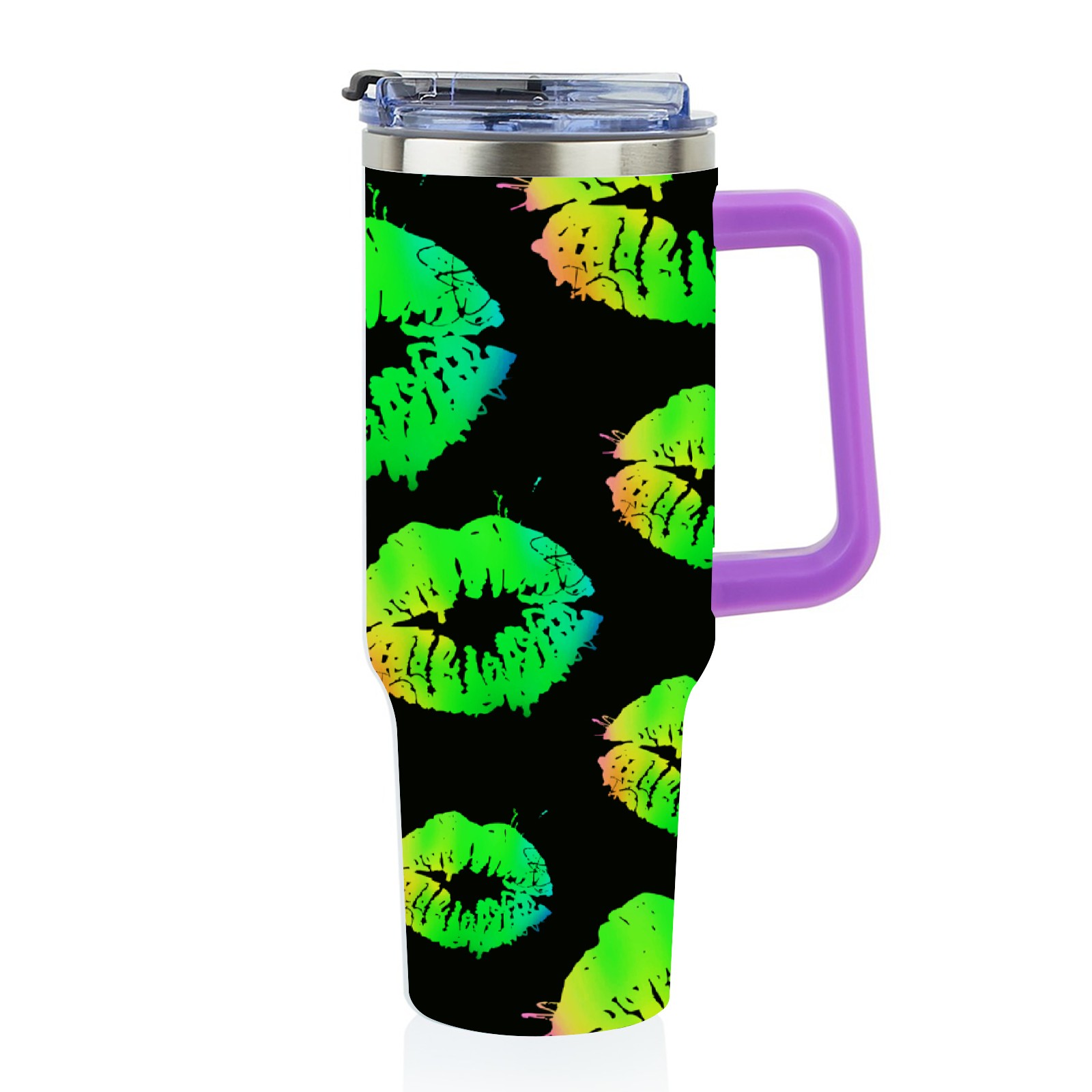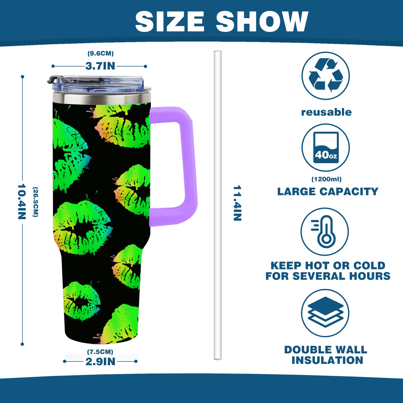 40oz 嘴唇2 thermos with lid and straw, leak-proof stainless steel, with handle, spill-proof bottle, convenient for travel(purple)