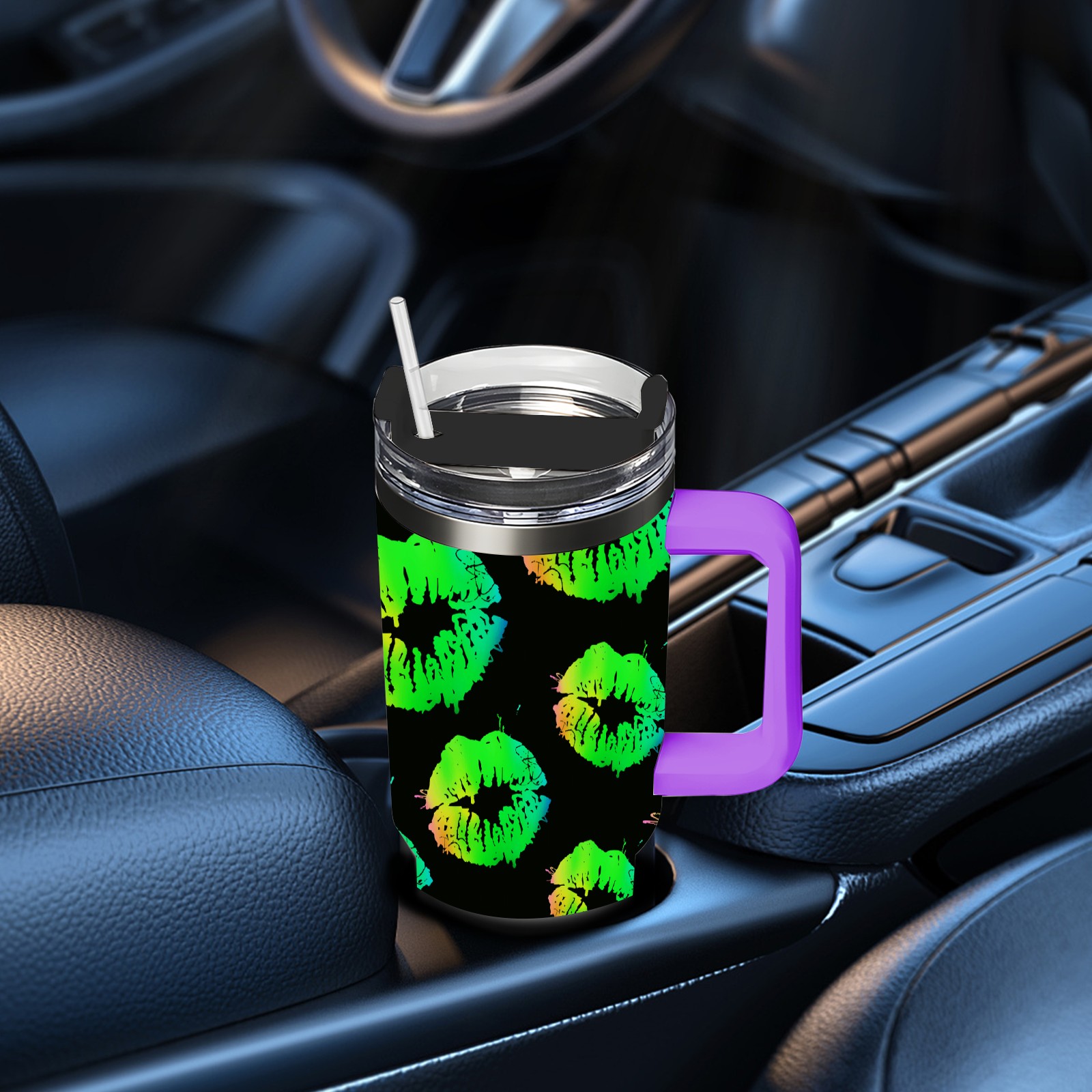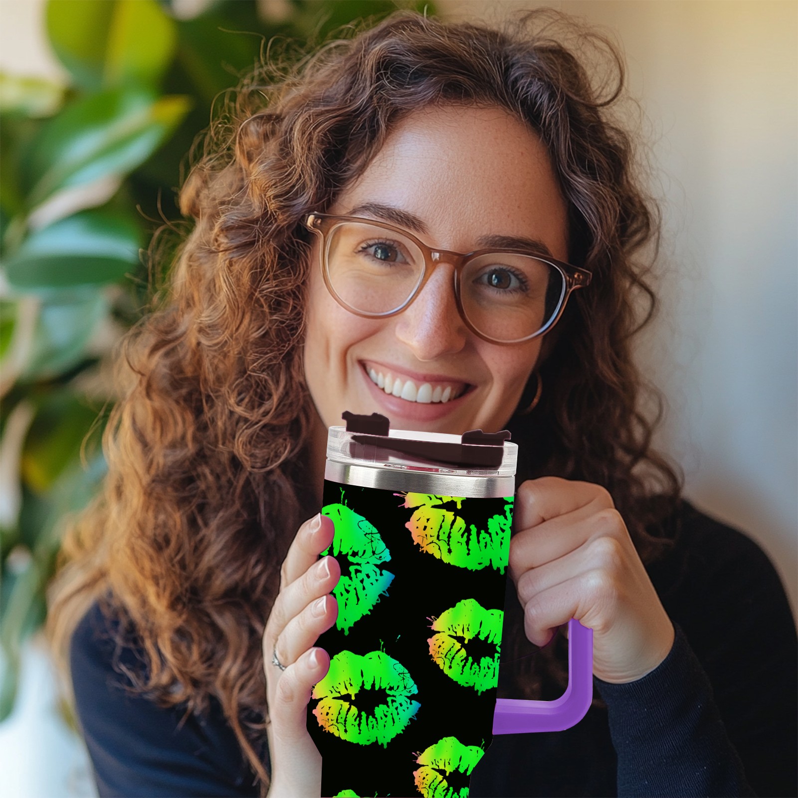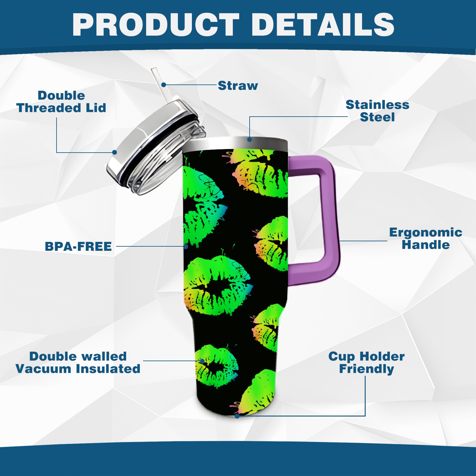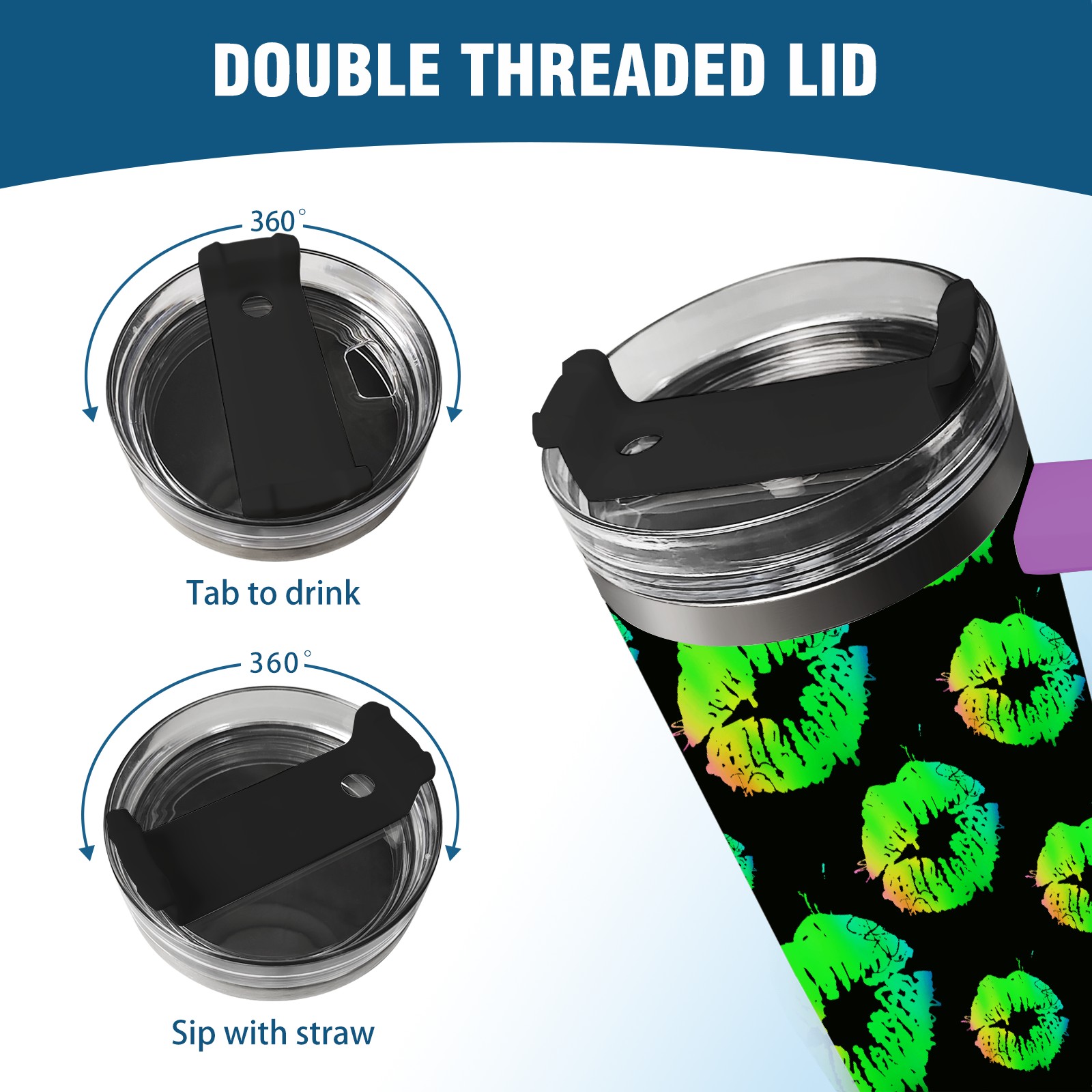 40oz 嘴唇2 thermos with lid and straw, leak-proof stainless steel, with handle, spill-proof bottle, convenient for travel(purple)
