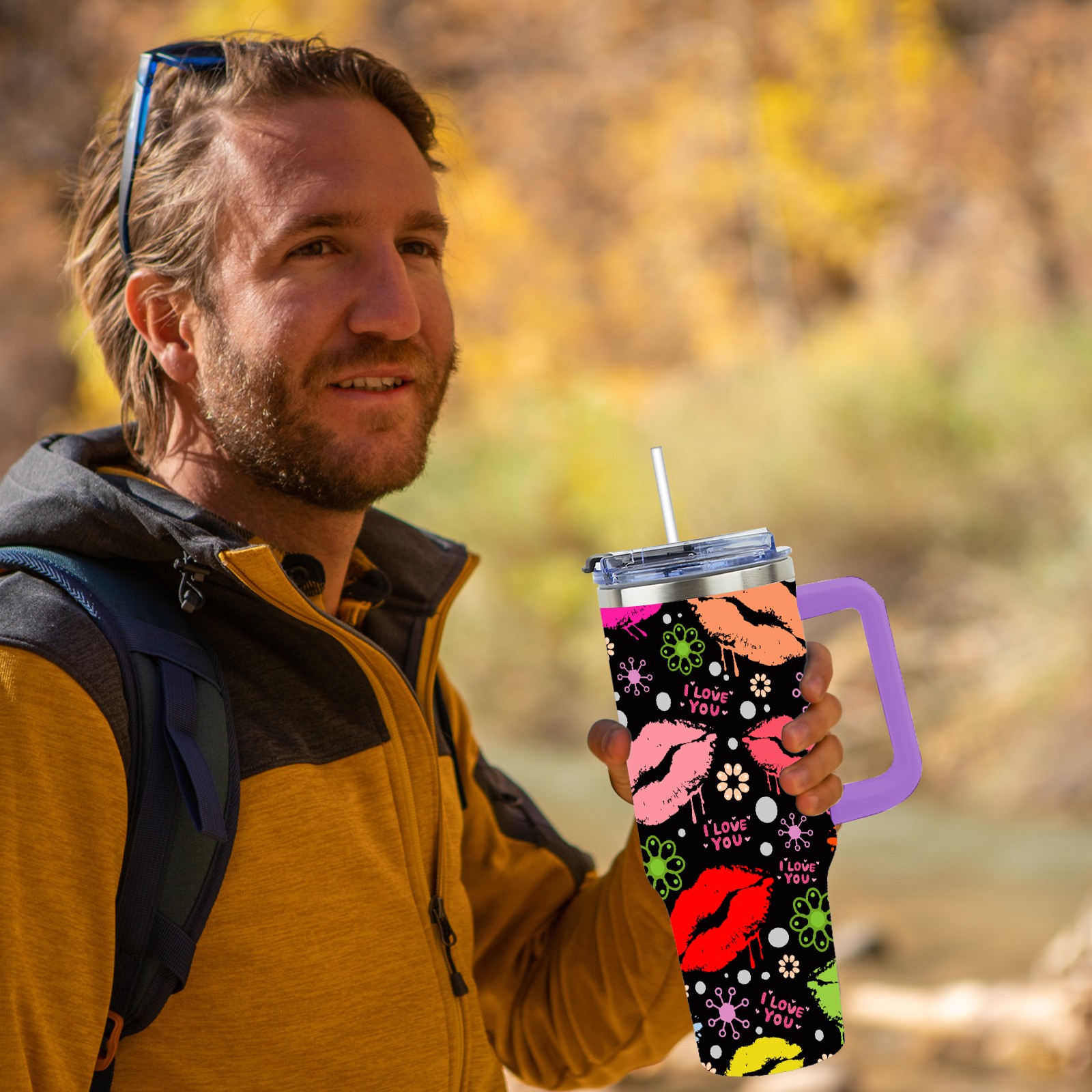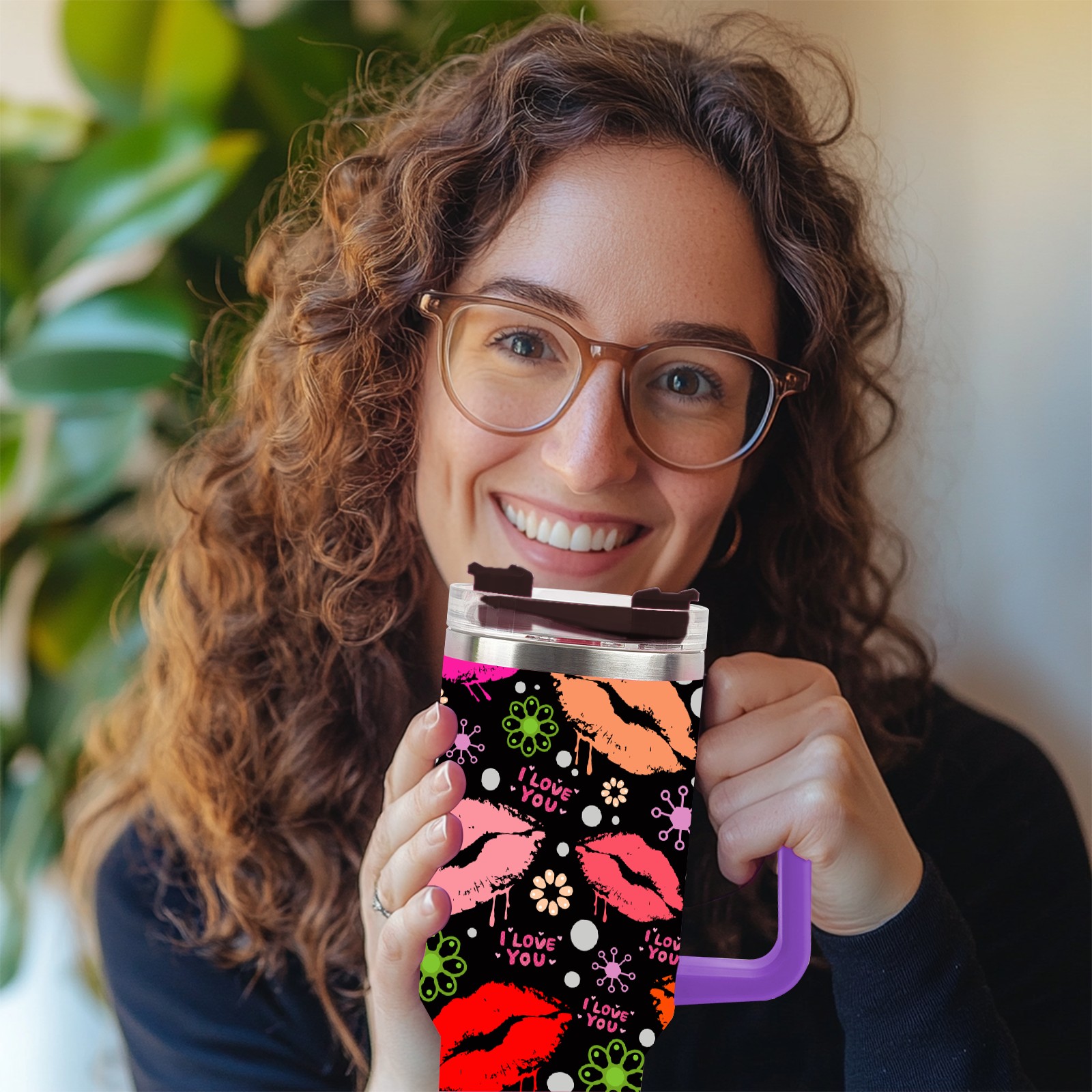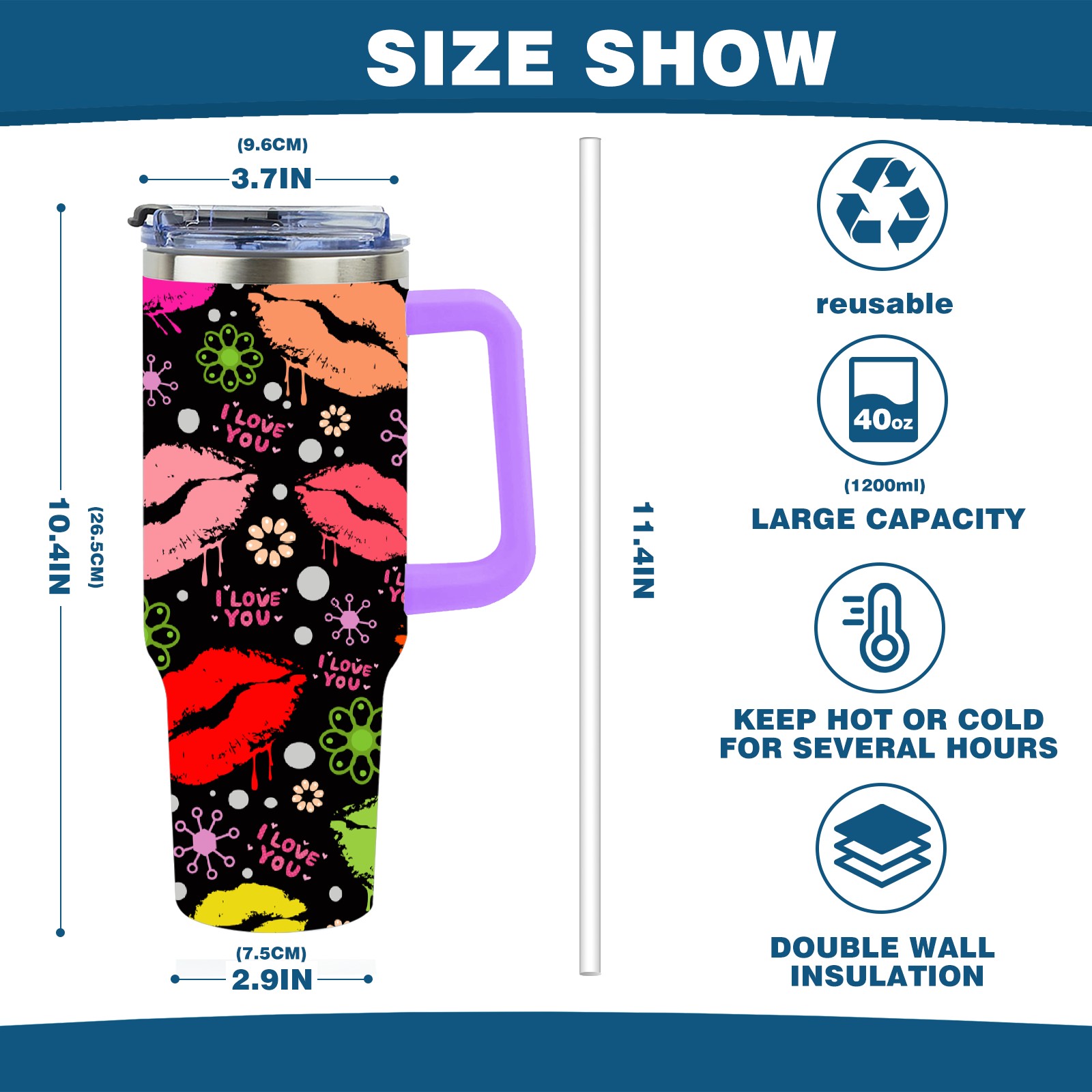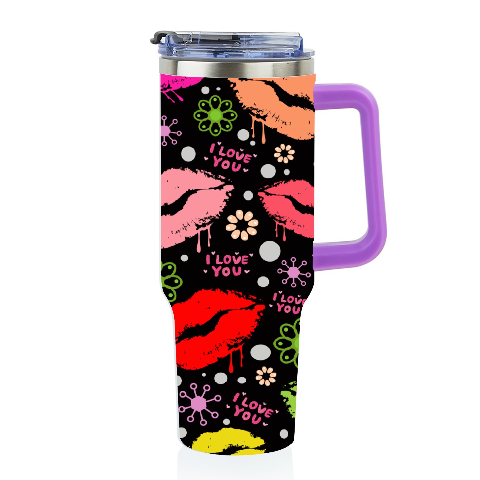 40oz 嘴唇款式1 thermos with lid and straw, leak-proof stainless steel, with handle, spill-proof bottle, convenient for travel(purple)