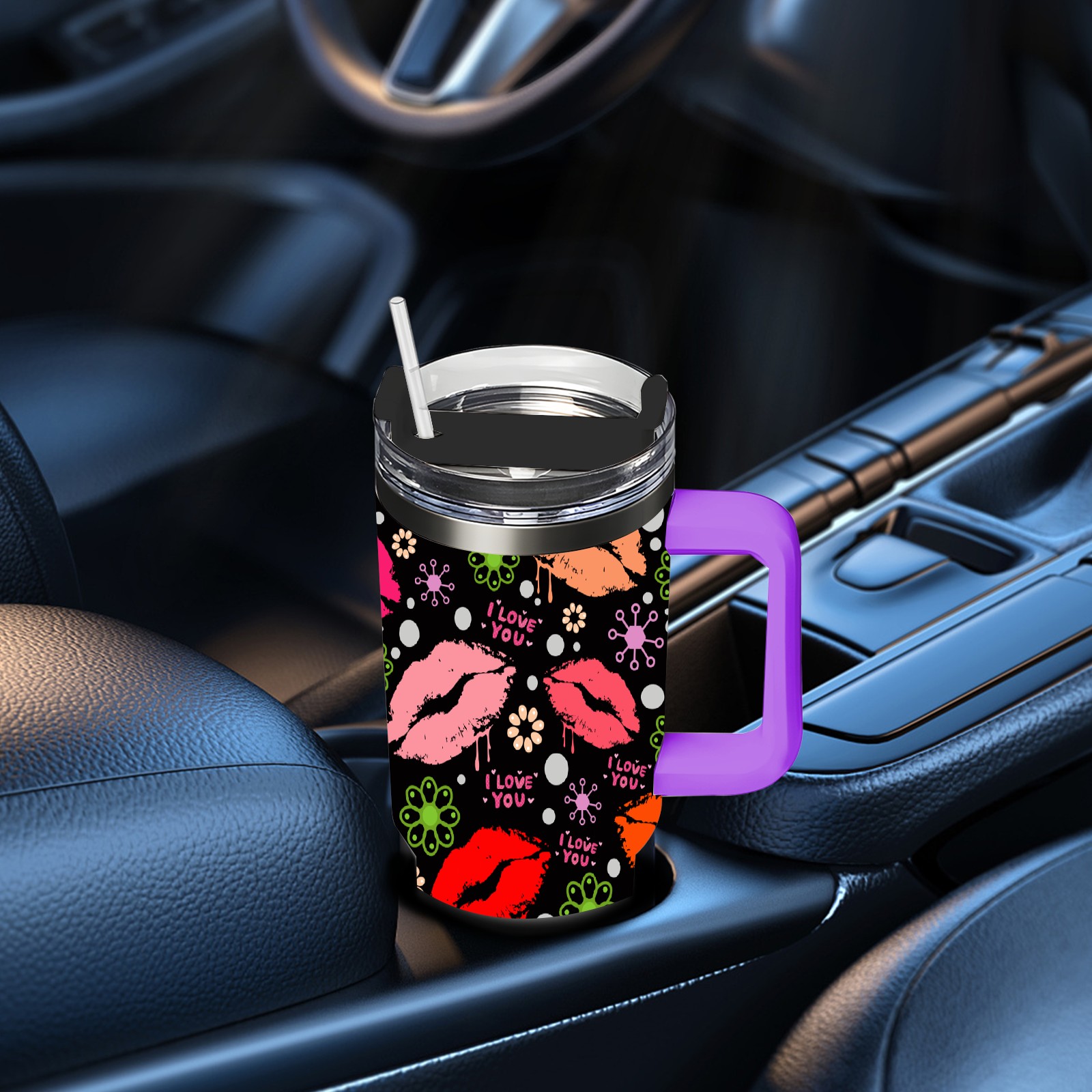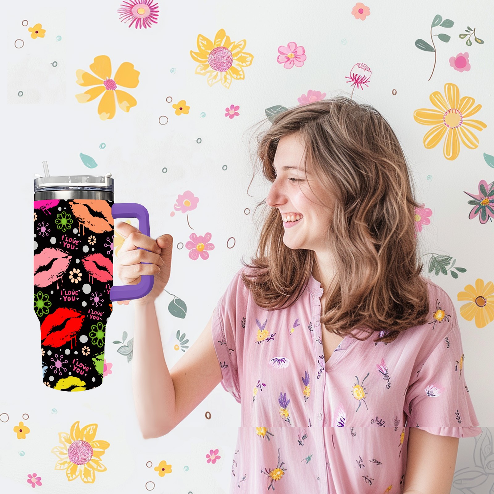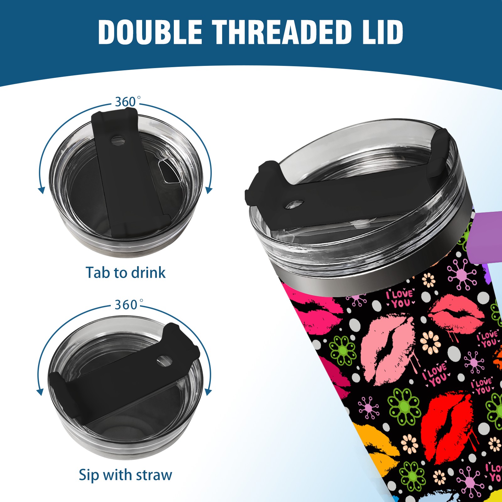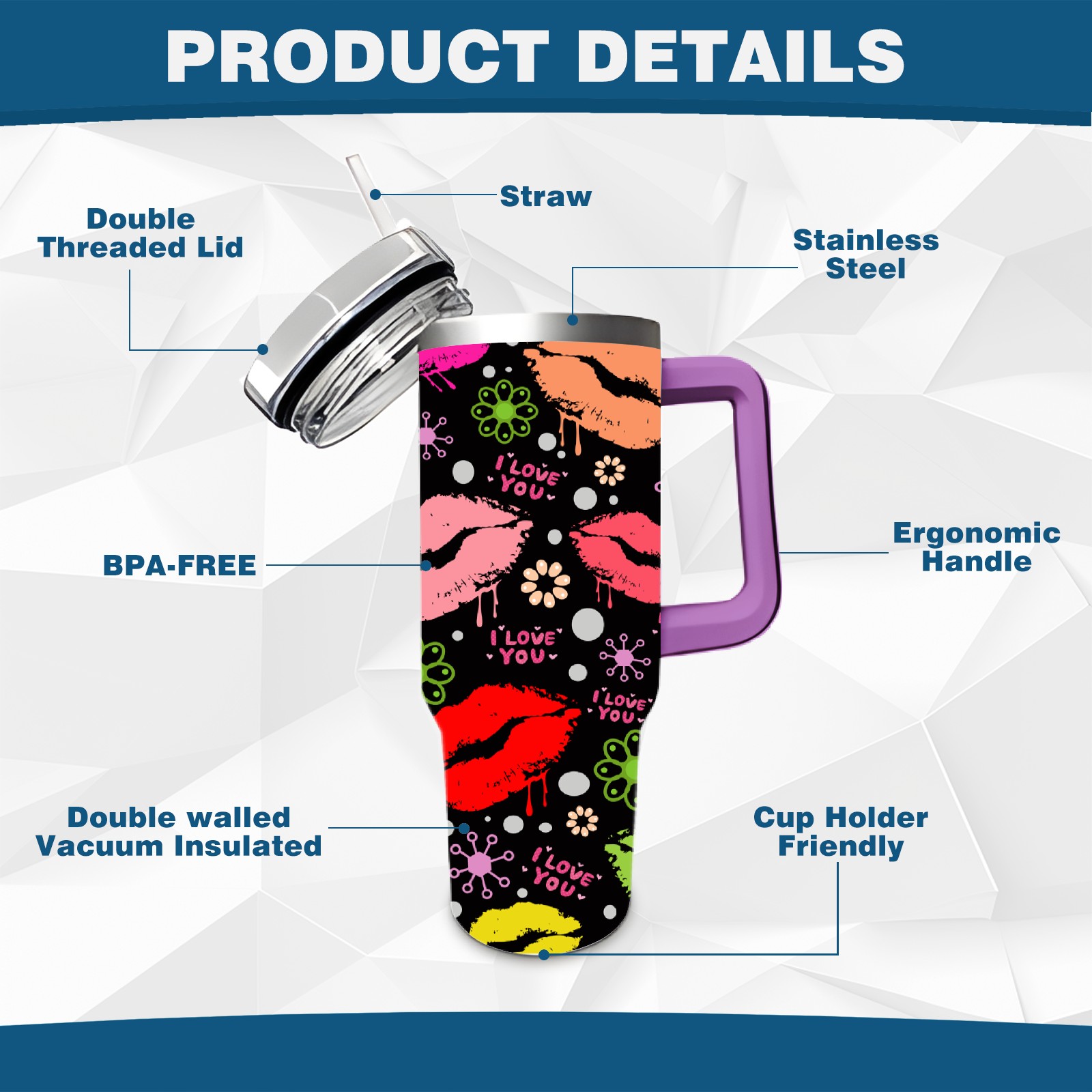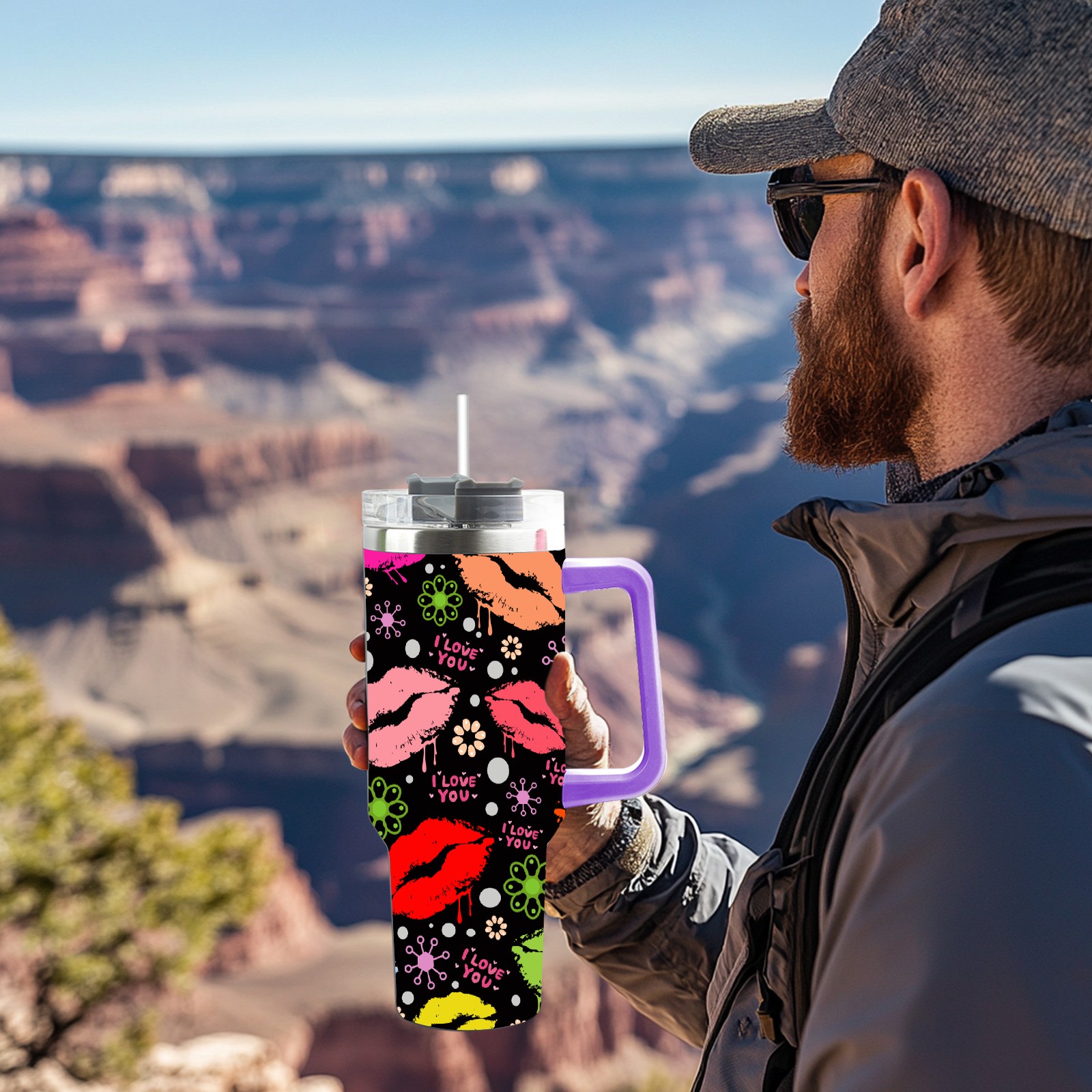 40oz 嘴唇款式1 thermos with lid and straw, leak-proof stainless steel, with handle, spill-proof bottle, convenient for travel(purple)