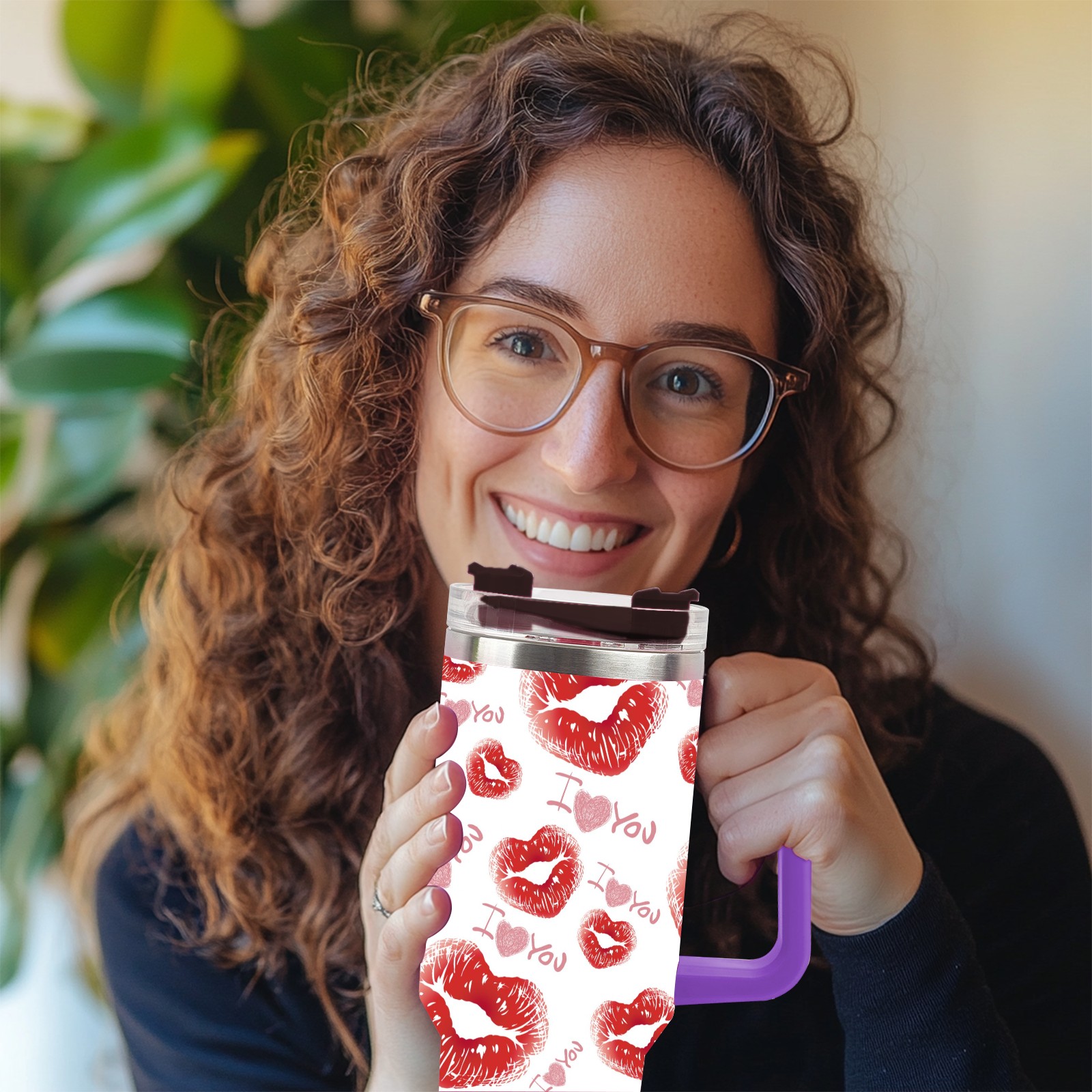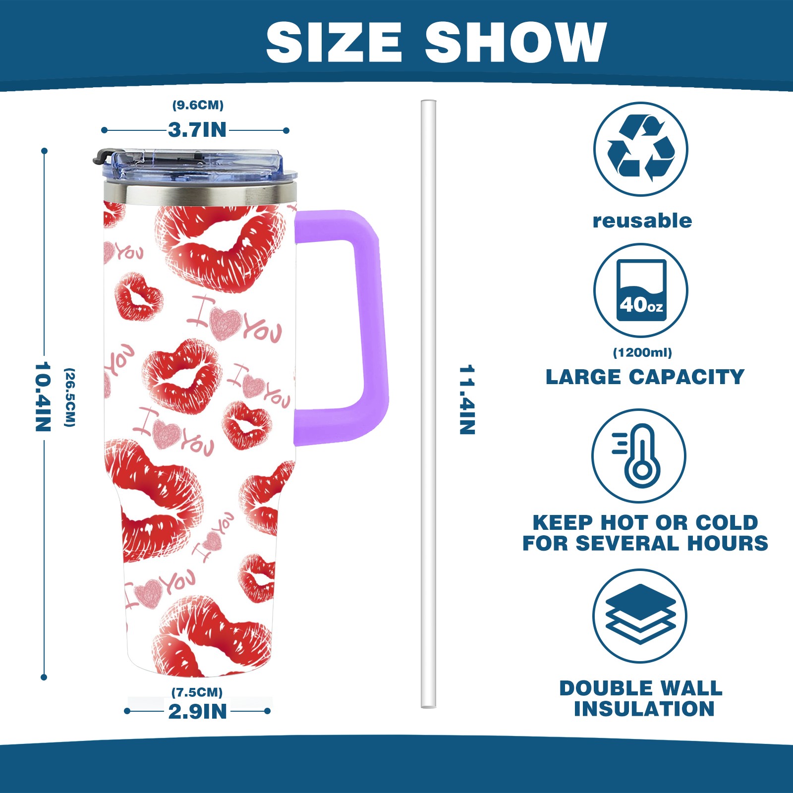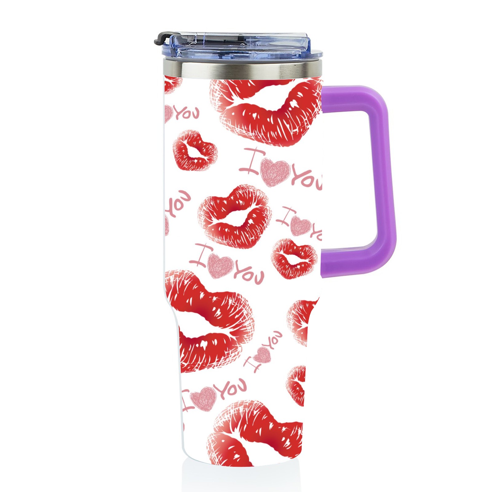 40oz 嘴唇款式 thermos with lid and straw, leak-proof stainless steel, with handle, spill-proof bottle, convenient for travel(purple)