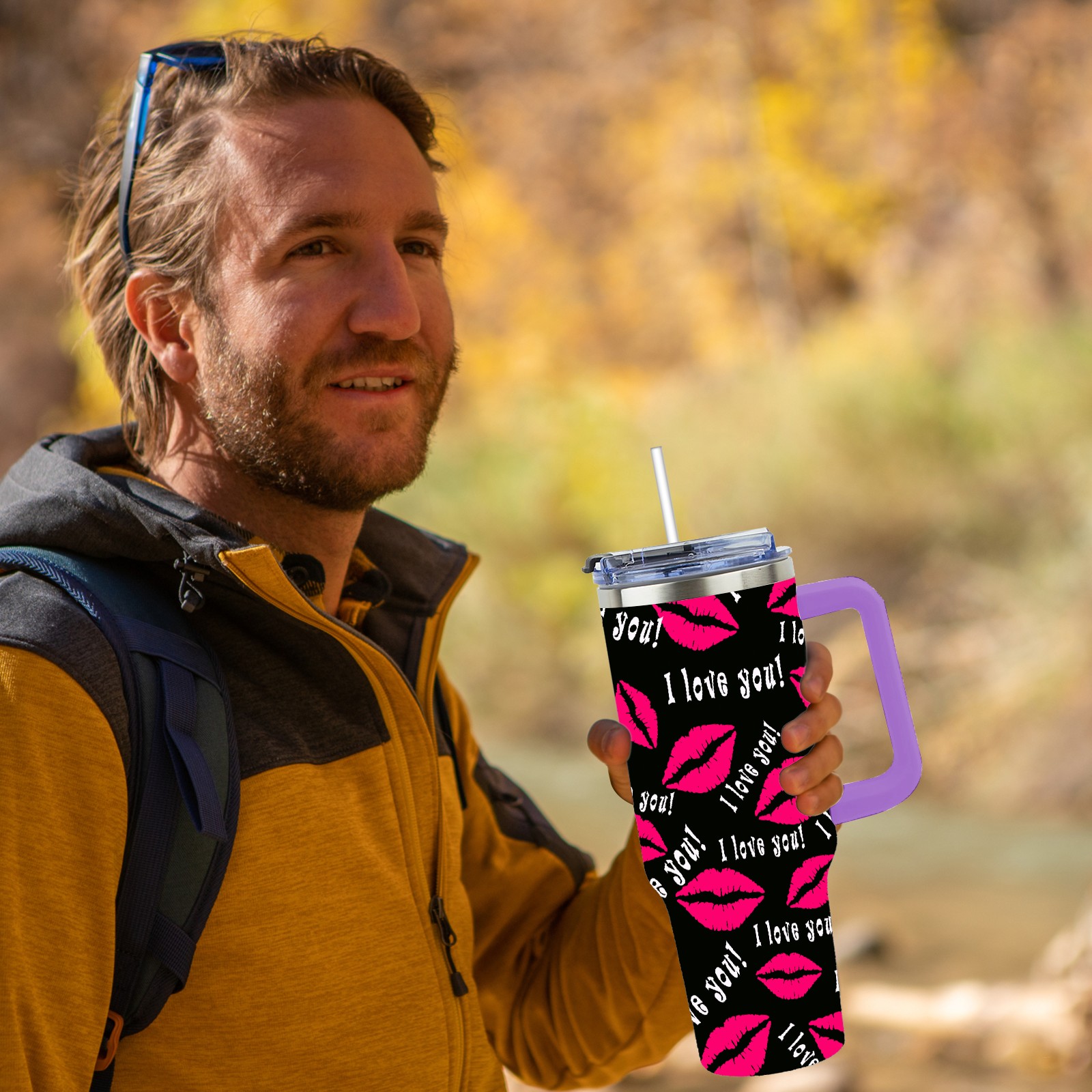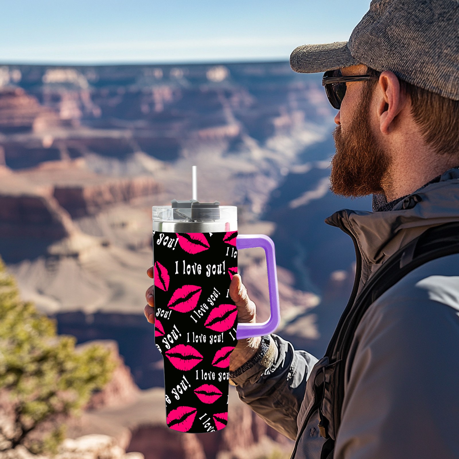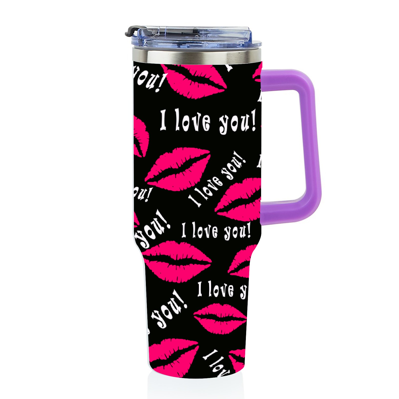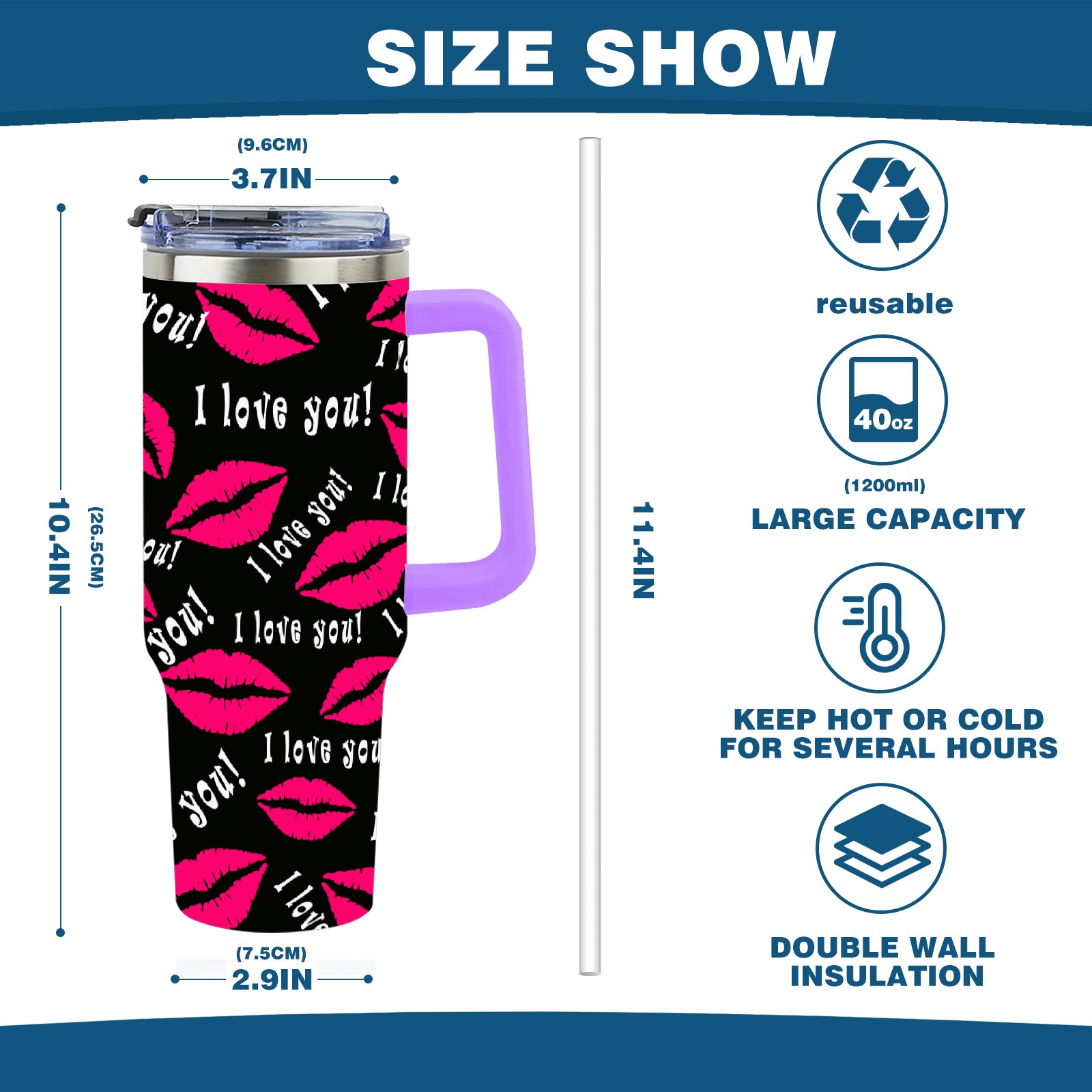40oz 嘴唇 thermos with lid and straw, leak-proof stainless steel, with handle, spill-proof bottle, convenient for travel(purple)