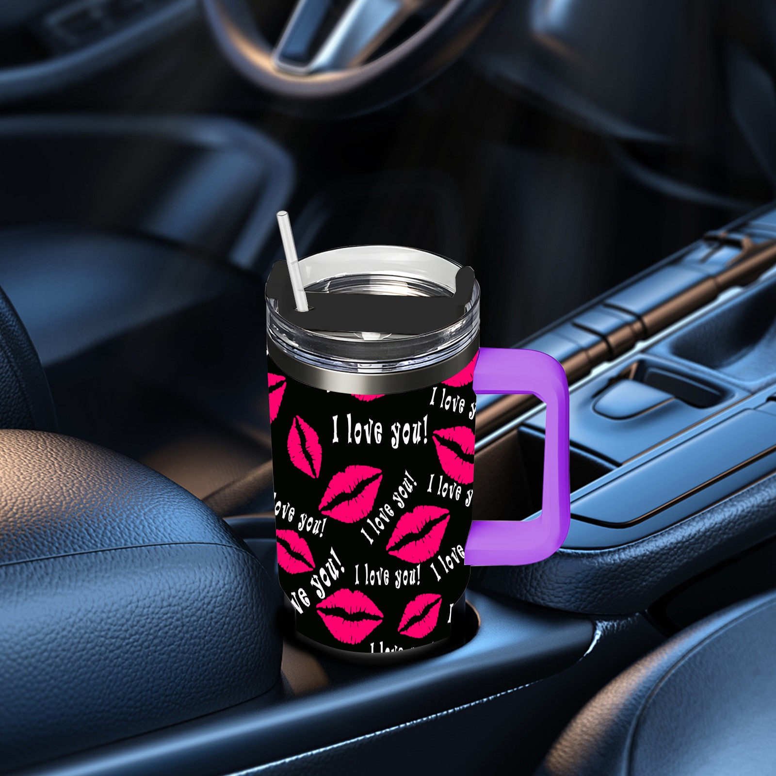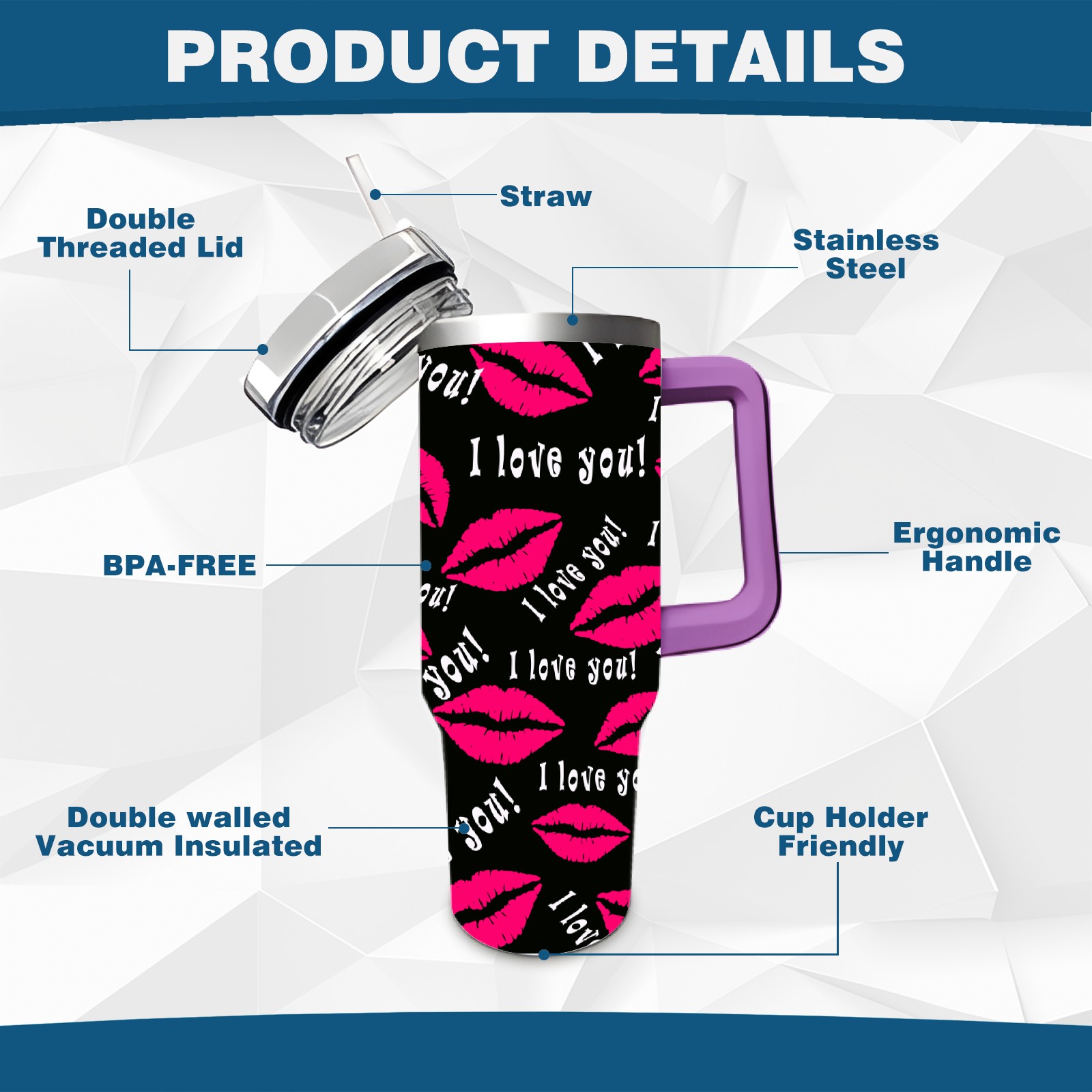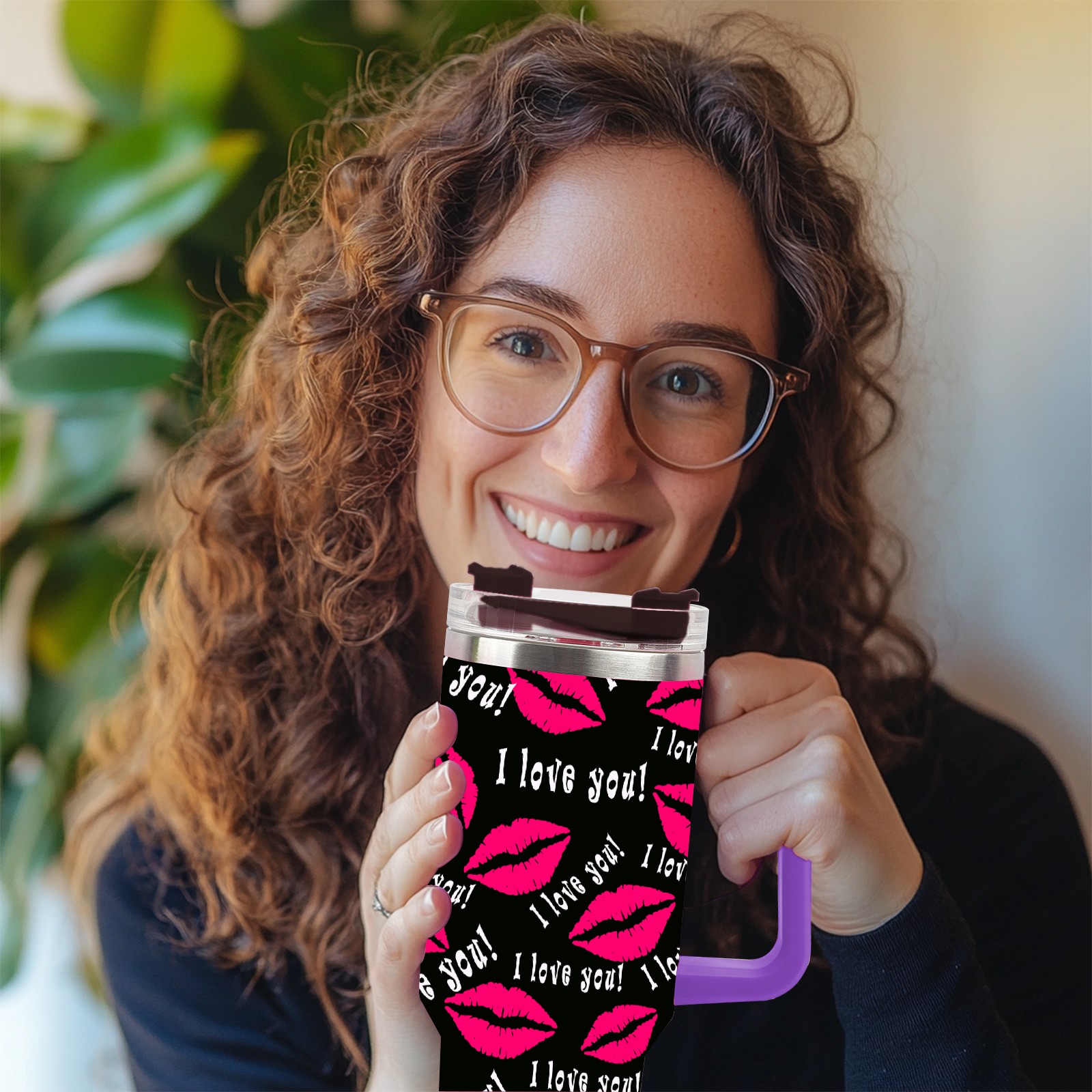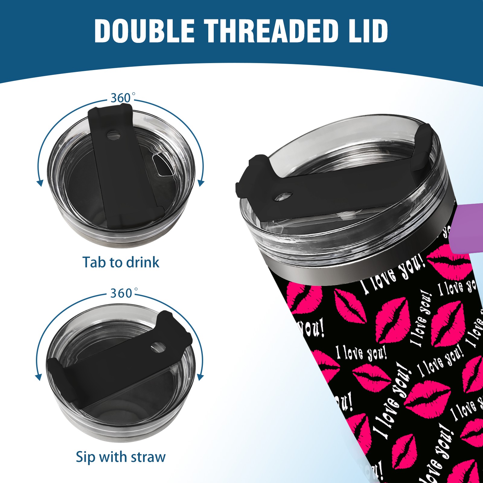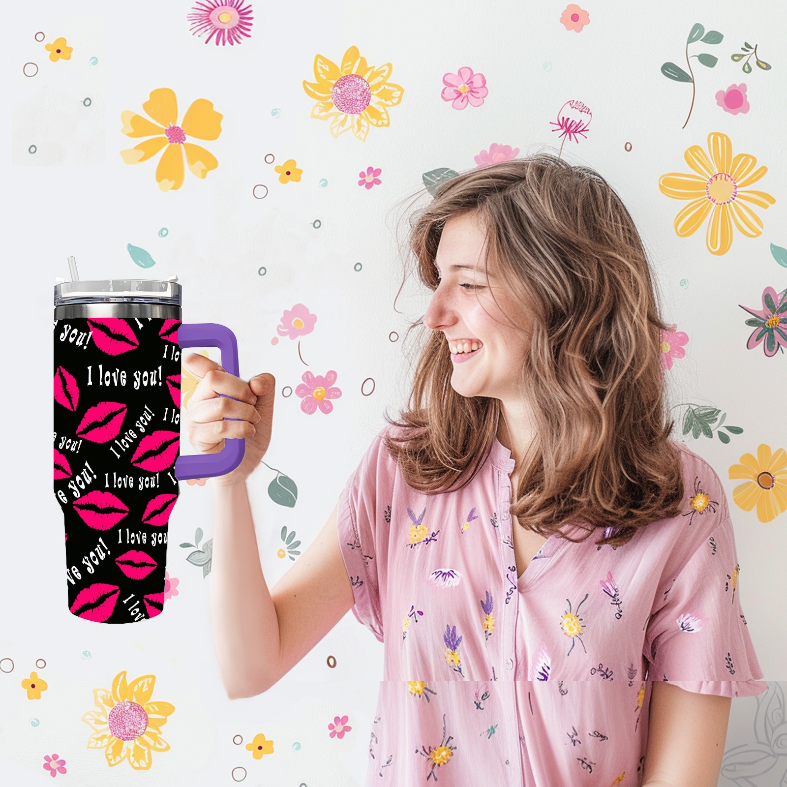 40oz 嘴唇 thermos with lid and straw, leak-proof stainless steel, with handle, spill-proof bottle, convenient for travel(purple)