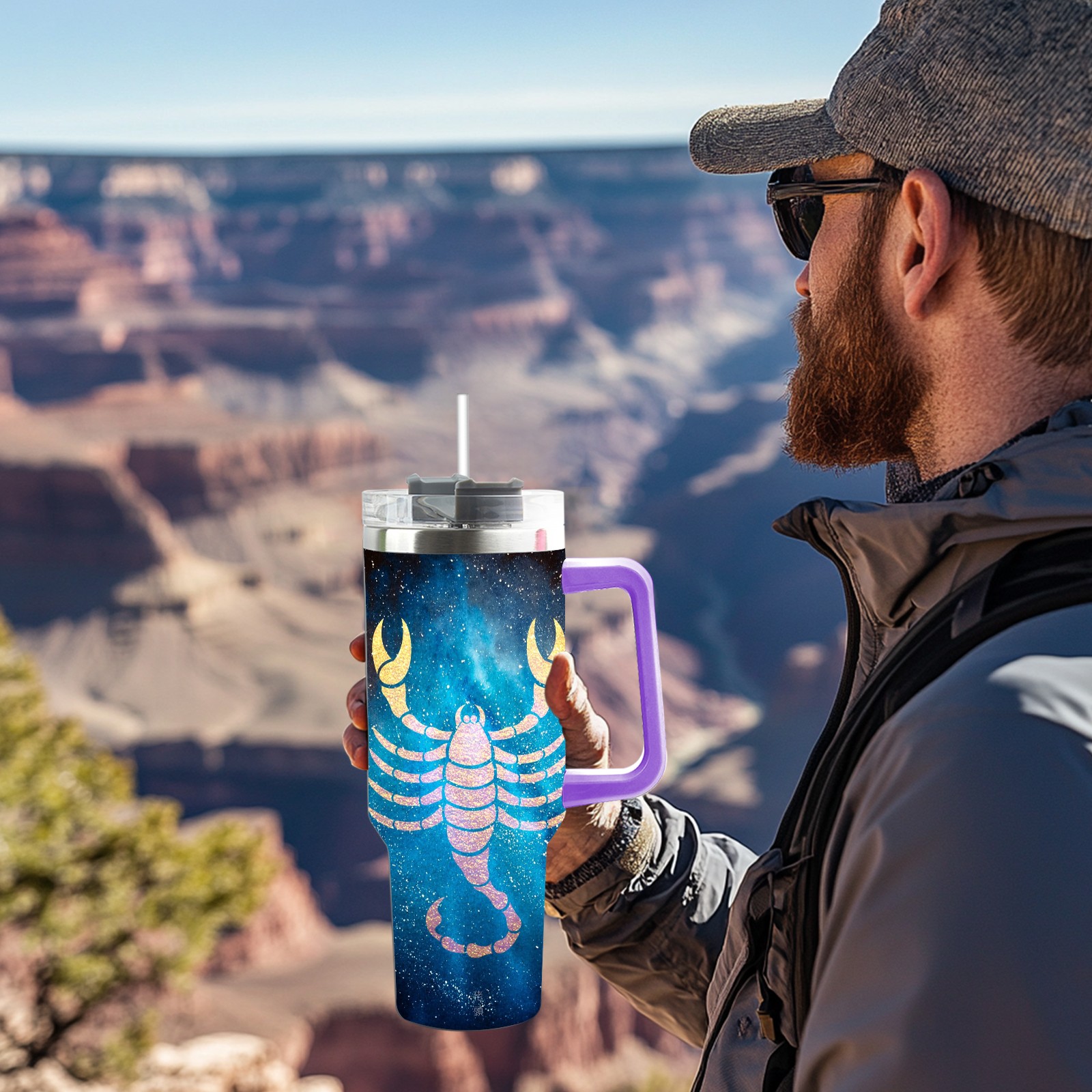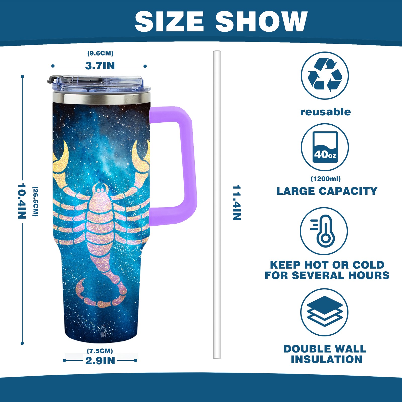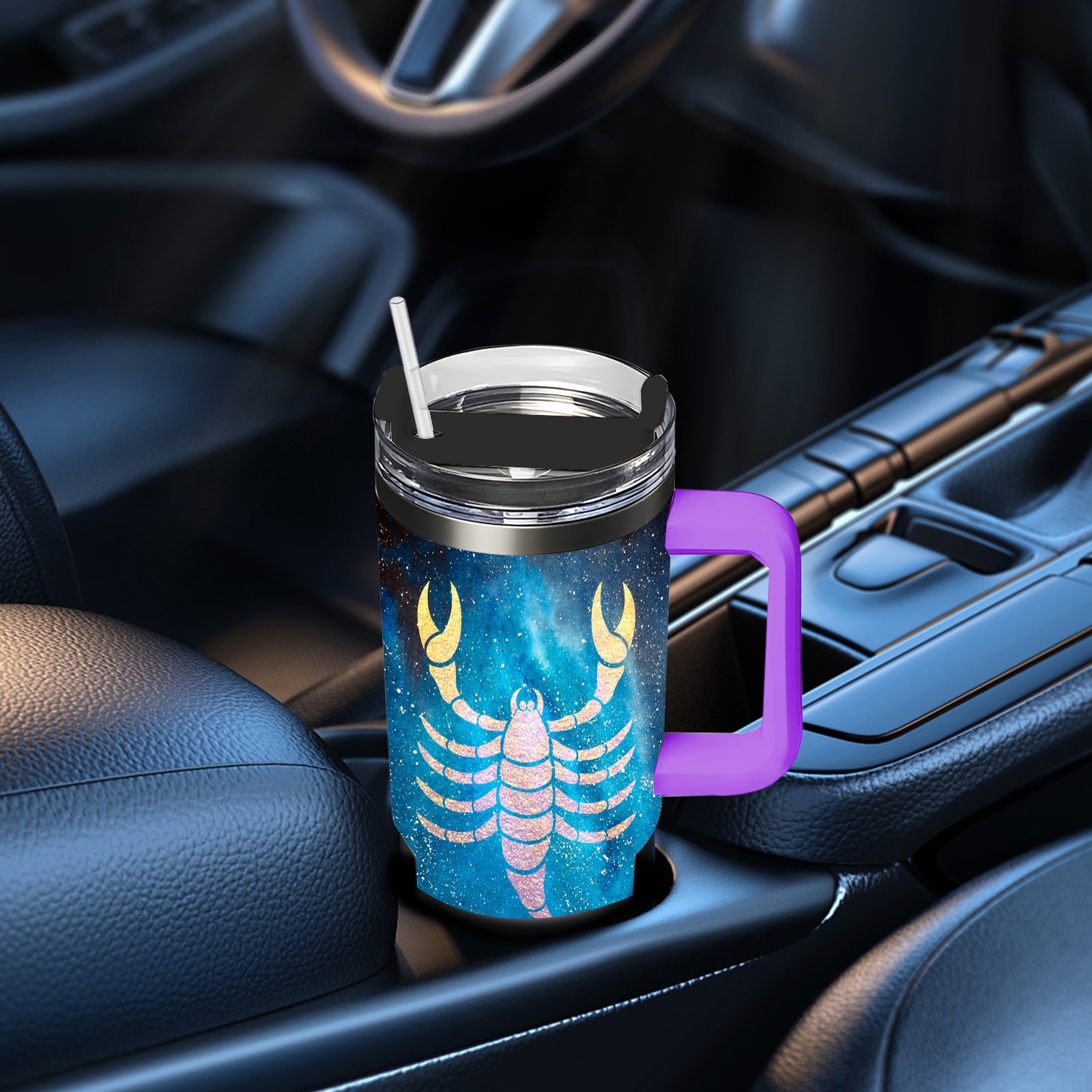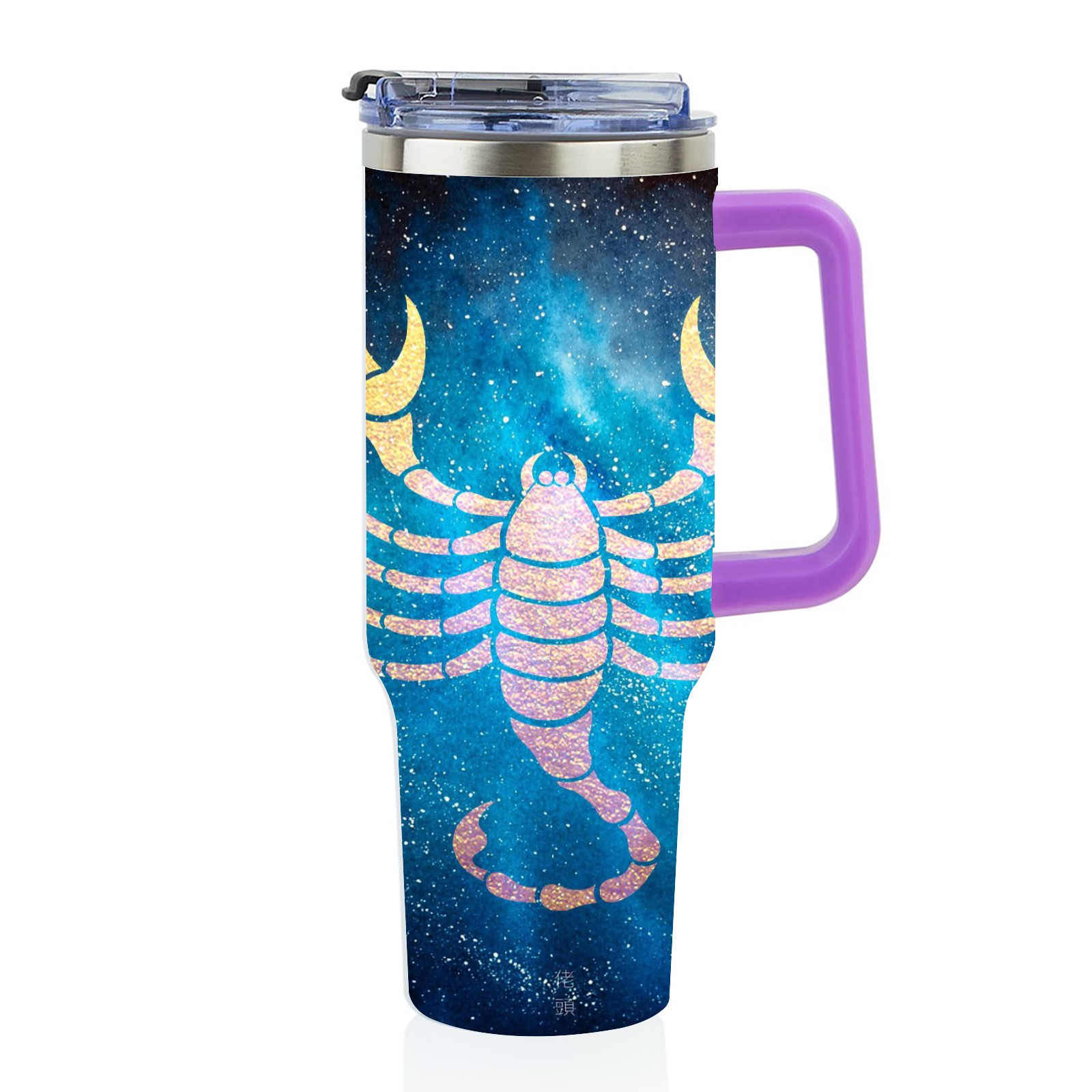 40oz 十二星座 天蝎座 thermos with lid and straw, leak-proof stainless steel, with handle, spill-proof bottle, convenient for travel(purple)