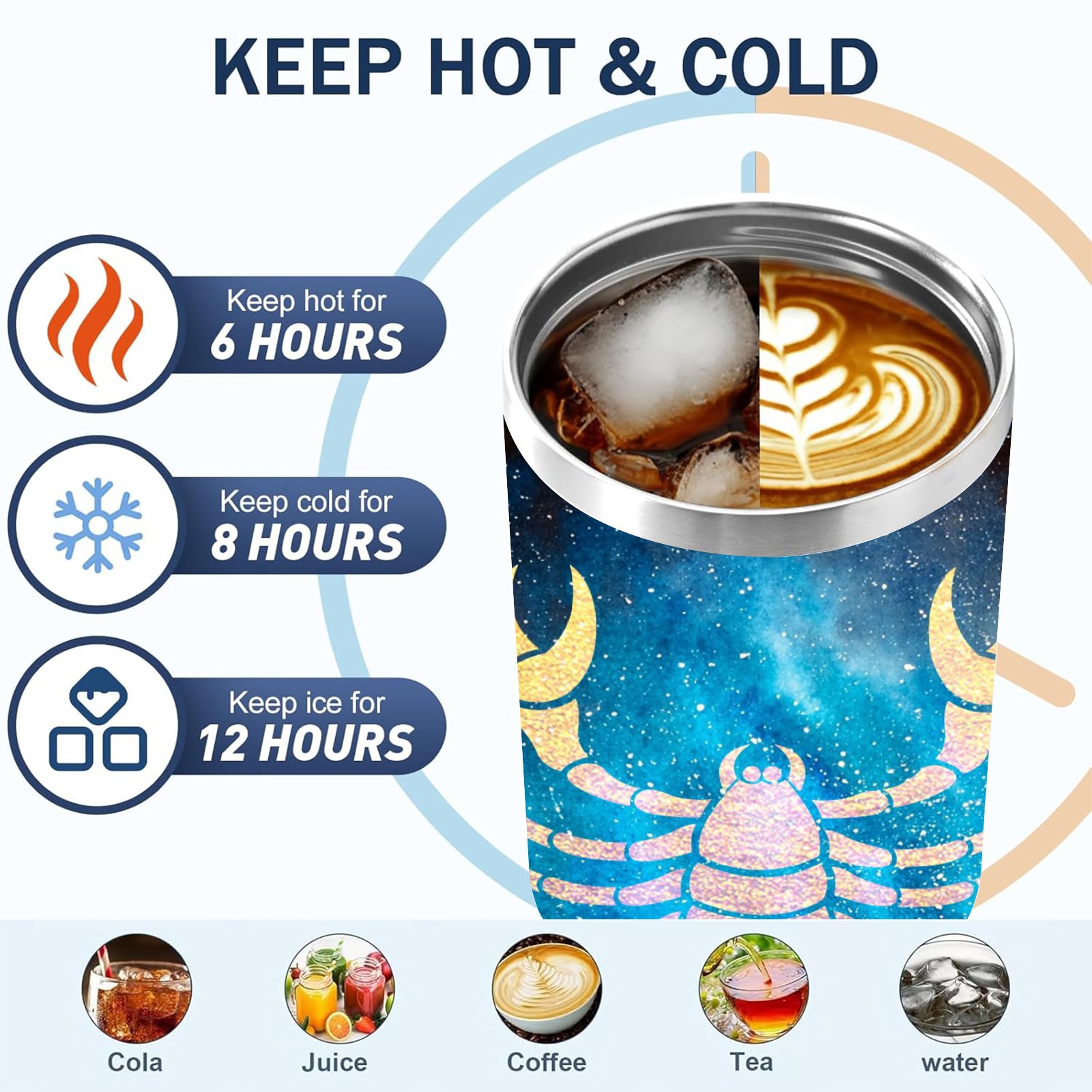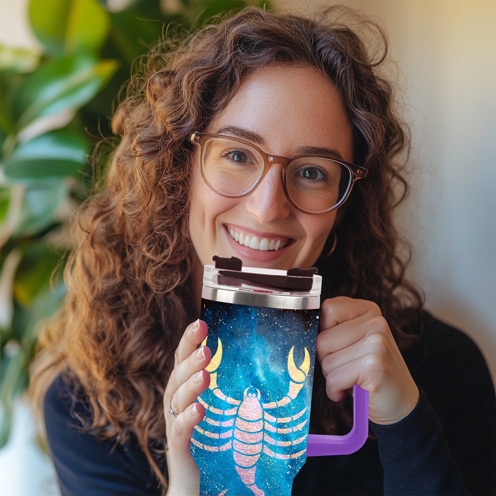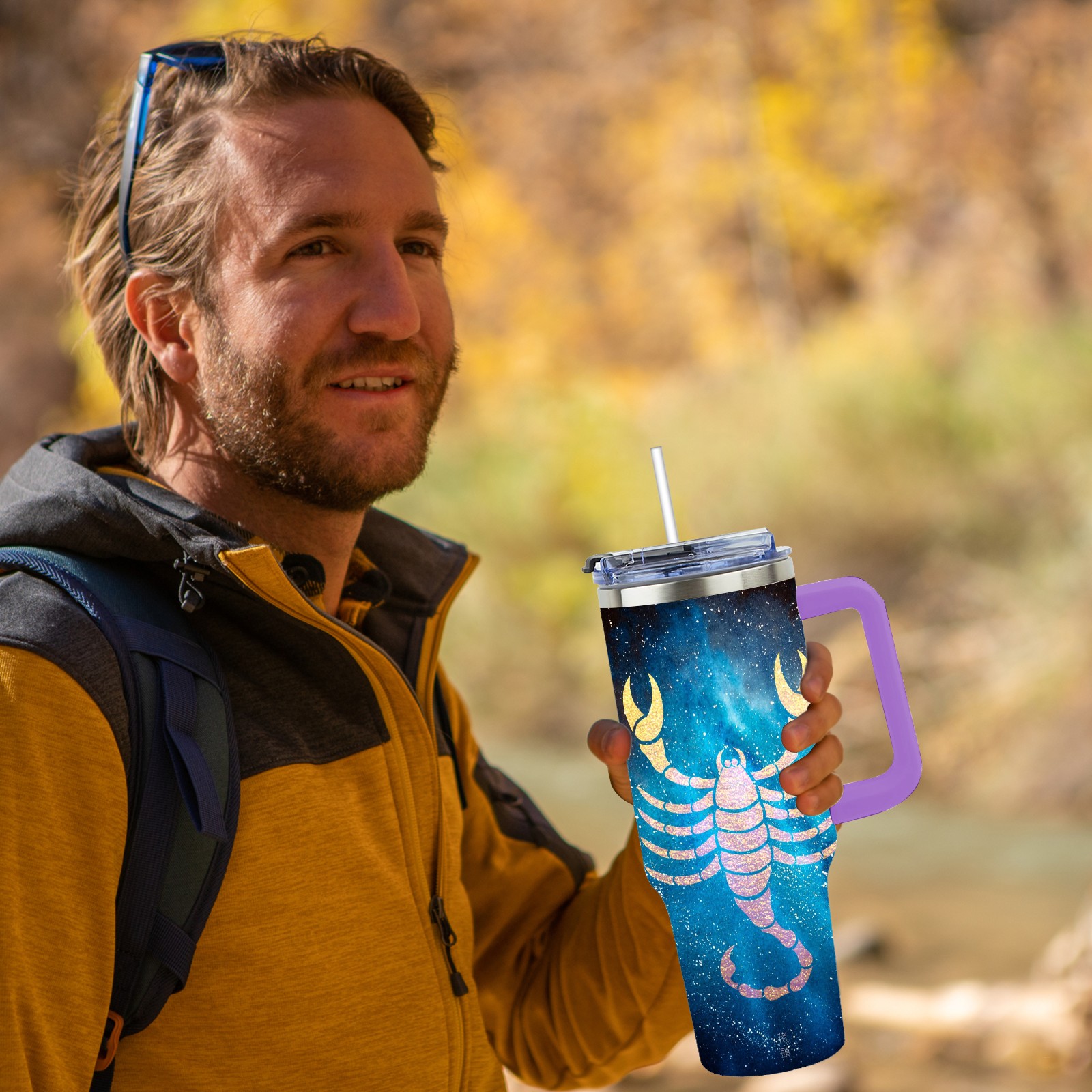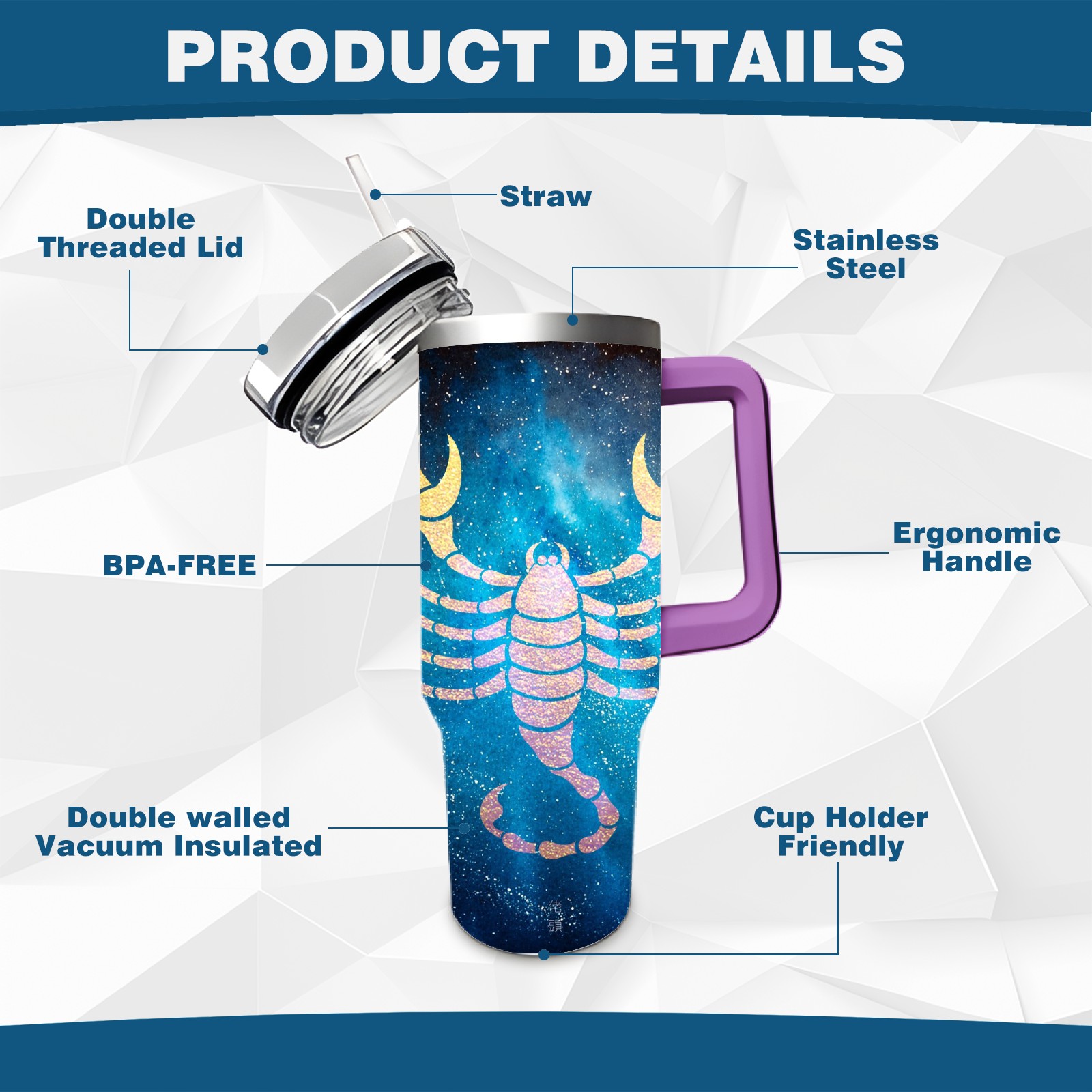 40oz 十二星座 天蝎座 thermos with lid and straw, leak-proof stainless steel, with handle, spill-proof bottle, convenient for travel(purple)