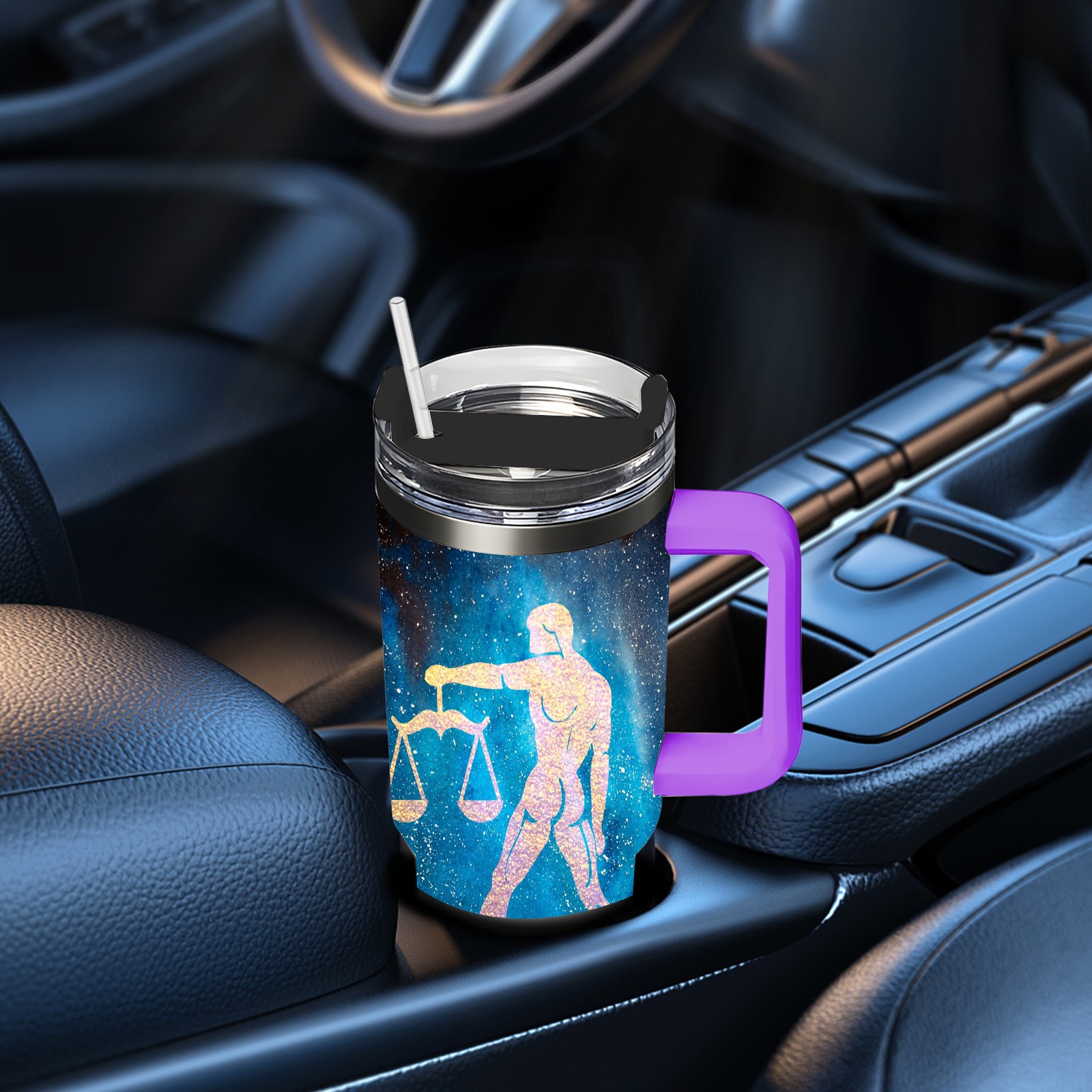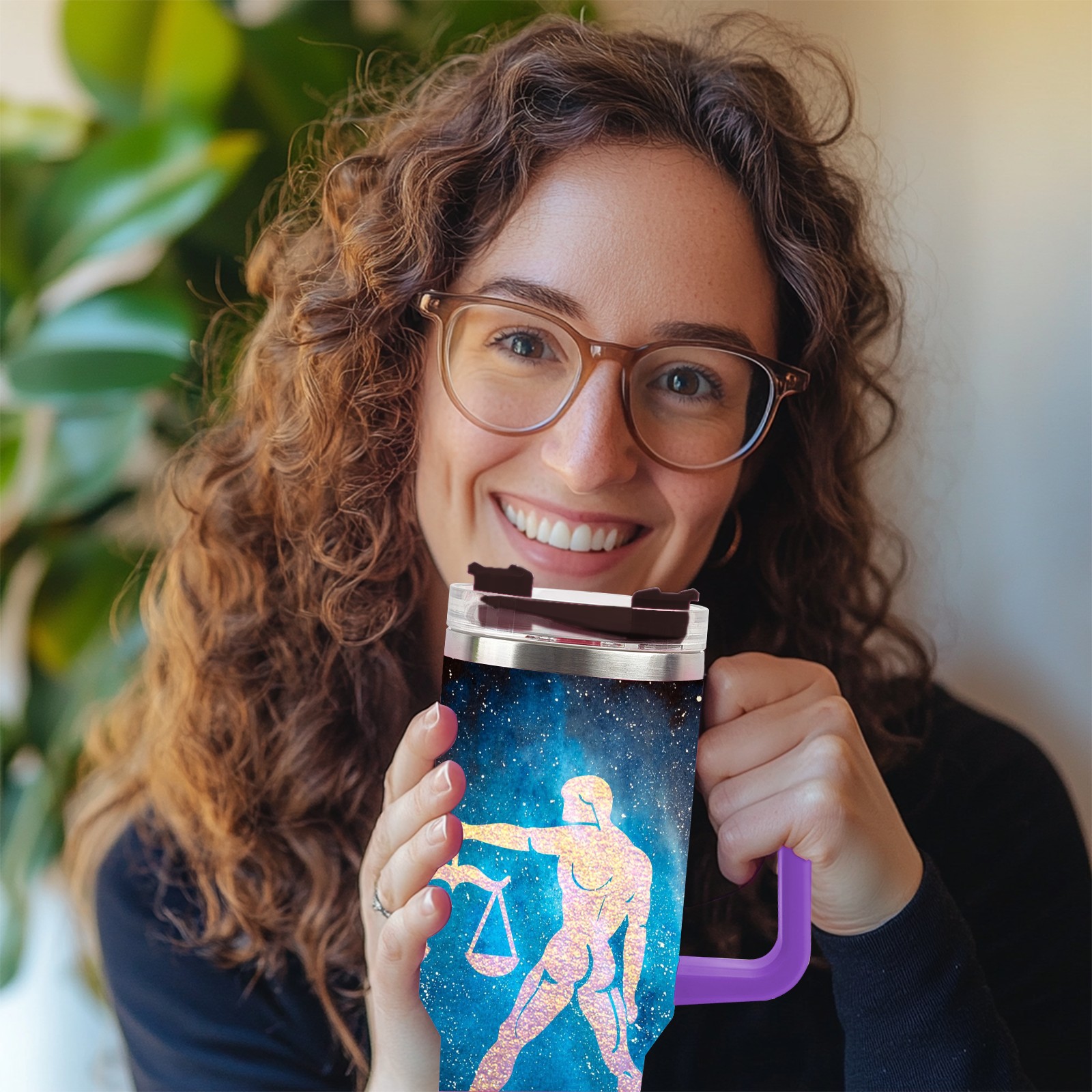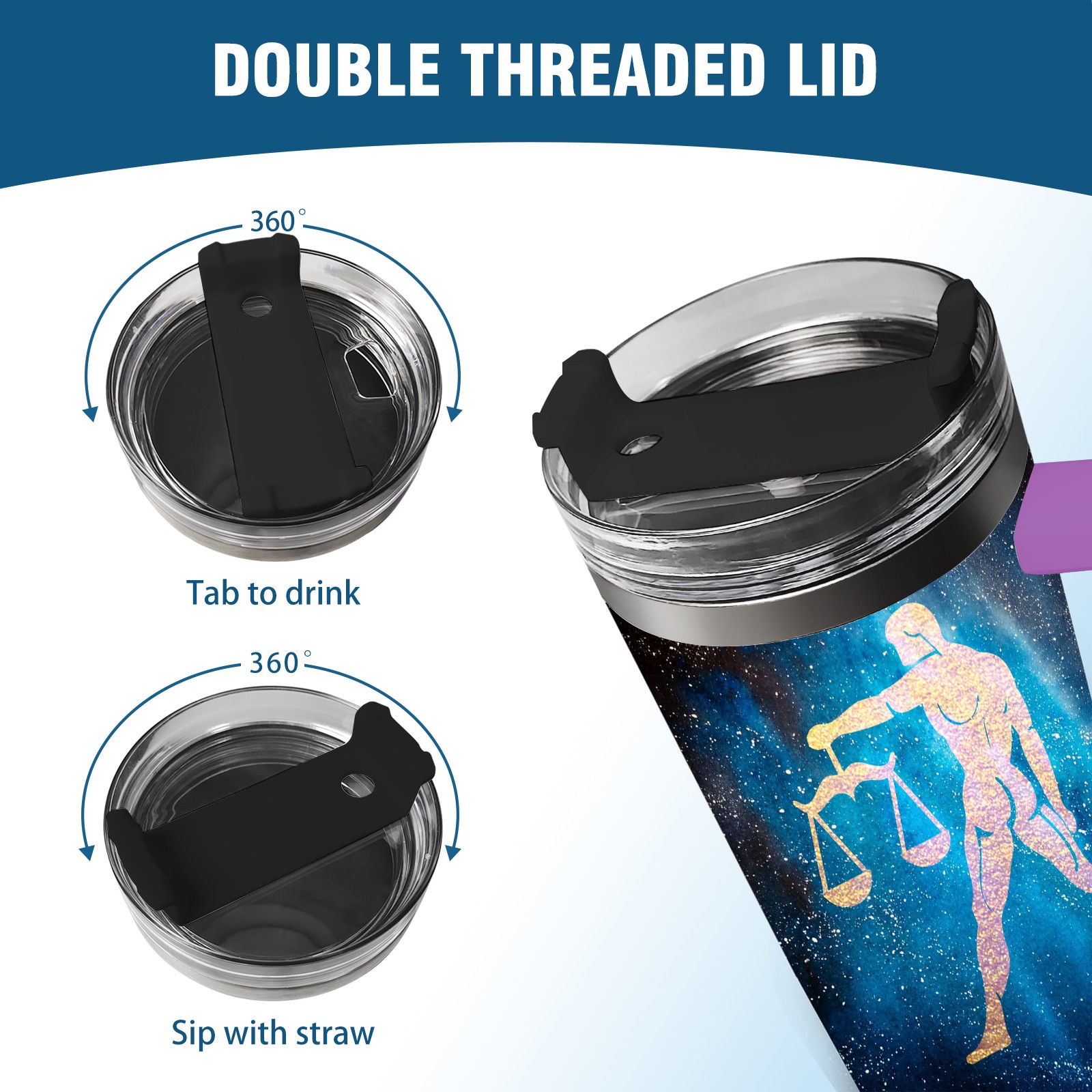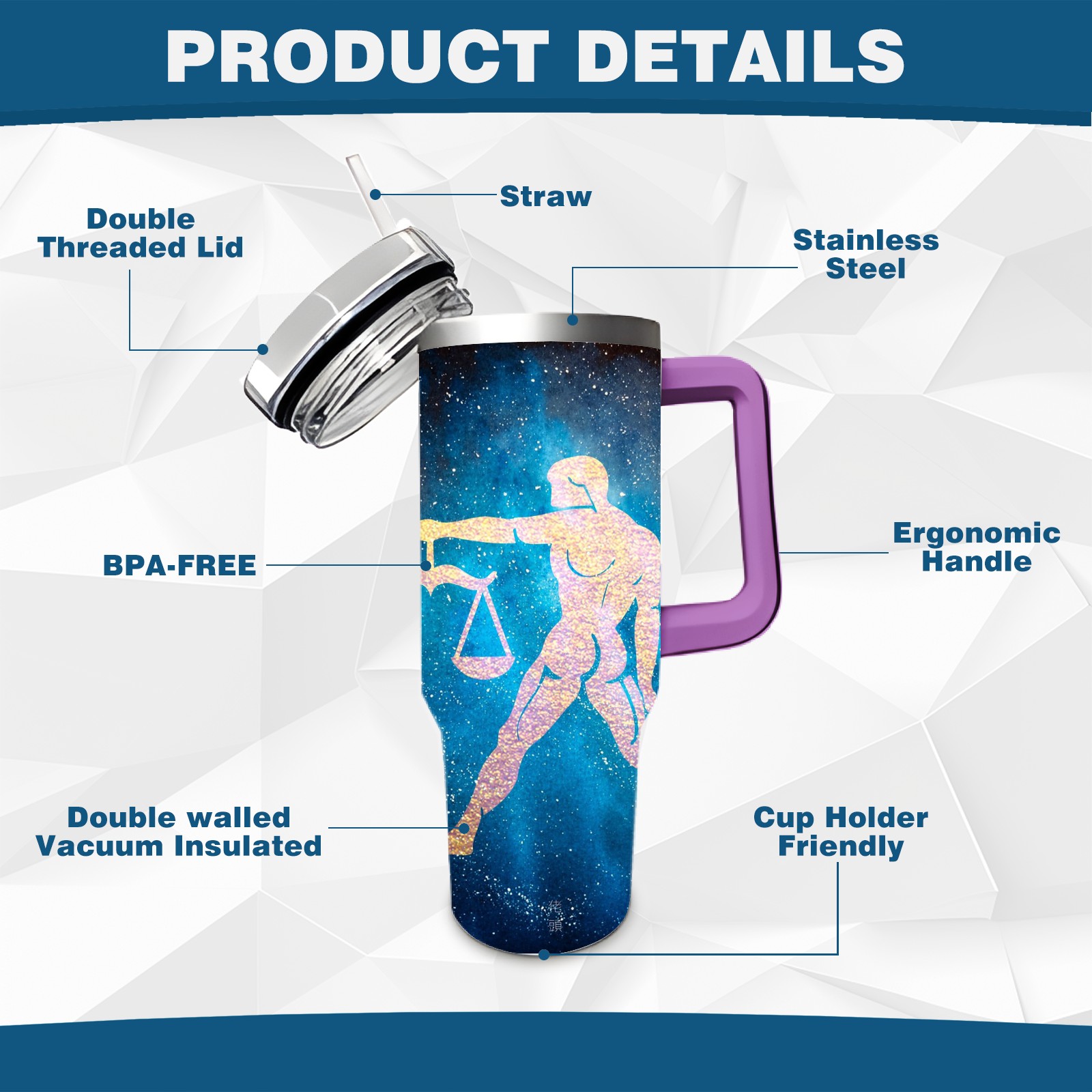 40oz 十二星座 天秤座 thermos with lid and straw, leak-proof stainless steel, with handle, spill-proof bottle, convenient for travel(purple)