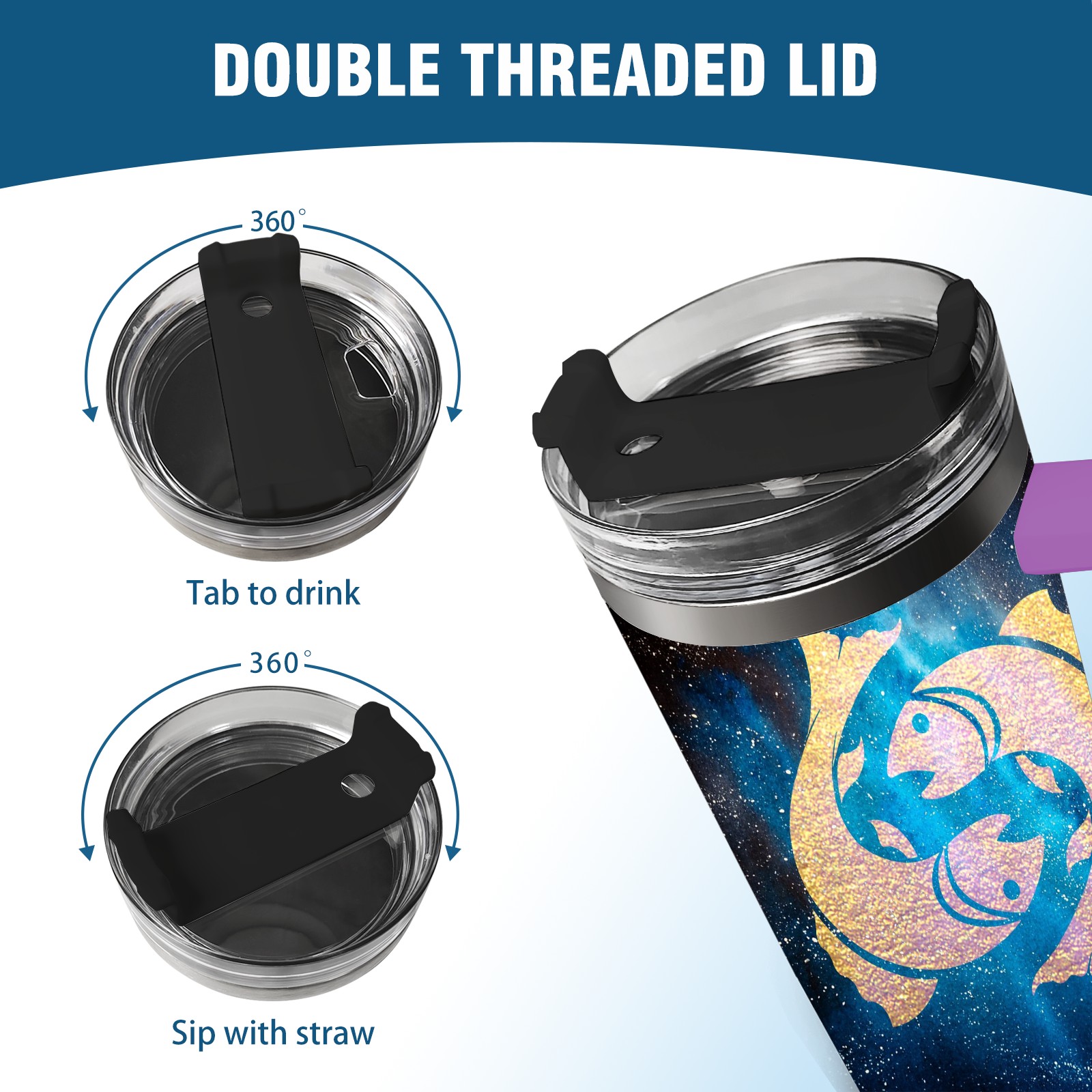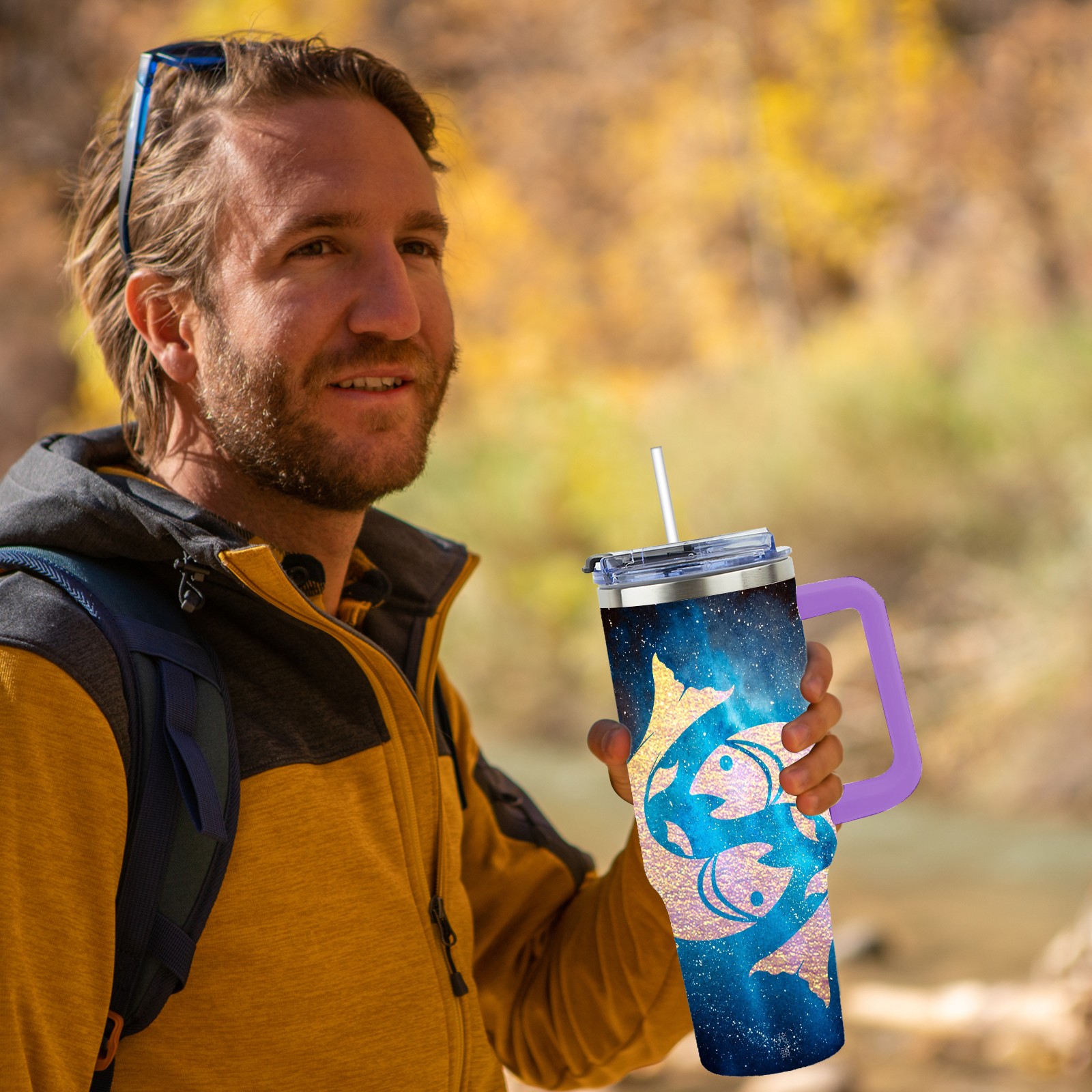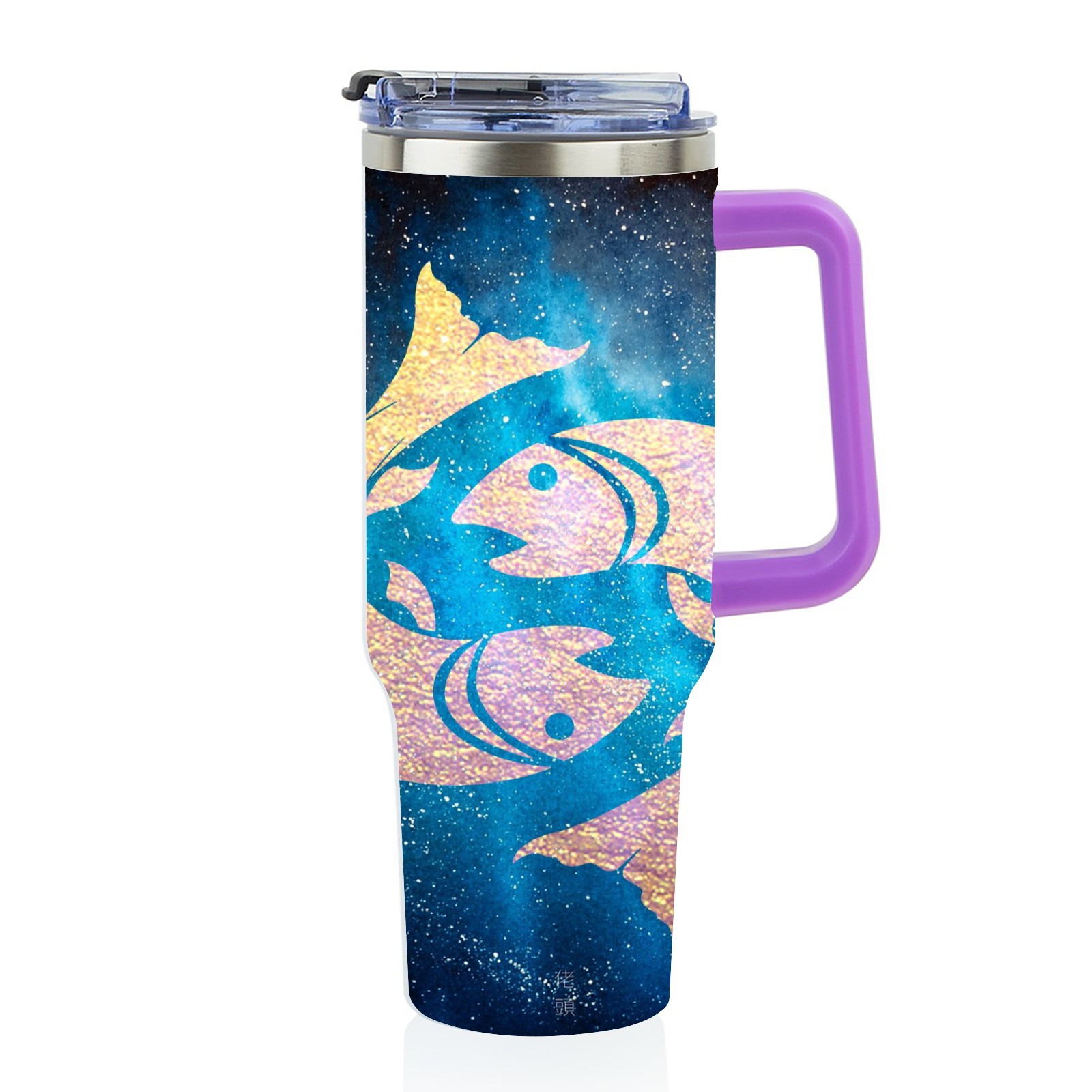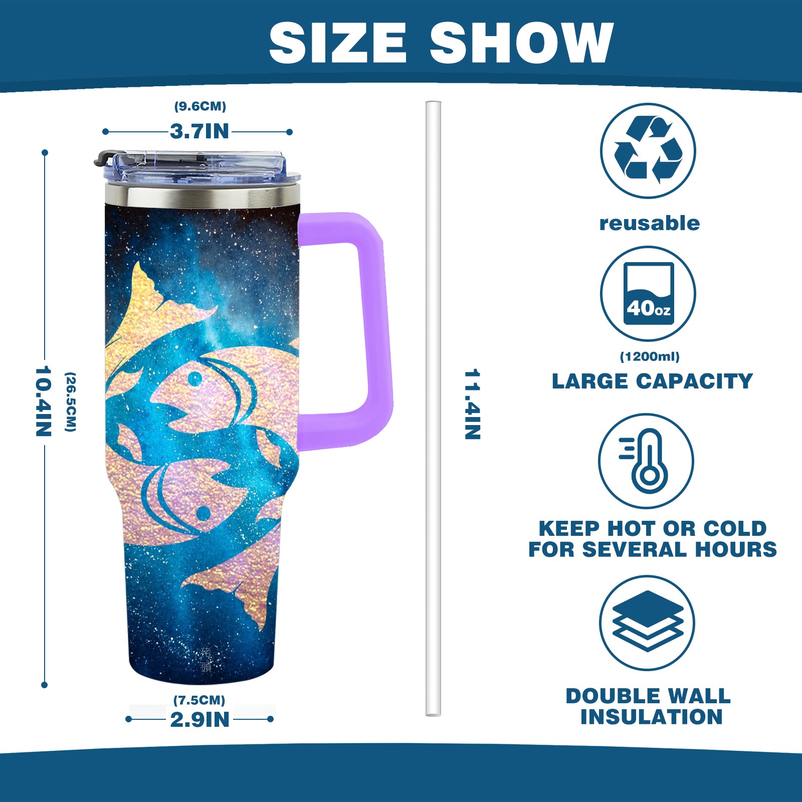 40oz 十二星座 双鱼座 thermos with lid and straw, leak-proof stainless steel, with handle, spill-proof bottle, convenient for travel(purple)