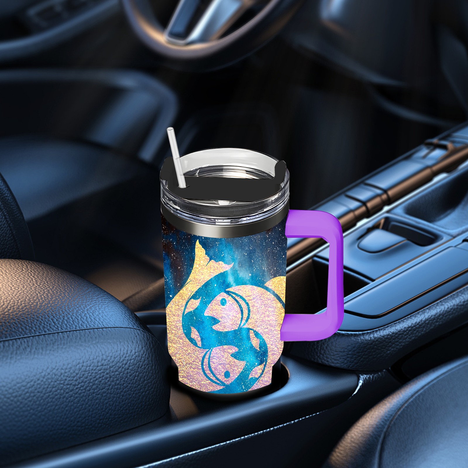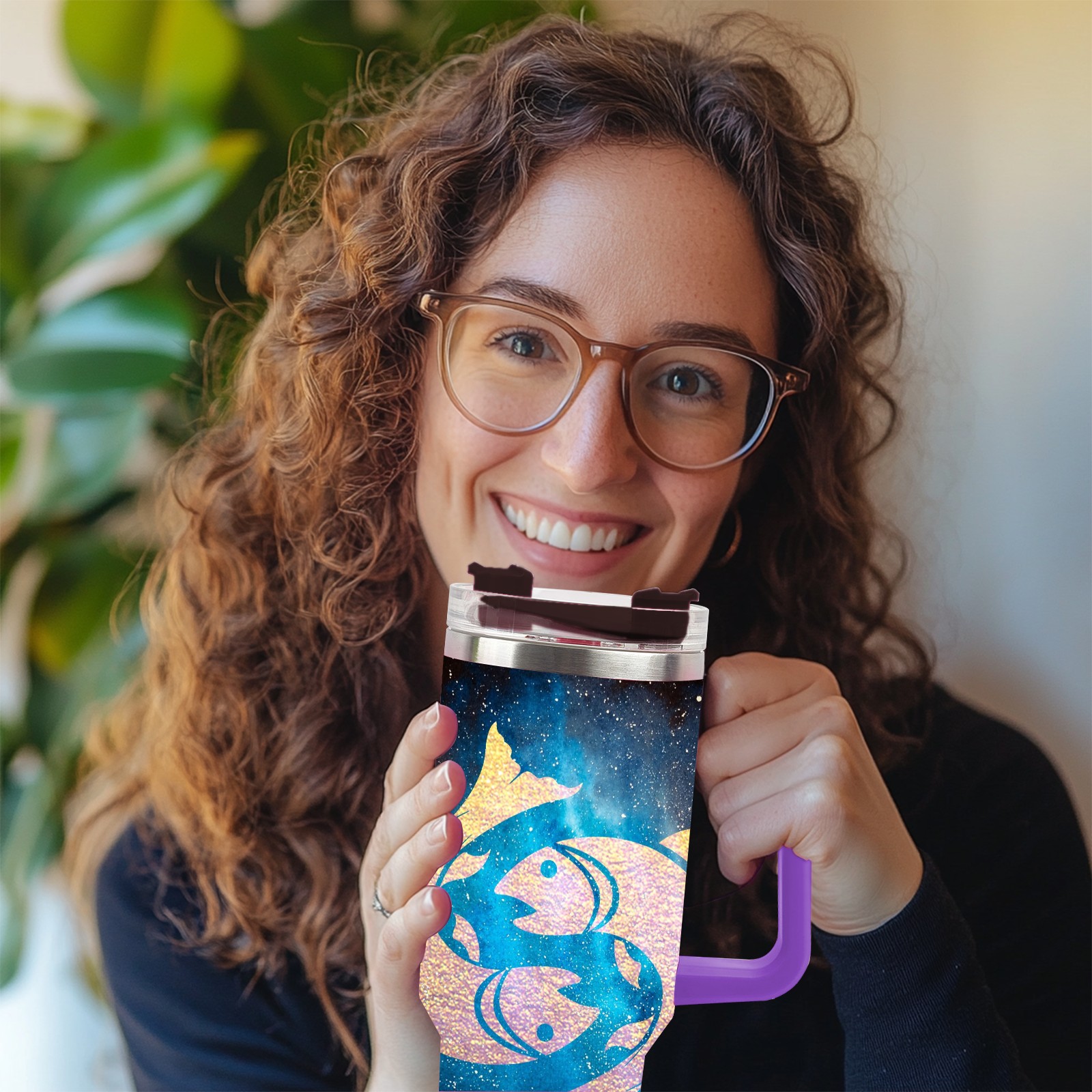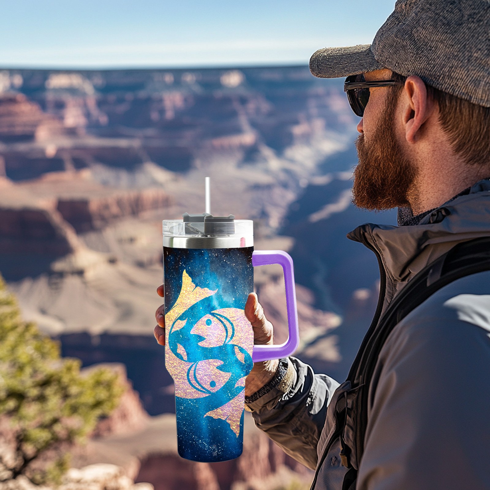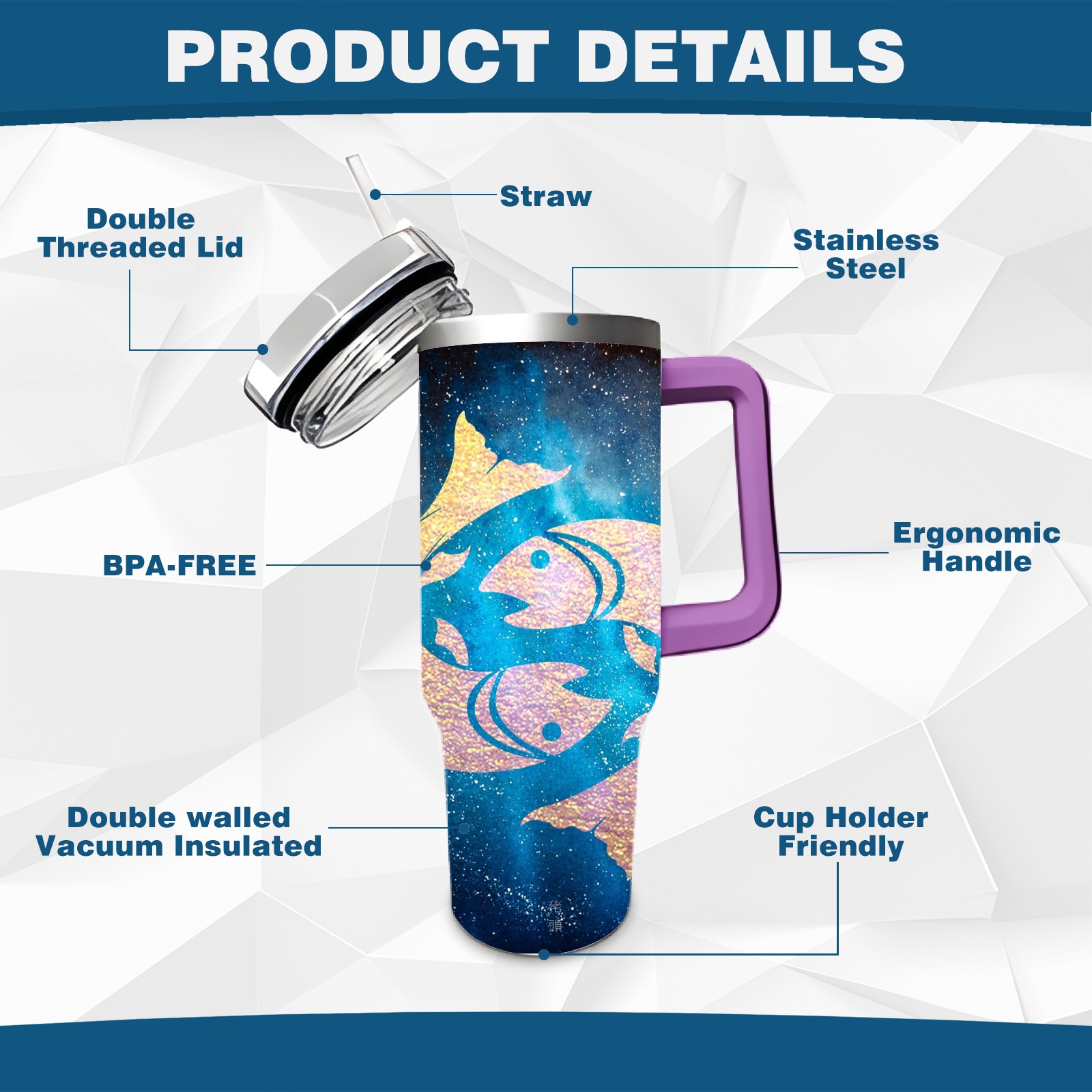 40oz 十二星座 双鱼座 thermos with lid and straw, leak-proof stainless steel, with handle, spill-proof bottle, convenient for travel(purple)