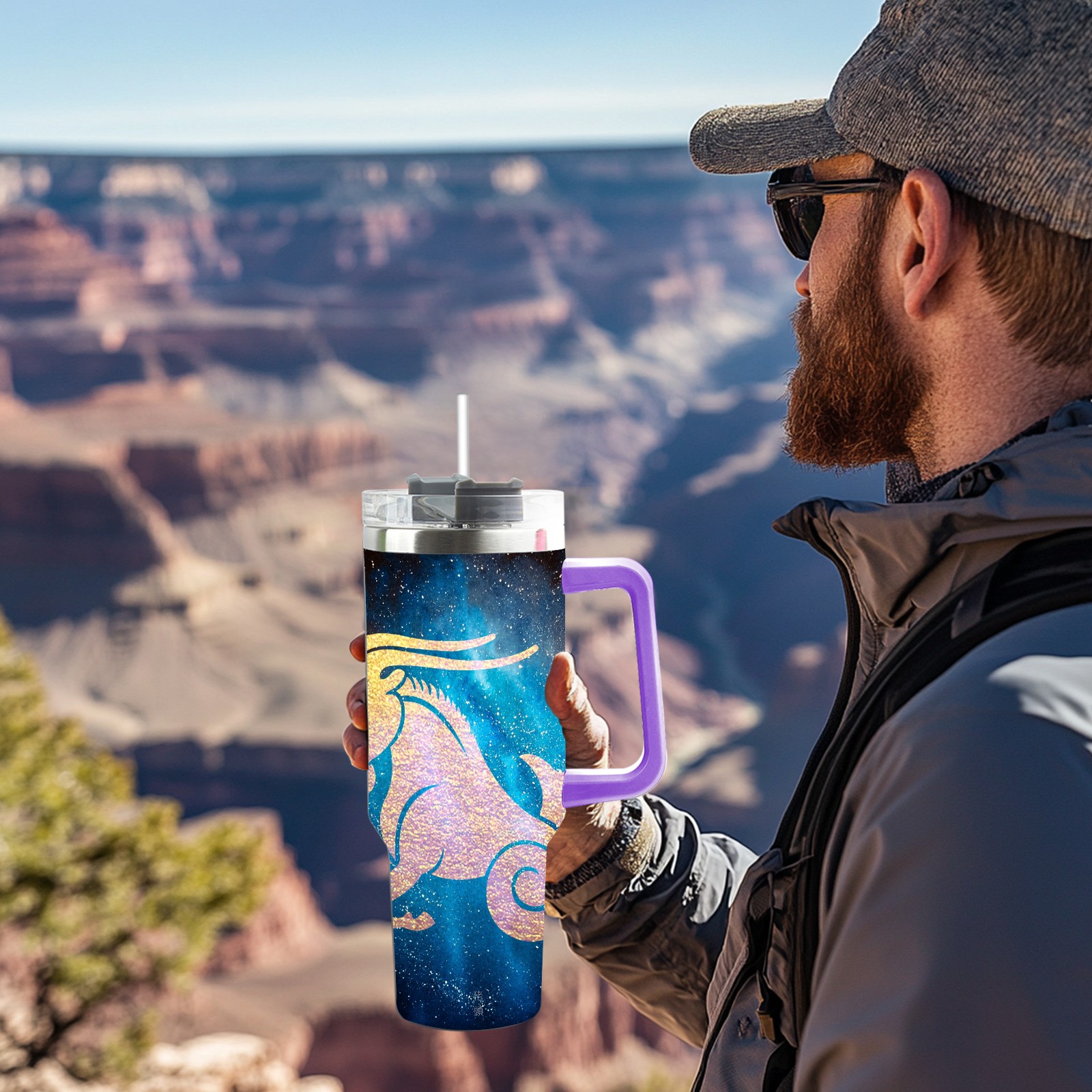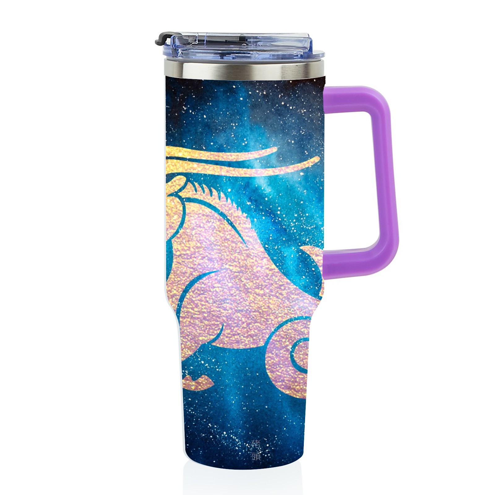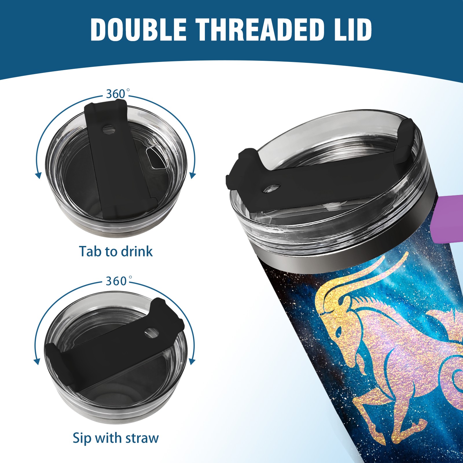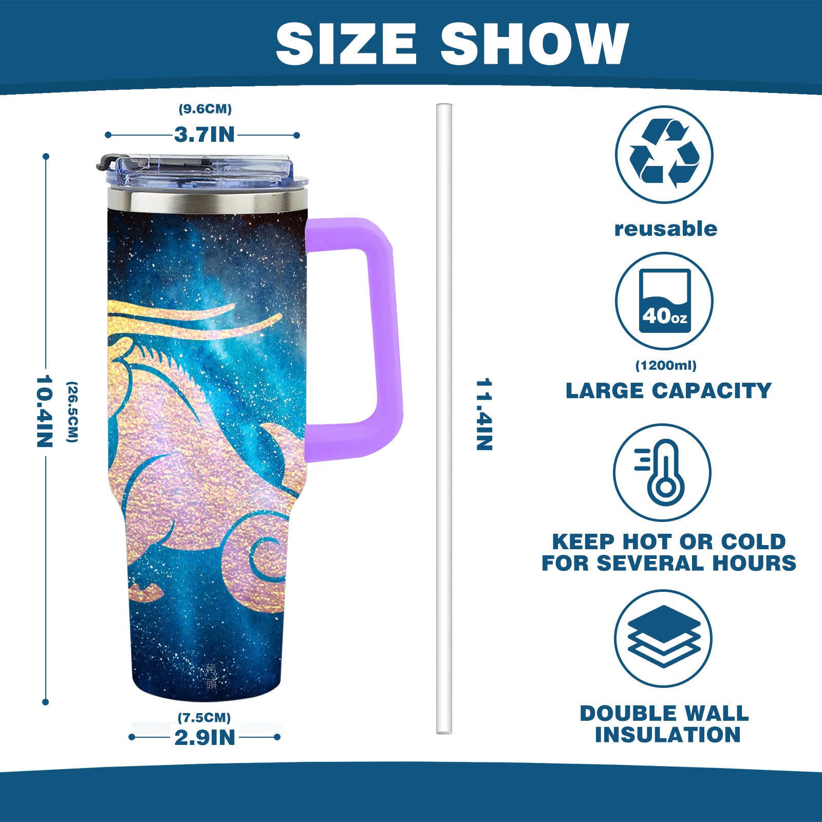40oz 十二星座 摩羯座 thermos with lid and straw, leak-proof stainless steel, with handle, spill-proof bottle, convenient for travel(purple)