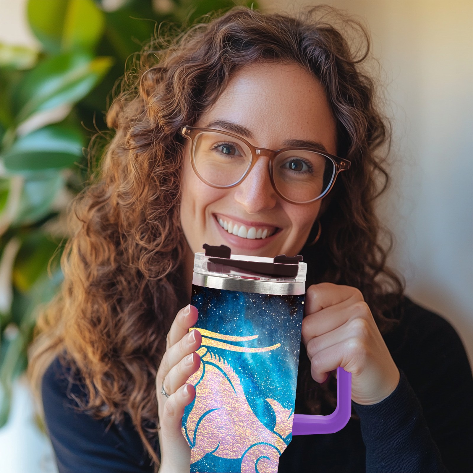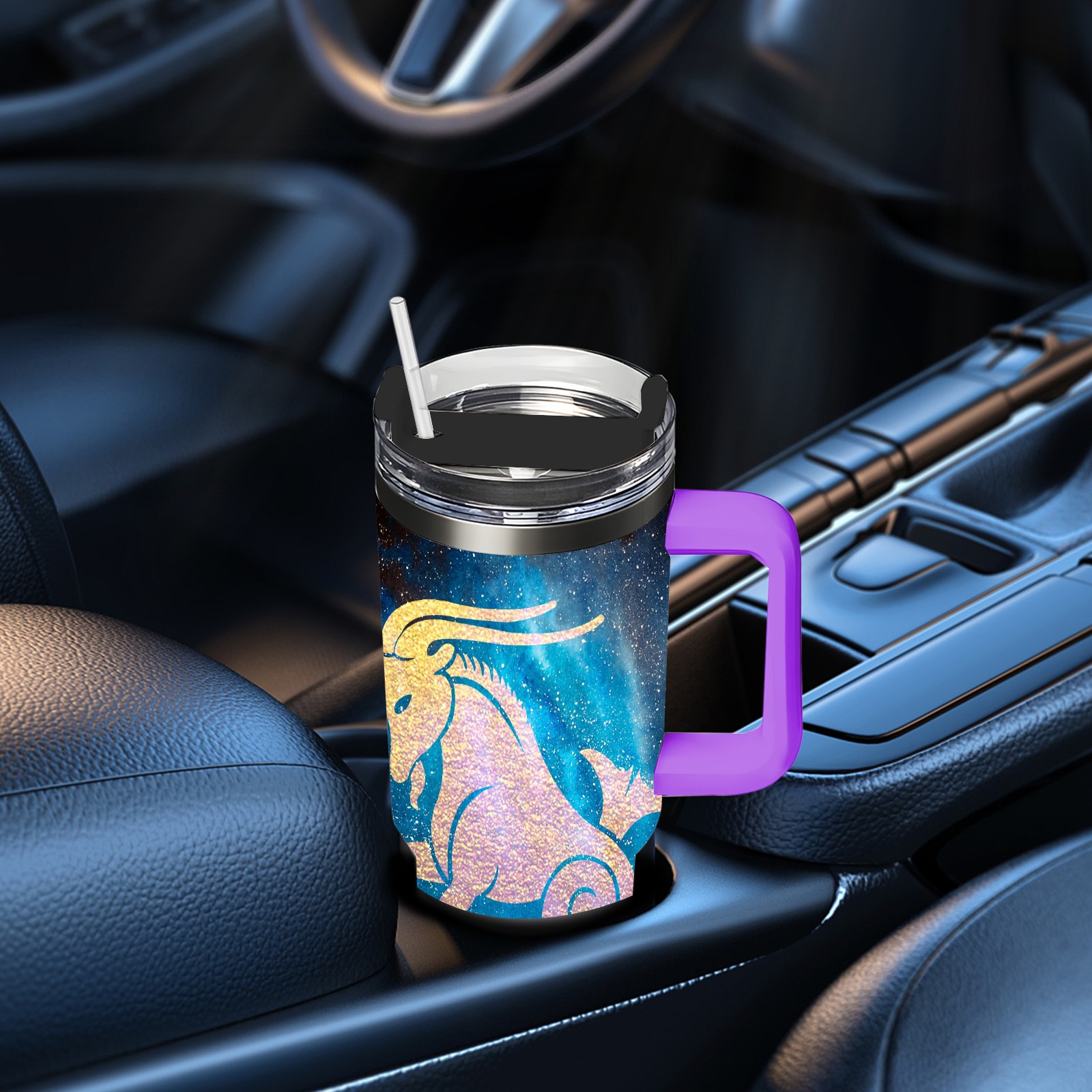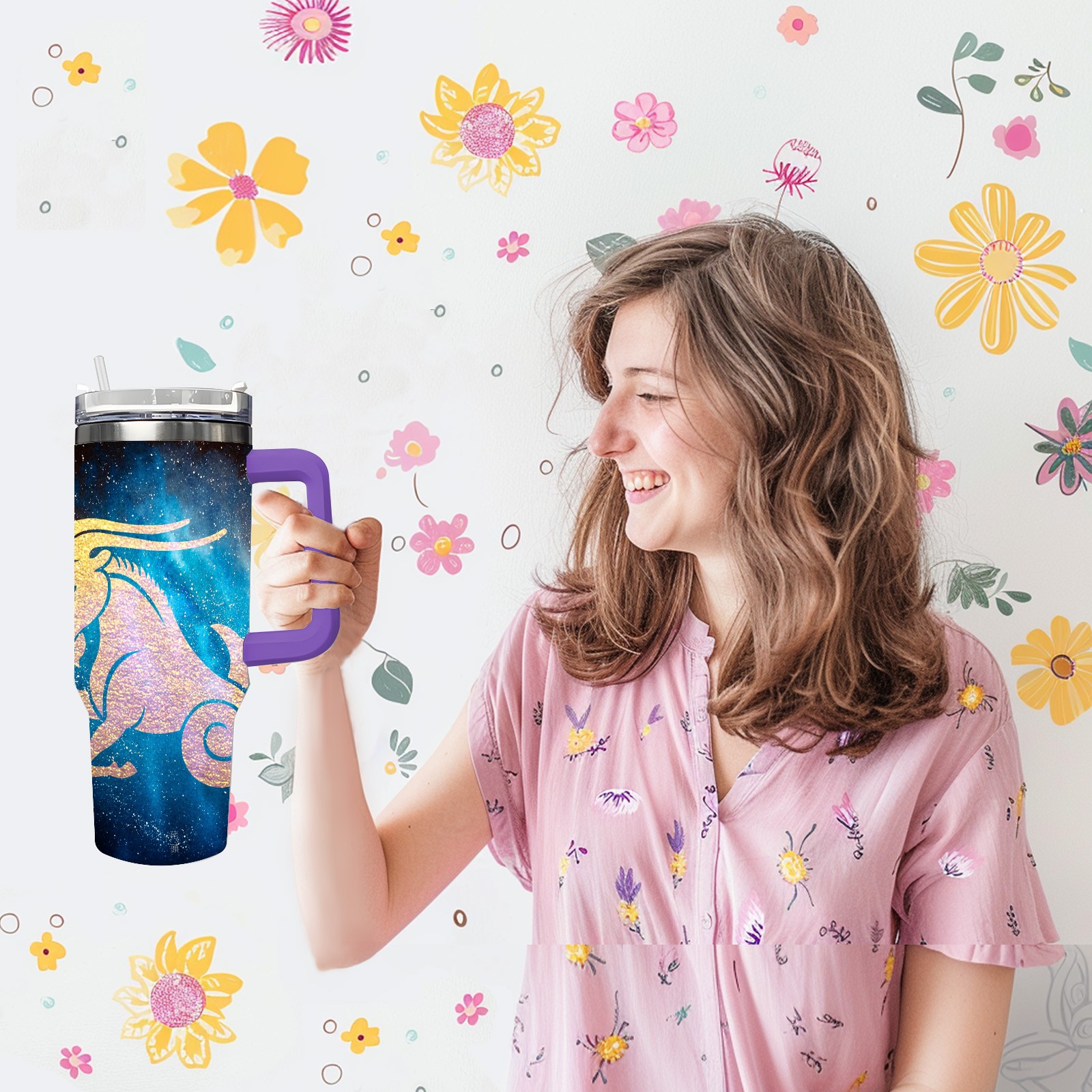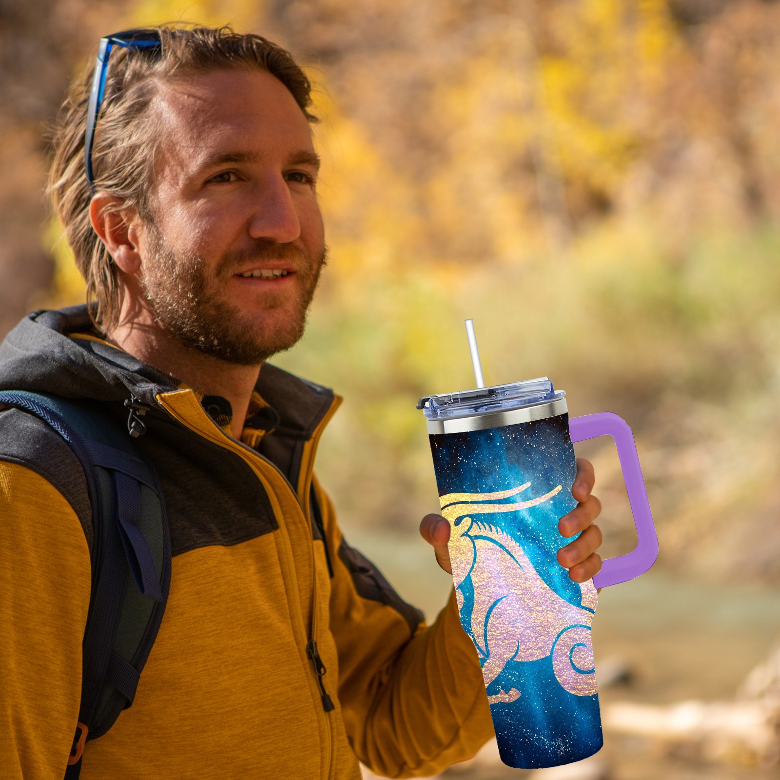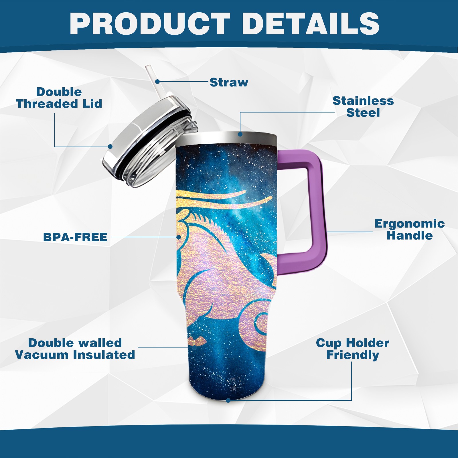 40oz 十二星座 摩羯座 thermos with lid and straw, leak-proof stainless steel, with handle, spill-proof bottle, convenient for travel(purple)