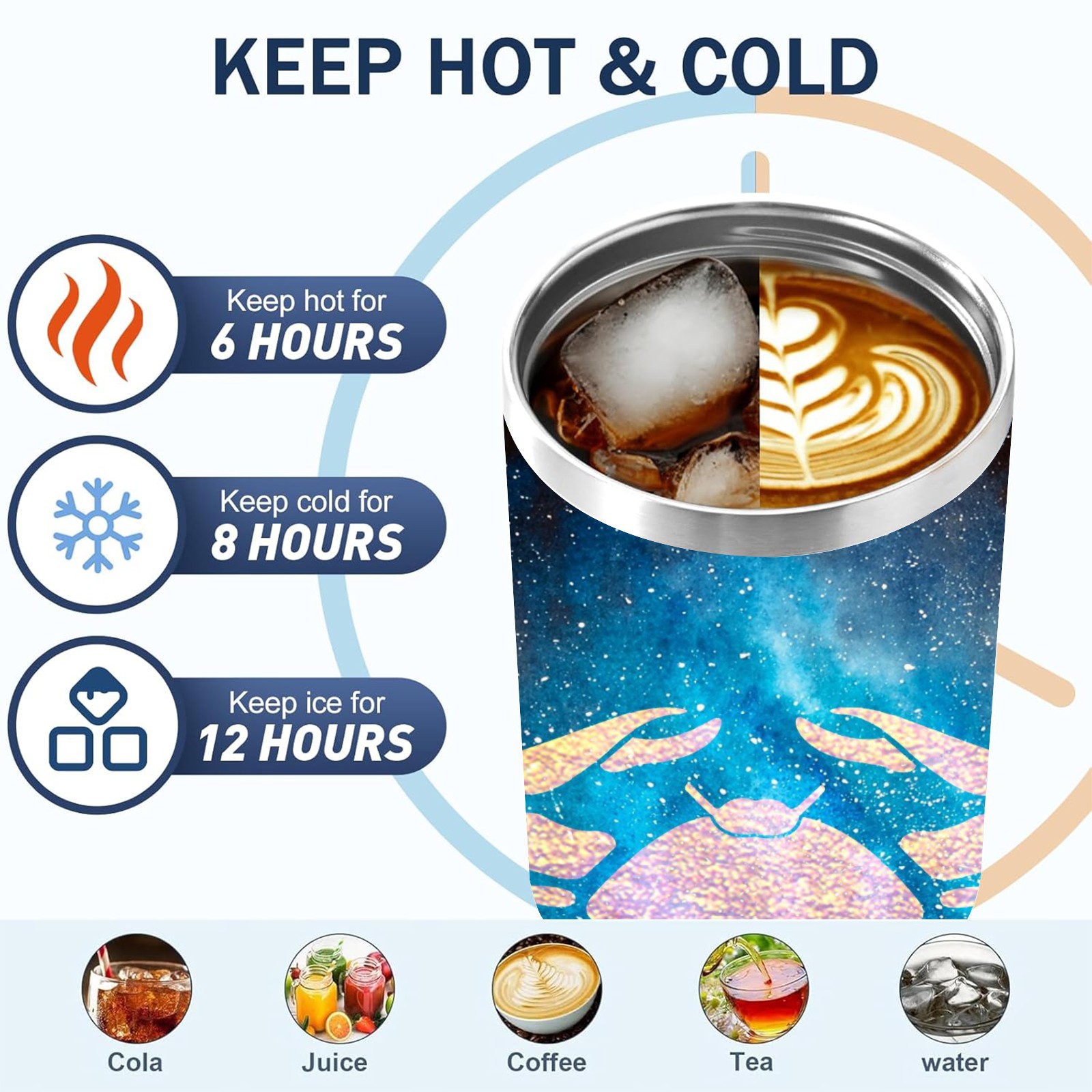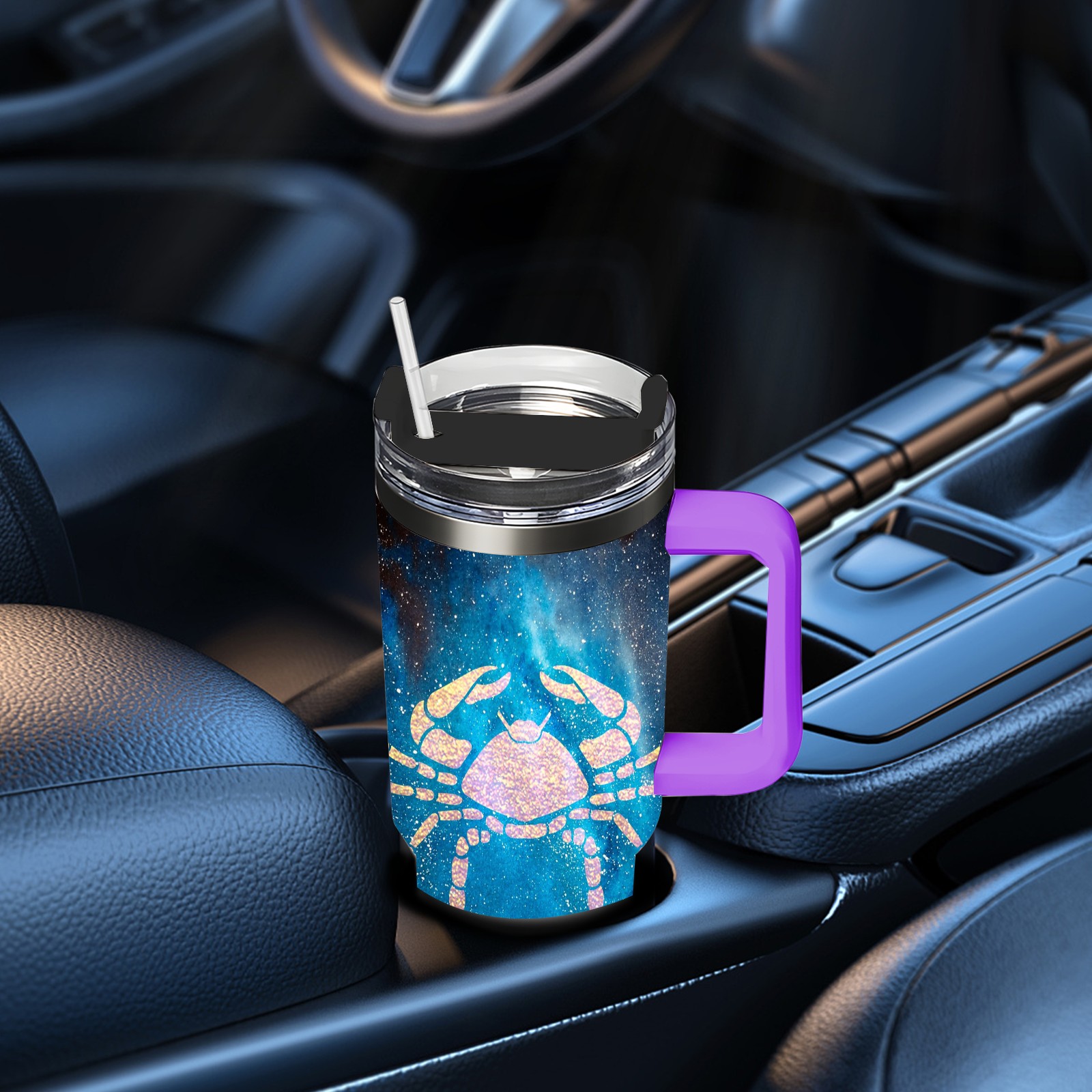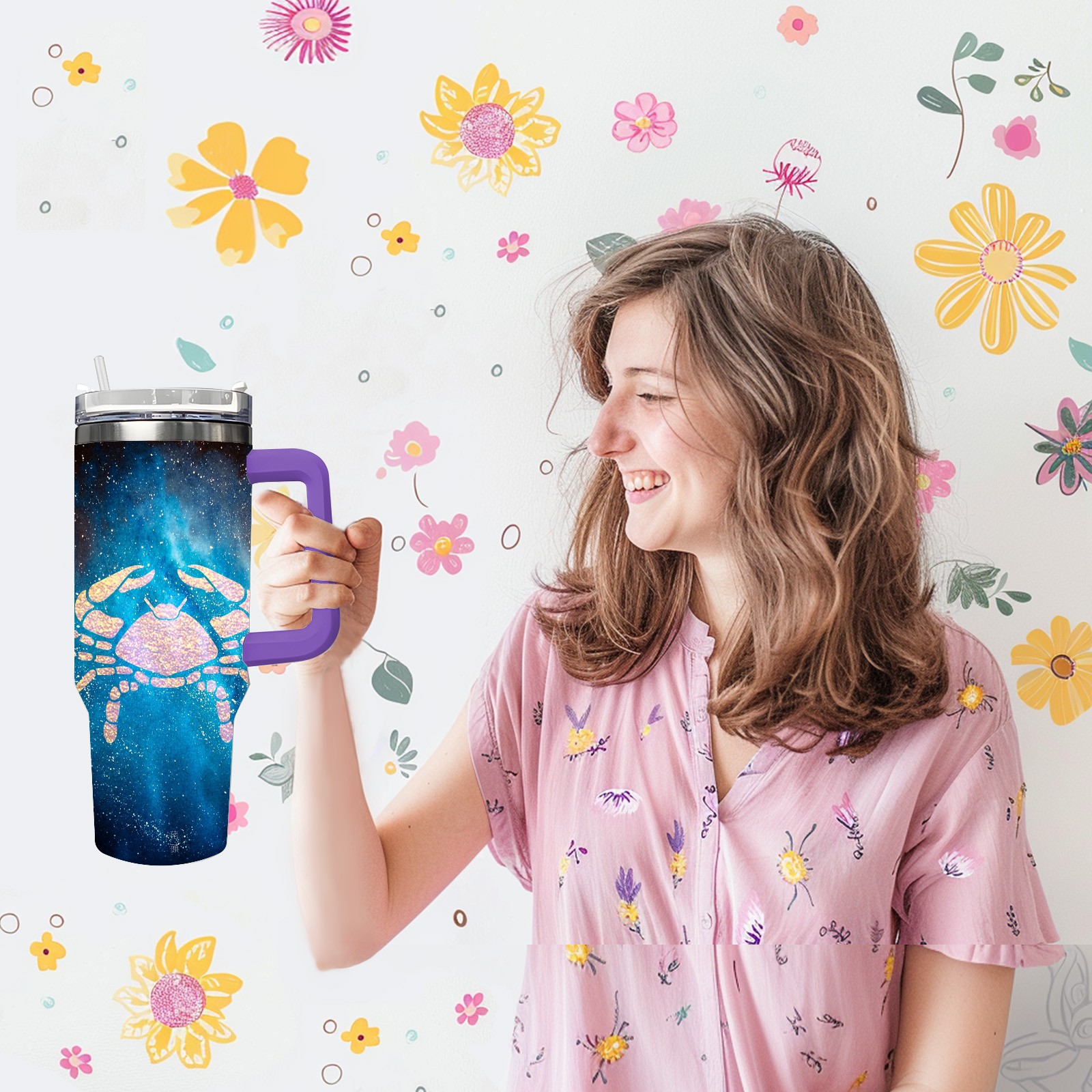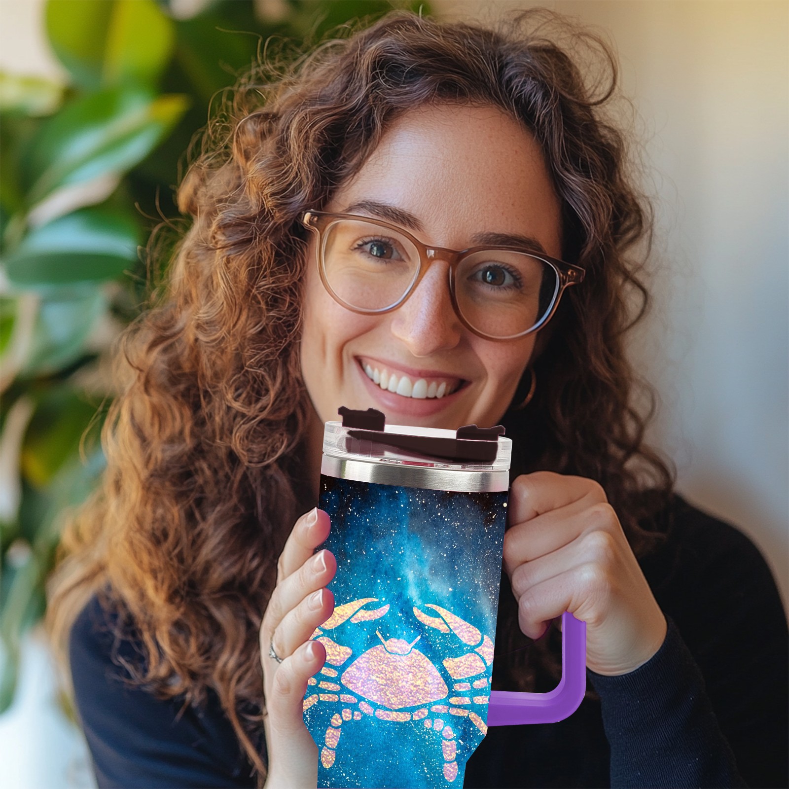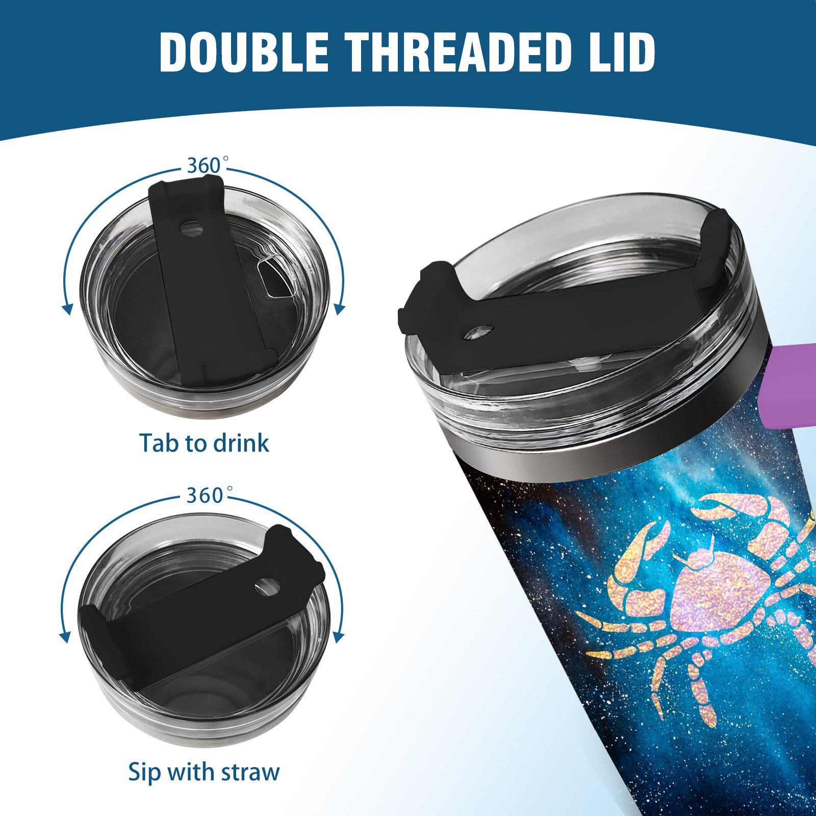40oz 十二星座 巨蟹座 thermos with lid and straw, leak-proof stainless steel, with handle, spill-proof bottle, convenient for travel(purple)