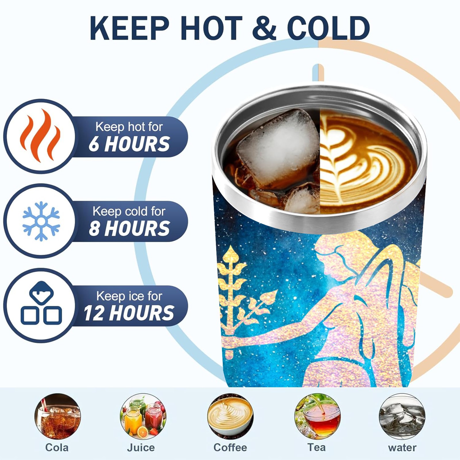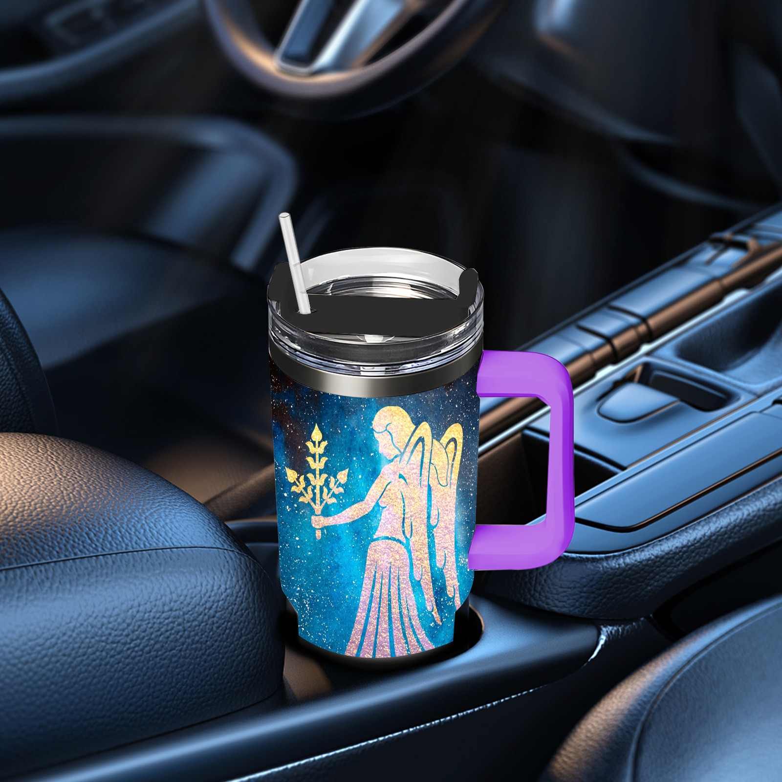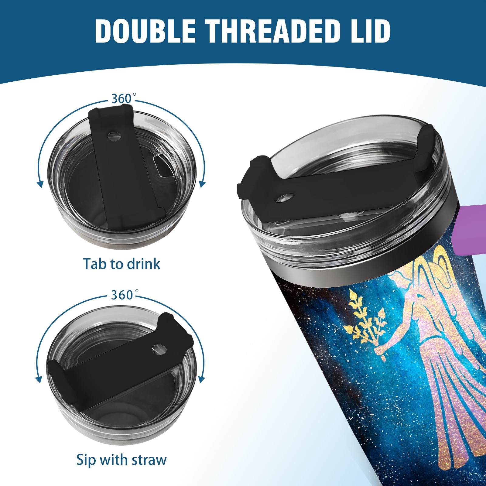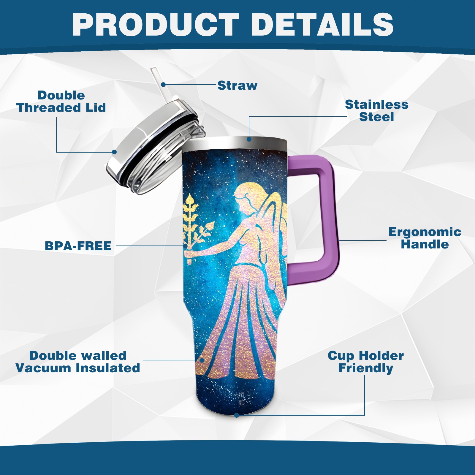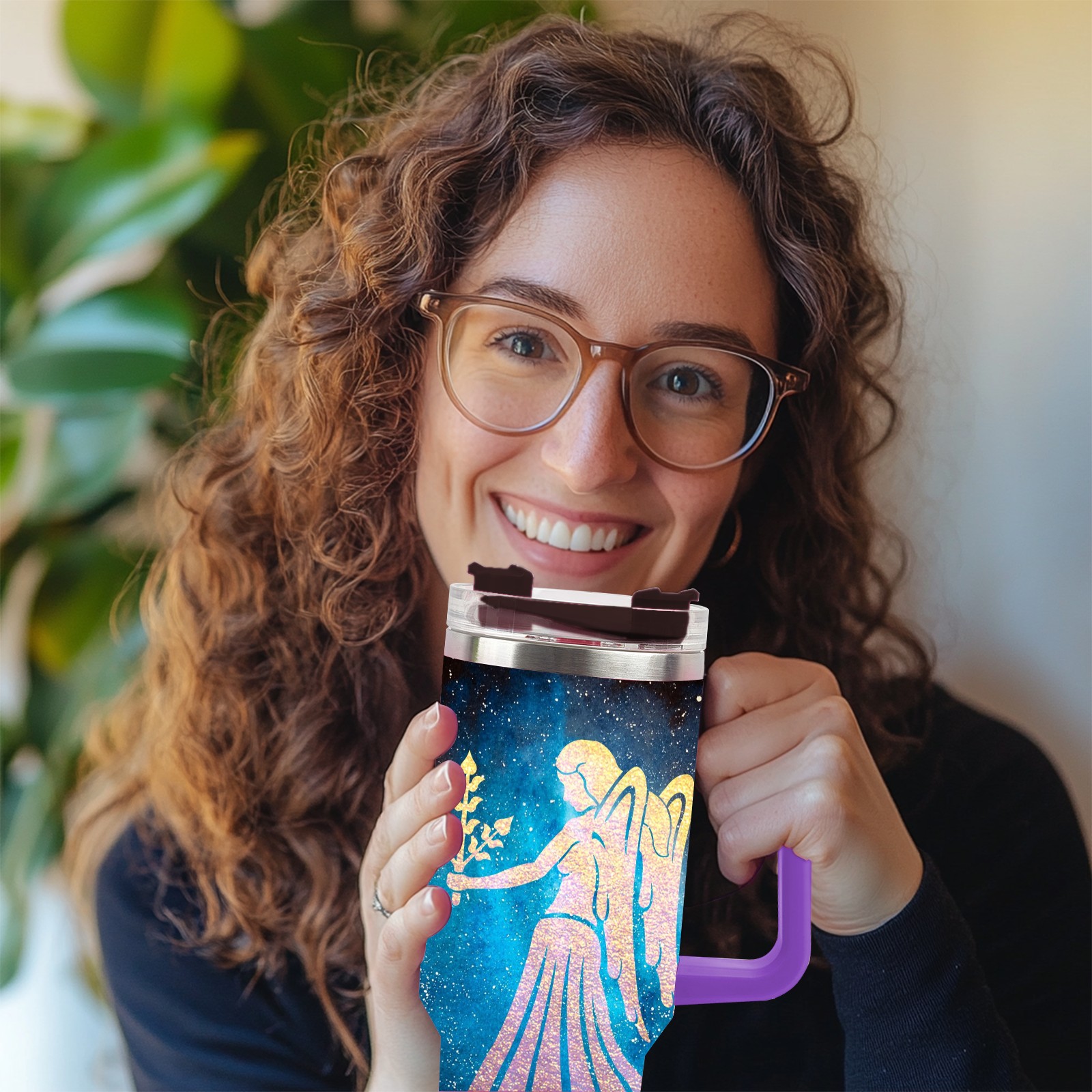 40oz 十二星座 处女座 thermos with lid and straw, leak-proof stainless steel, with handle, spill-proof bottle, convenient for travel(purple)
