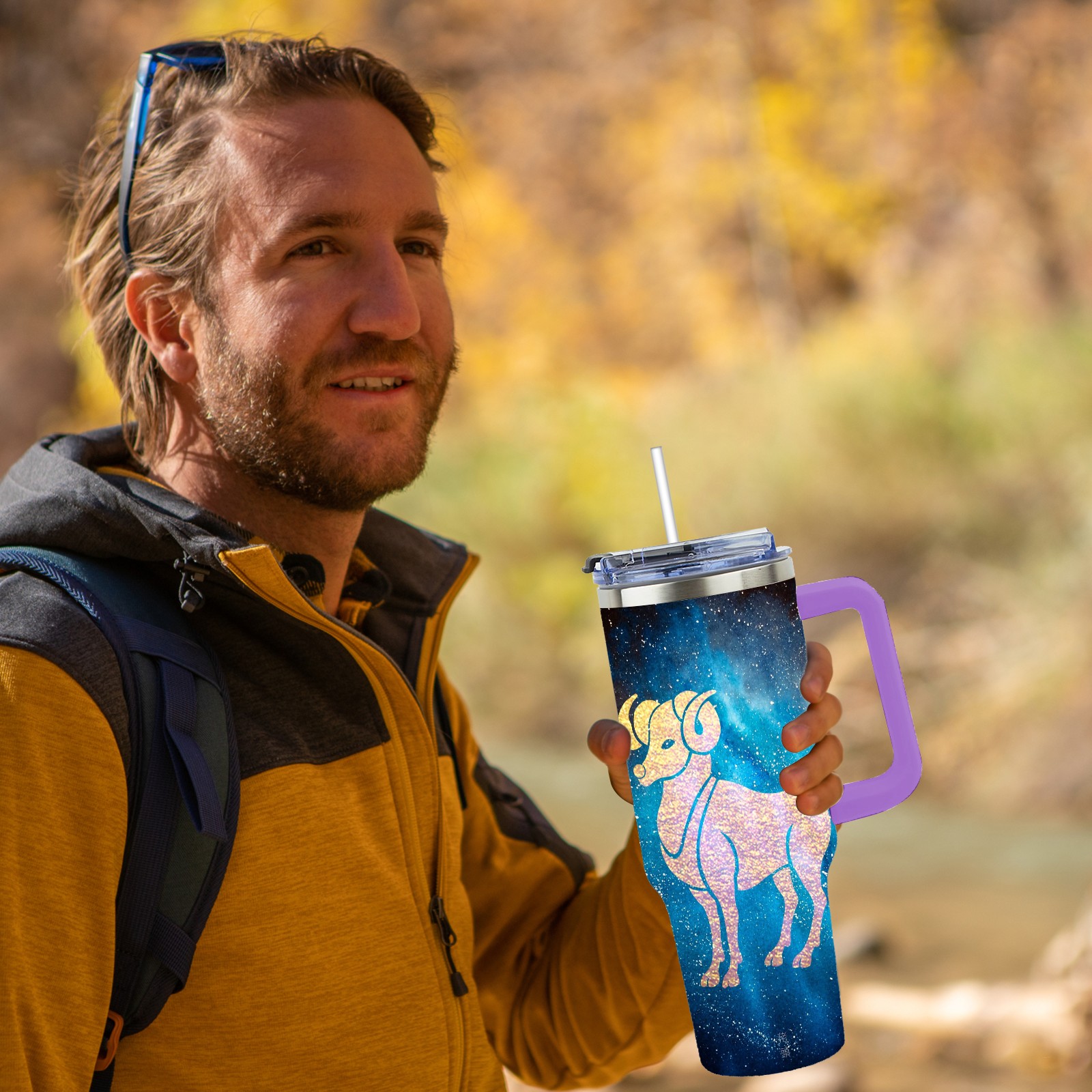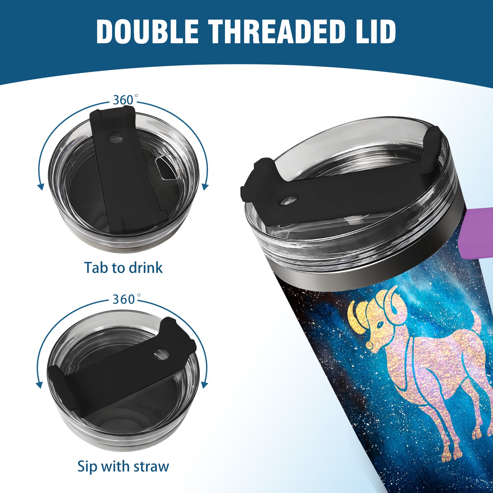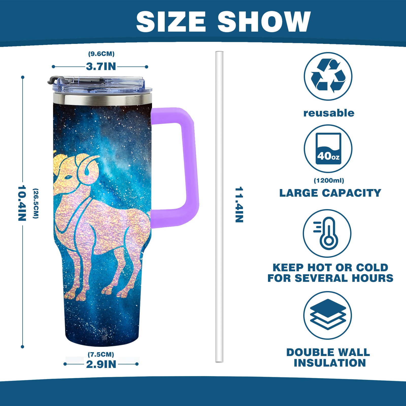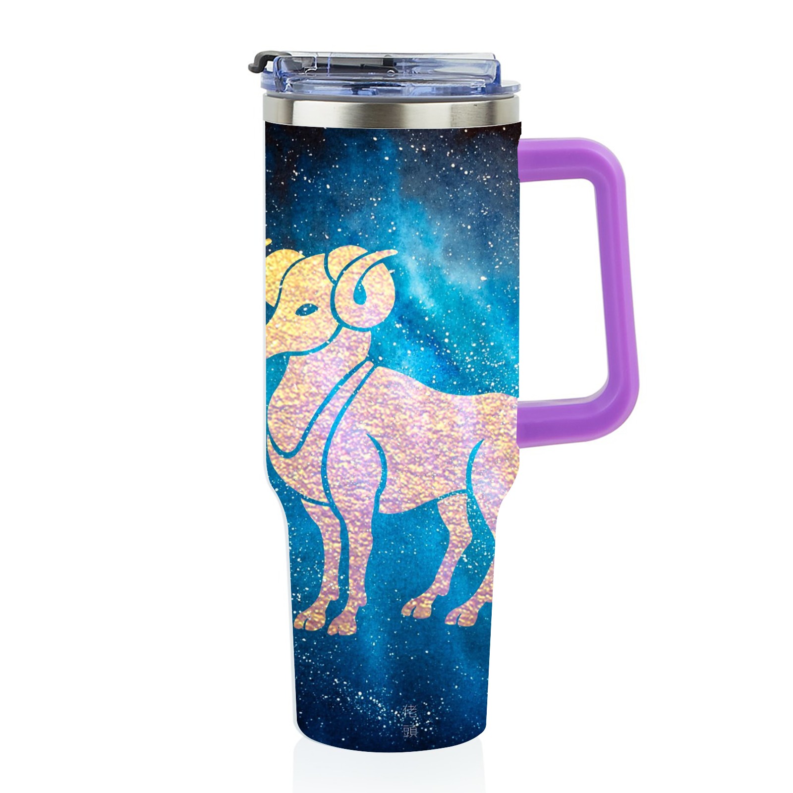 40oz 十二星座 白羊座 thermos with lid and straw, leak-proof stainless steel, with handle, spill-proof bottle, convenient for travel(purple)