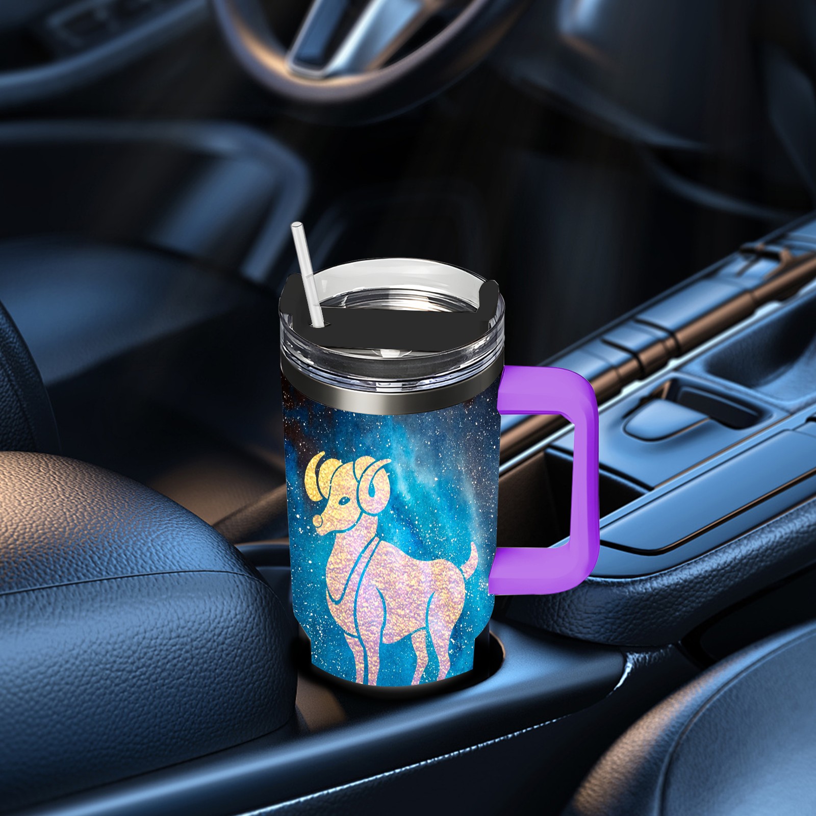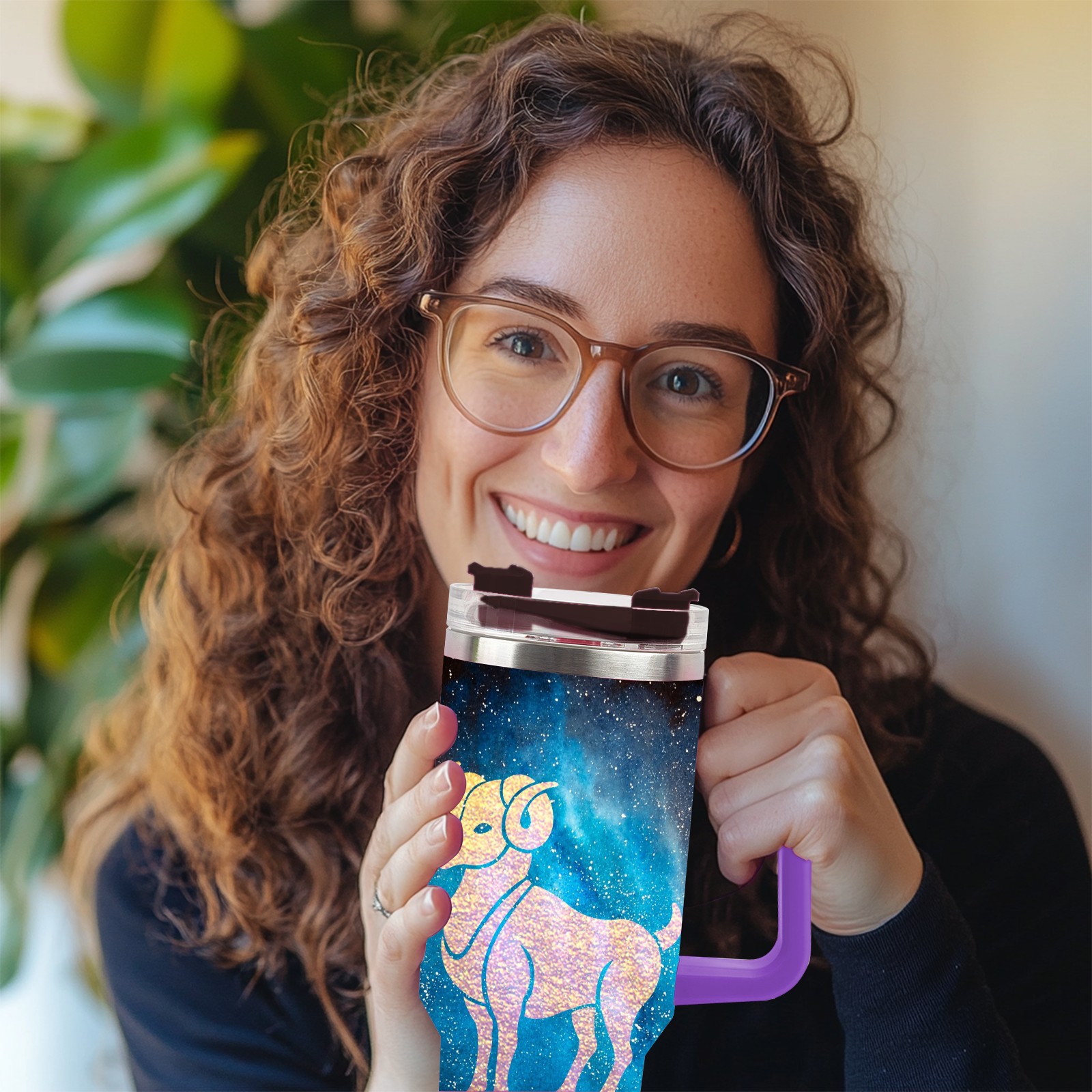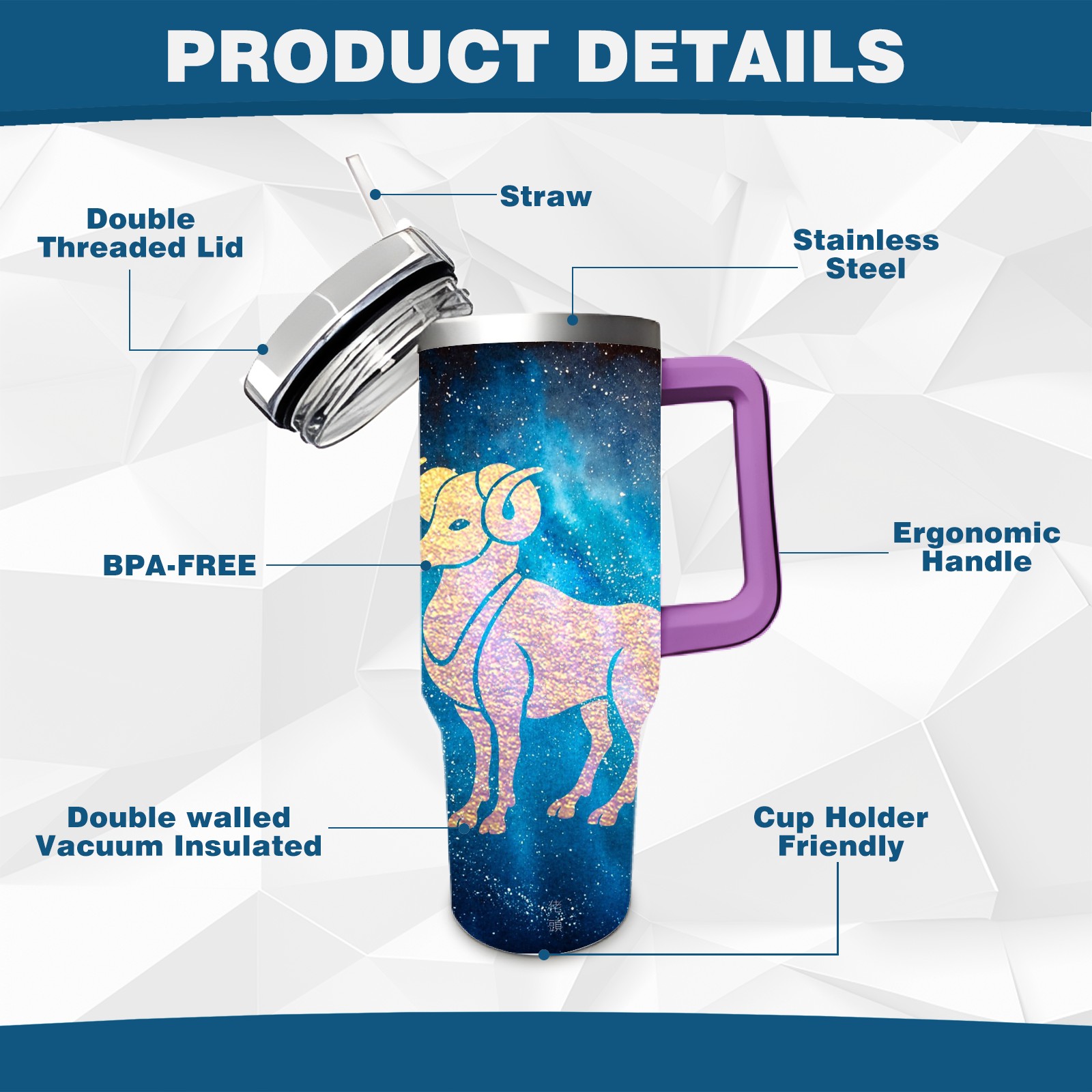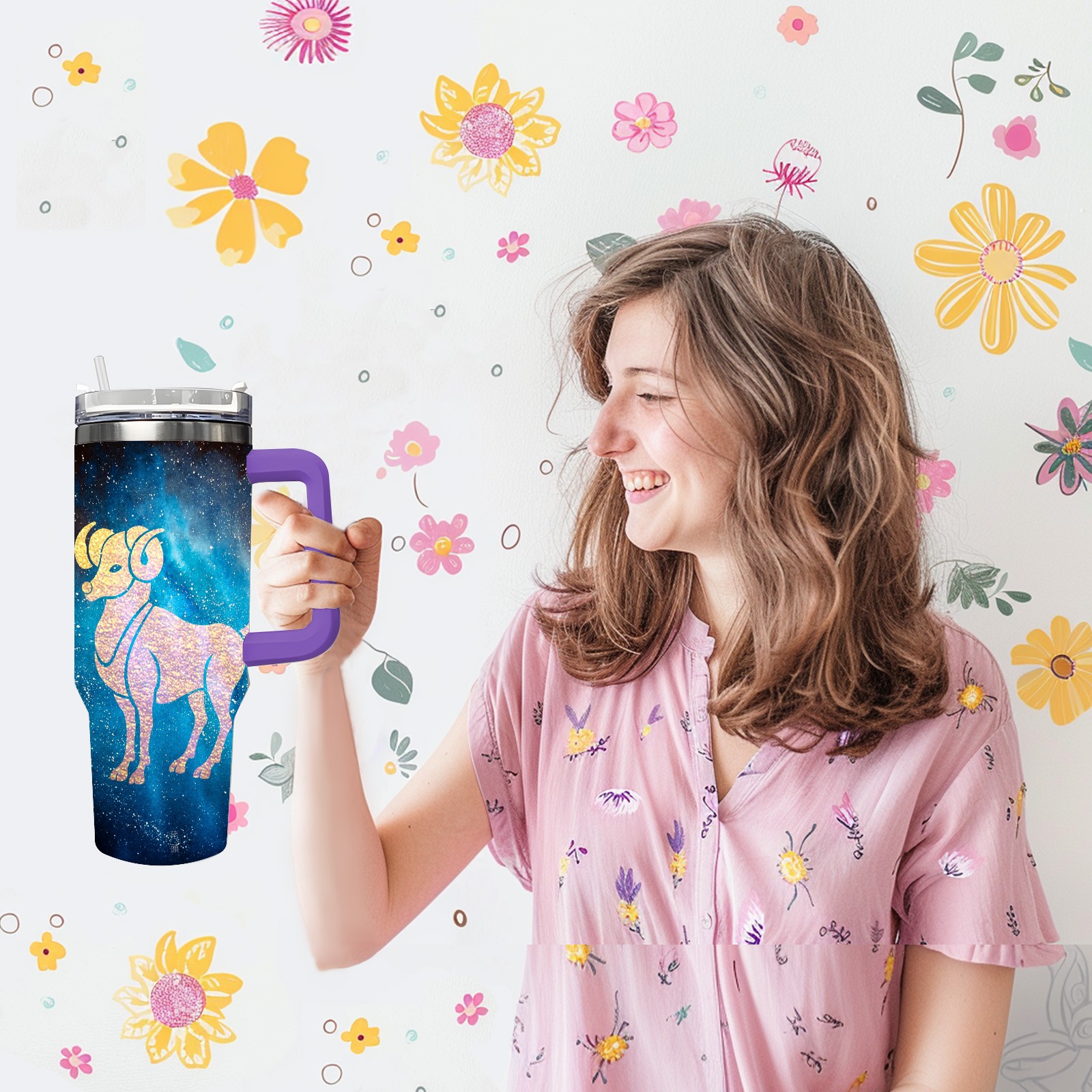 40oz 十二星座 白羊座 thermos with lid and straw, leak-proof stainless steel, with handle, spill-proof bottle, convenient for travel(purple)