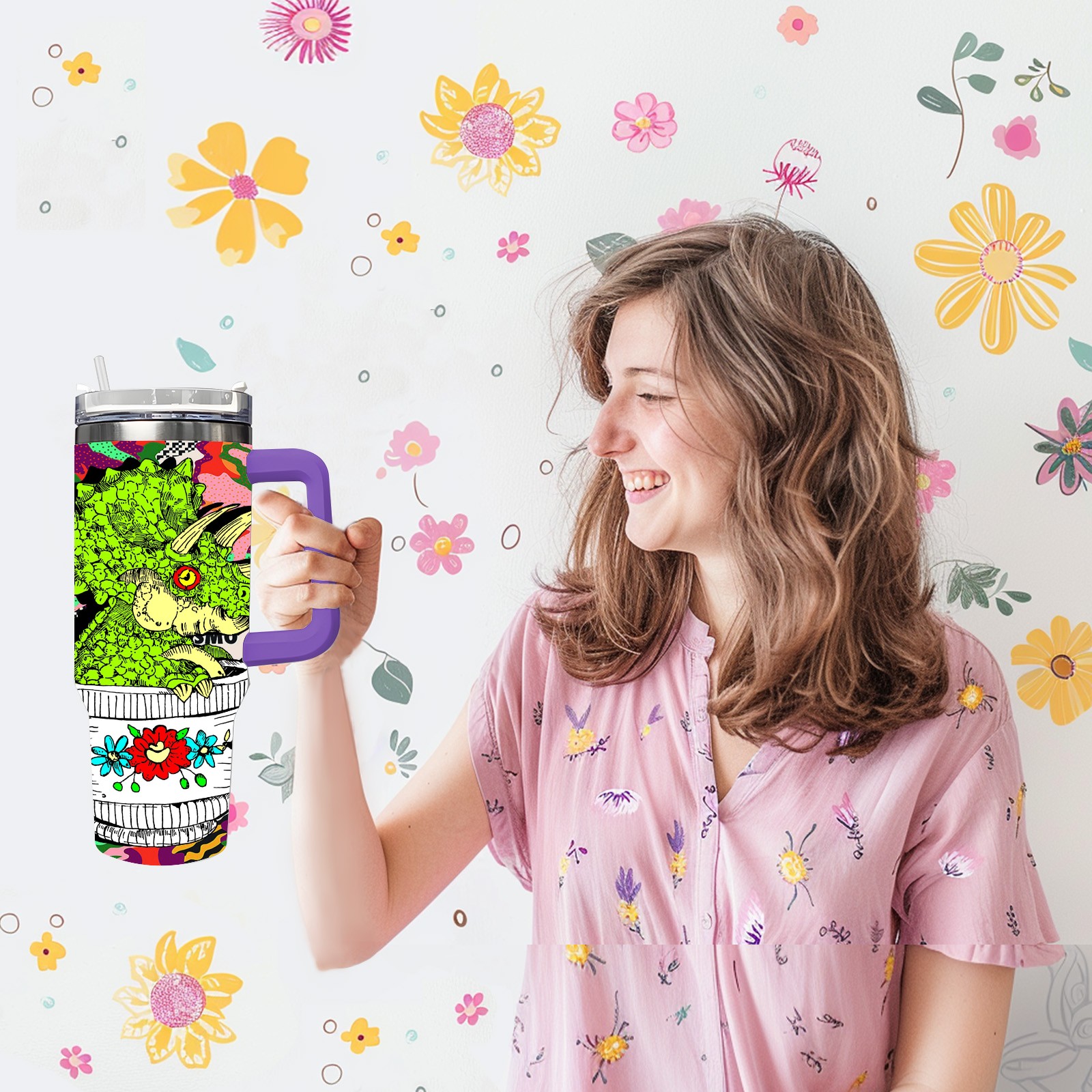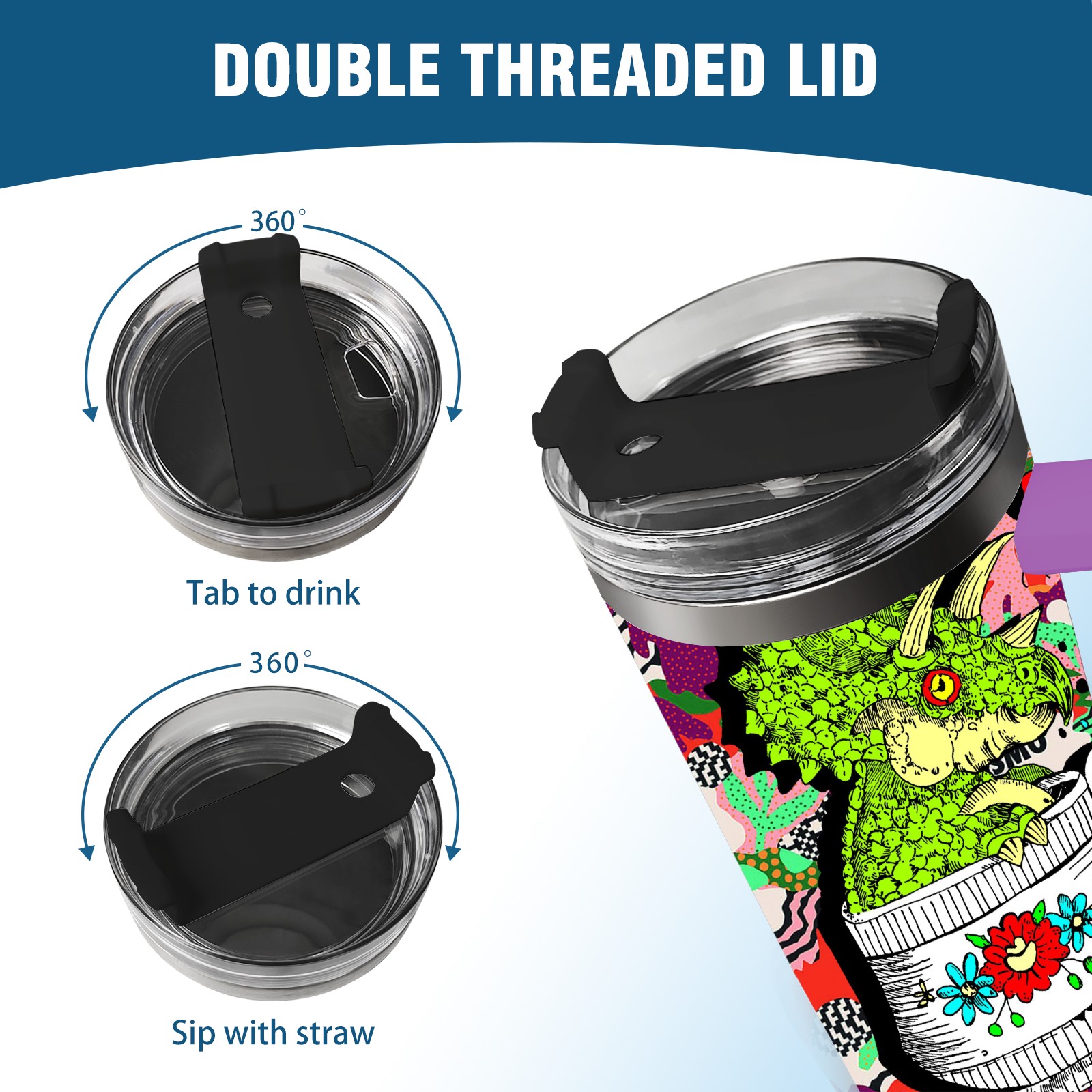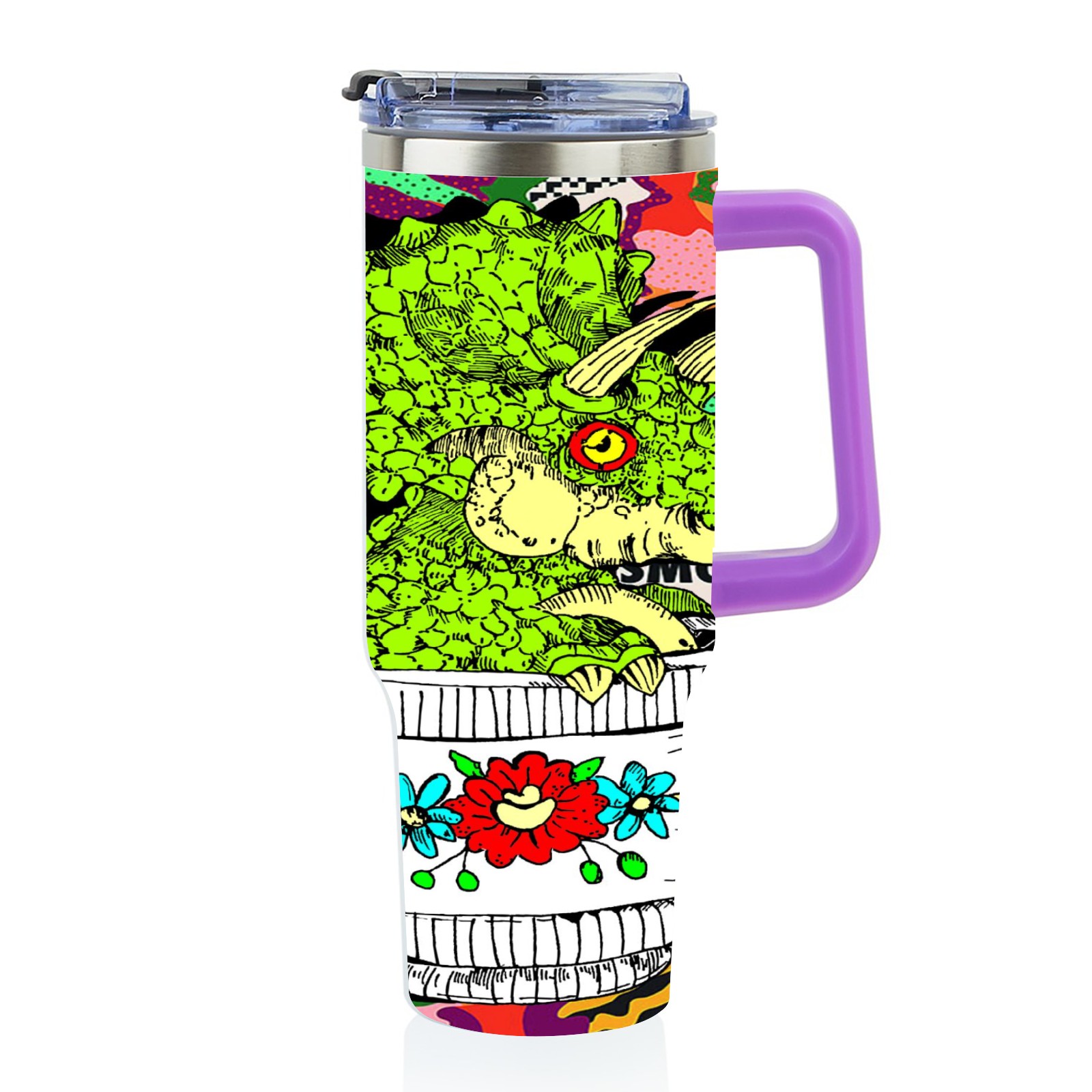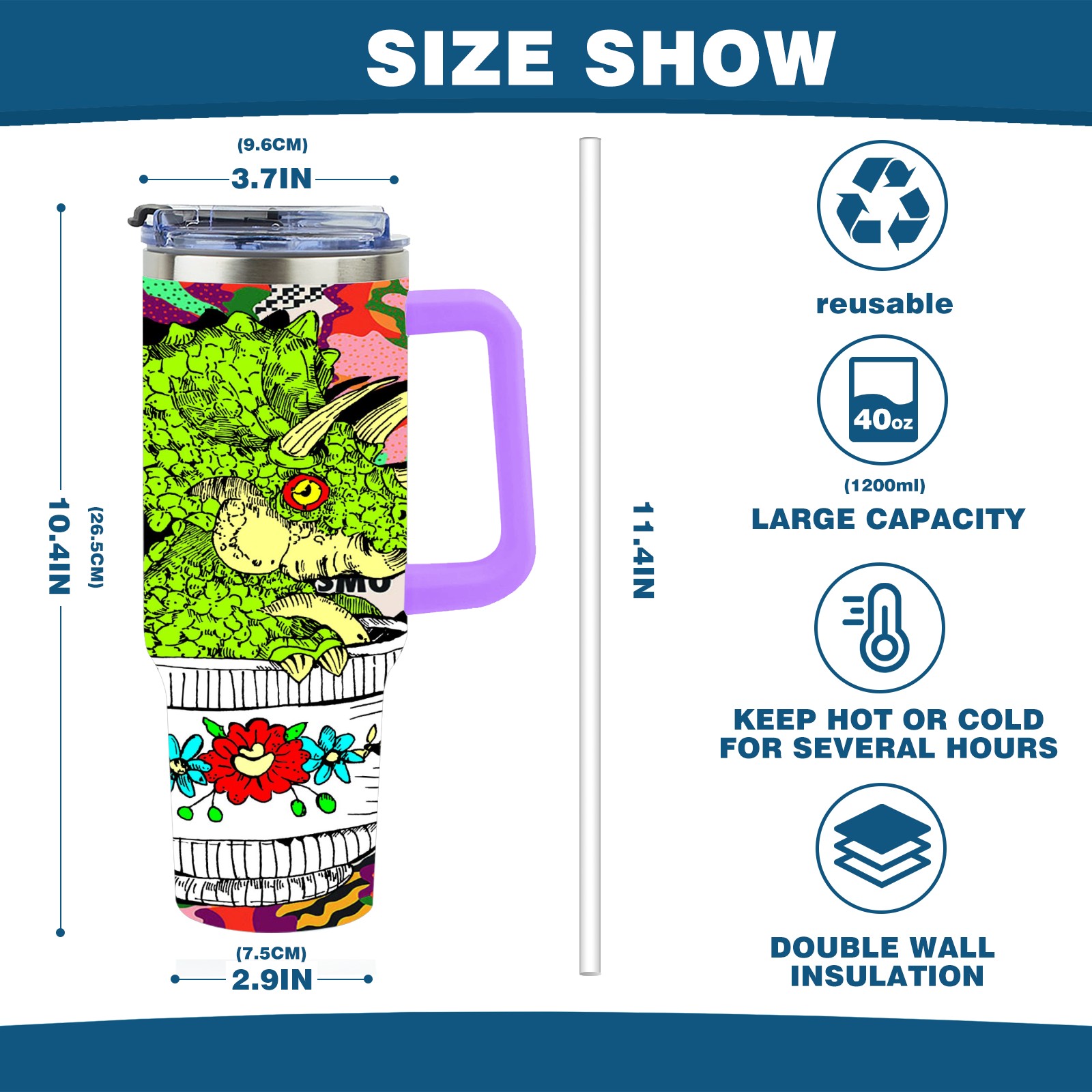 40oz 小恐龙 thermos with lid and straw, leak-proof stainless steel, with handle, spill-proof bottle, convenient for travel(purple)