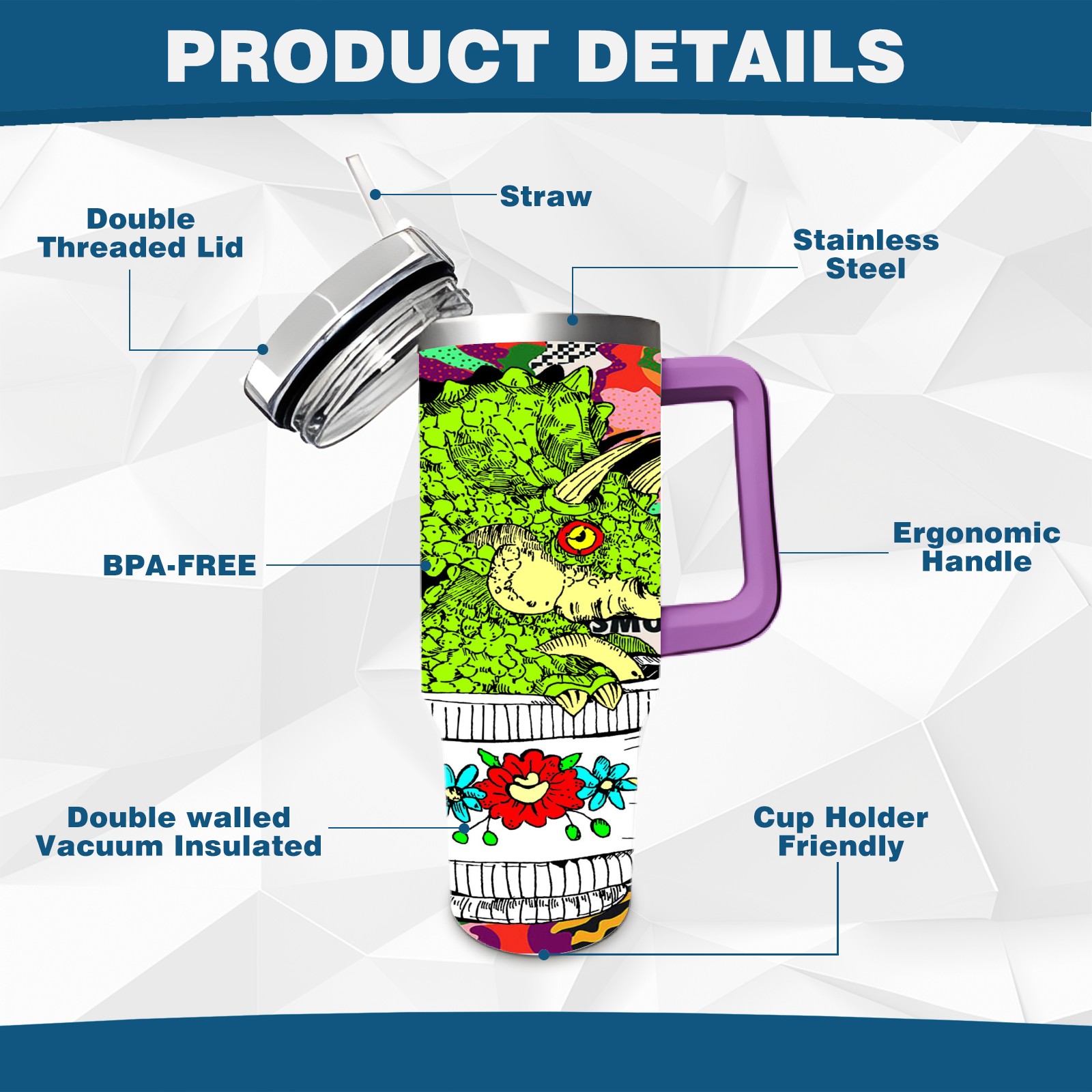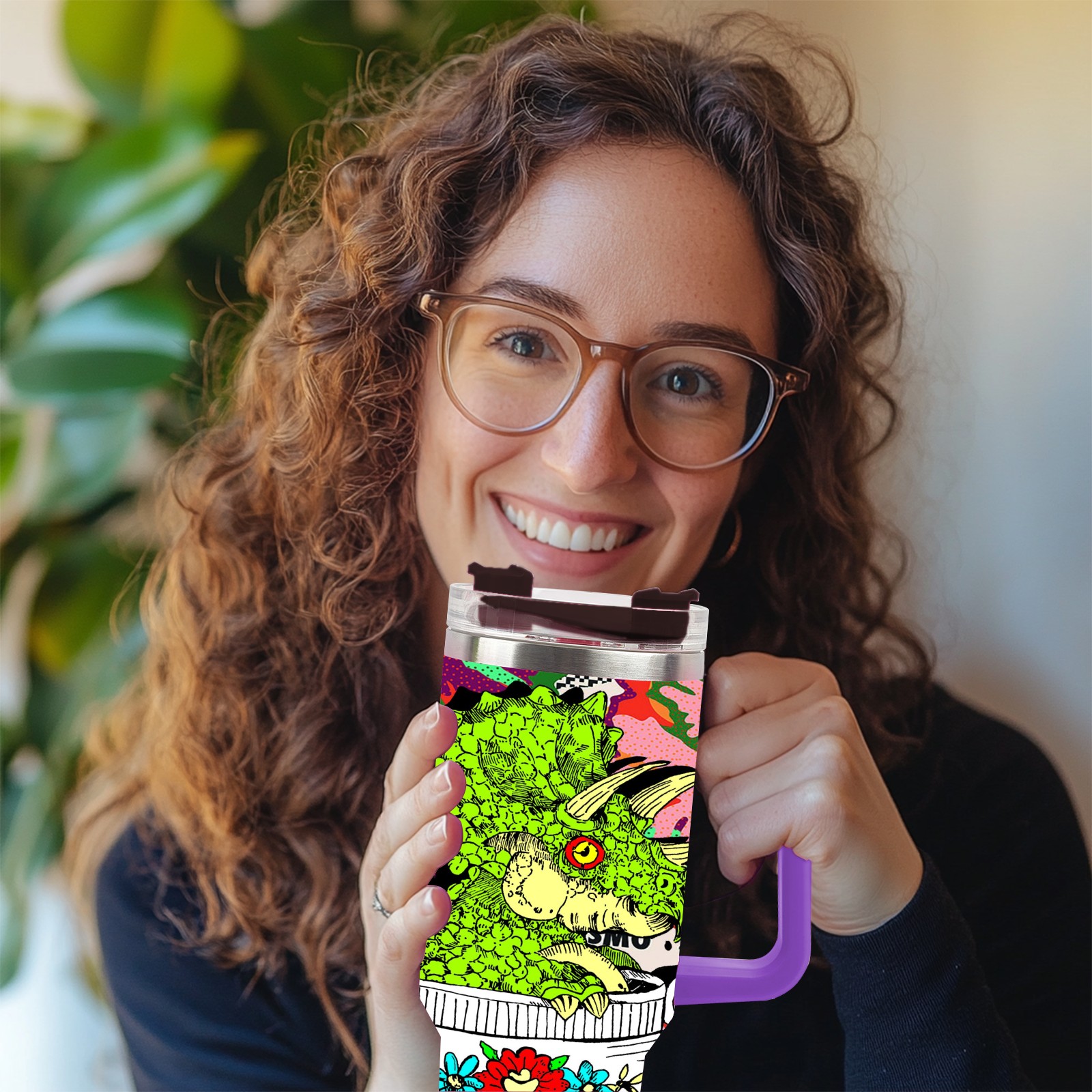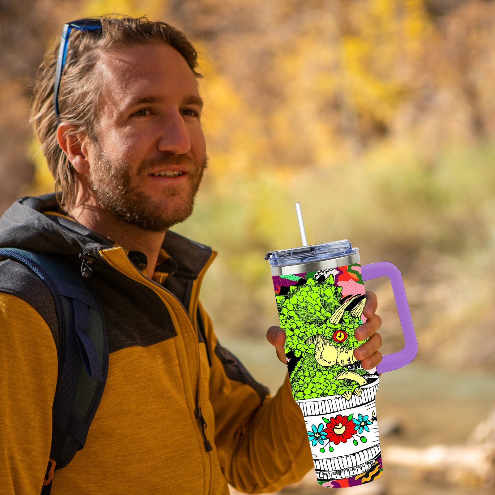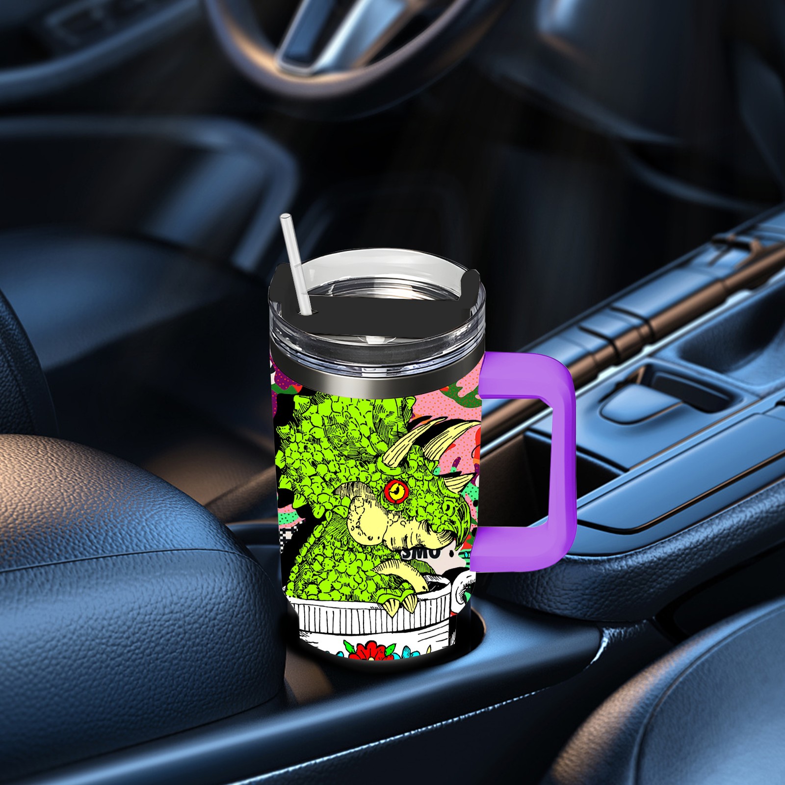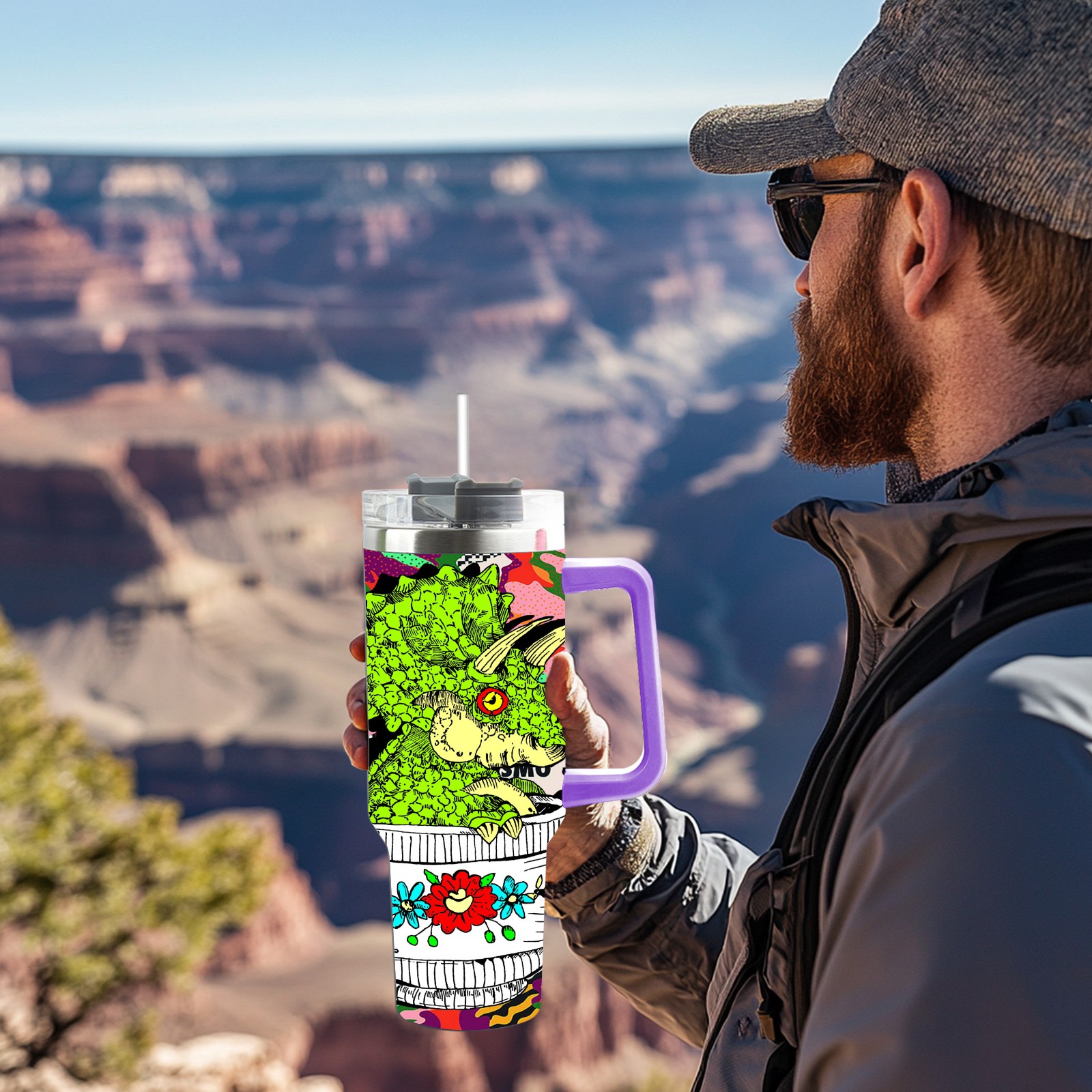 40oz 小恐龙 thermos with lid and straw, leak-proof stainless steel, with handle, spill-proof bottle, convenient for travel(purple)