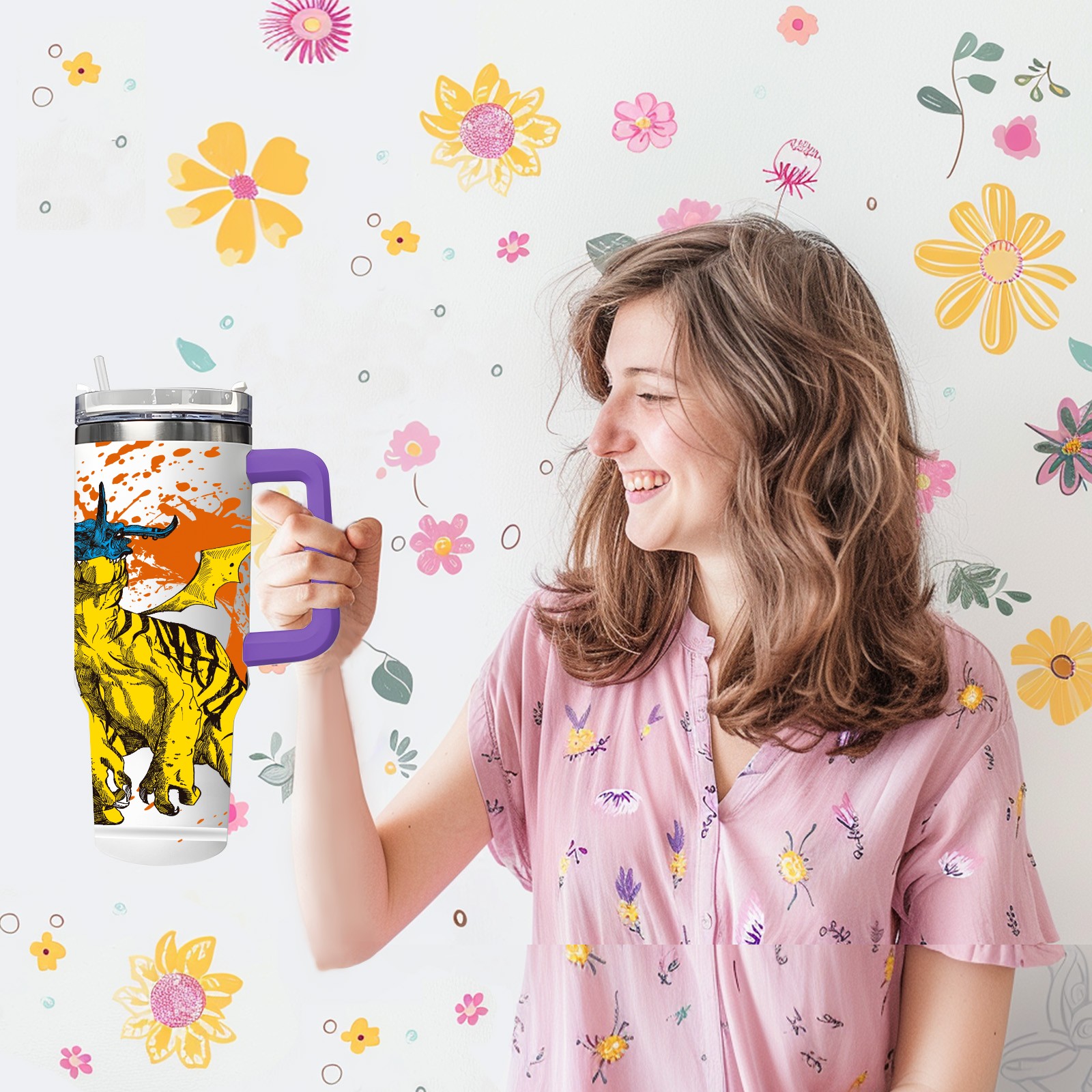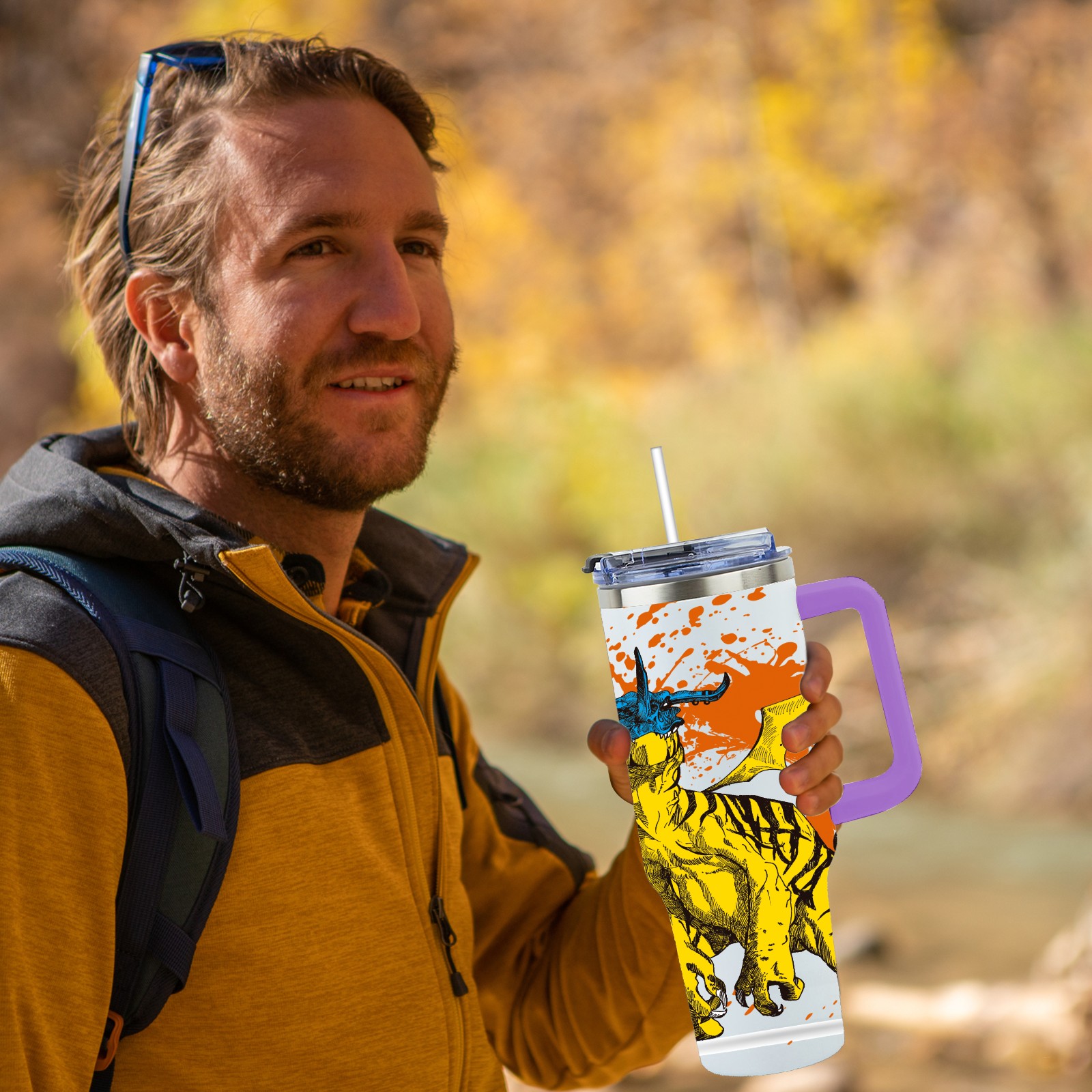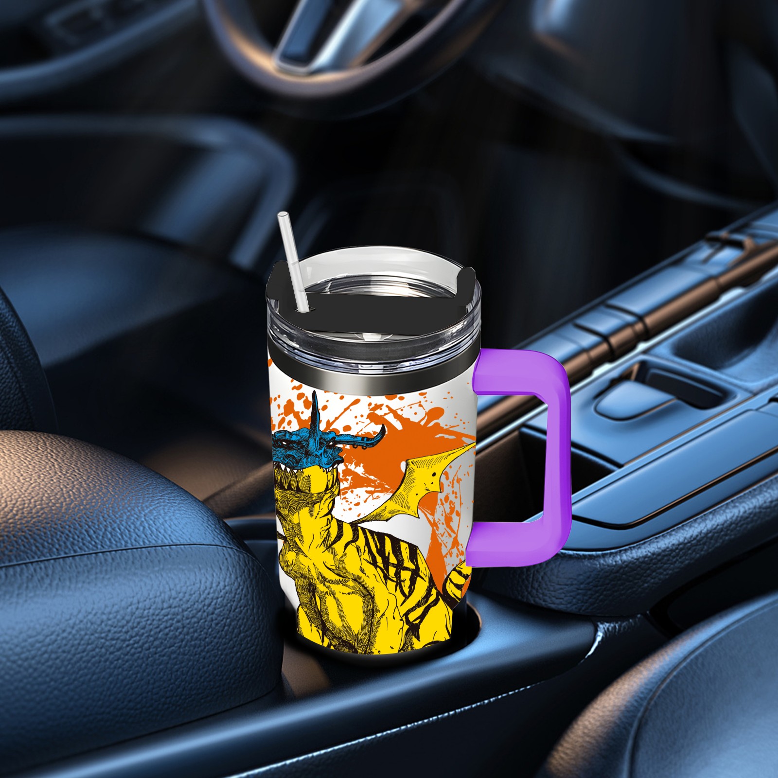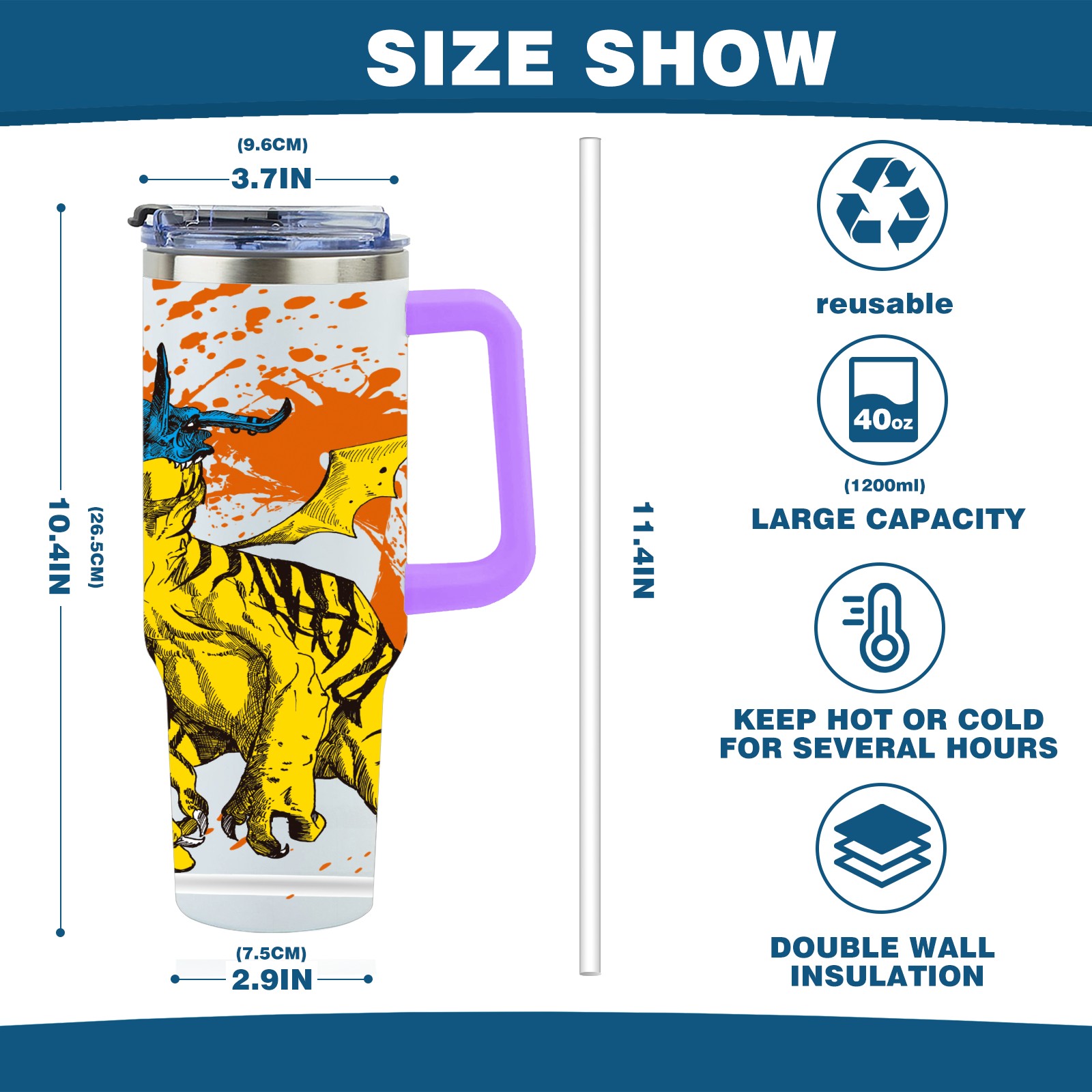 40oz 微信图片_20210421141324 thermos with lid and straw, leak-proof stainless steel, with handle, spill-proof bottle, convenient for travel(purple)
