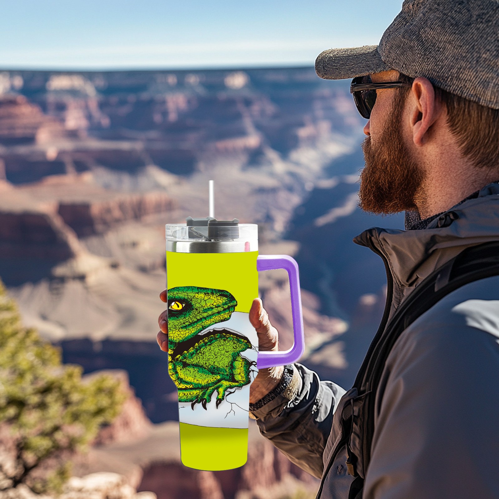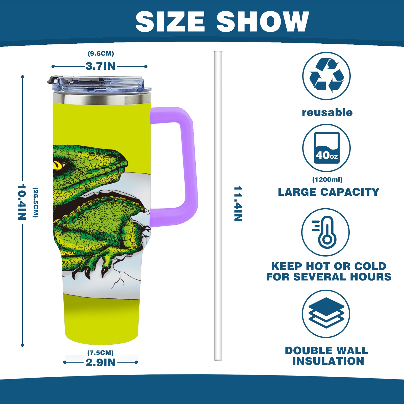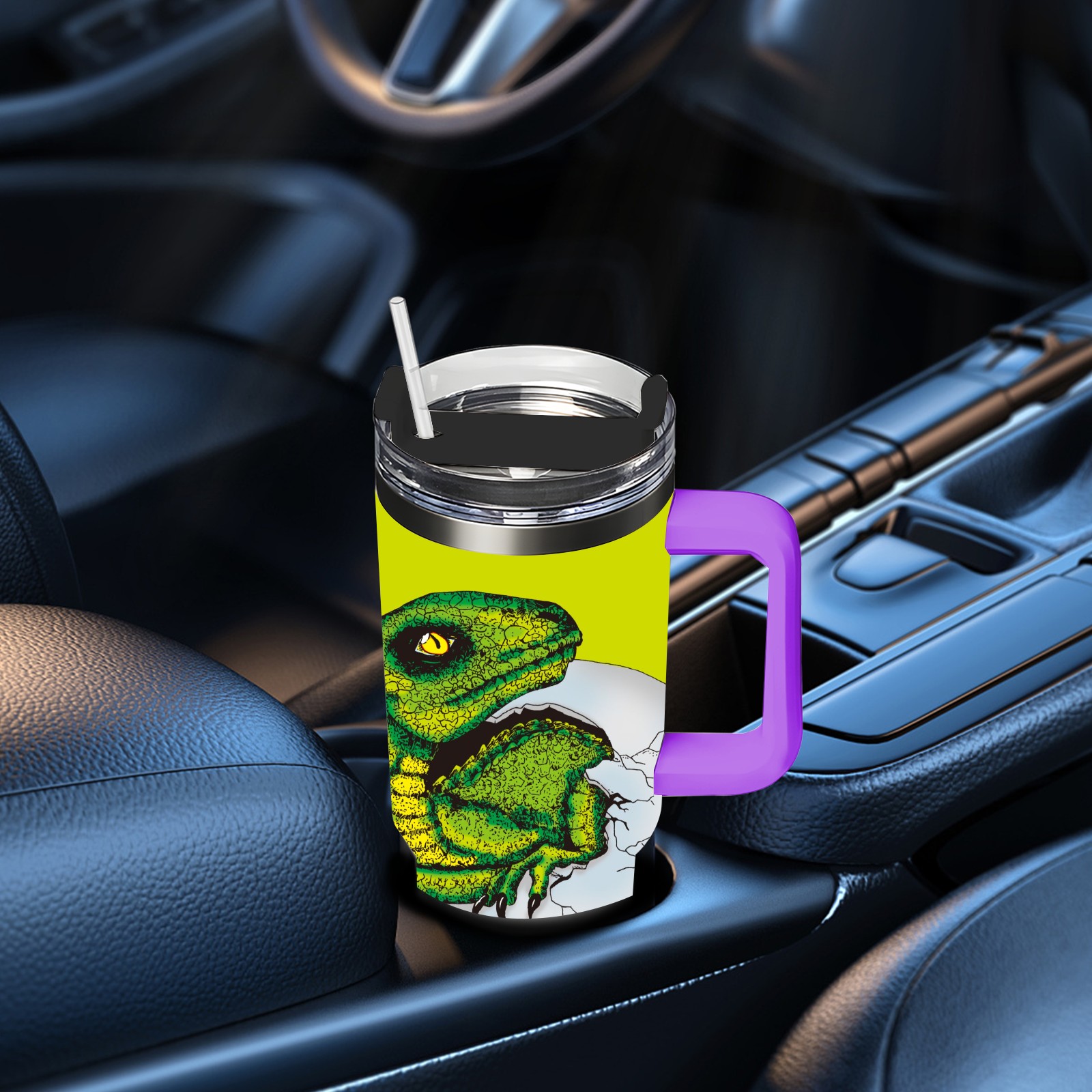 40oz 破蛋龙 thermos with lid and straw, leak-proof stainless steel, with handle, spill-proof bottle, convenient for travel(purple)