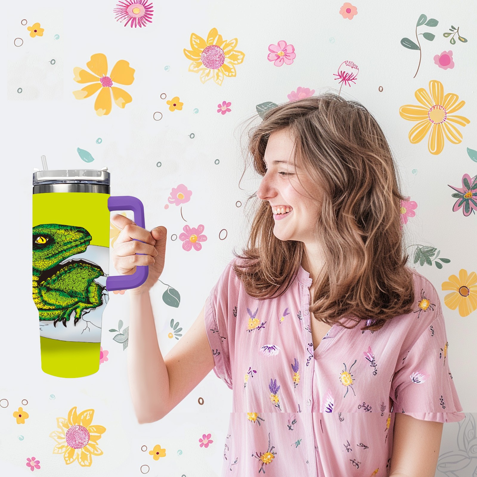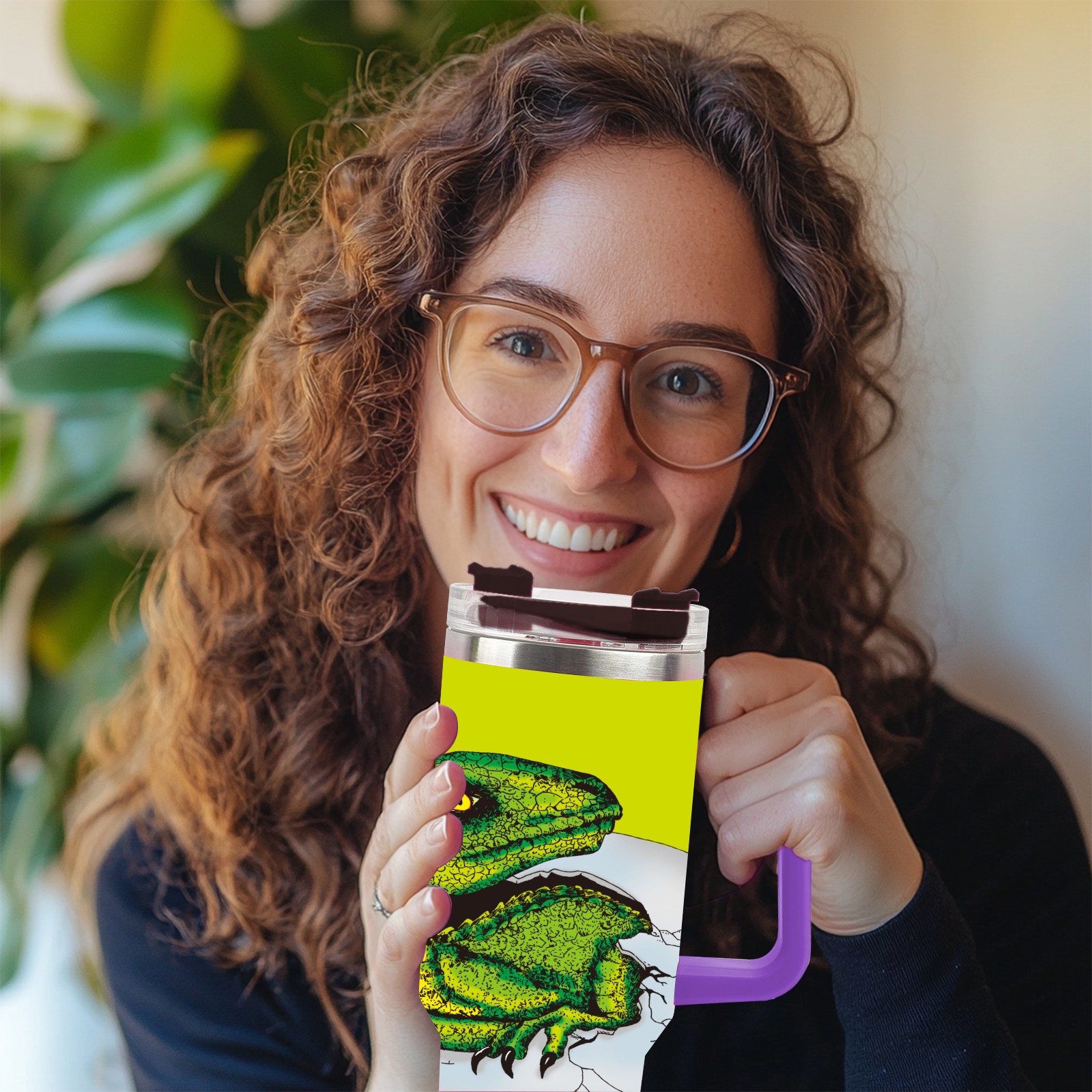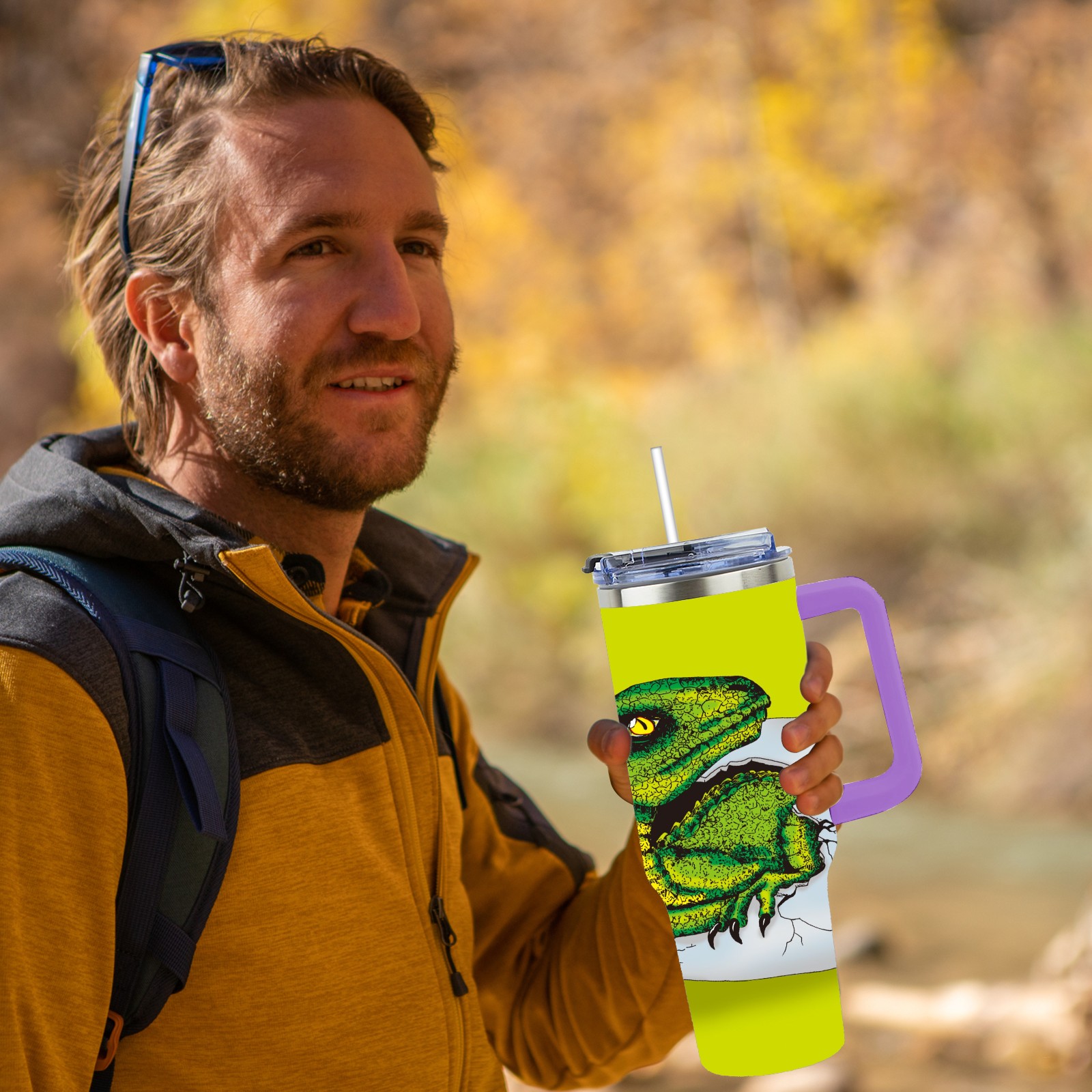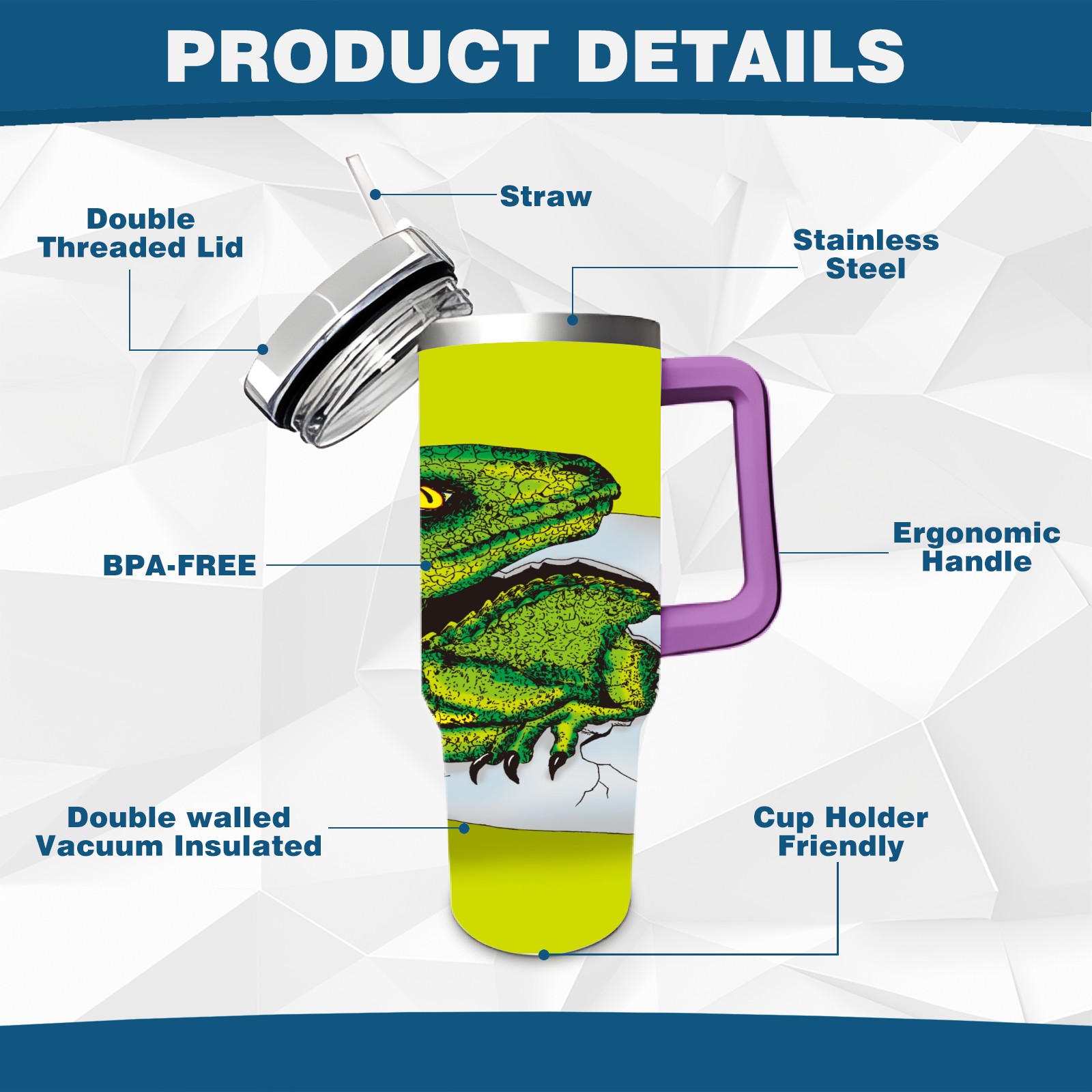40oz 破蛋龙 thermos with lid and straw, leak-proof stainless steel, with handle, spill-proof bottle, convenient for travel(purple)