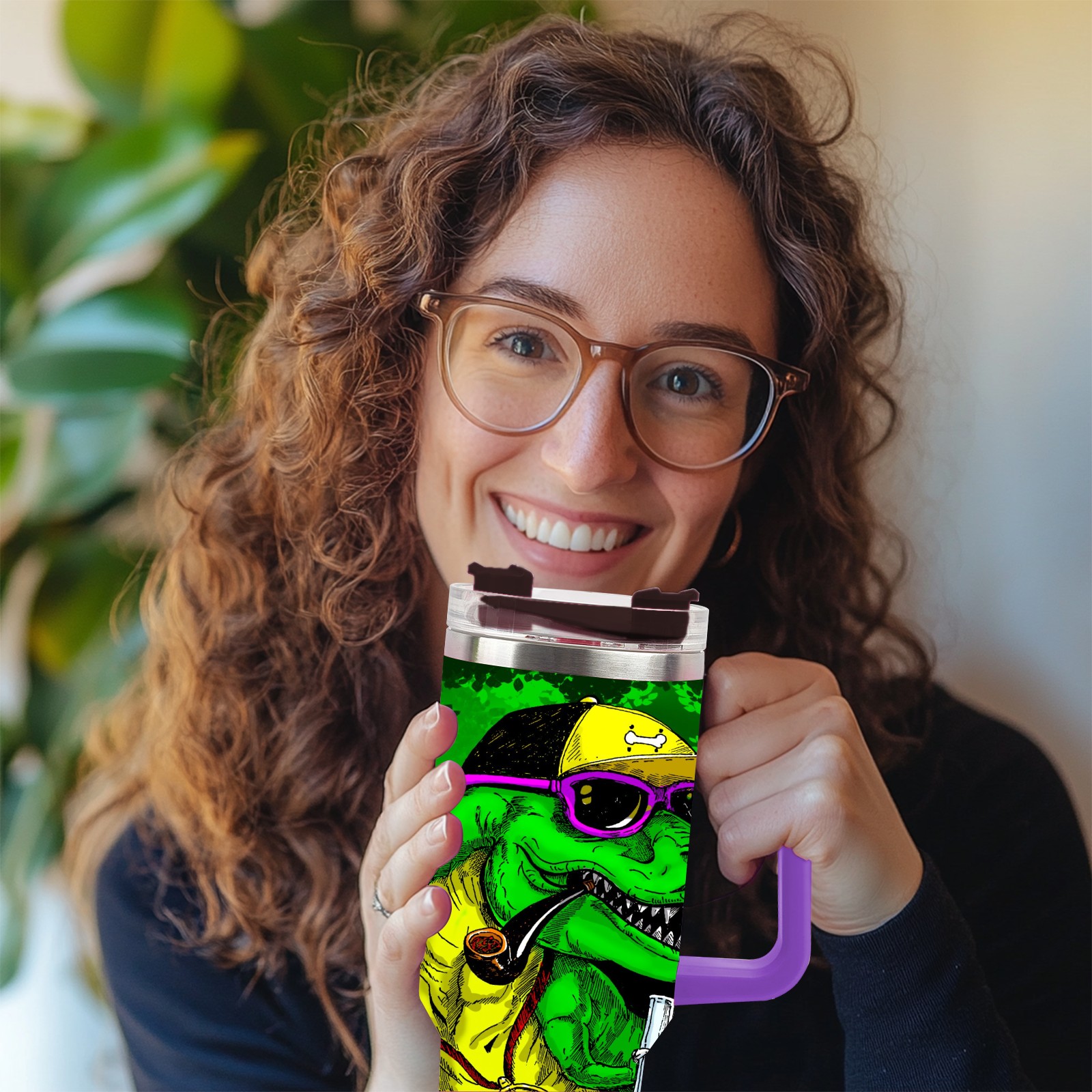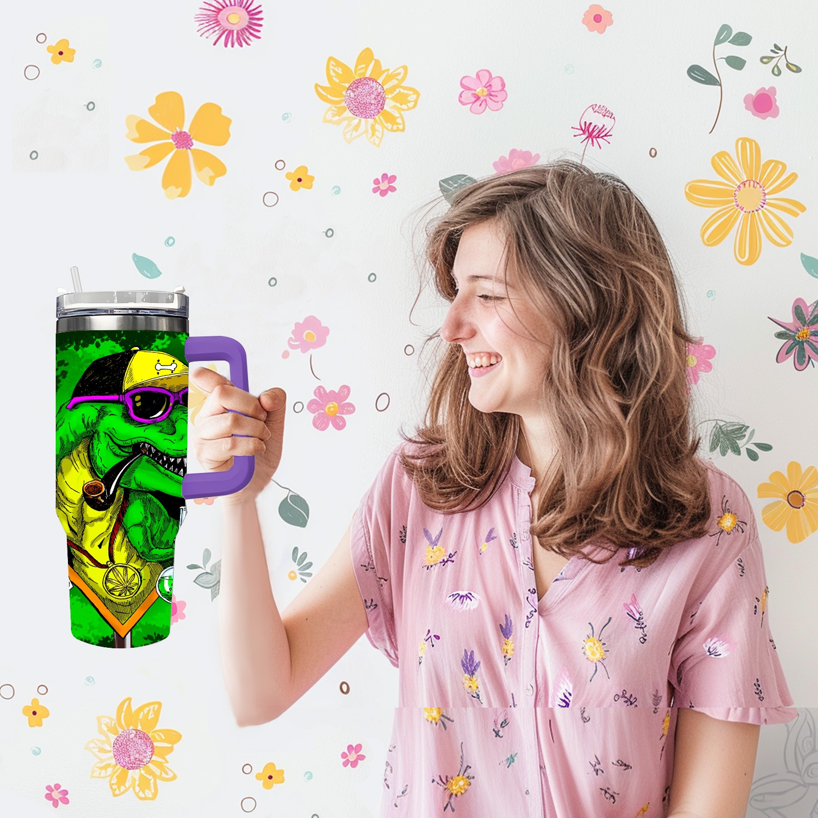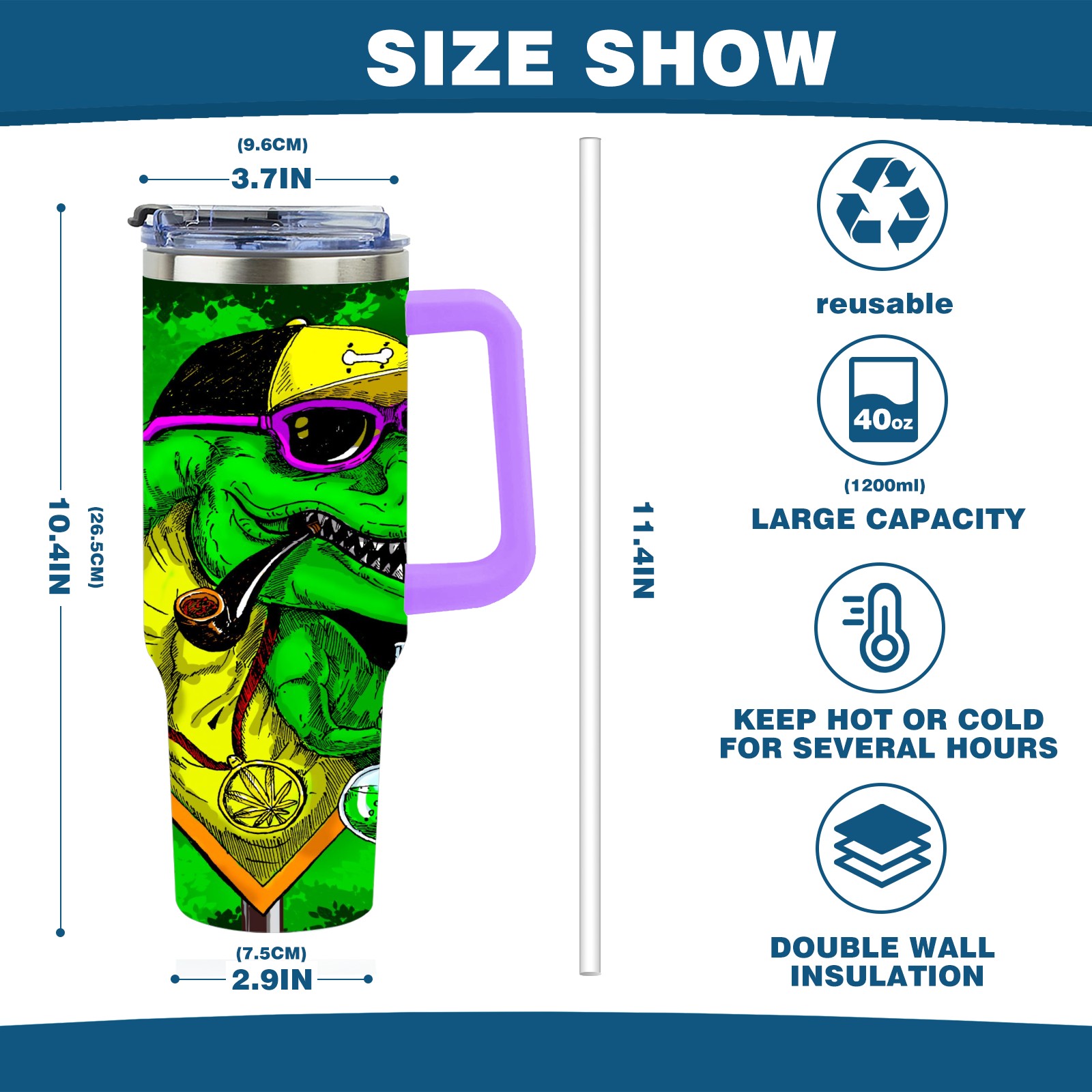 40oz 恐龙系列-药水零食龙加背景 thermos with lid and straw, leak-proof stainless steel, with handle, spill-proof bottle, convenient for travel(purple)