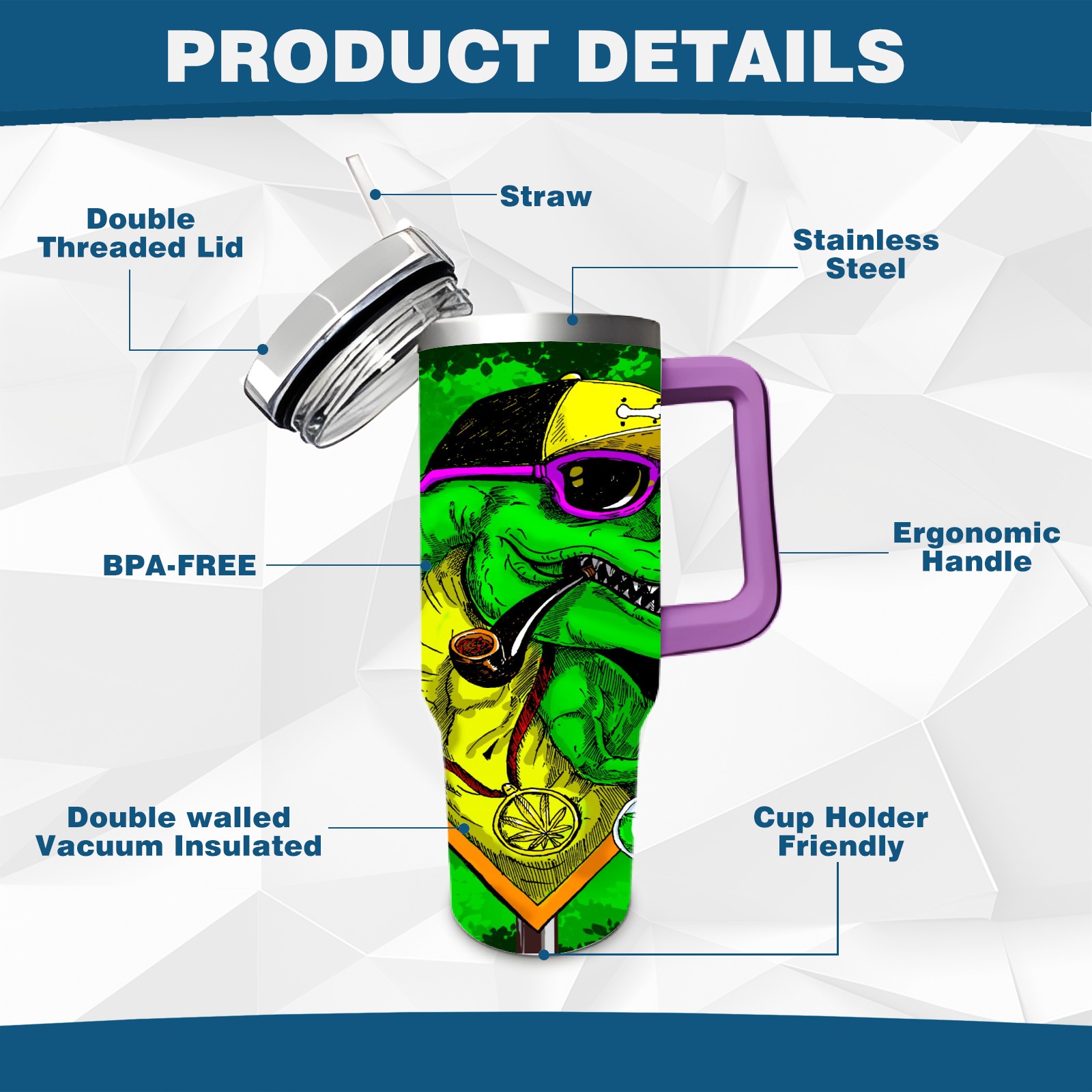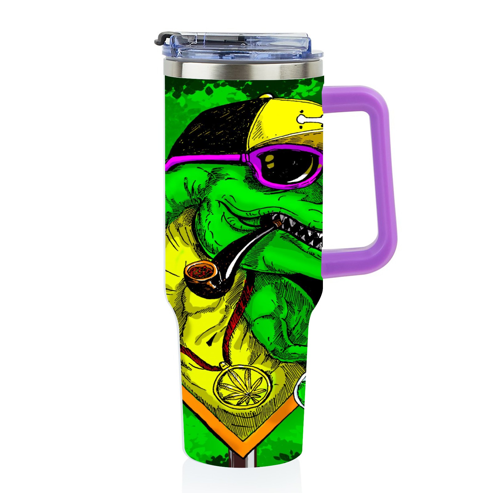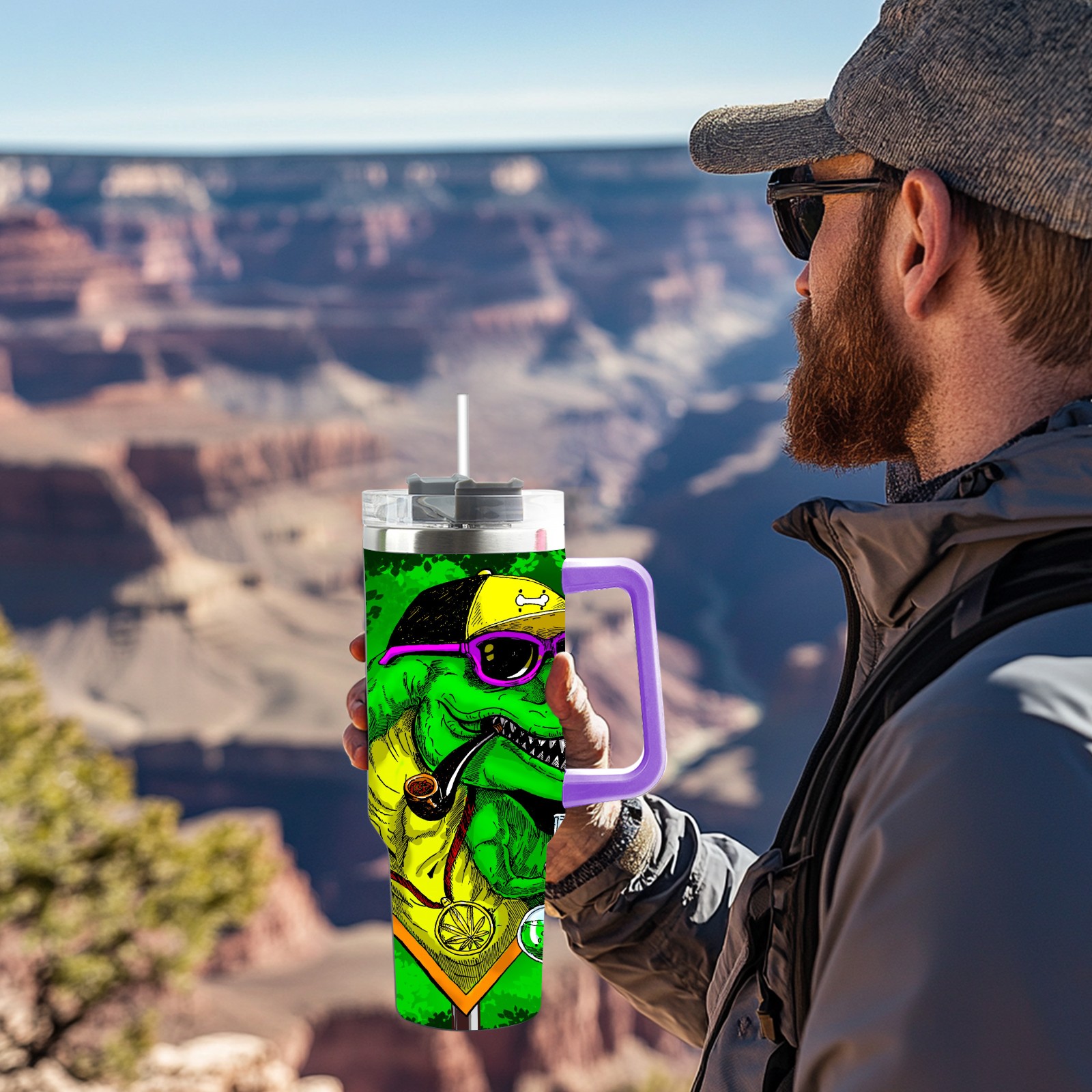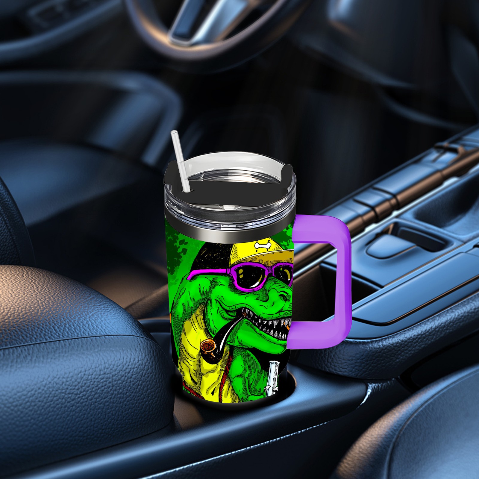 40oz 恐龙系列-药水零食龙加背景 thermos with lid and straw, leak-proof stainless steel, with handle, spill-proof bottle, convenient for travel(purple)