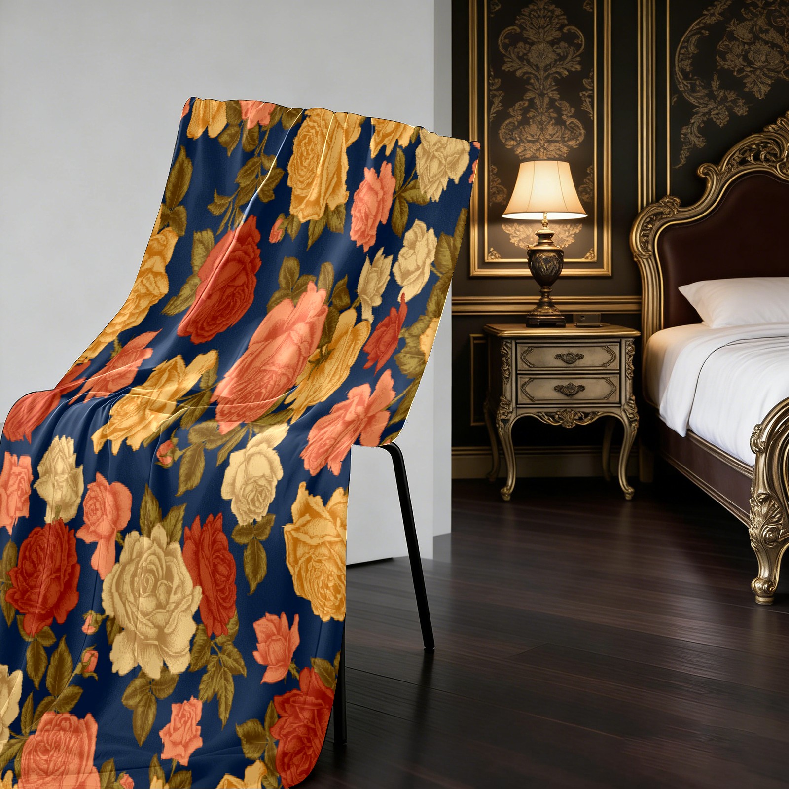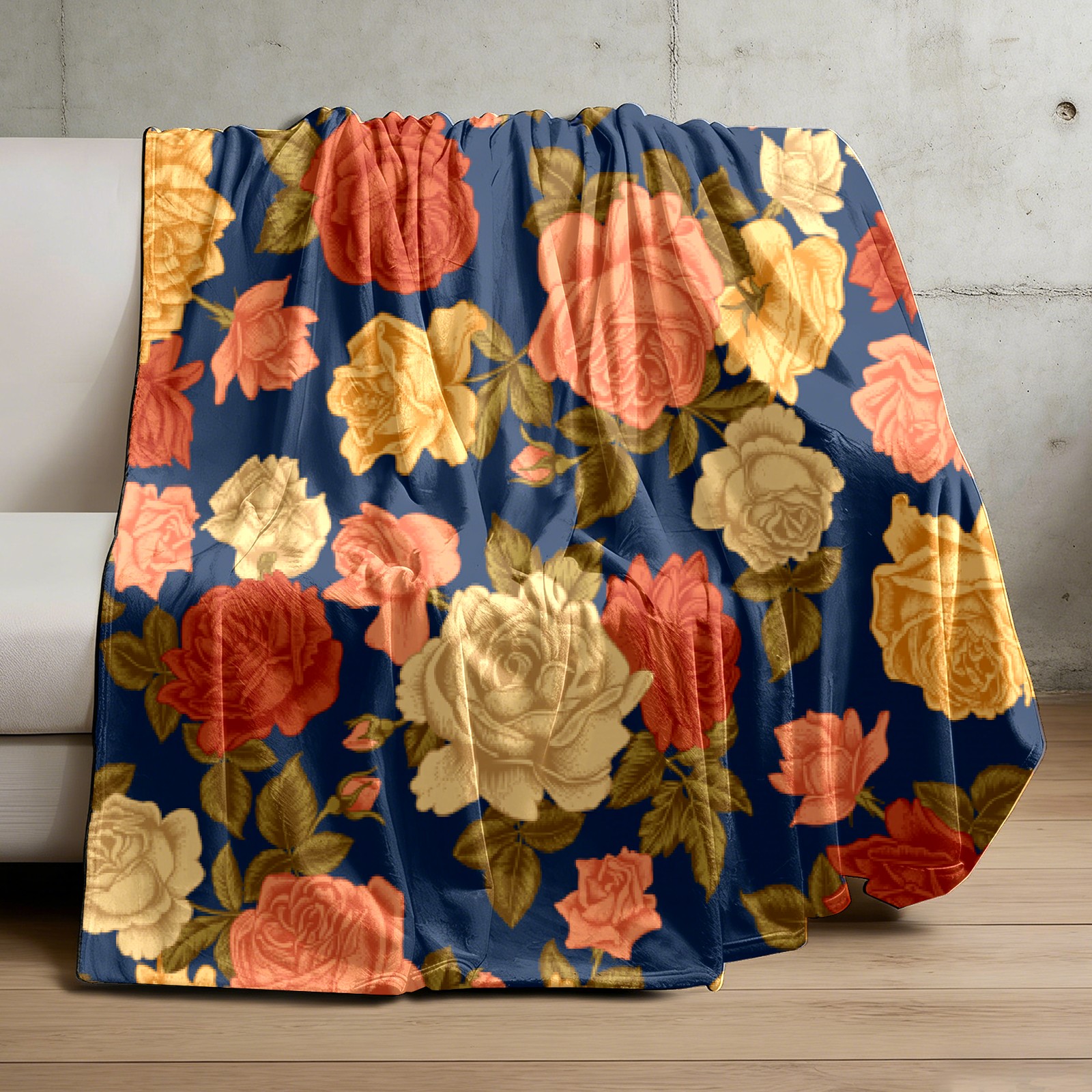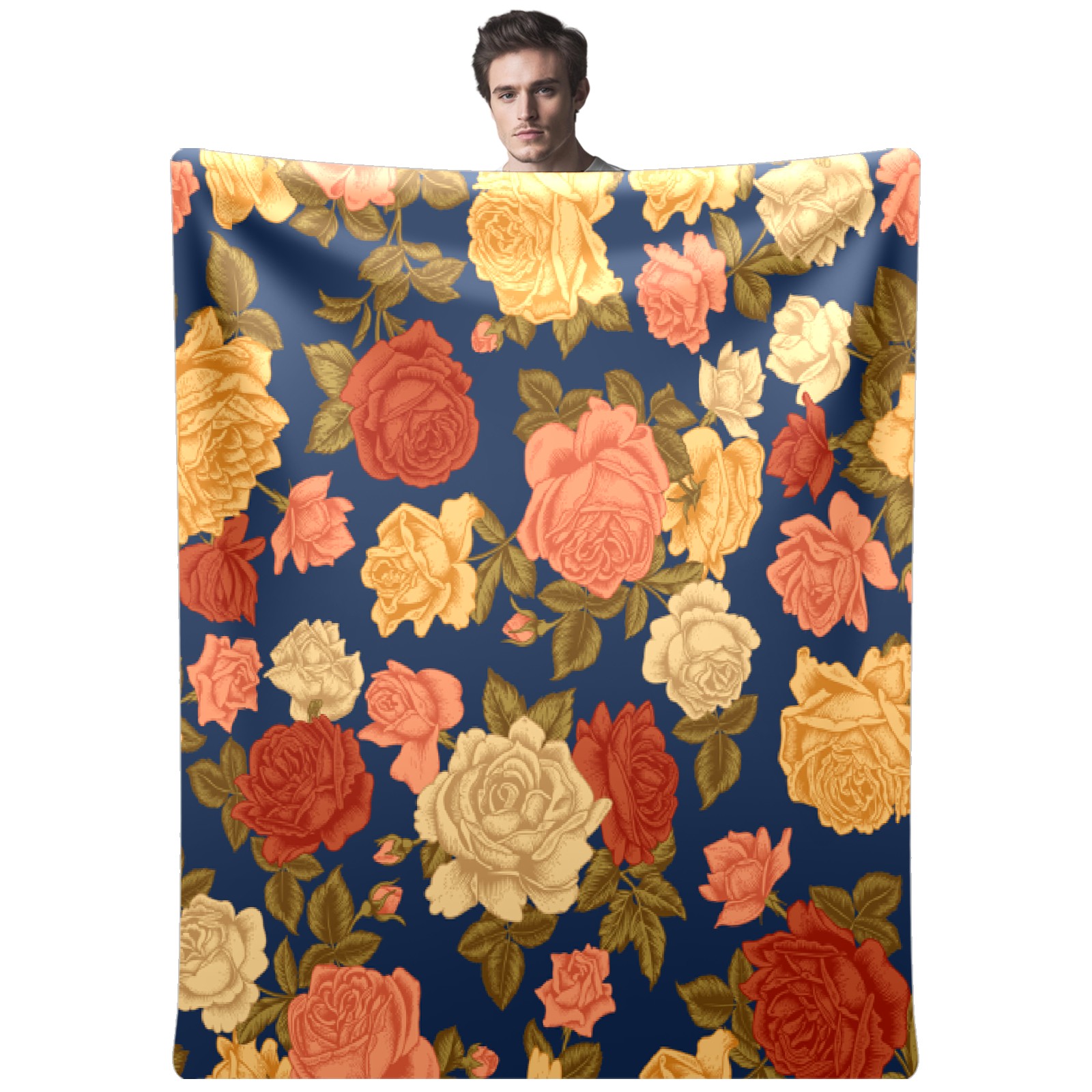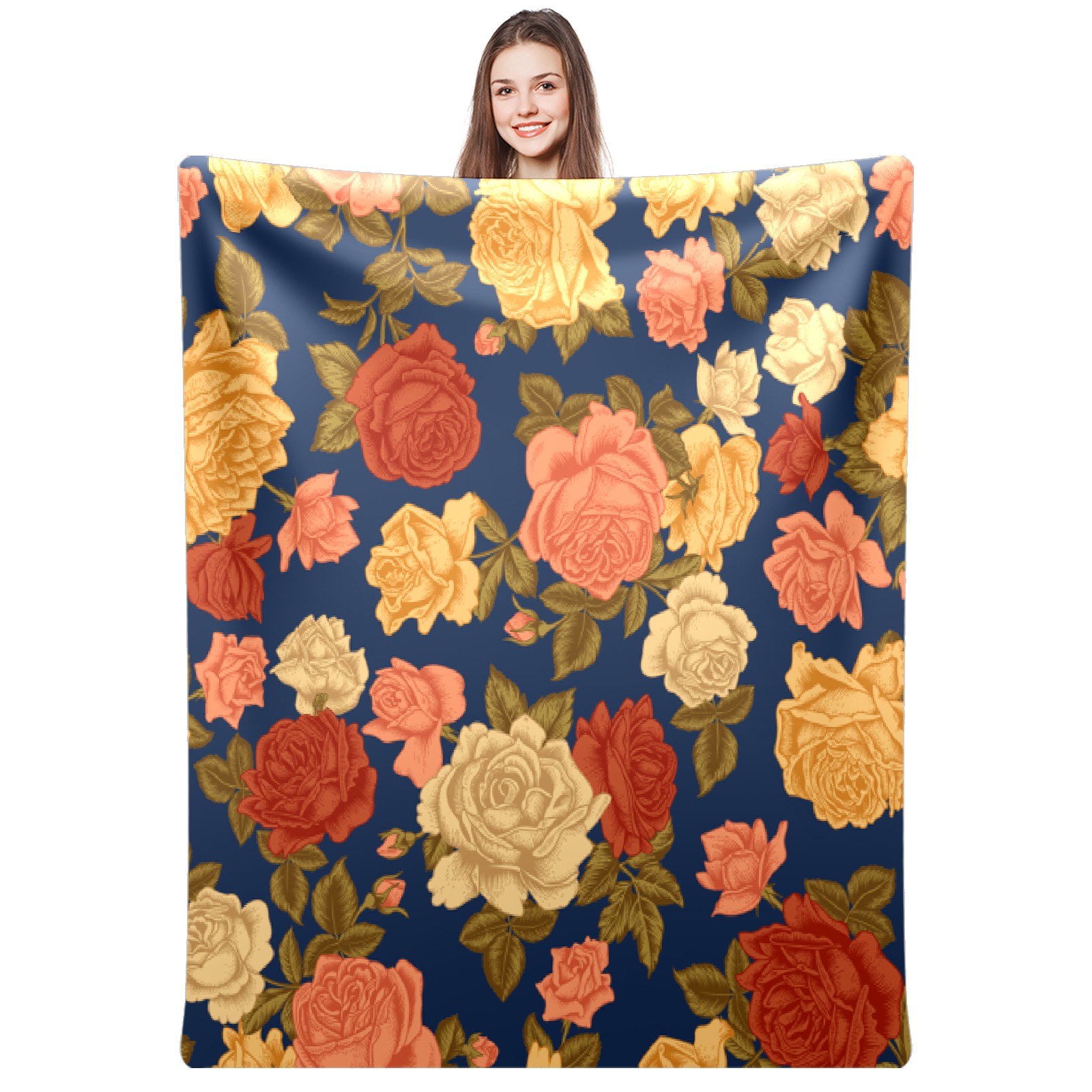 Vintage Rose Flowers Navy