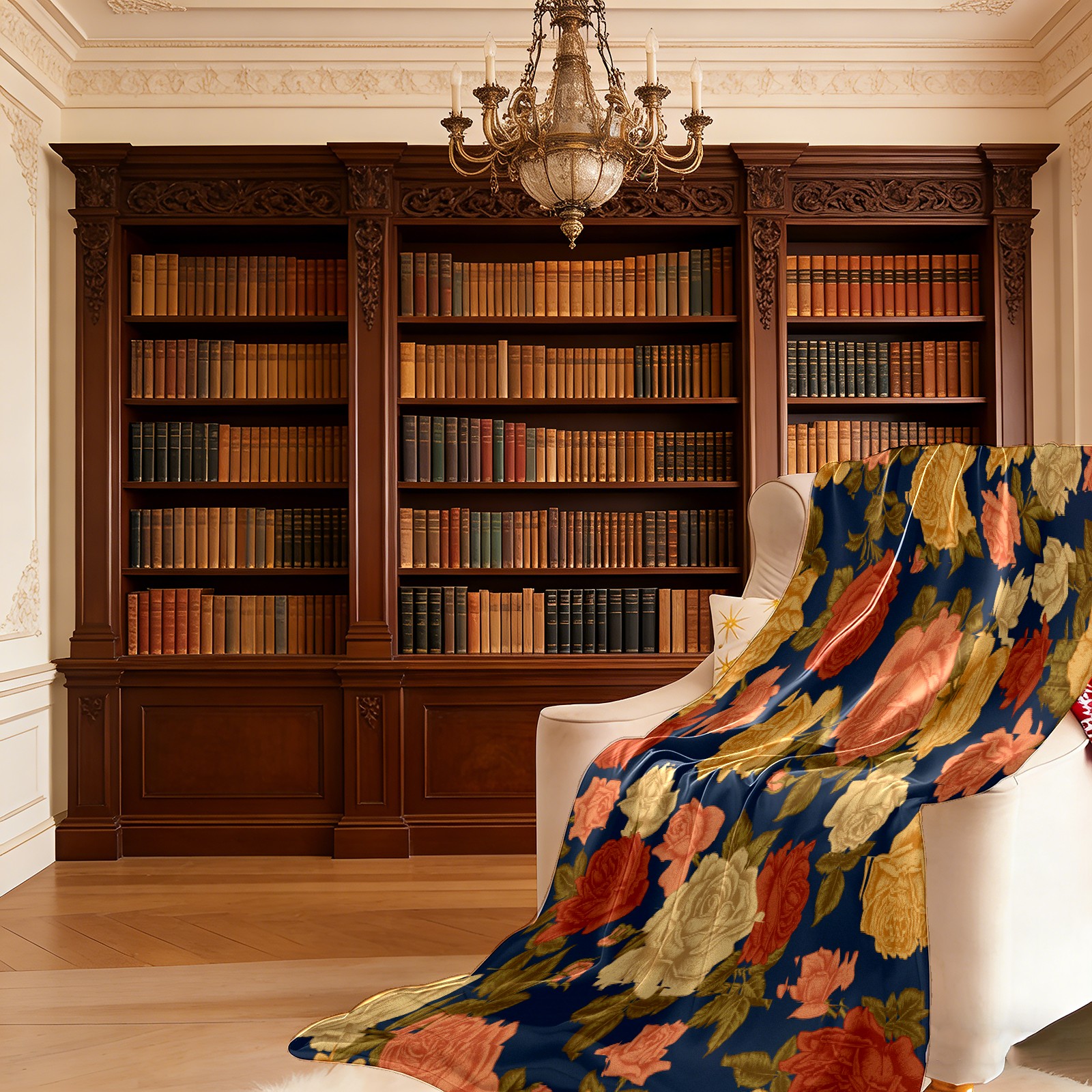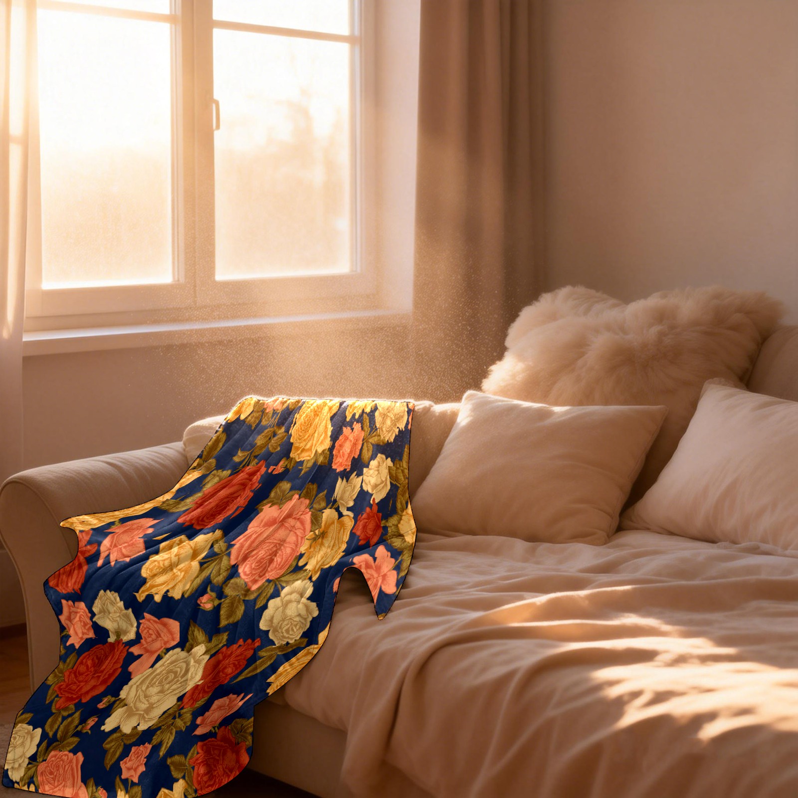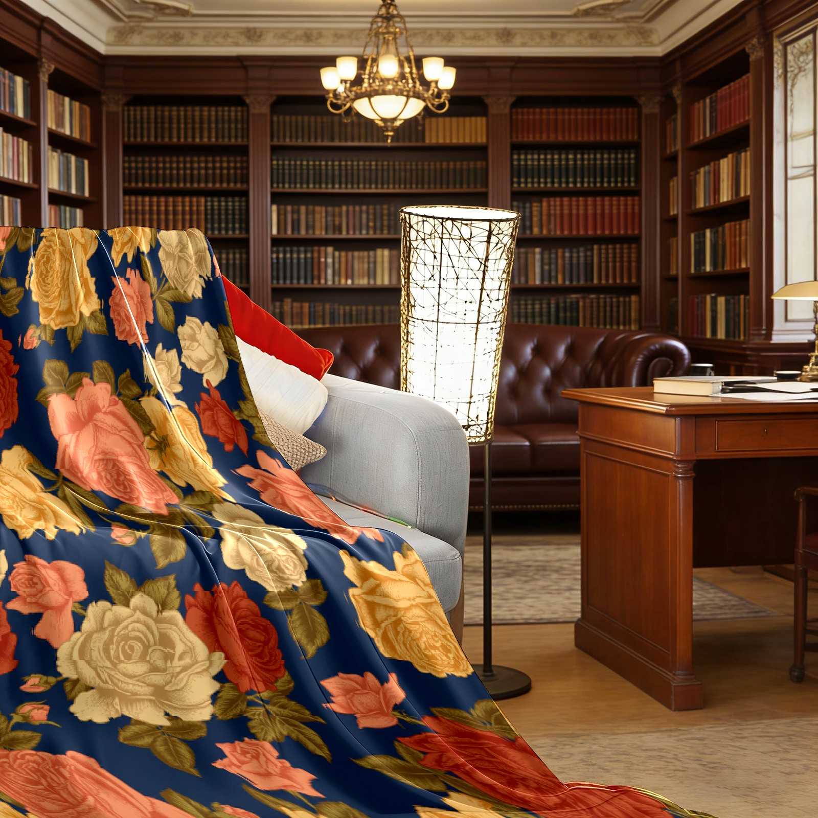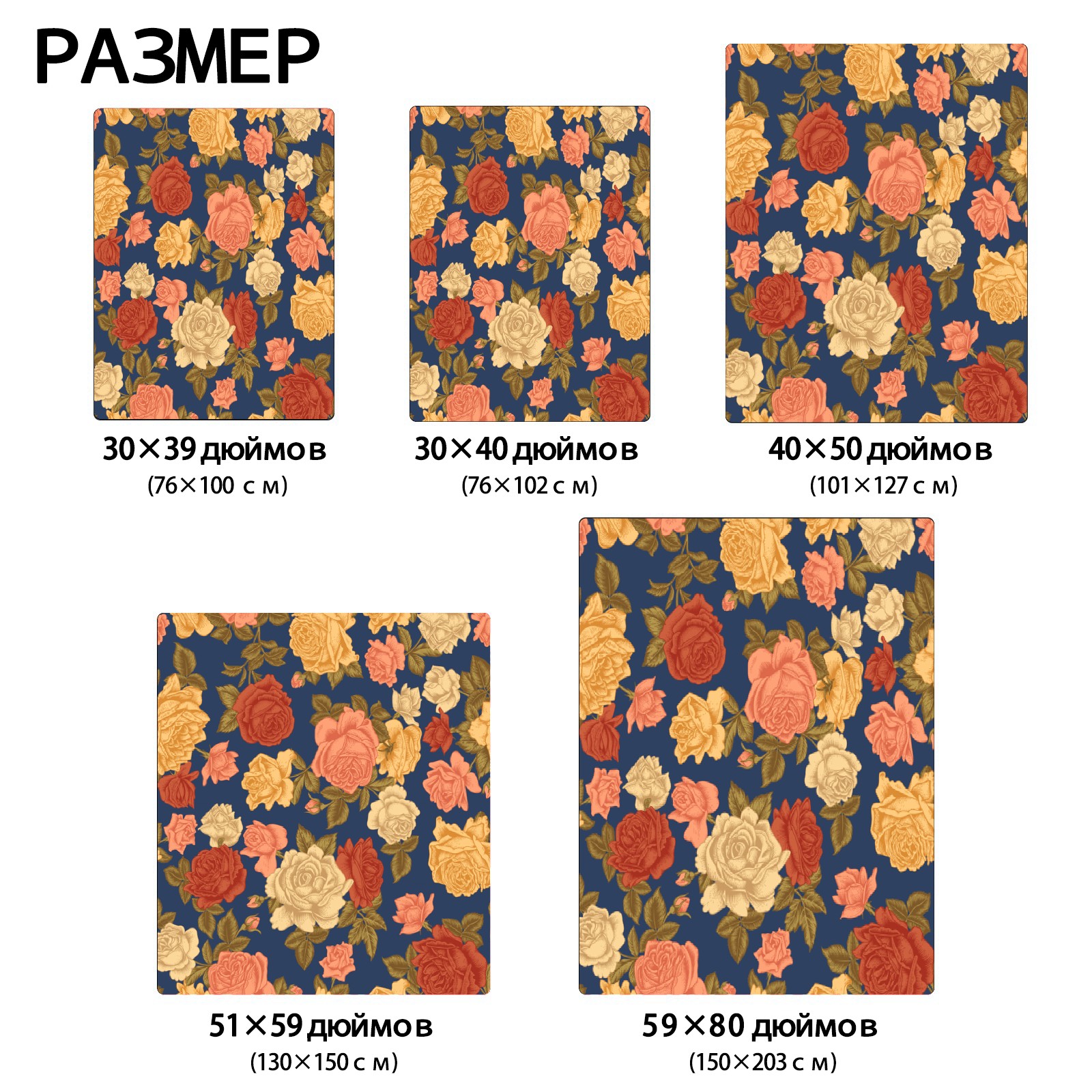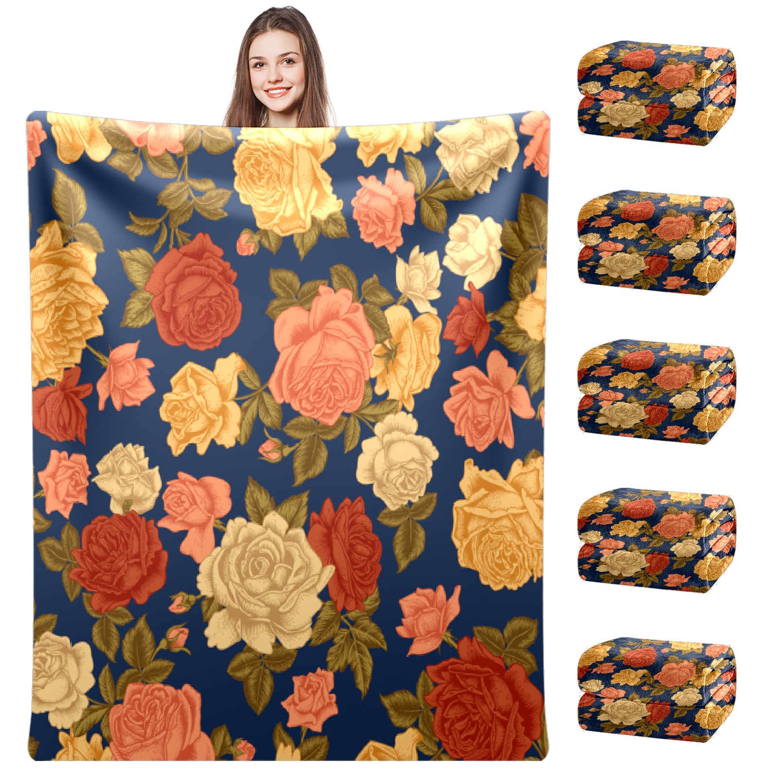Vintage Rose Flowers Navy