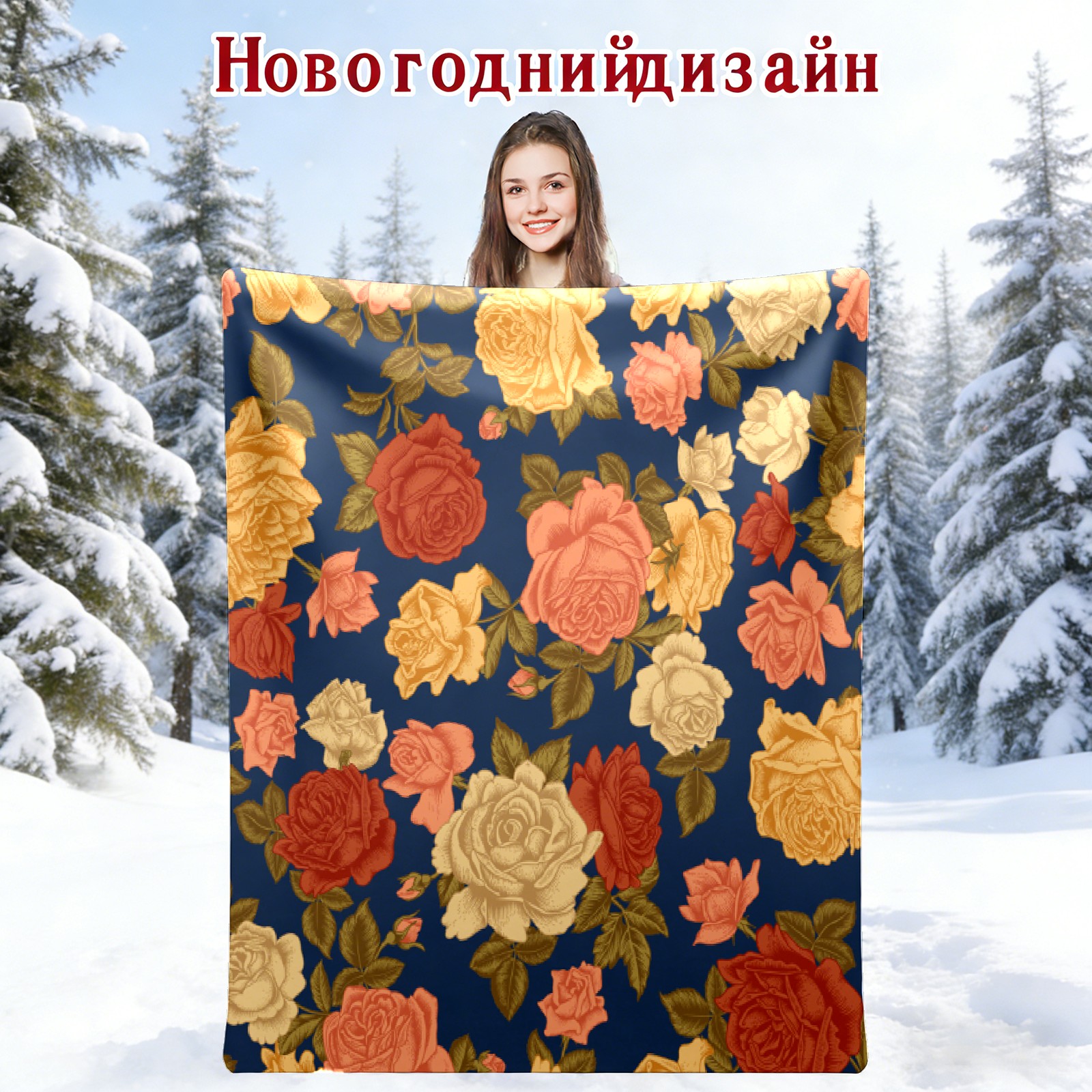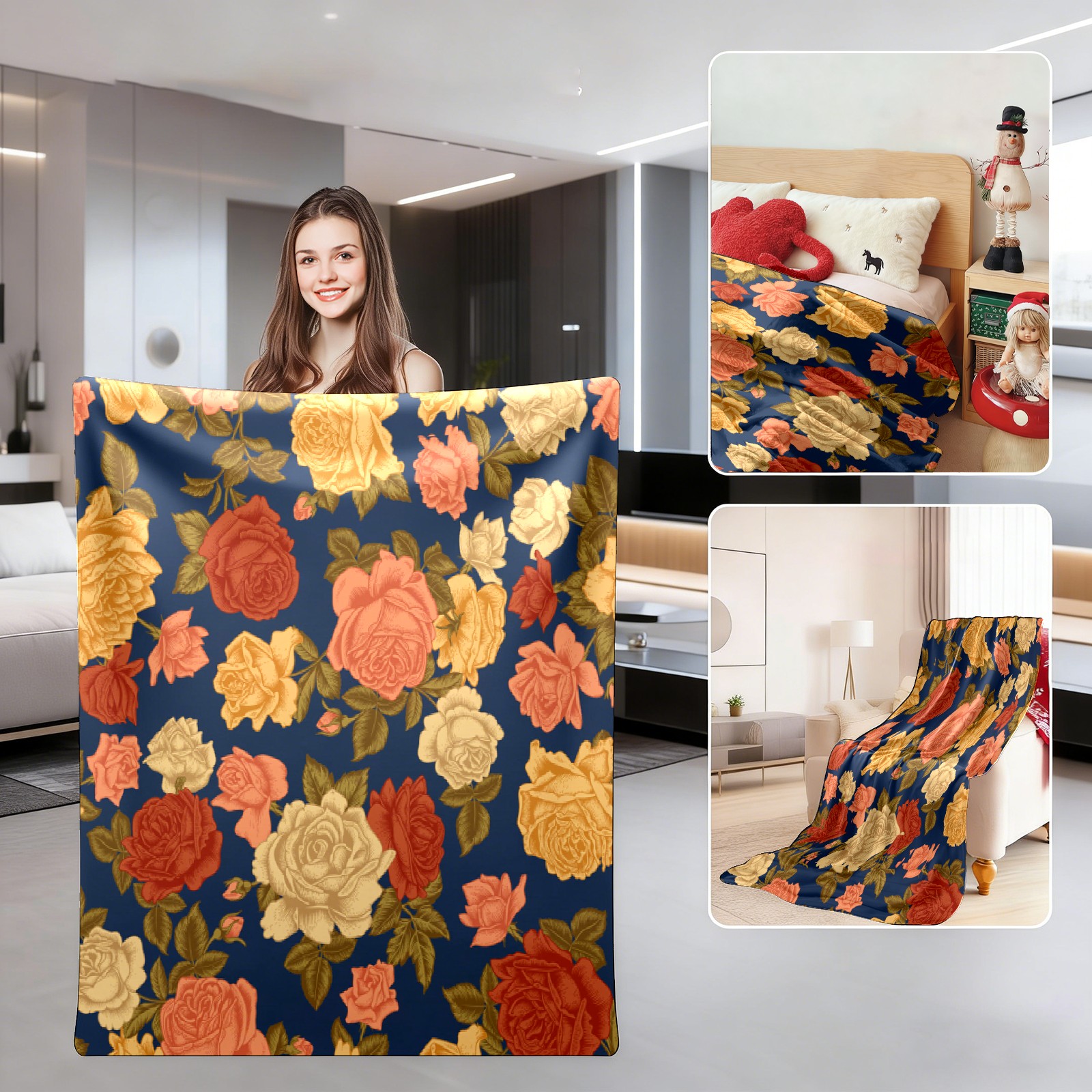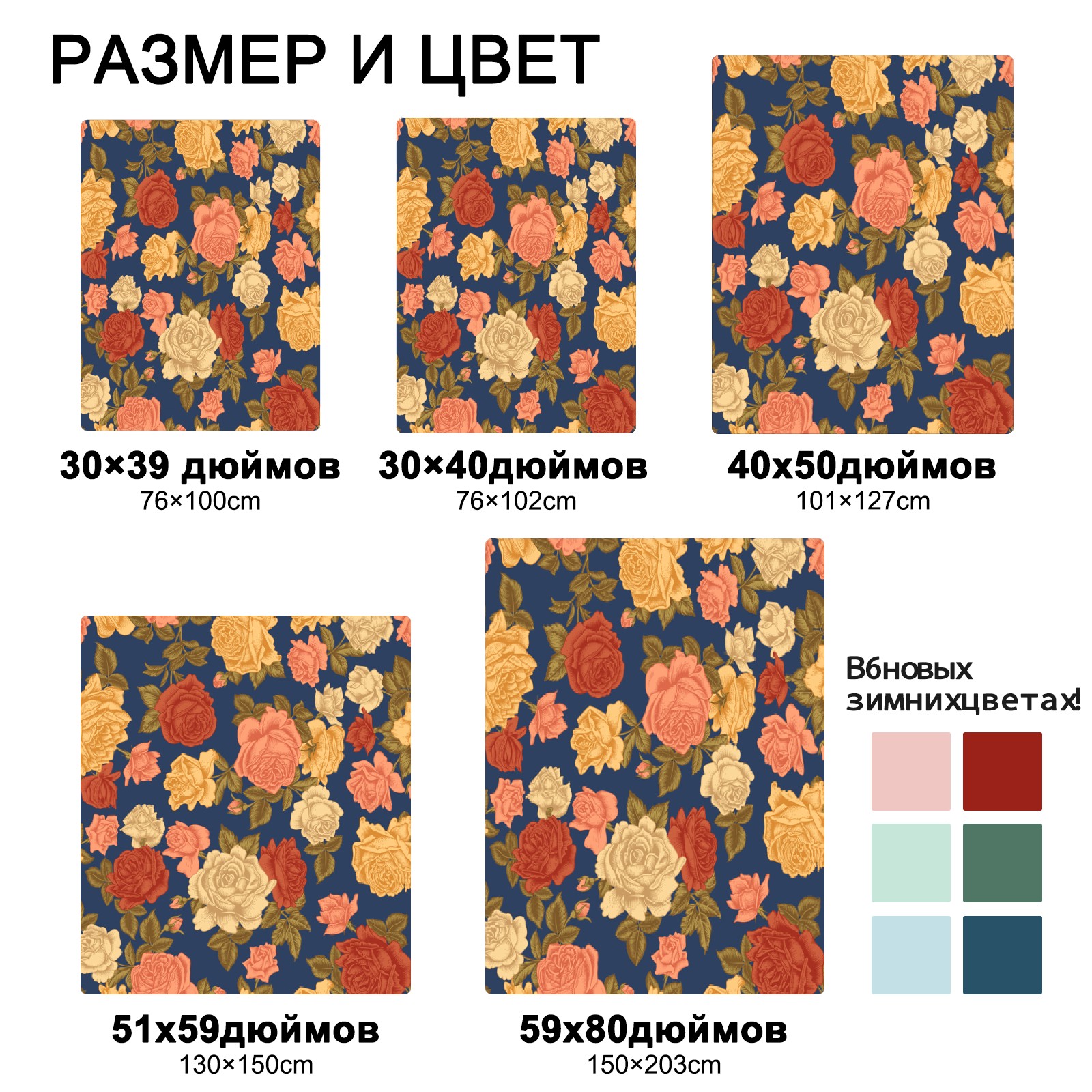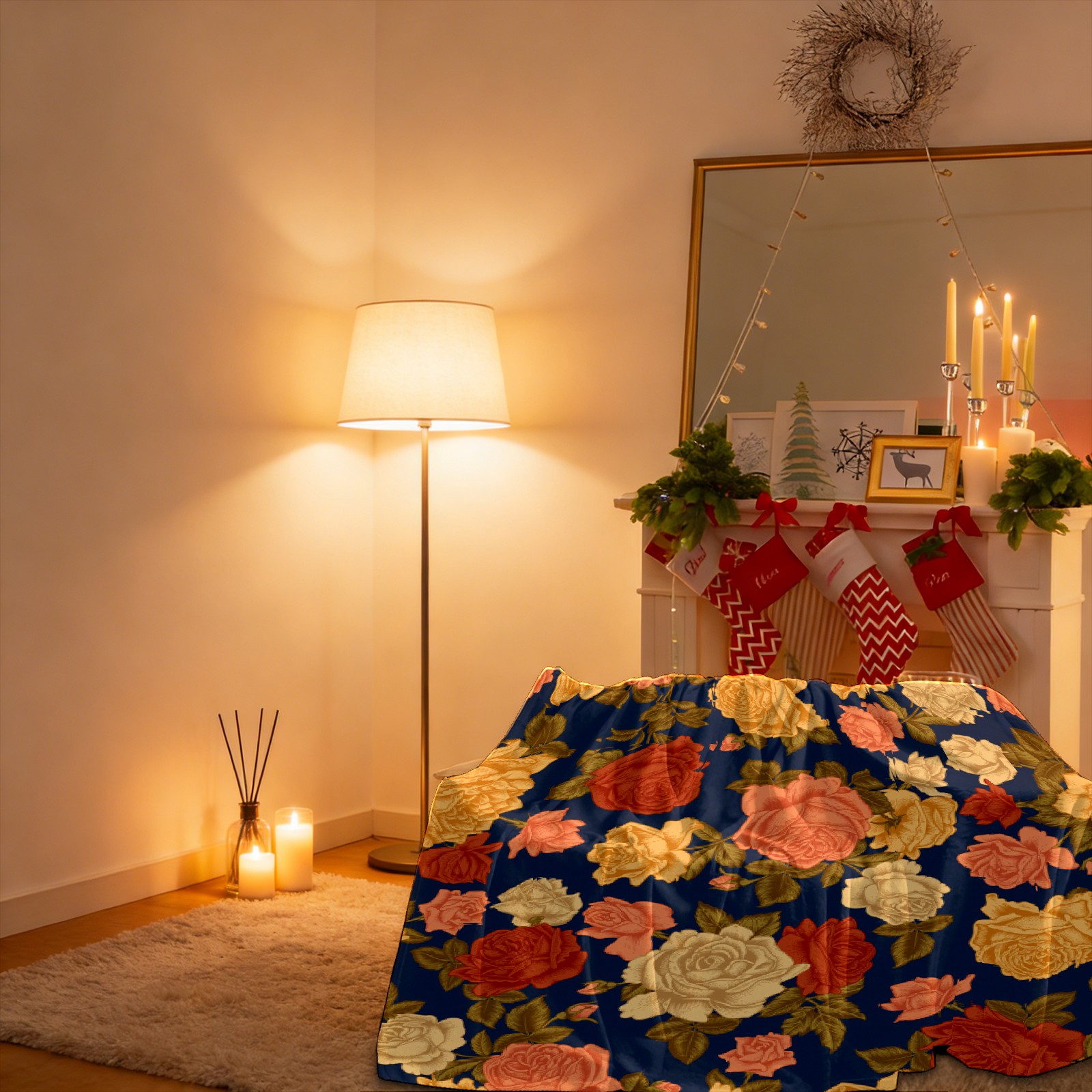 Vintage Rose Flowers Navy