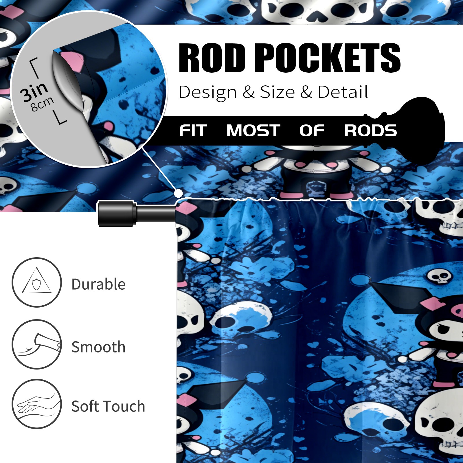 Шторы-панно для дома, декоративные драпировки для гостиной и спальни, легкие и прочные, Cool Kuromi Blue