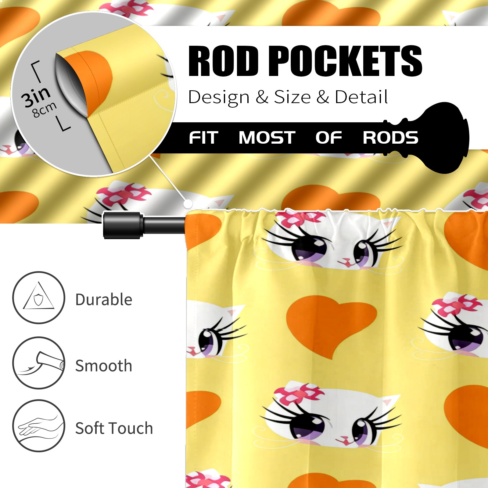 Шторы-панно для дома, декоративные драпировки для гостиной и спальни, легкие и прочные, Rabbit Character Yellow