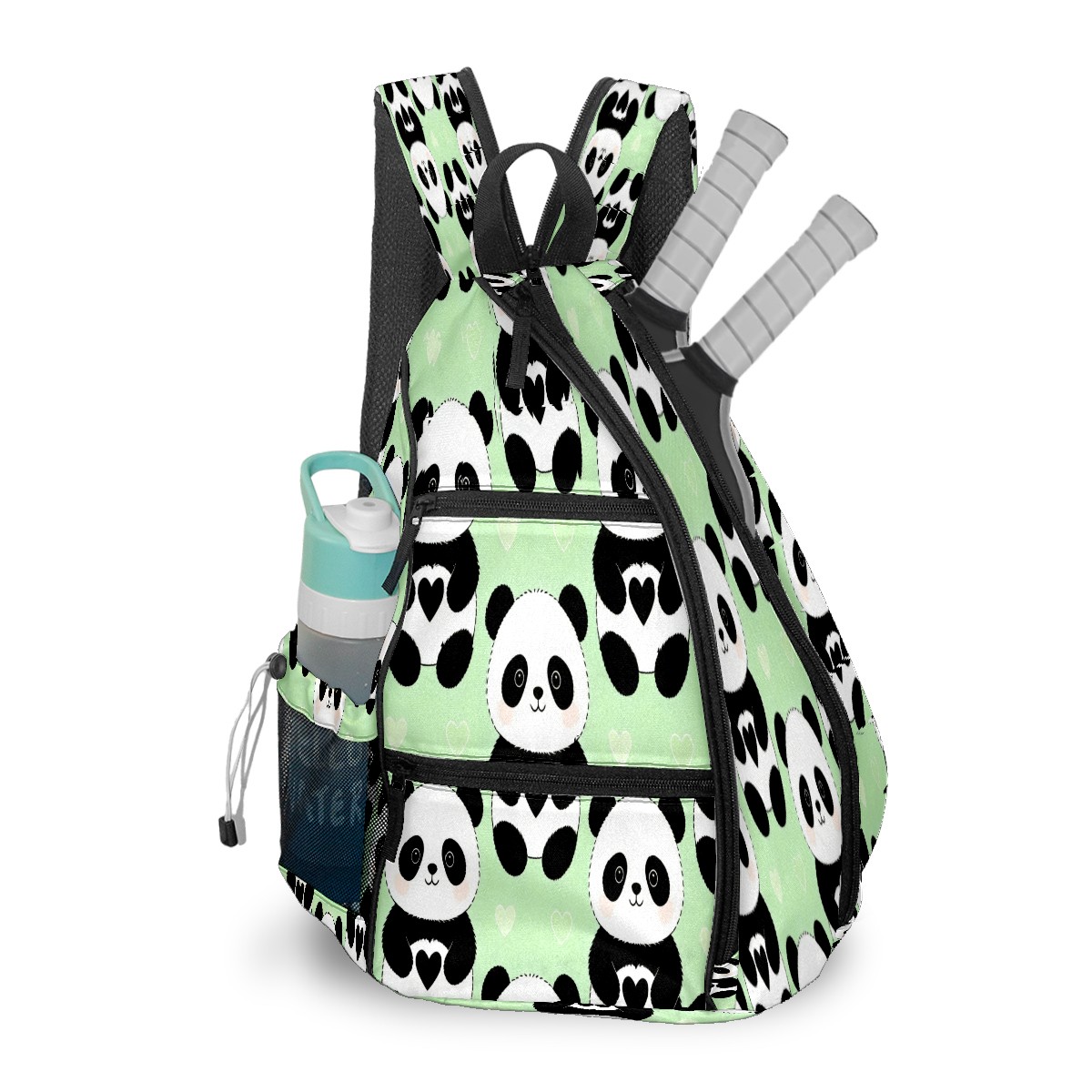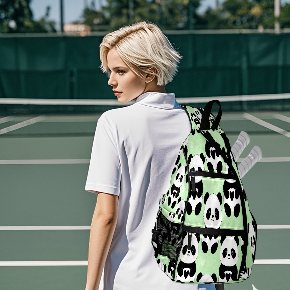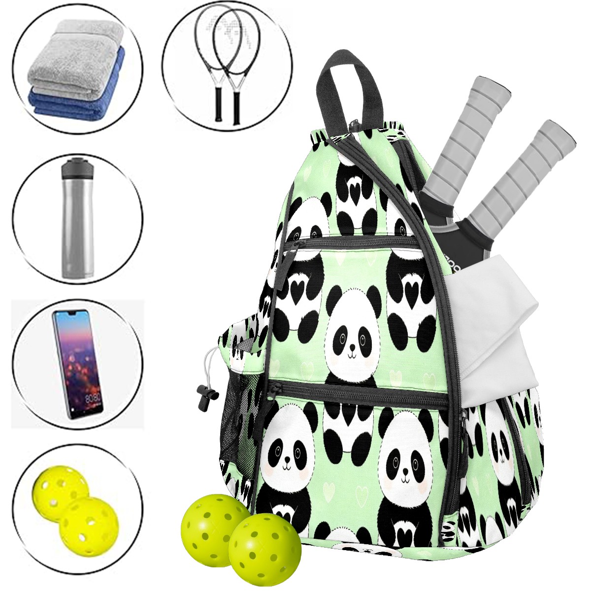 Pickleball Bag with Convertible Straps, Large Capacity Pickleball Backpack for Paddles, Balls & Gear, Ergonomic & Breathable Sports Bag, Loving Panda Green for Men & Women