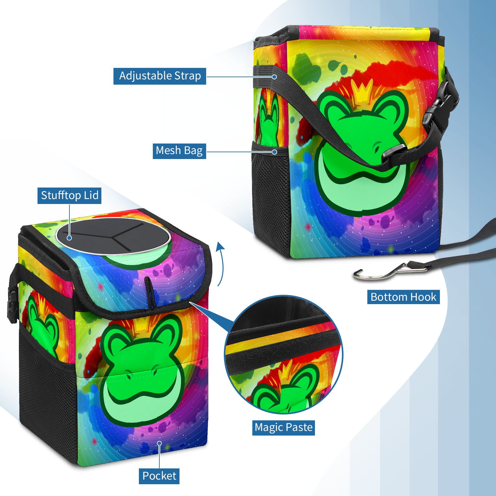 Car Garbage Can — Multi-functional, Lightweight Portable, Reusable Vehicle Trash Can, Waterproof with Sufficient Storage Capacity 青蛙01