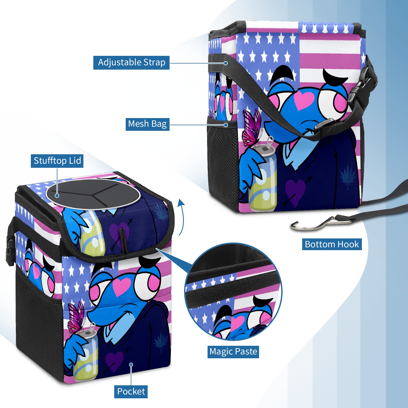 Car Garbage Can — Multi-functional, Lightweight Portable, Reusable Vehicle Trash Can, Waterproof with Sufficient Storage Capacity 蓝色青蛙6