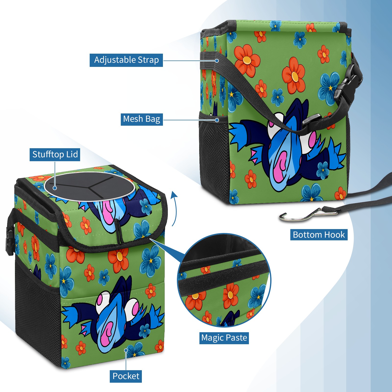 Car Garbage Can — Multi-functional, Lightweight Portable, Reusable Vehicle Trash Can, Waterproof with Sufficient Storage Capacity 蓝色青蛙5
