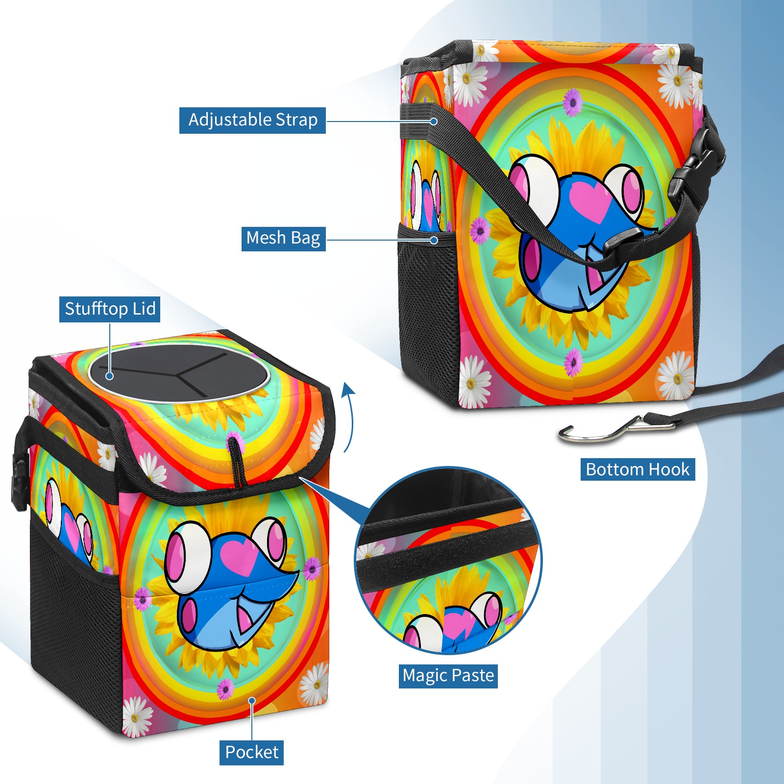 Car Garbage Can — Multi-functional, Lightweight Portable, Reusable Vehicle Trash Can, Waterproof with Sufficient Storage Capacity 蓝色青蛙3