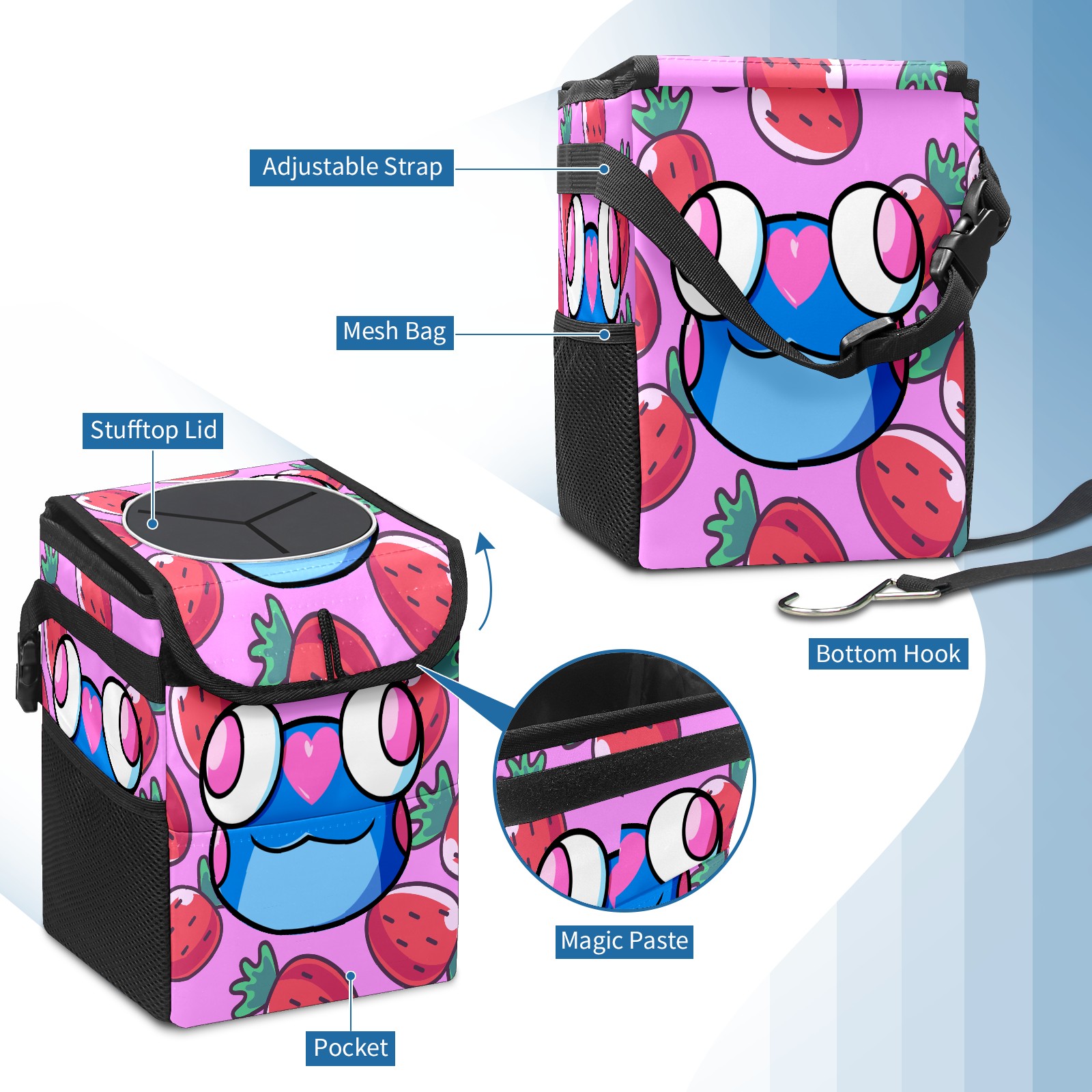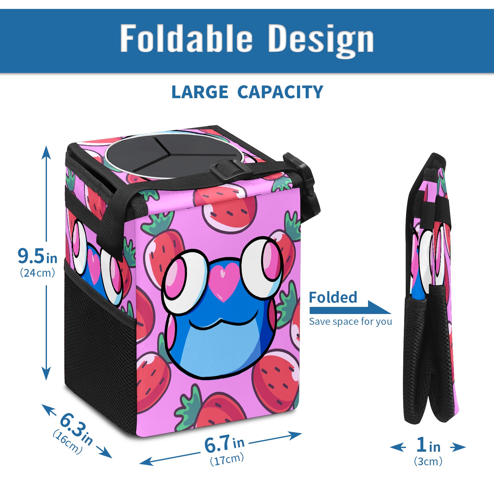 Car Garbage Can — Multi-functional, Lightweight Portable, Reusable Vehicle Trash Can, Waterproof with Sufficient Storage Capacity 蓝色青蛙002