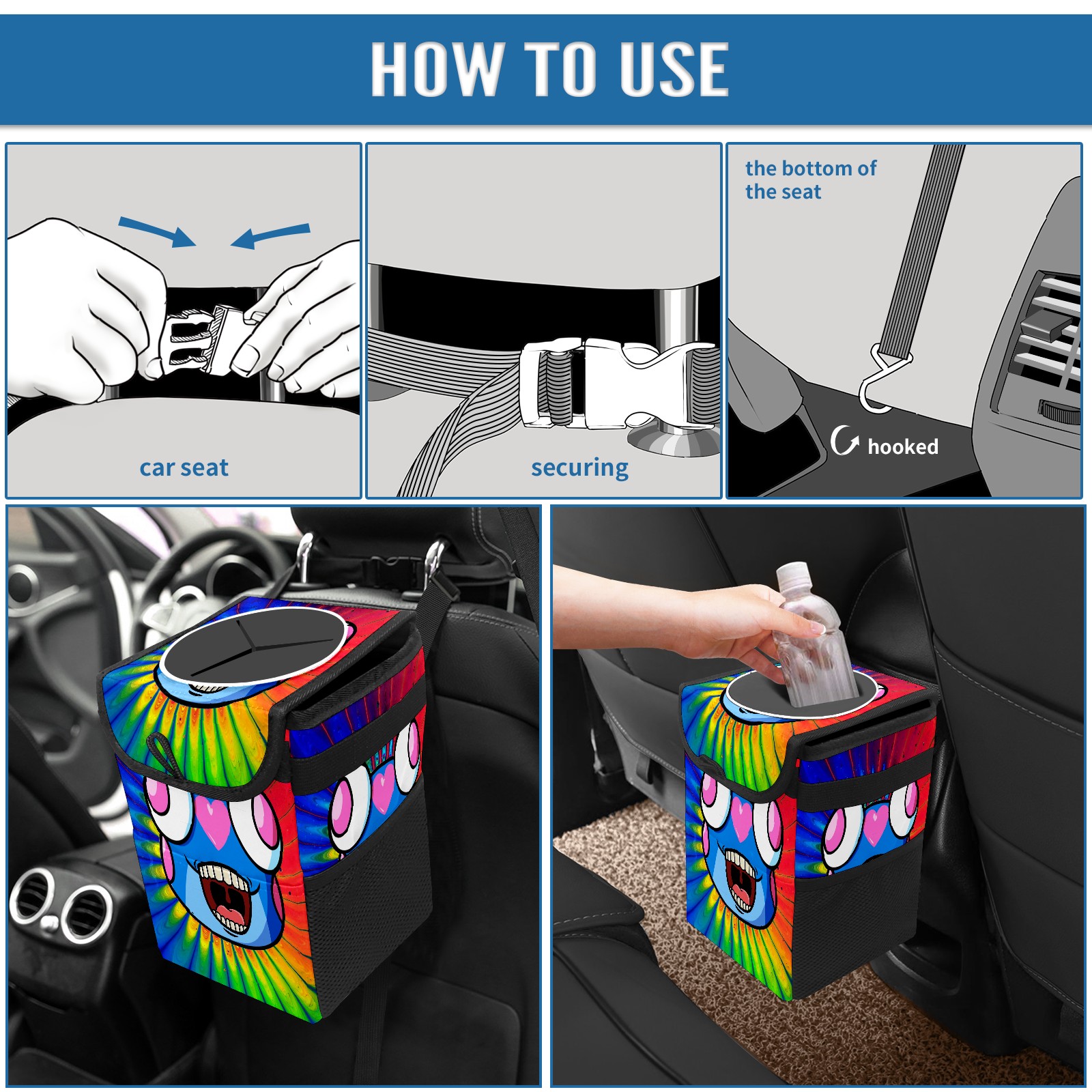 • <p>Keep your car neat with this practical car trash can—built for durability, versatility, and on-the-go convenience! Crafted from quality twill fabric with a waterproof lining, it prevents leaks, keeping seats/floors clean. Clean easily: empty directly or secure a disposable bag with side clips. Adjustable pull cord fits floor, seat, or headrest. 9.5x6.3x6.7 inches, ample space for daily trash, folds flat for storage. More than a trash can, it doubles as a storage bag for cups, toys, docs, and small gadgets—must-have car interior accessory. Installs in seconds on seats, console, or gear shift; adjustable straps keep it stable, no slipping on bumpy roads. Perfect gift for new car owners!</p>